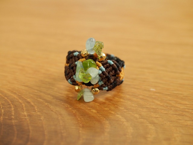 #120 Mont-Saint Michel (ペリドット×アクアマリン マクラメ編みリング)