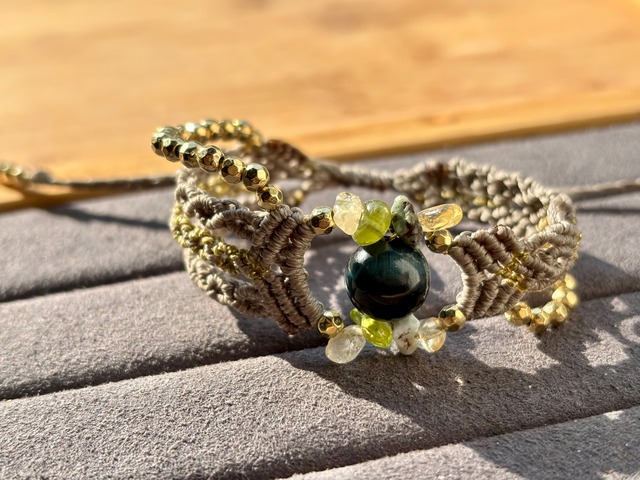 #274 World Heritage Ayuttaya (ホークアイ×ラリマー×ペリドット マクラメ編みブレスレット)