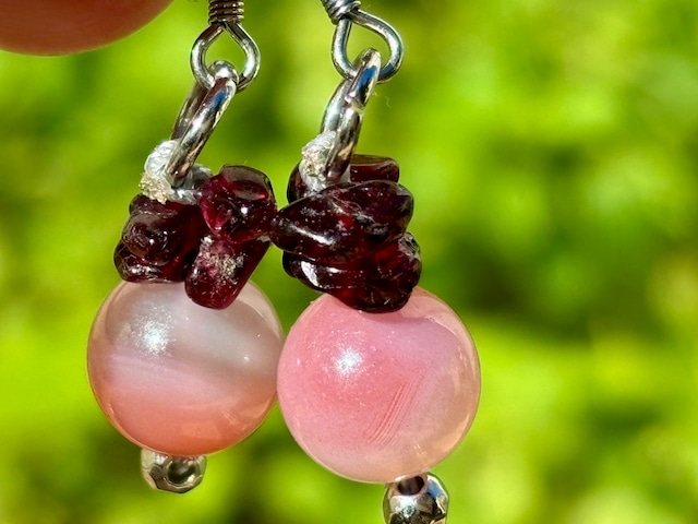 #891希少ぷるつや♡ソルトソースアゲート×ガーネット一点物 マクラメ編みピアス
