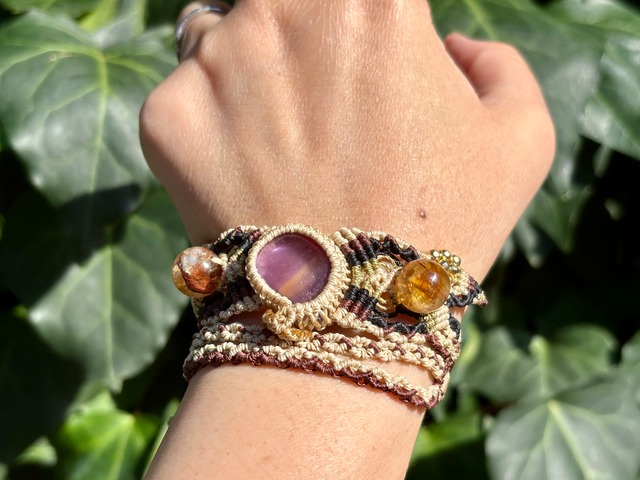 #853希少!アメトリン一点物(アメトリン×ライモナイトインシトリン×シトリン マクラメ編みブレスレット)