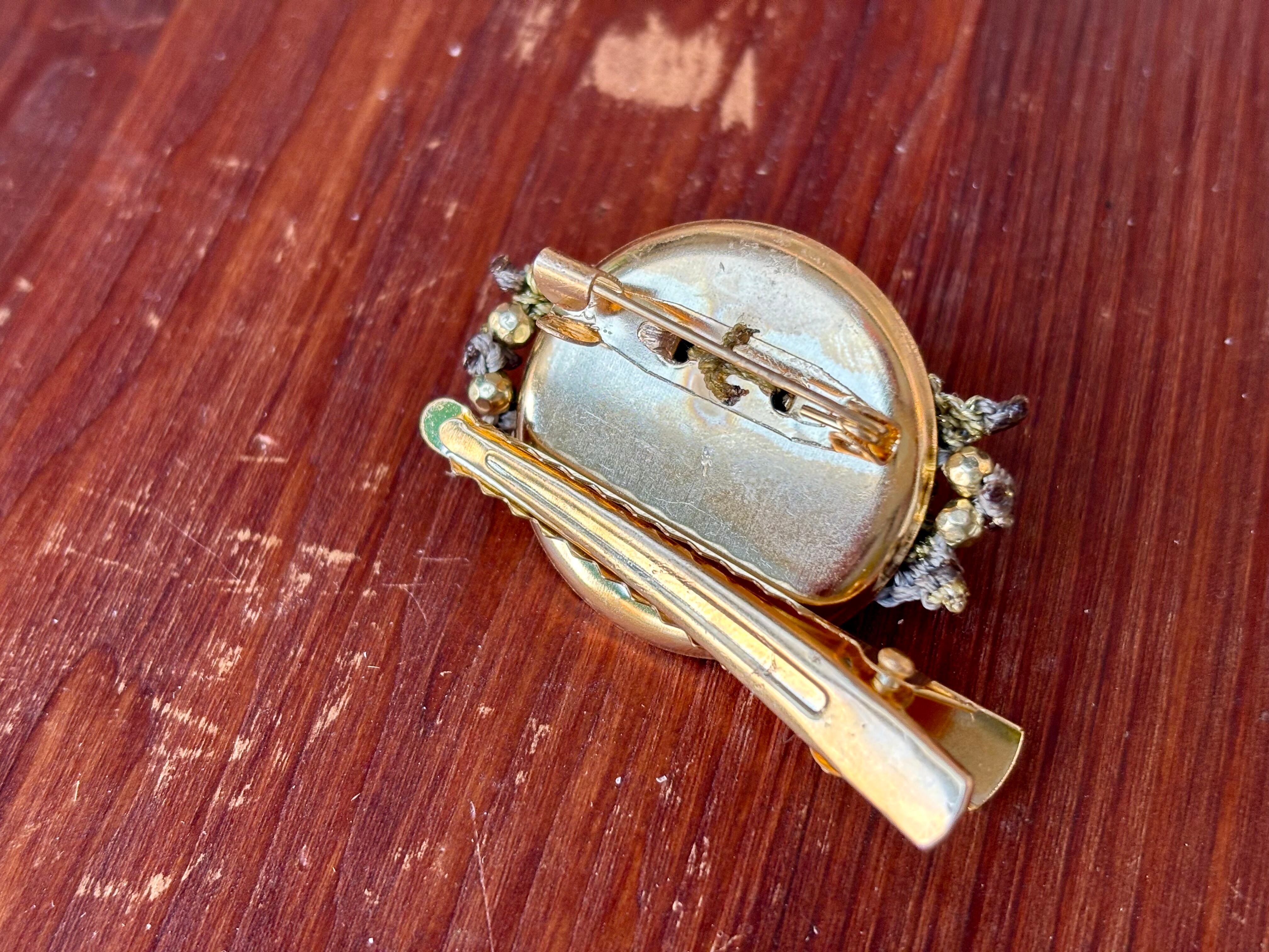 ゴールドの台座付きブローチはピンとクリップ、