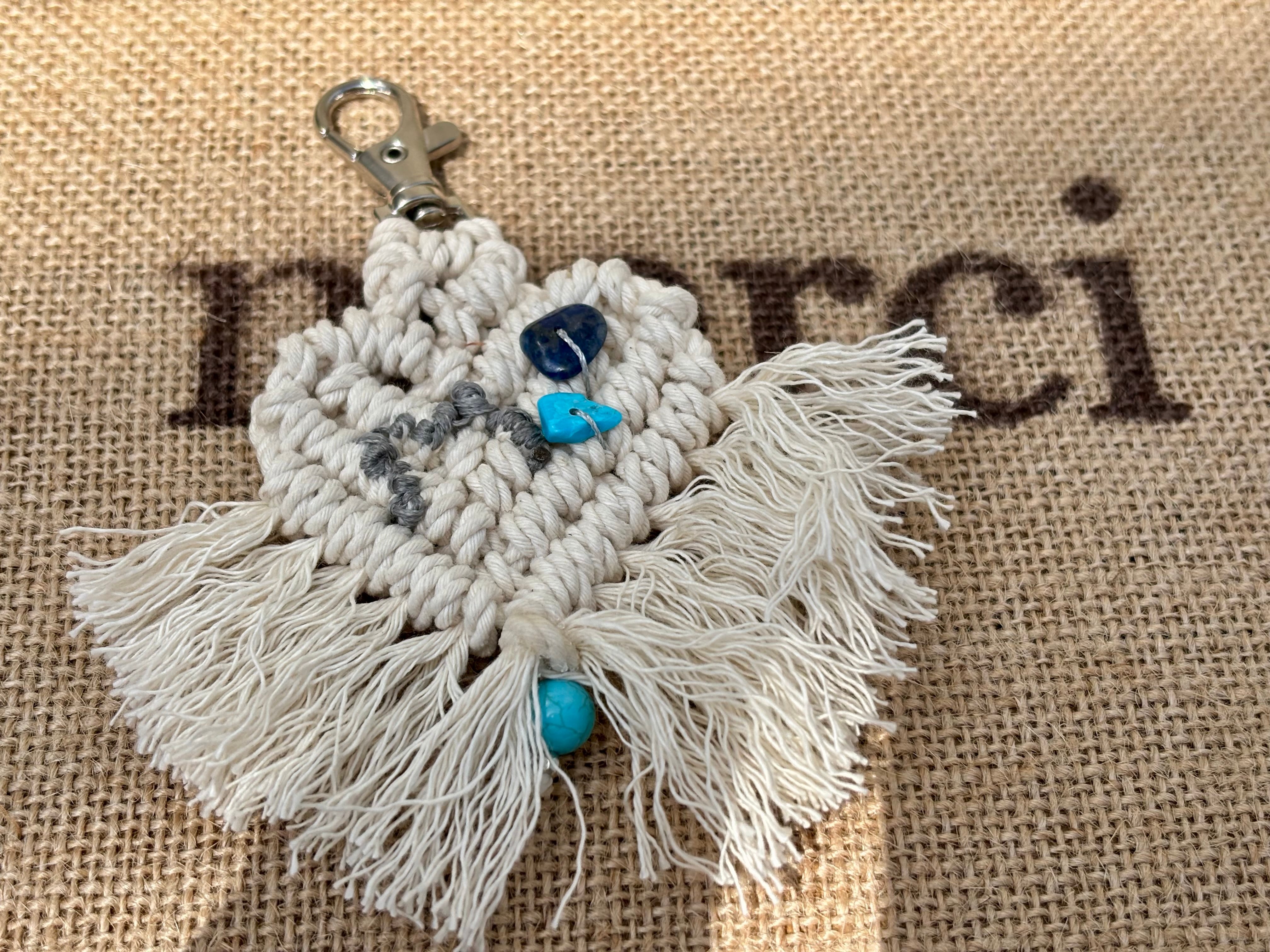 バッグやポーチに付けておくだけで、気持ちが引き締まります。手編みで仕上げられた繊細なデザインは、心を落ち着かせ、落ち着いた気持ちをもたらしてくれることでしょう。