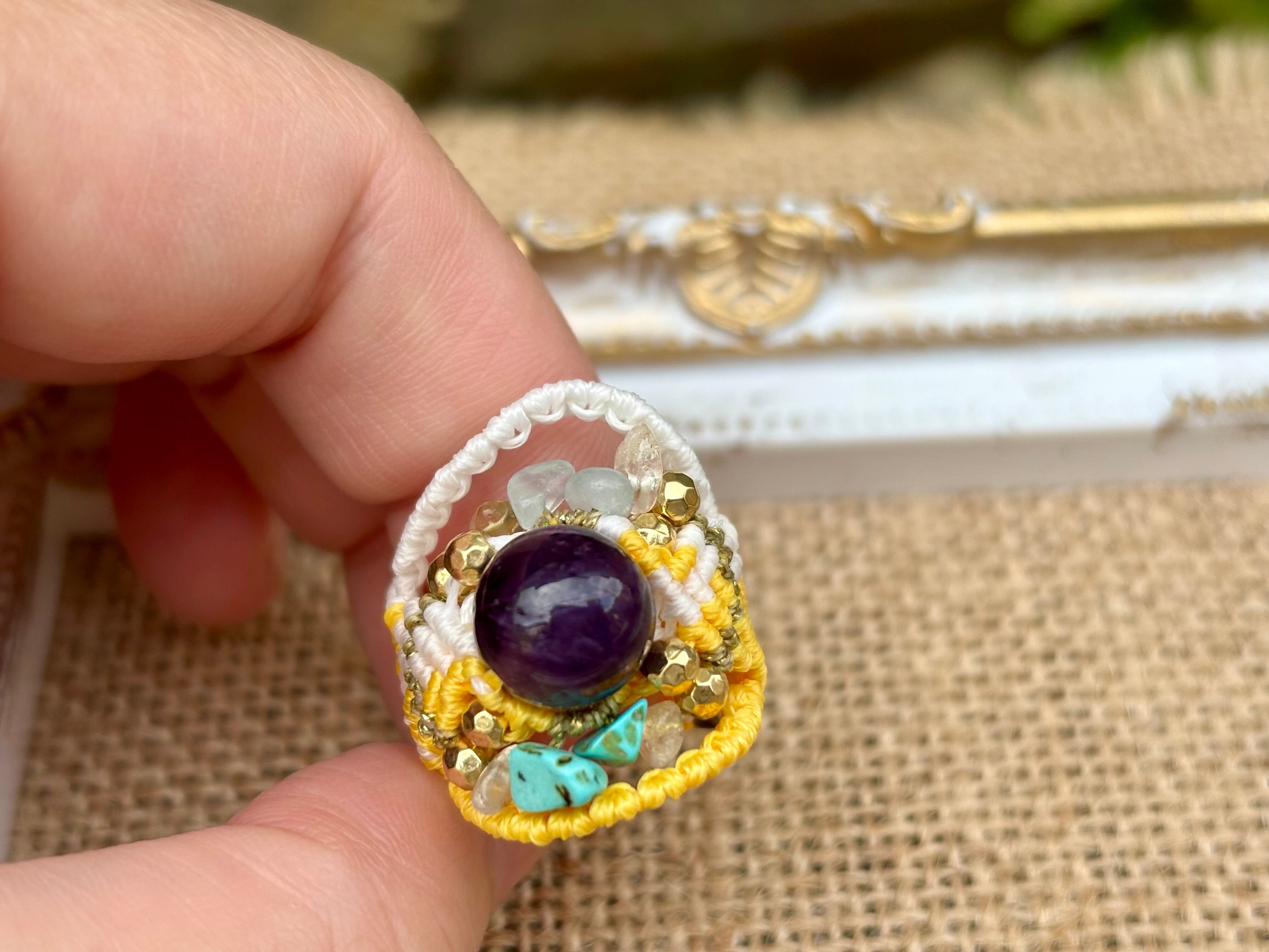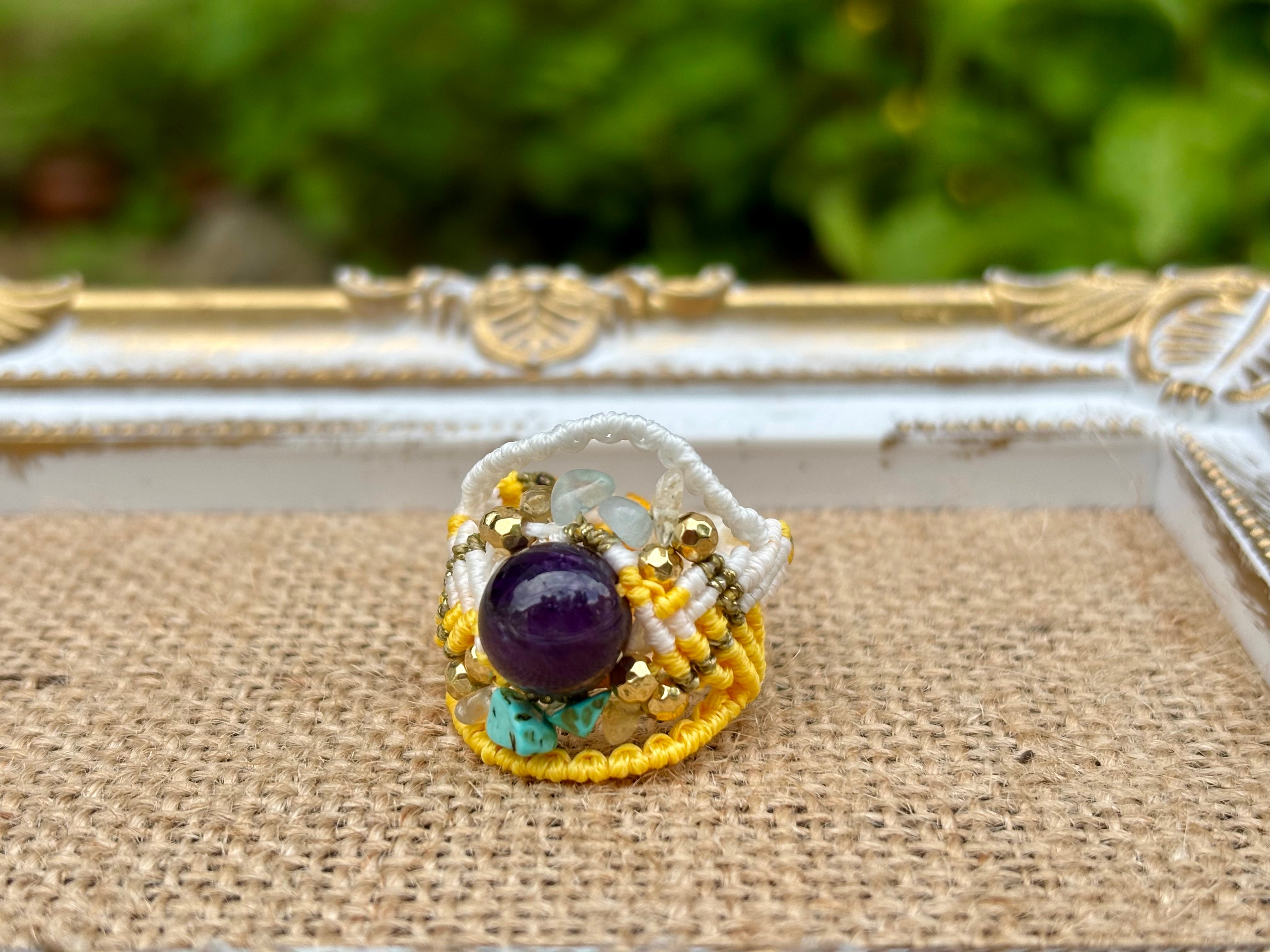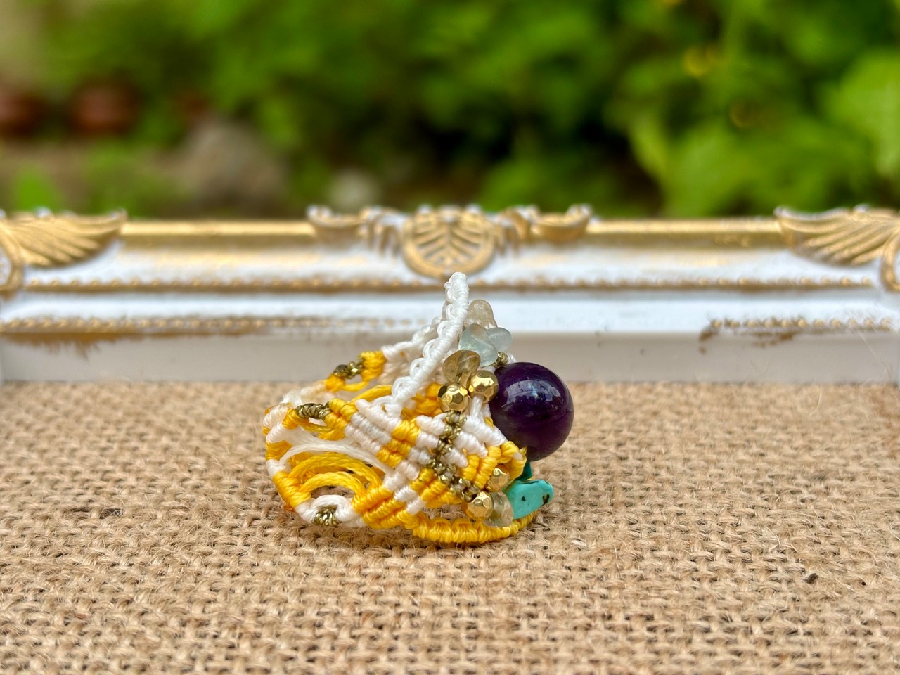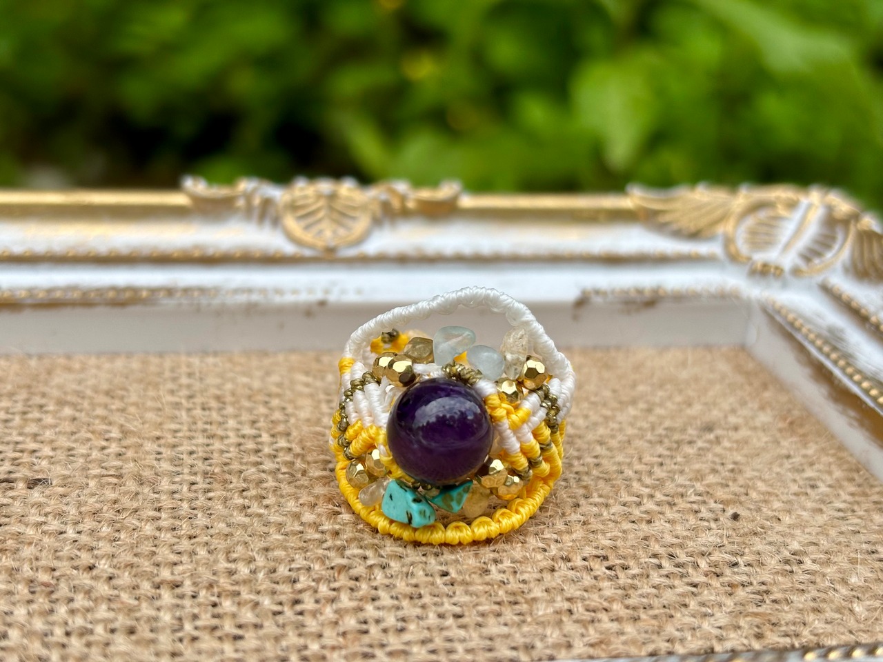 #642 World Heritage Ayuttaya (アメジスト×アクアマリン×ターコイズ×シトリン マクラメ編みリング/指輪)