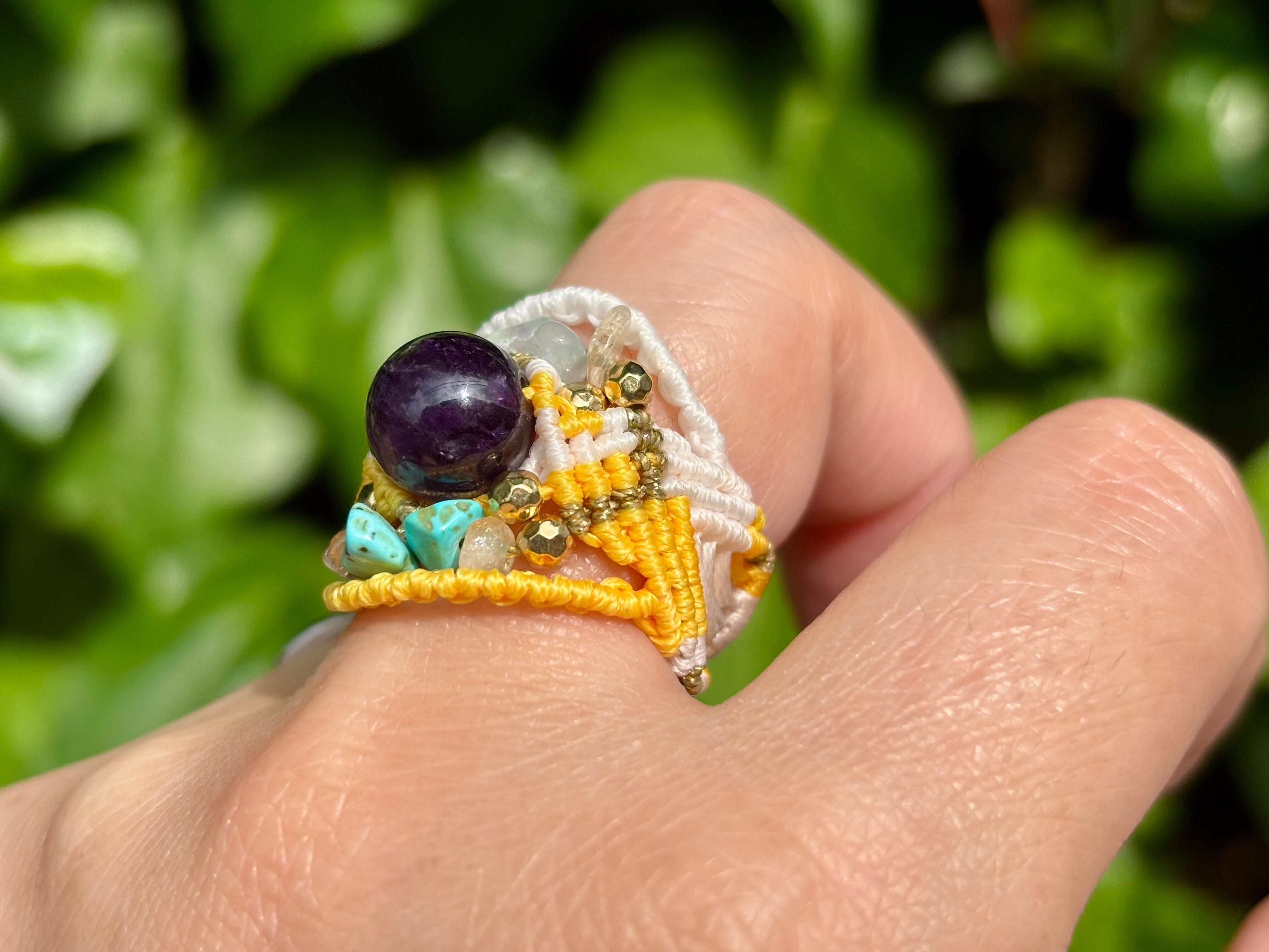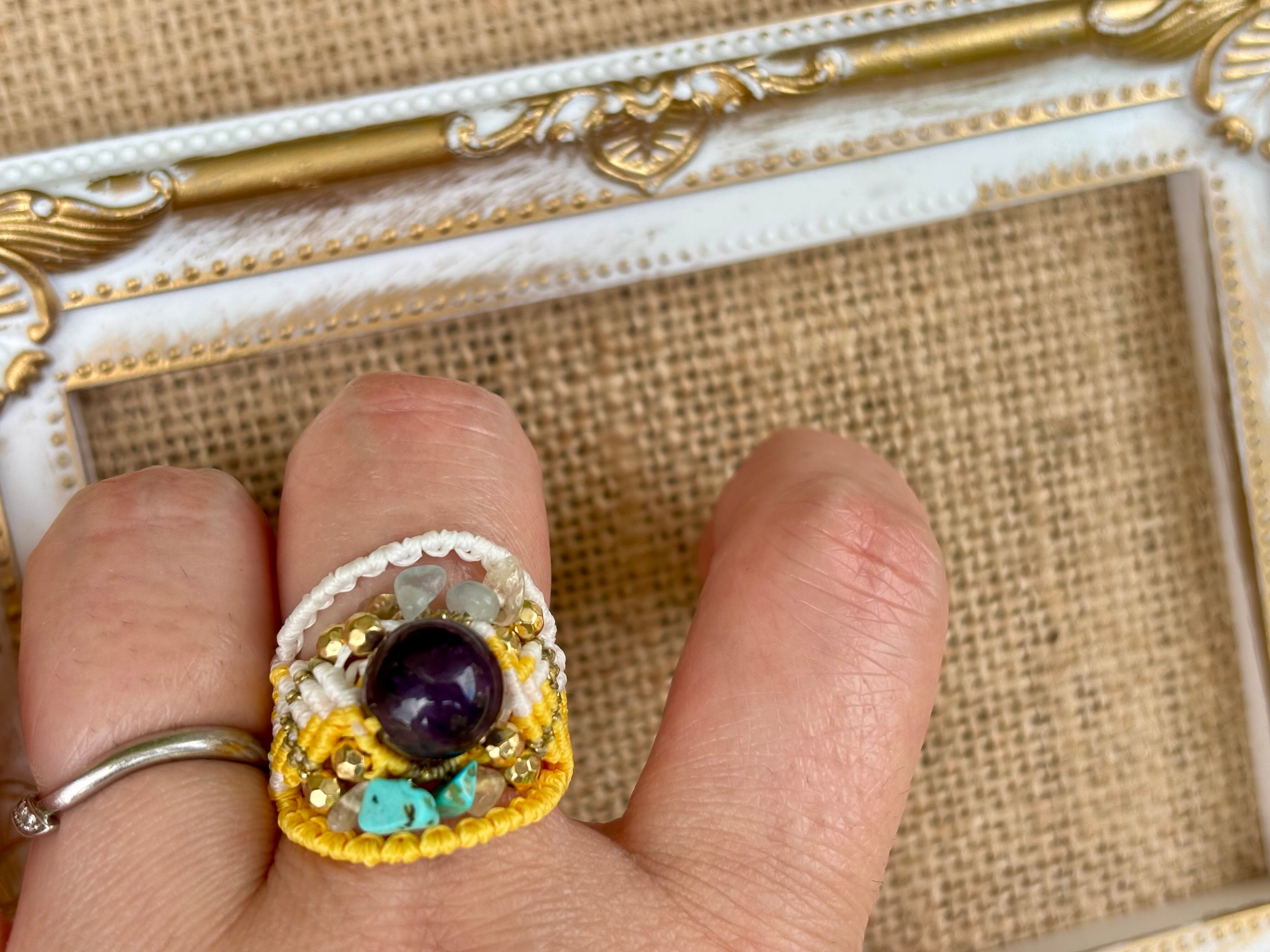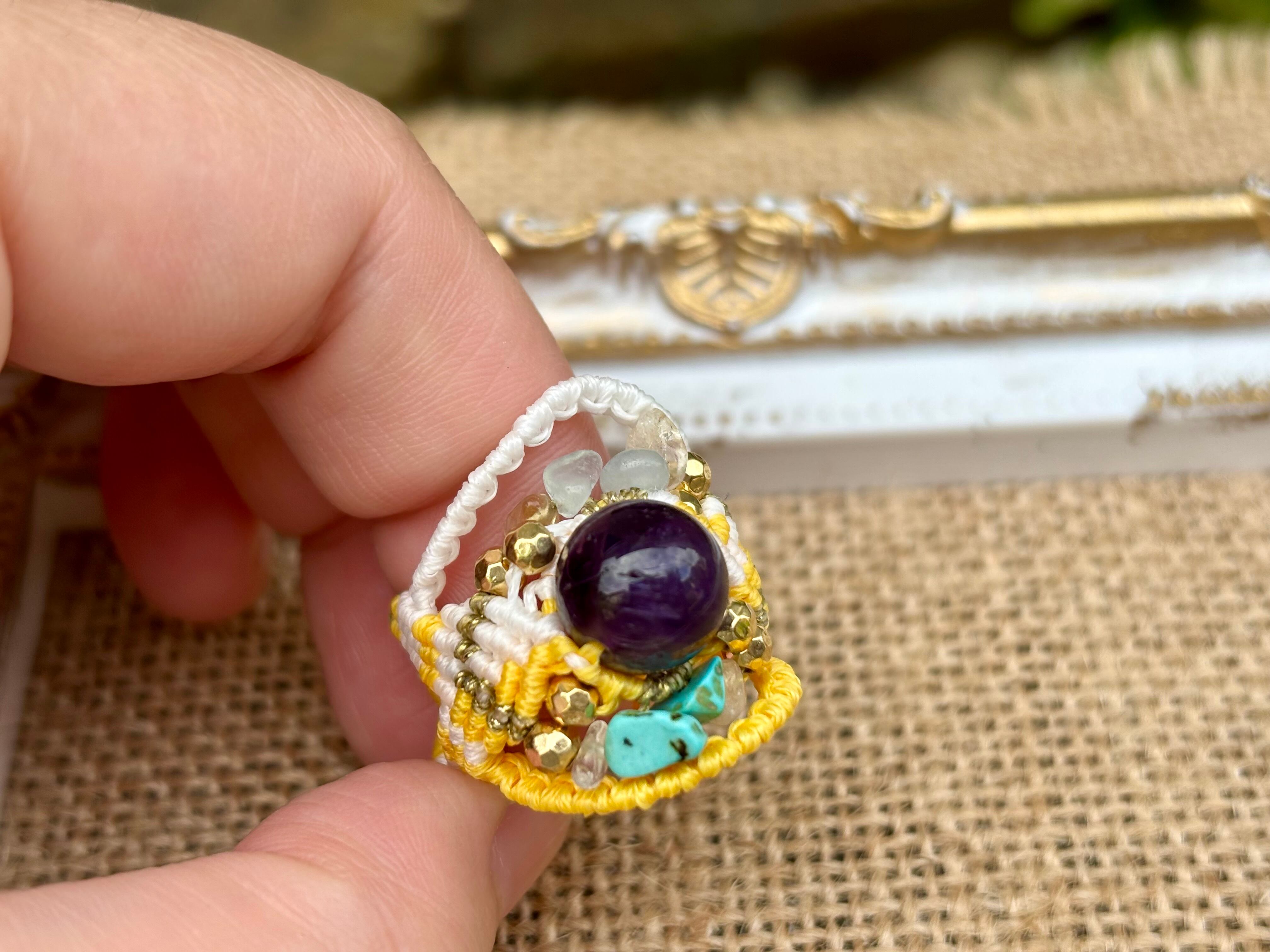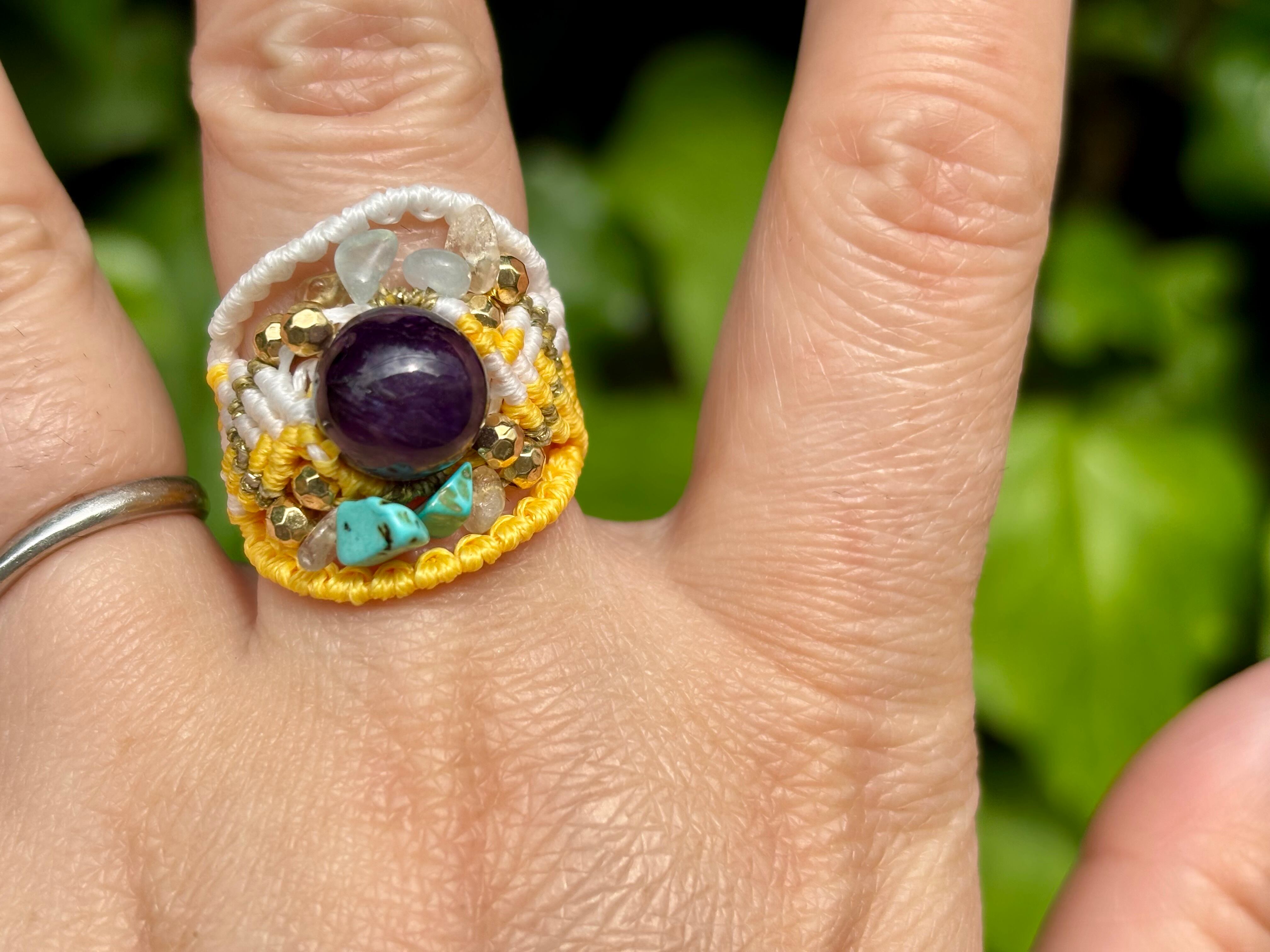 #642 World Heritage Ayuttaya (アメジスト×アクアマリン×ターコイズ×シトリン マクラメ編みリング/指輪)