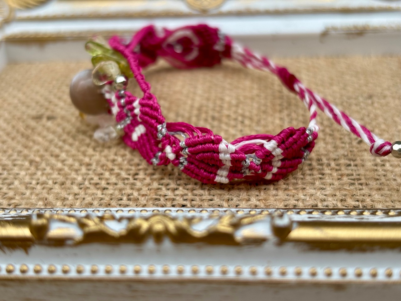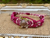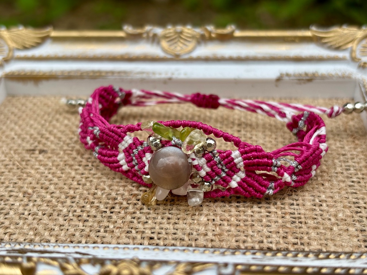 #647 World Heritage Ayuttaya (グレームーンストーン×ペリドット×ローズクォーツ×シトリン マクラメ編みブレスレット)