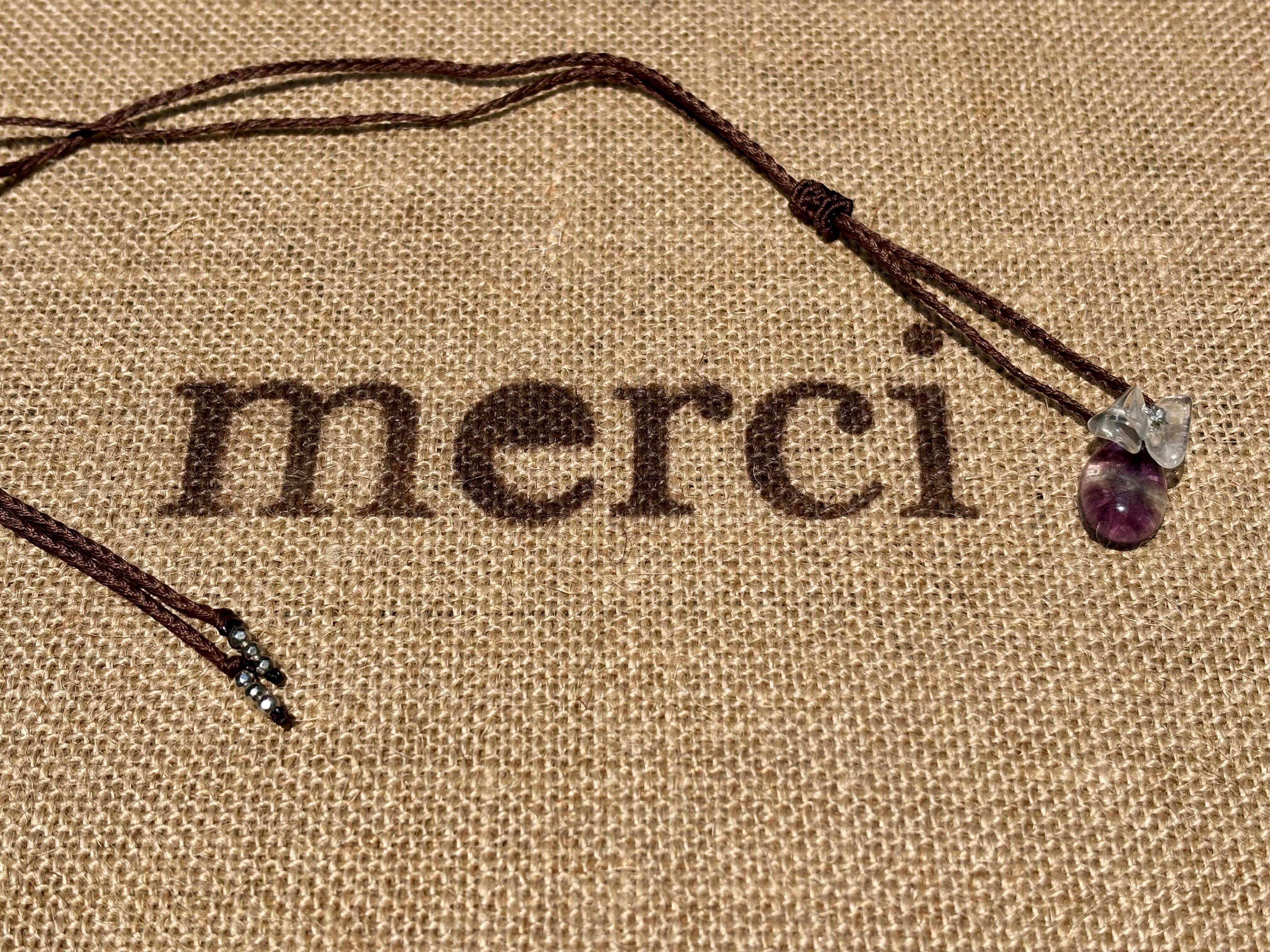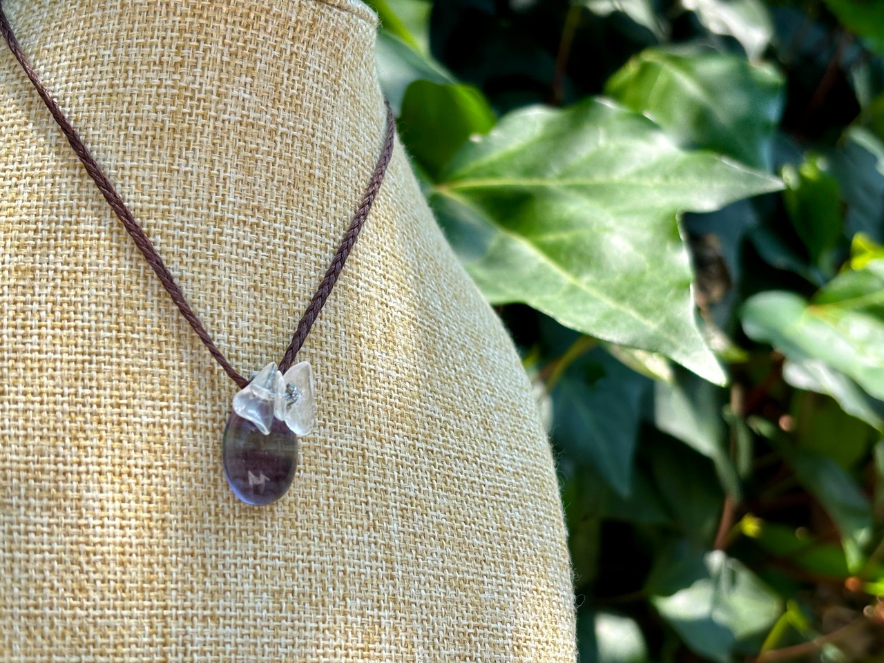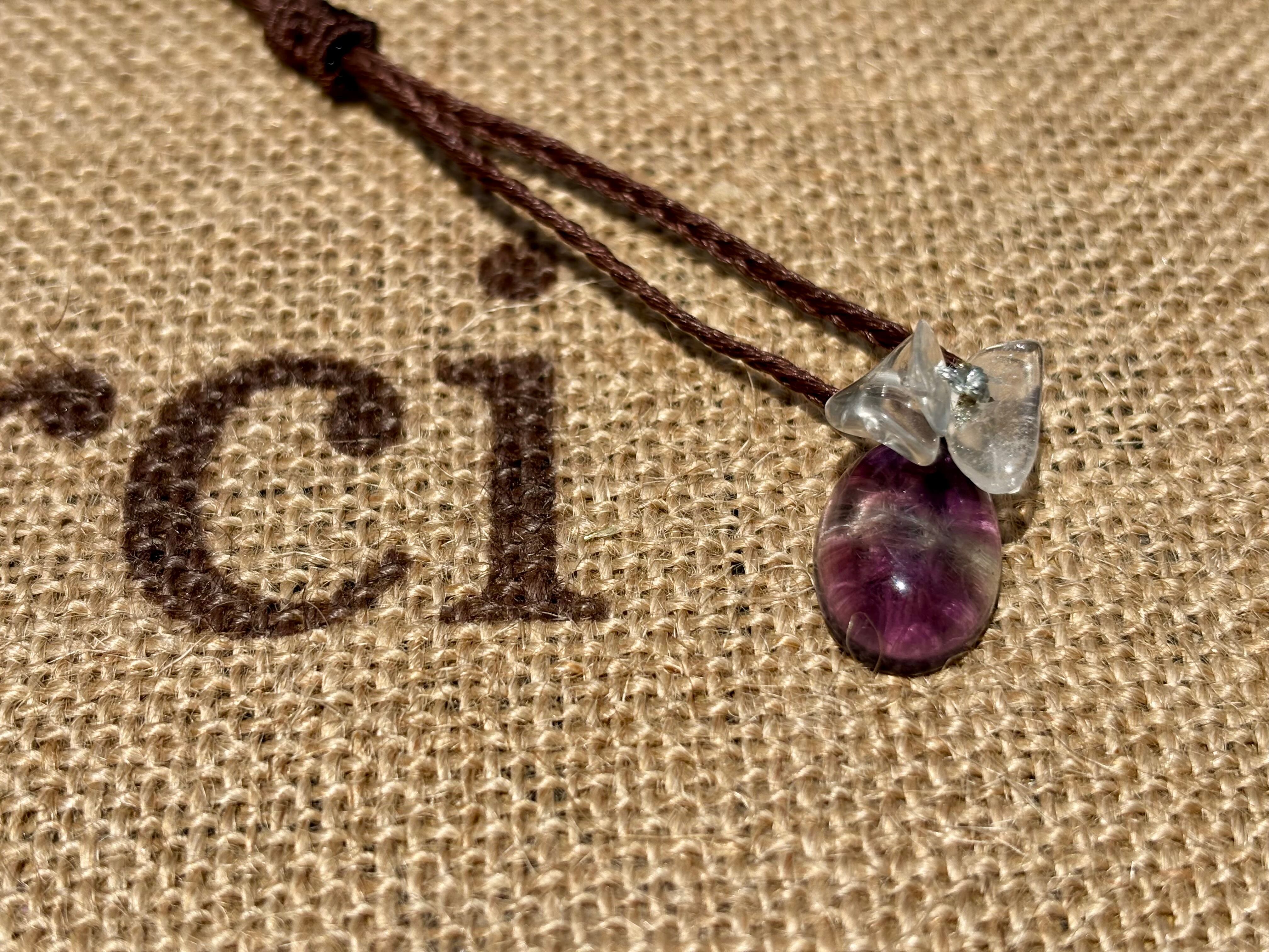 #655 Wat Pho 一点物(フローライト×水晶 マクラメ編みネックレス)