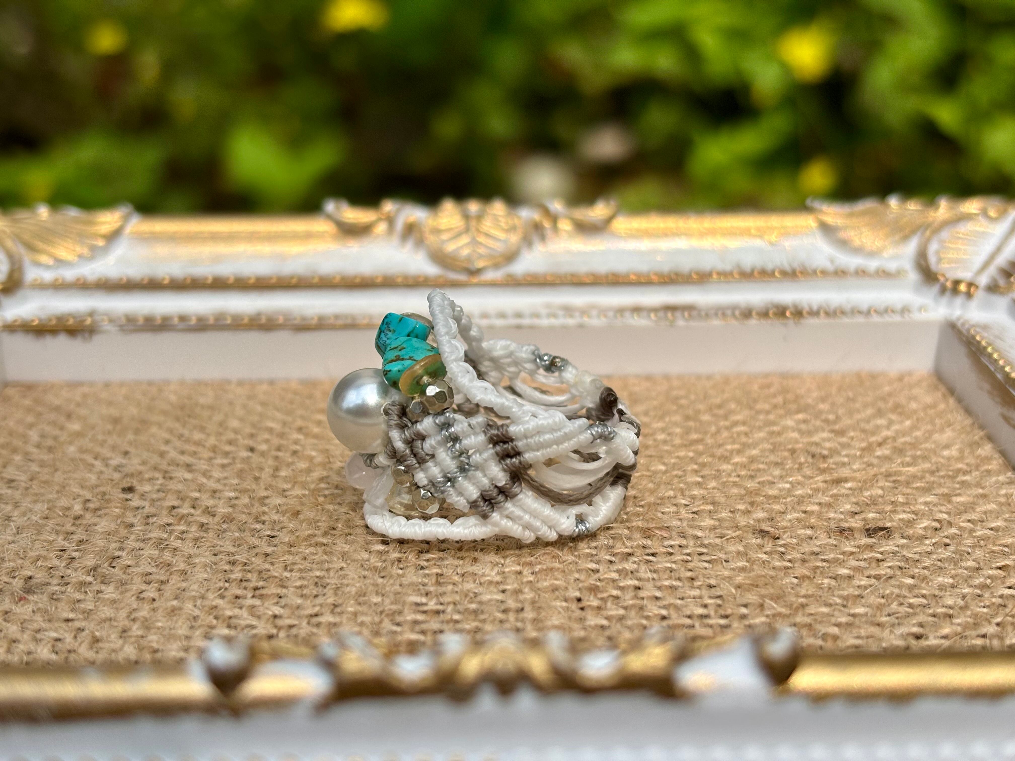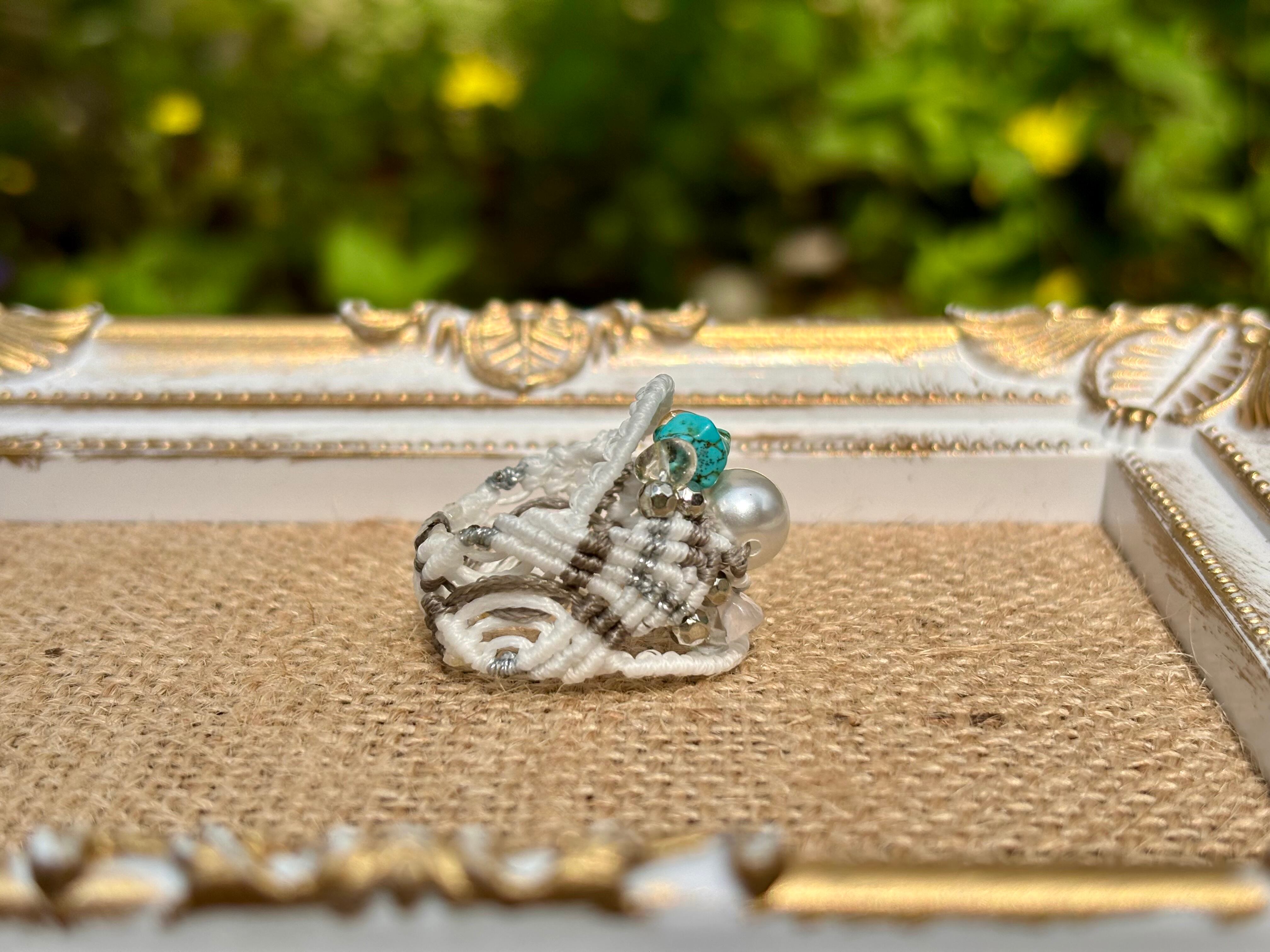 #657 World Heritage Ayuttaya (淡水パール×ローズクォーツ×シトリン×ターコイズ マクラメ編みリング/指輪)