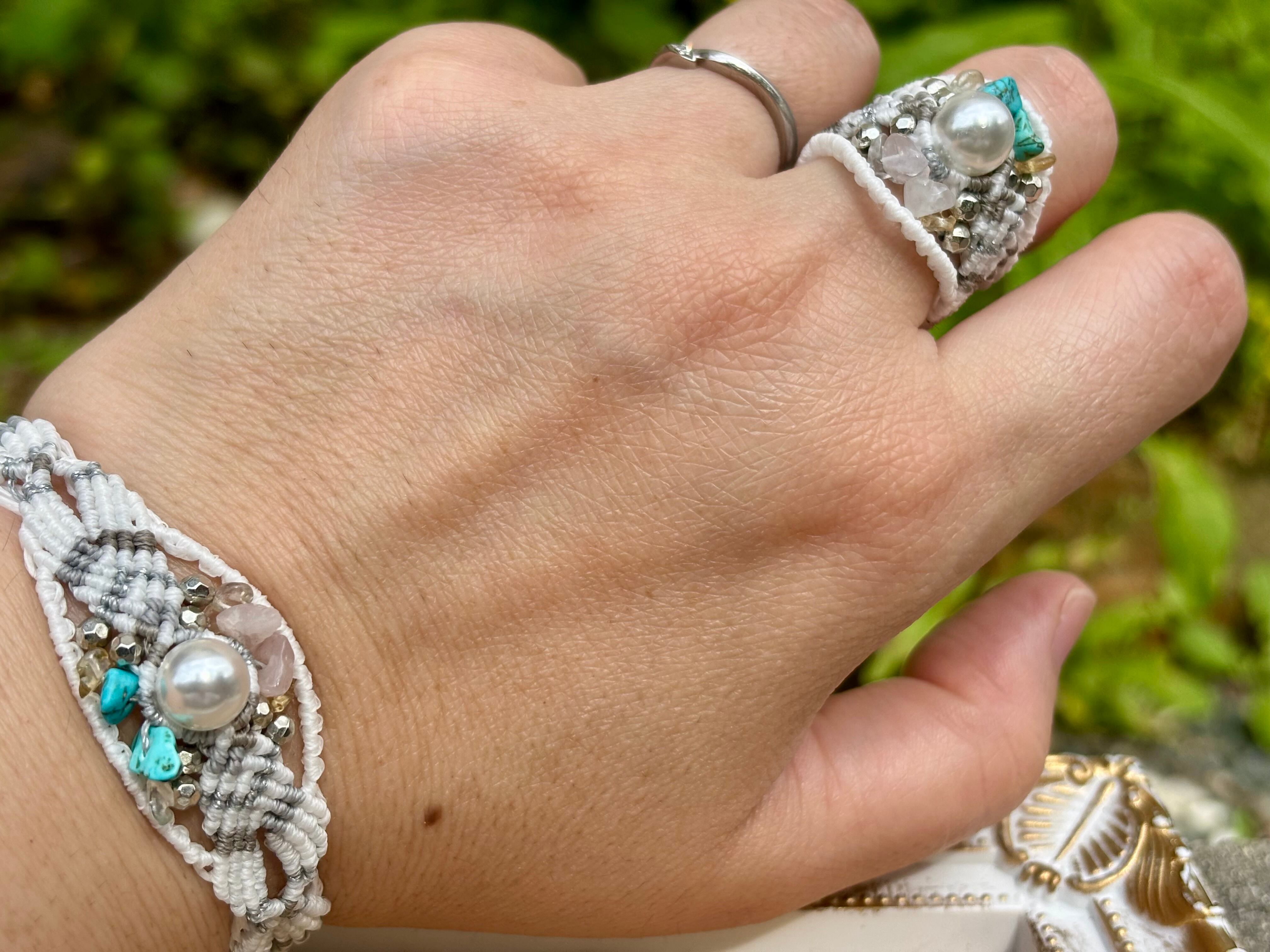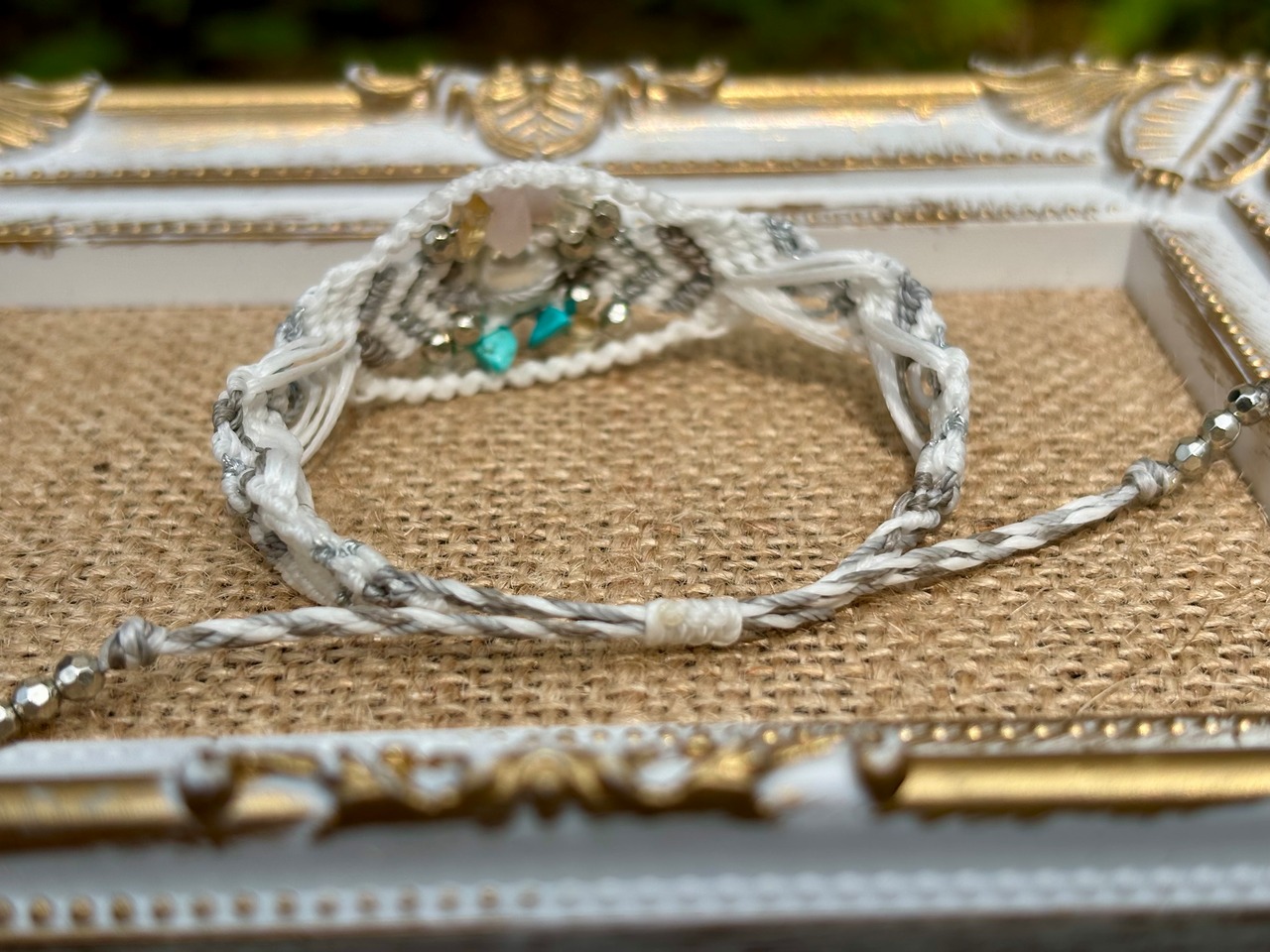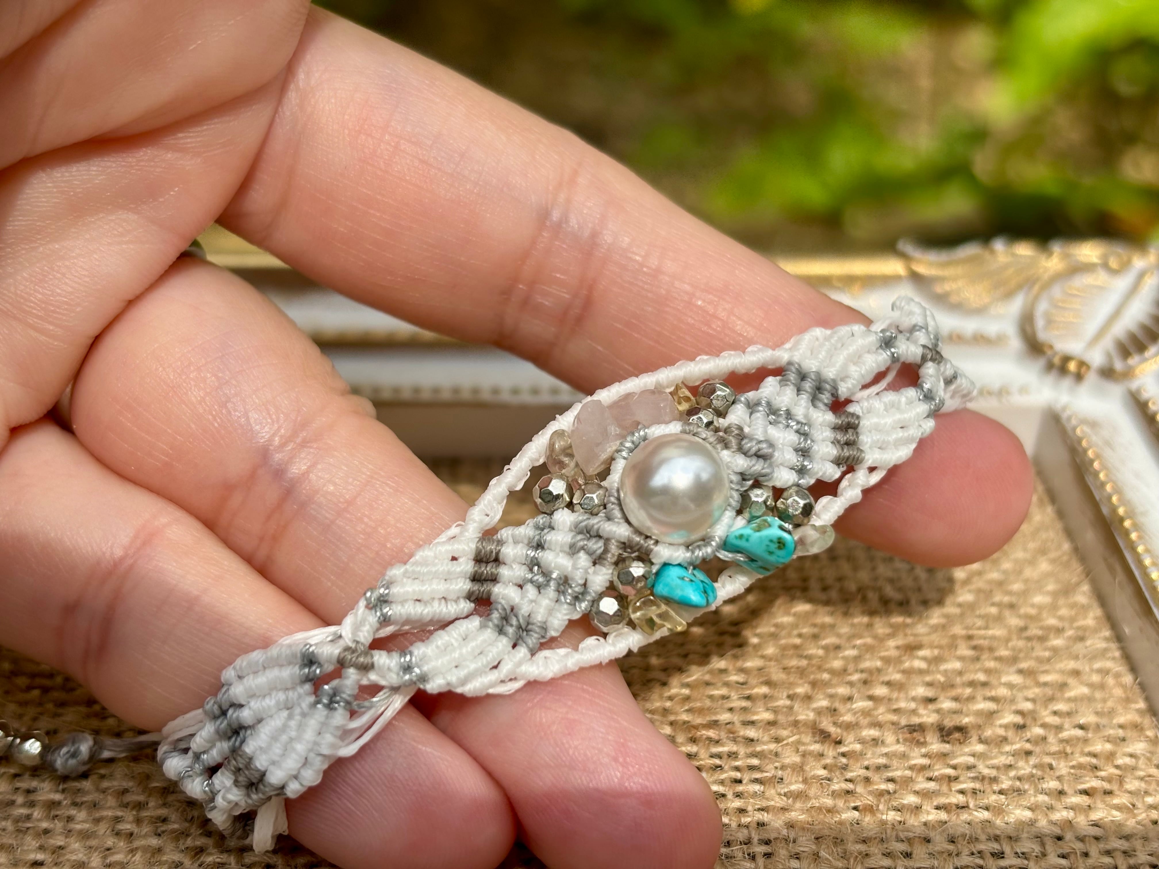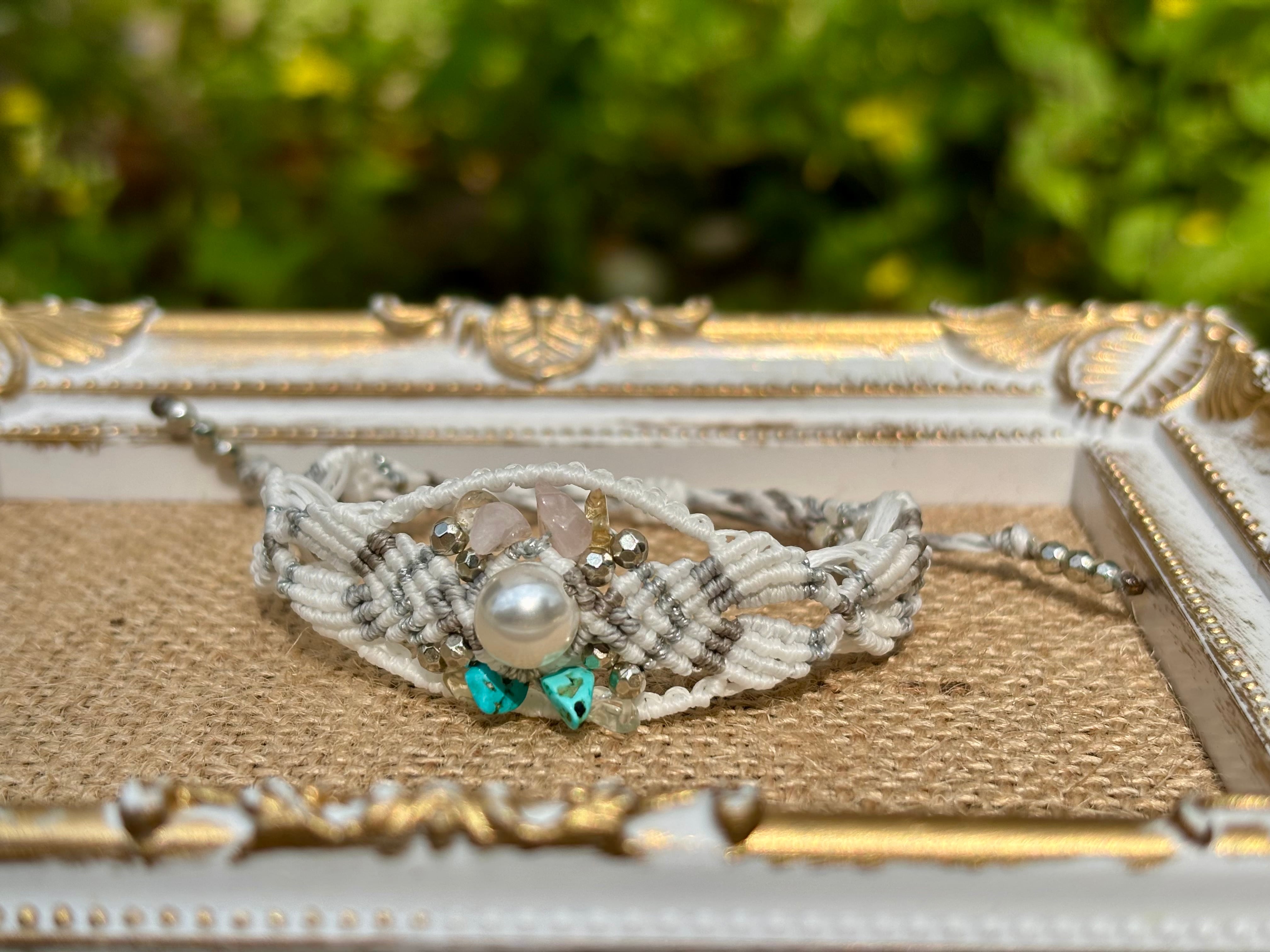 #658 World Heritage Ayuttaya (淡水パール×ローズクォーツ×シトリン×ターコイズ マクラメ編みブレスレット)
