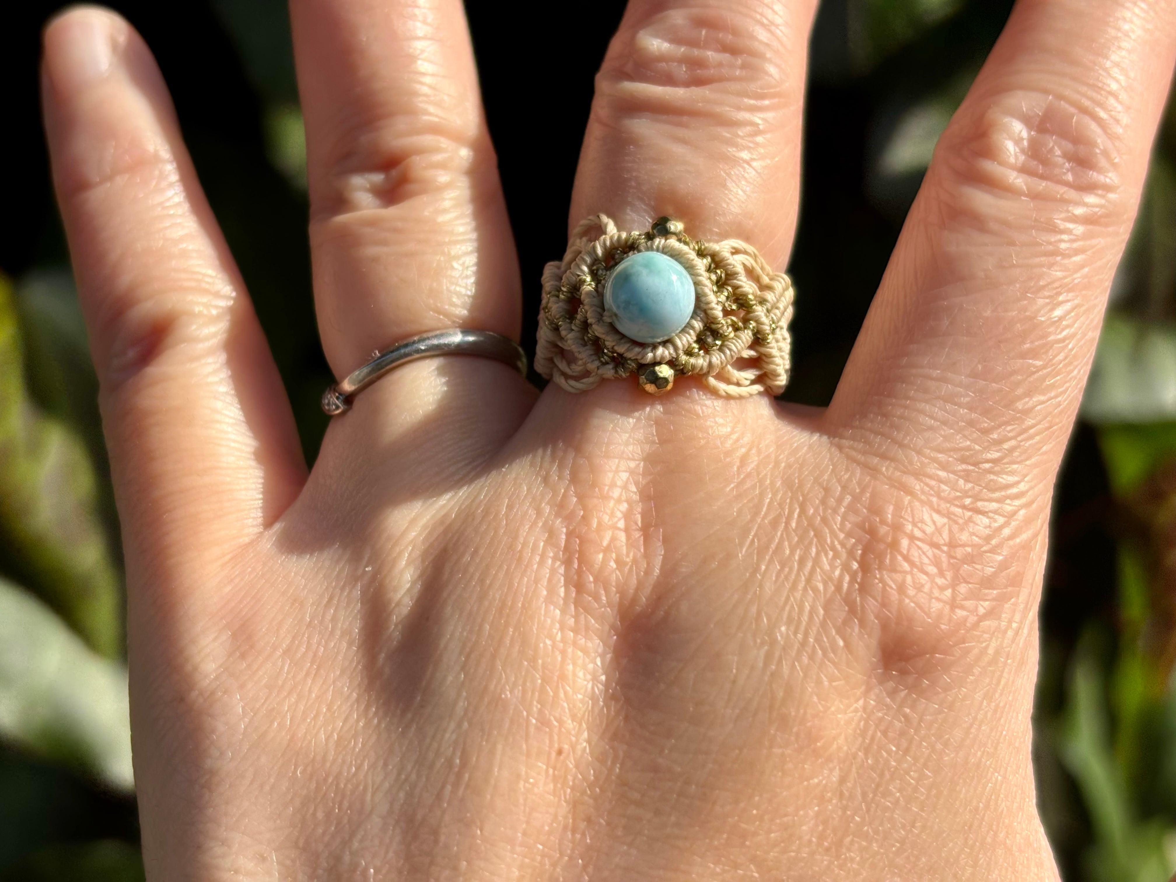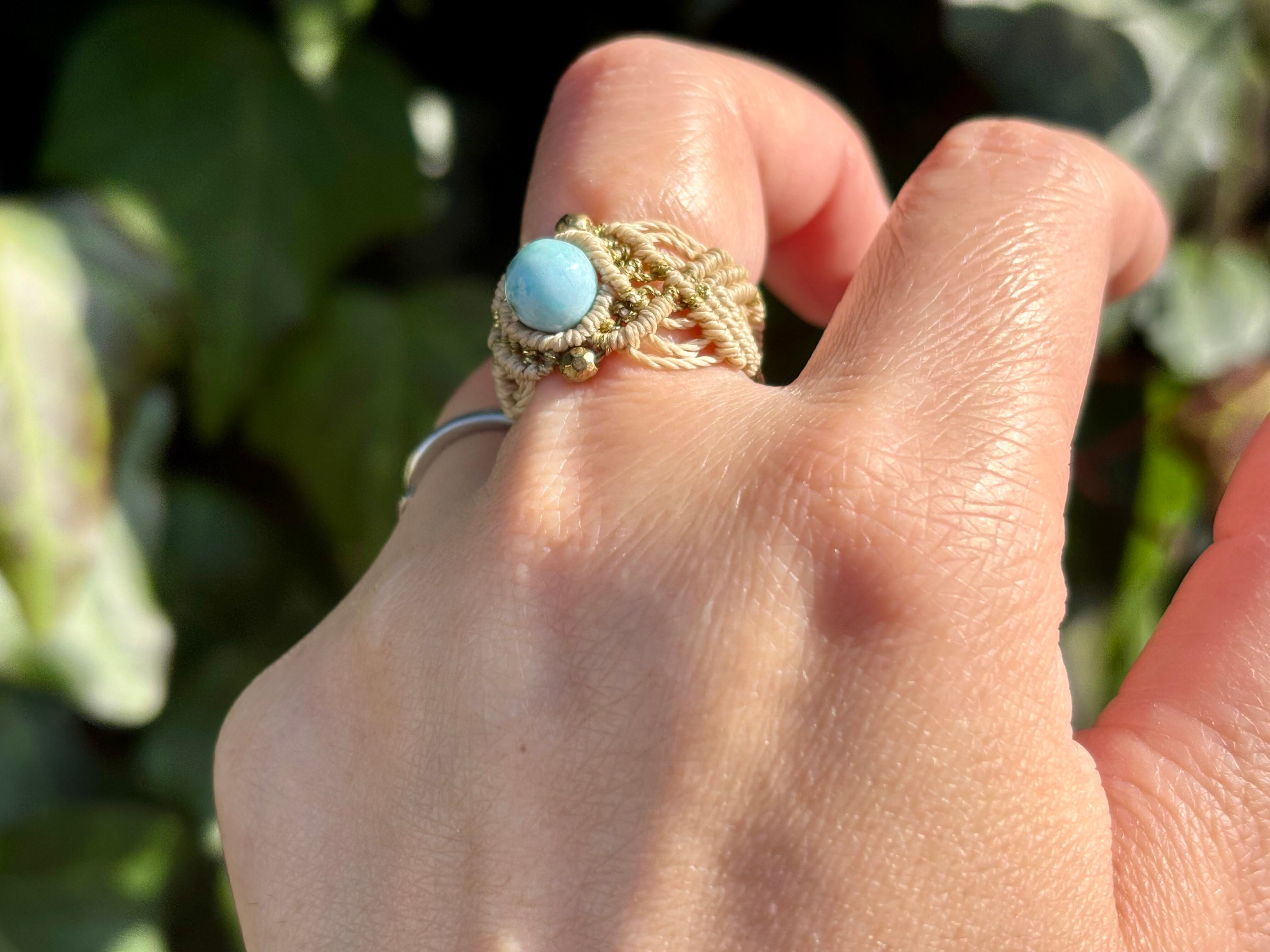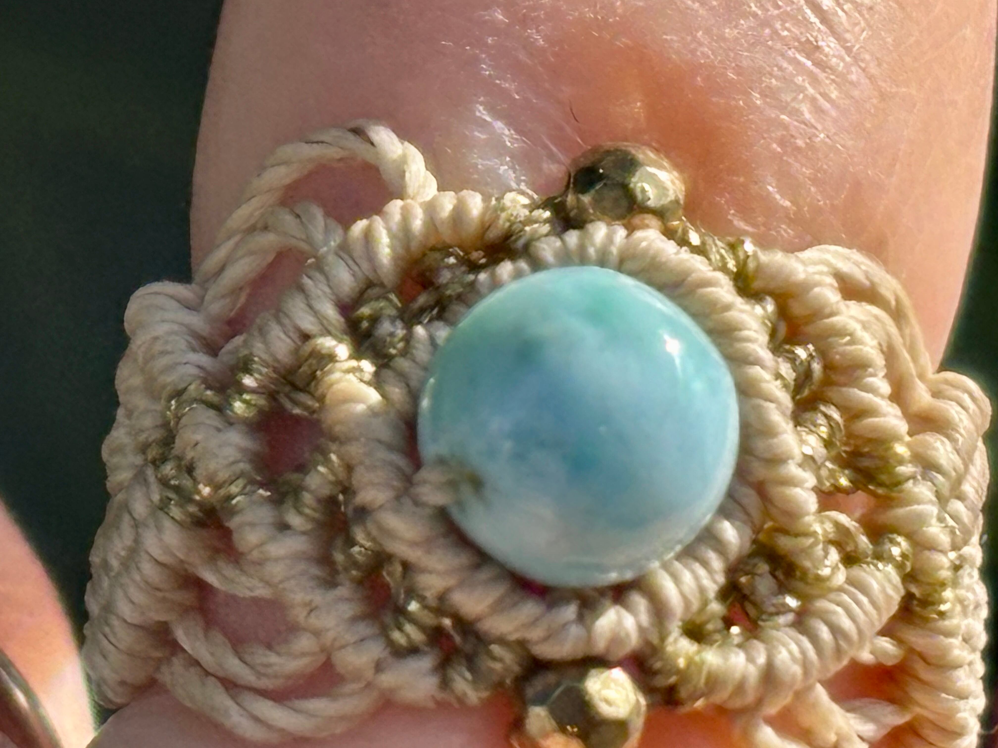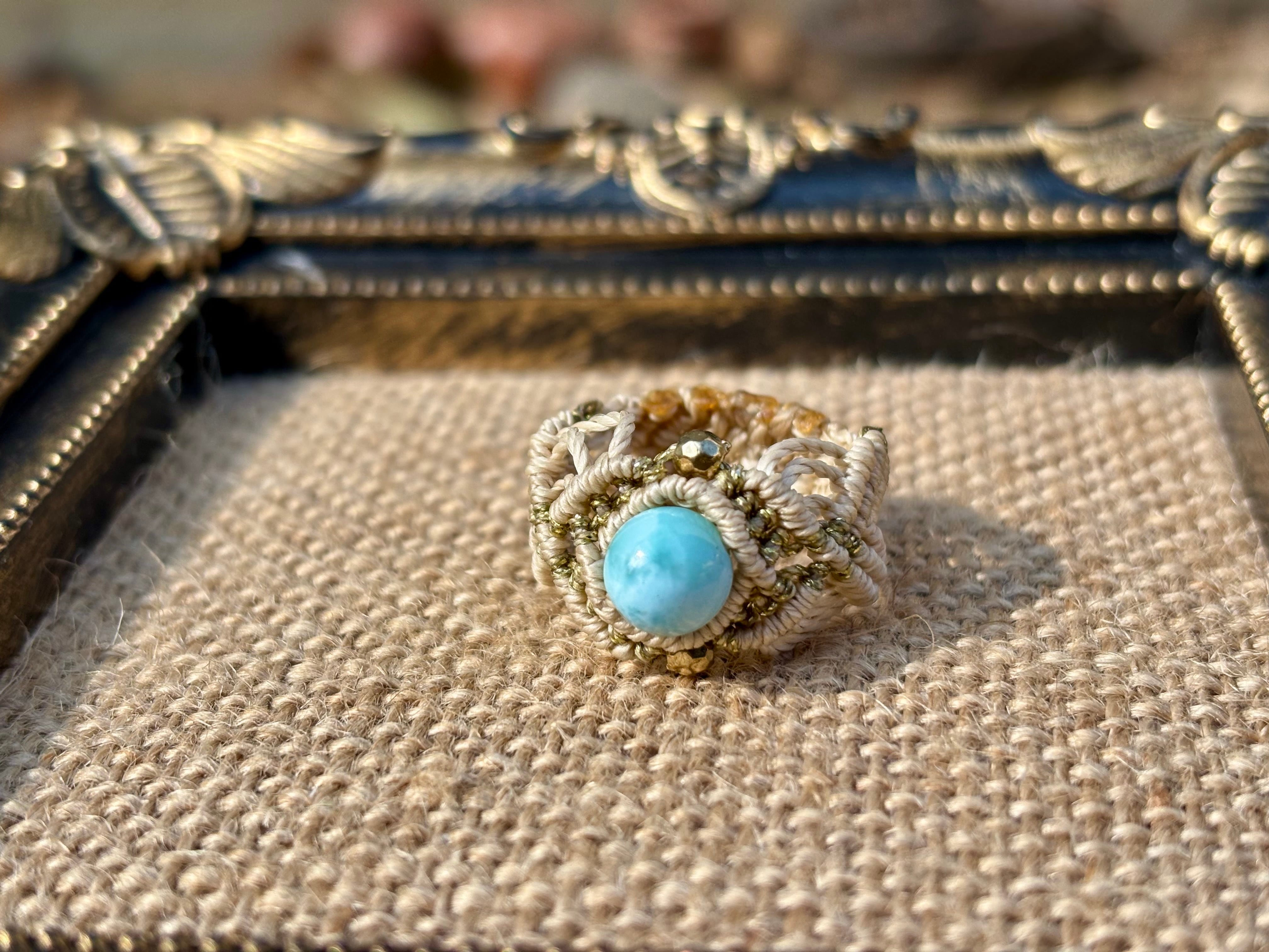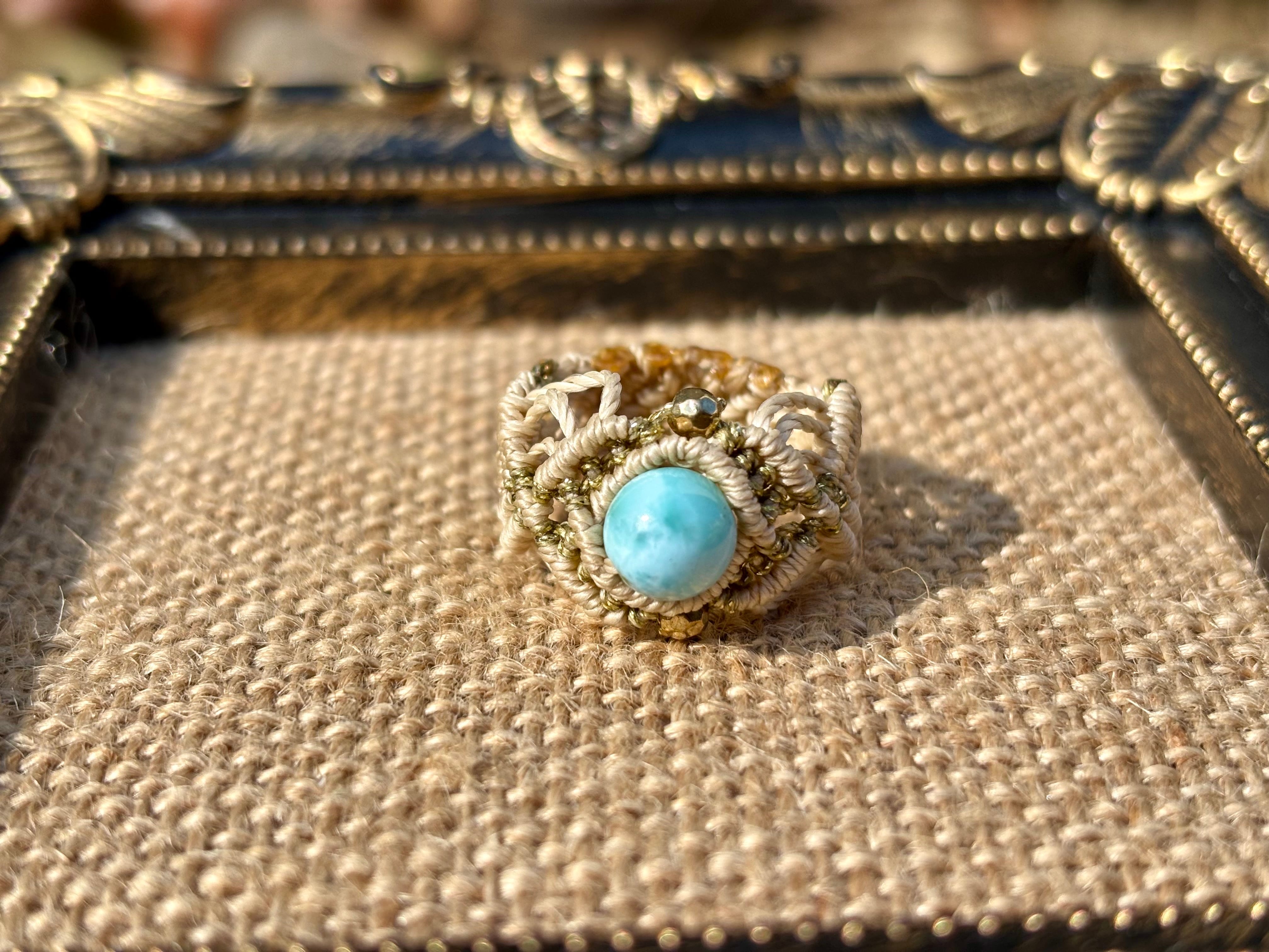 #661 限定1点!! ⭐︎カリブ海の宝石⭐︎一粒ラリマードミニカ共和国産 マクラメ編みリング/指輪