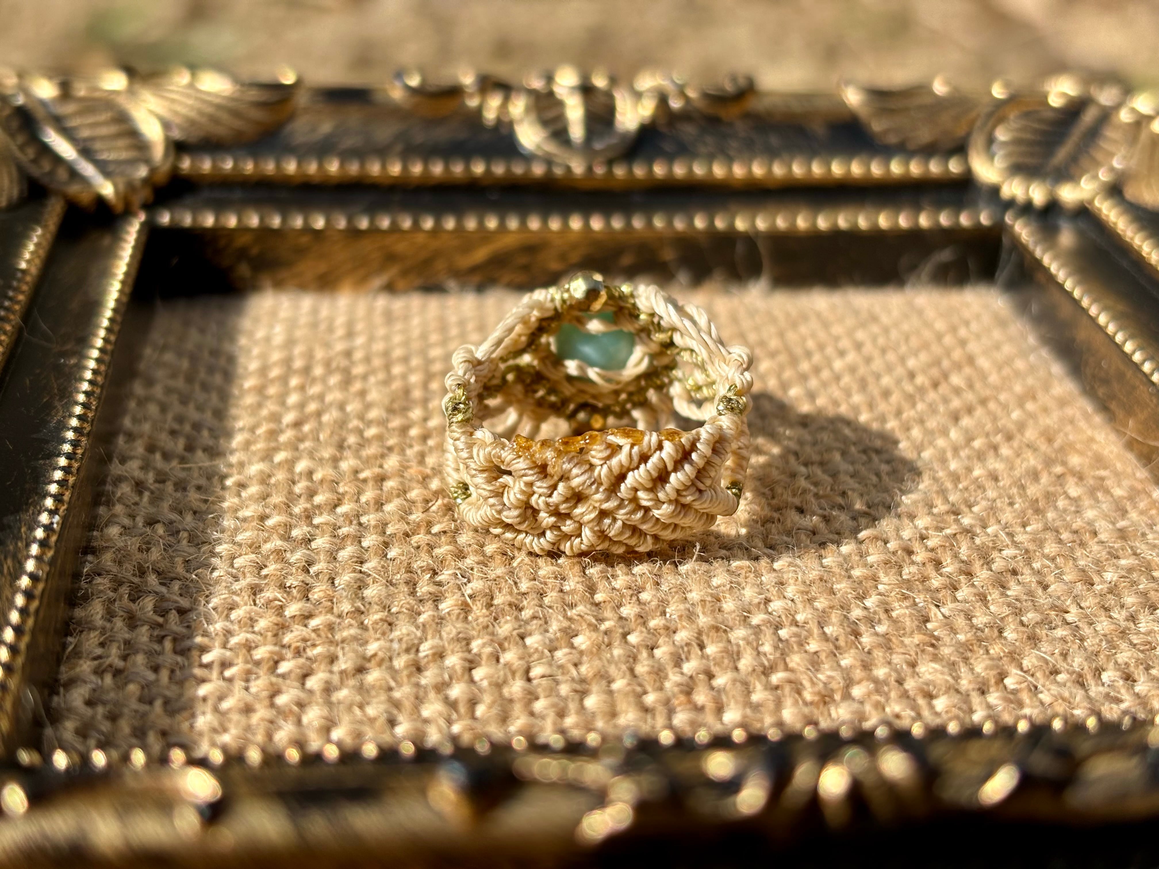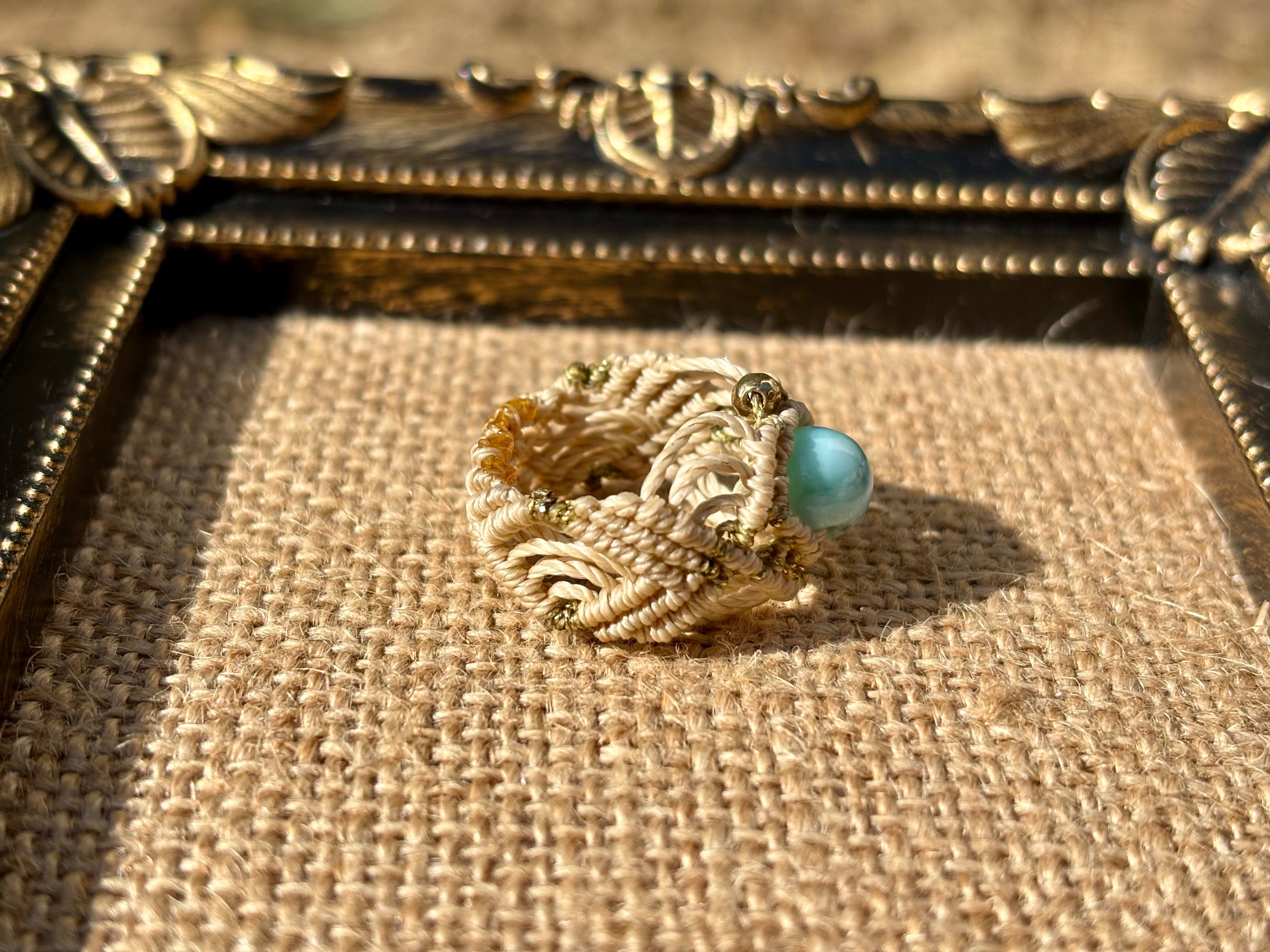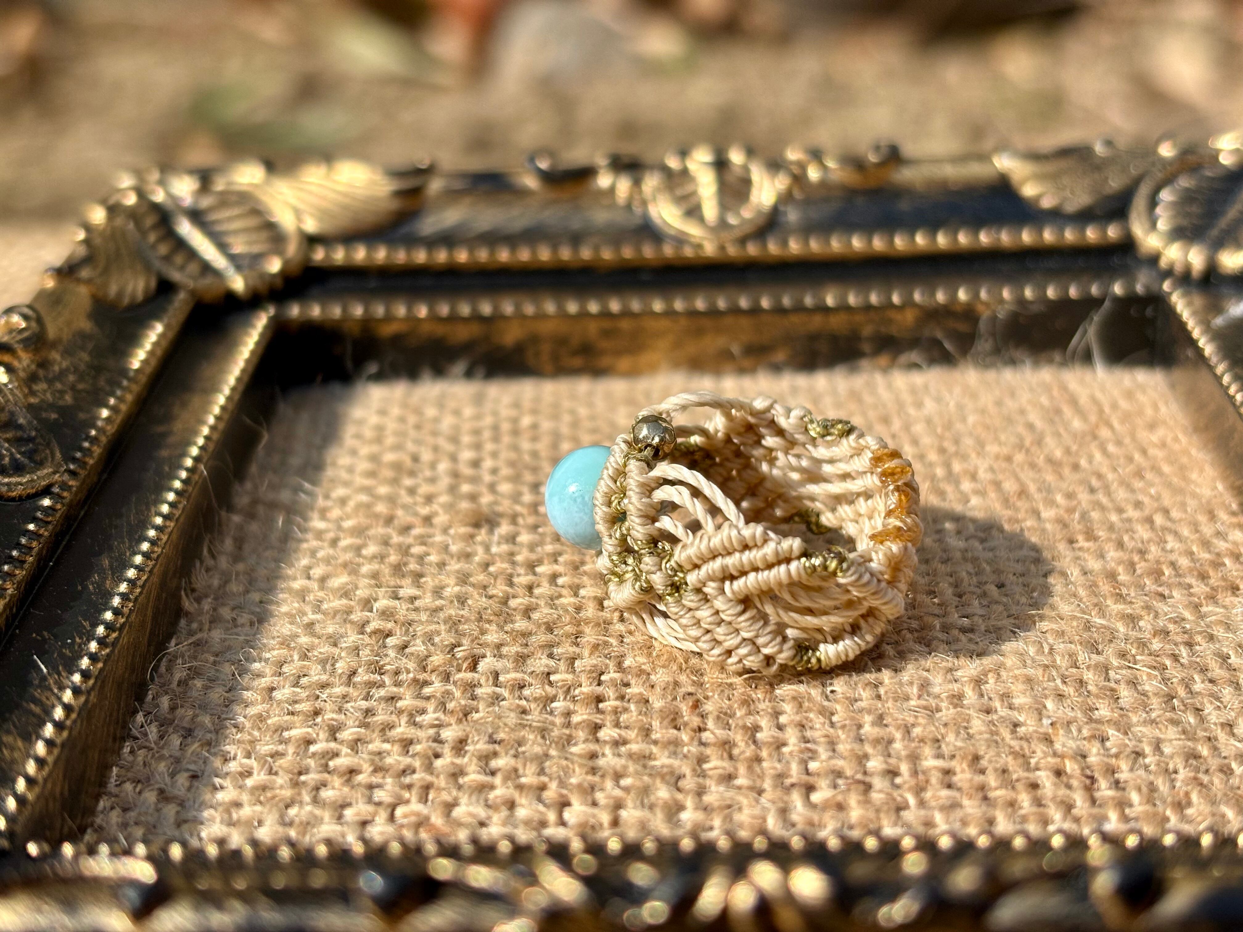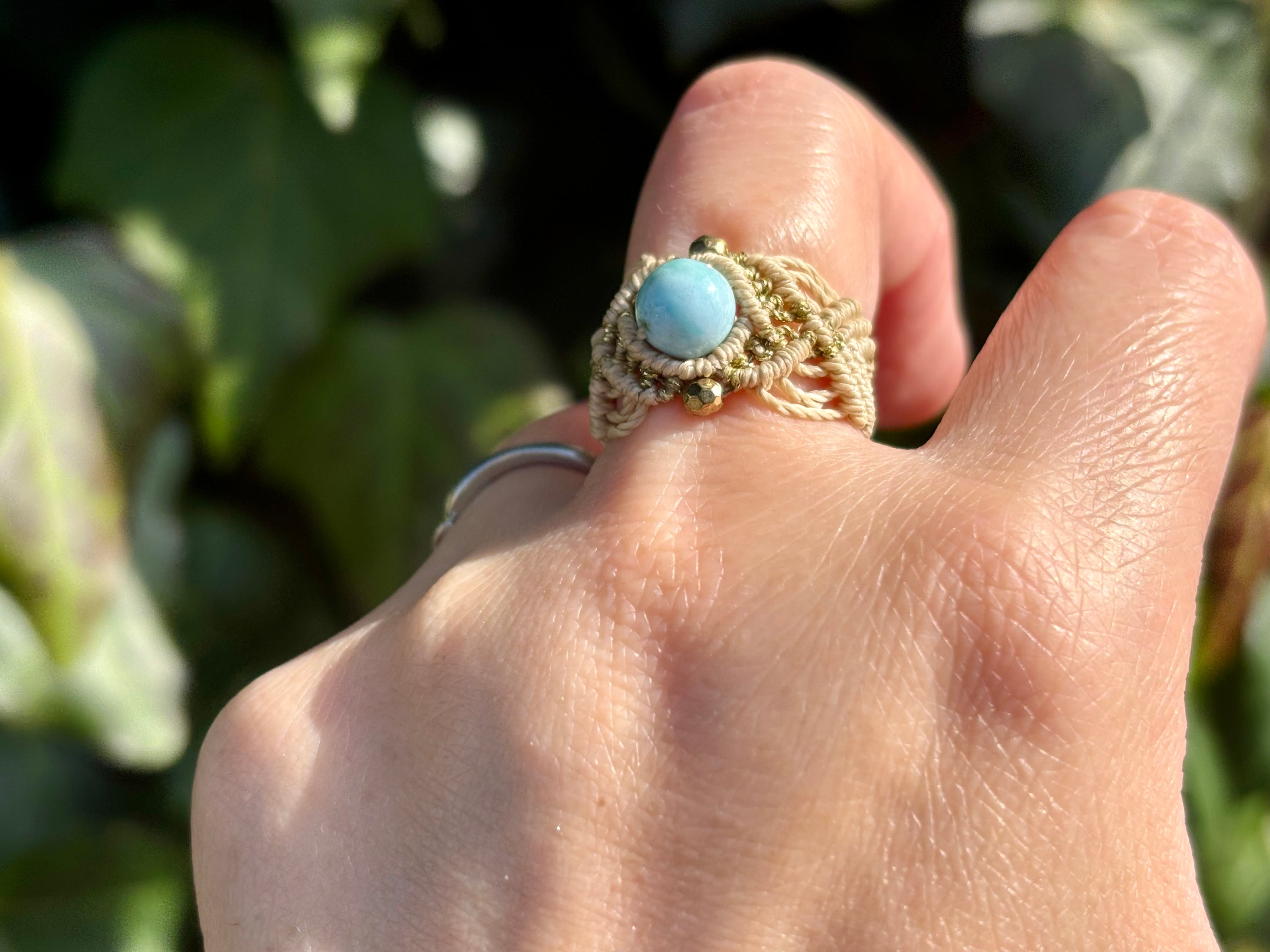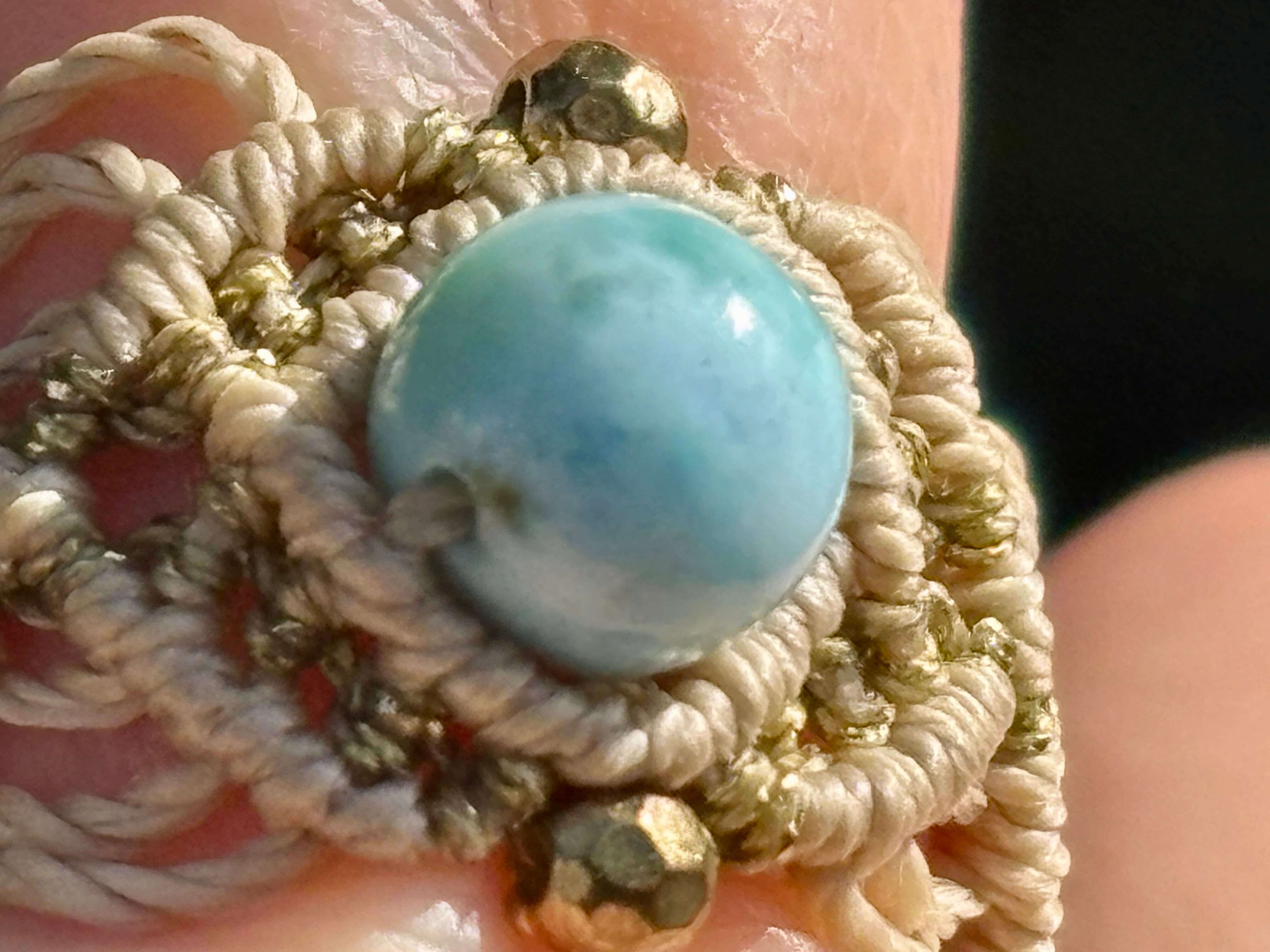 #661 限定1点!! ⭐︎カリブ海の宝石⭐︎一粒ラリマードミニカ共和国産 マクラメ編みリング/指輪