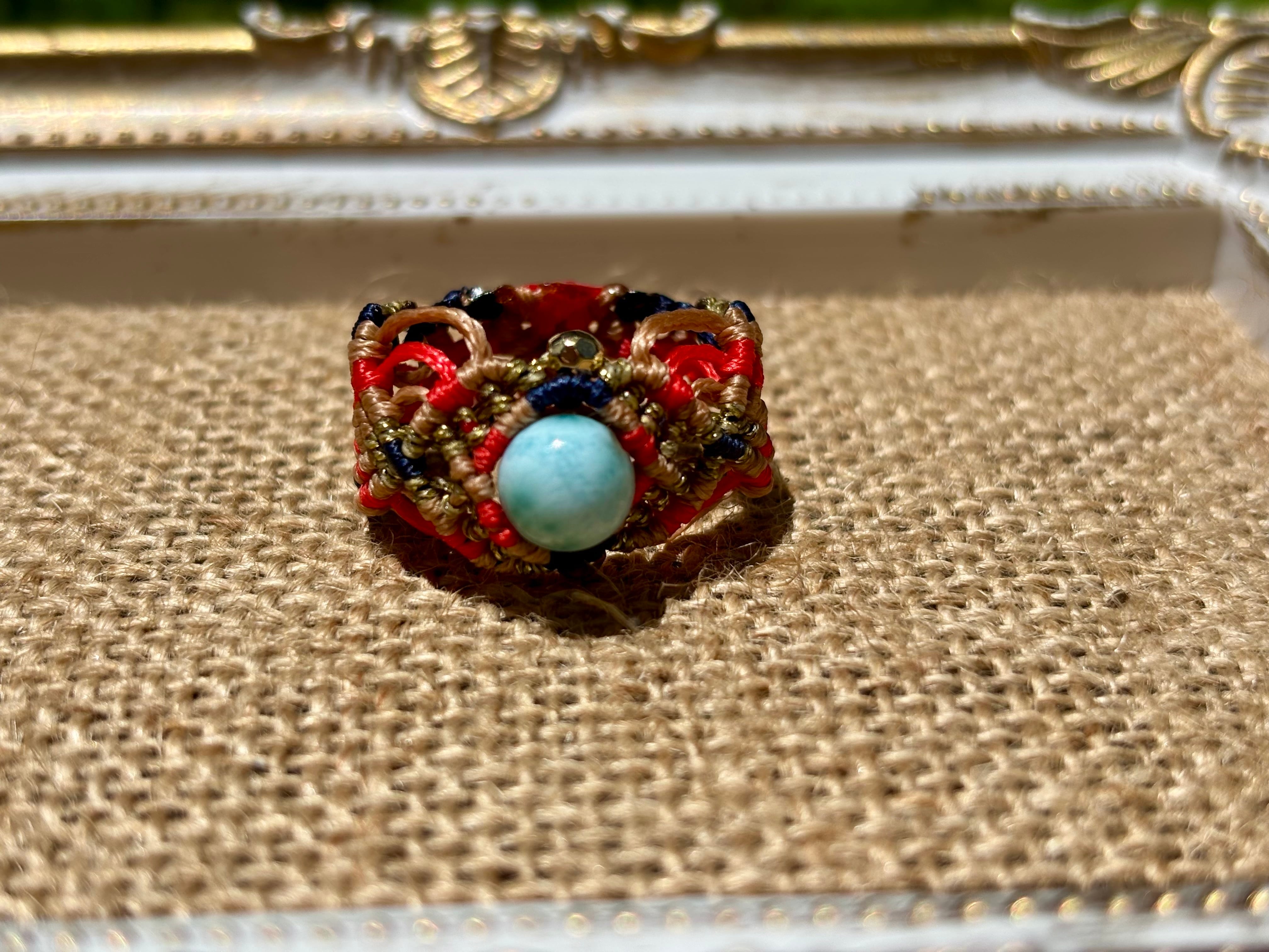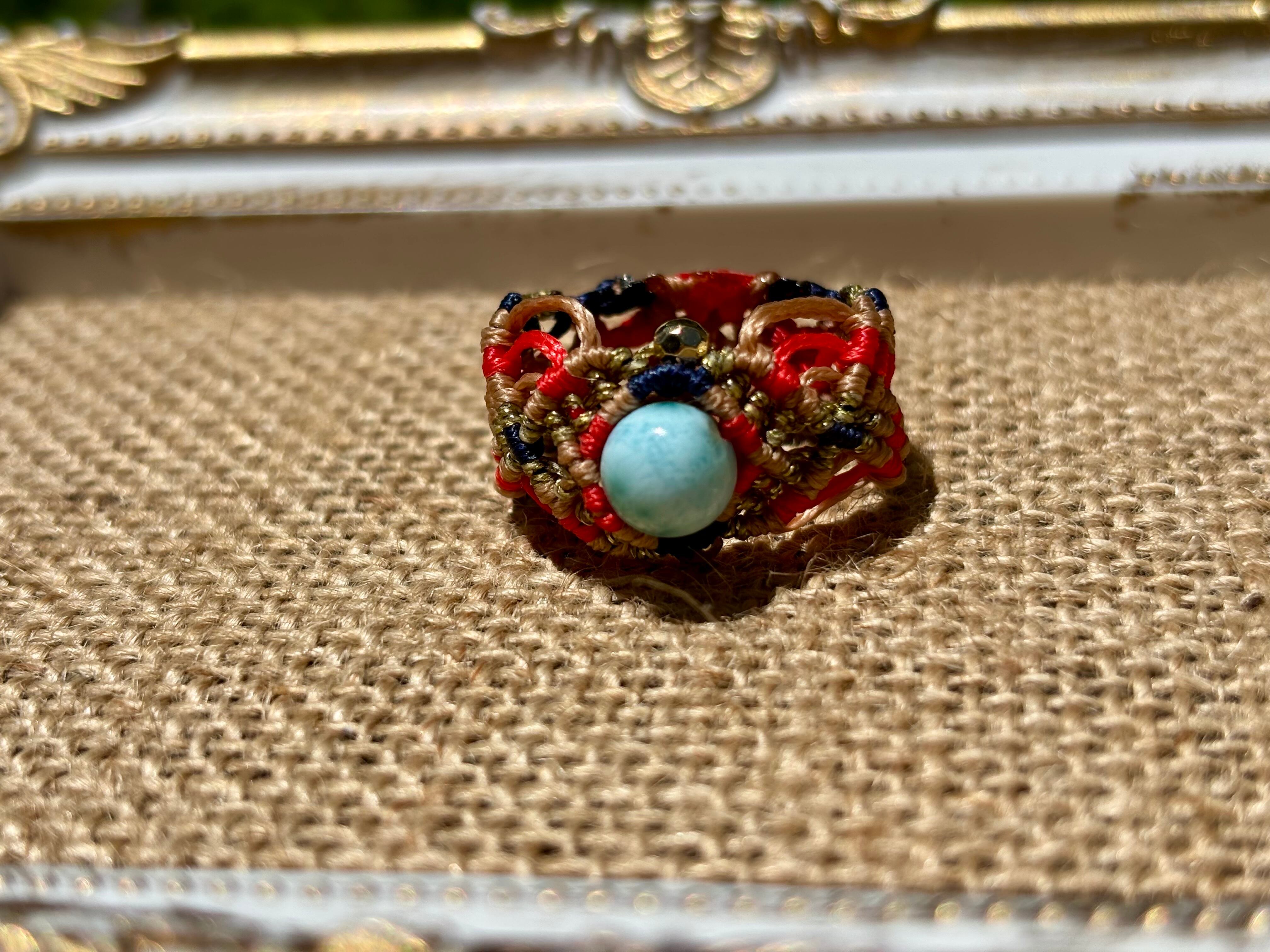 #669 限定1点⭐︎カリブ海の宝石⭐︎一粒ラリマードミニカ共和国産 マクラメ編みリング/指輪