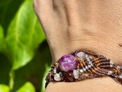さざれ石にはアメジスト、ガーネット、ローズクォーツをあしらい、大人っぽいAyutthayaデザインのブレスレット。