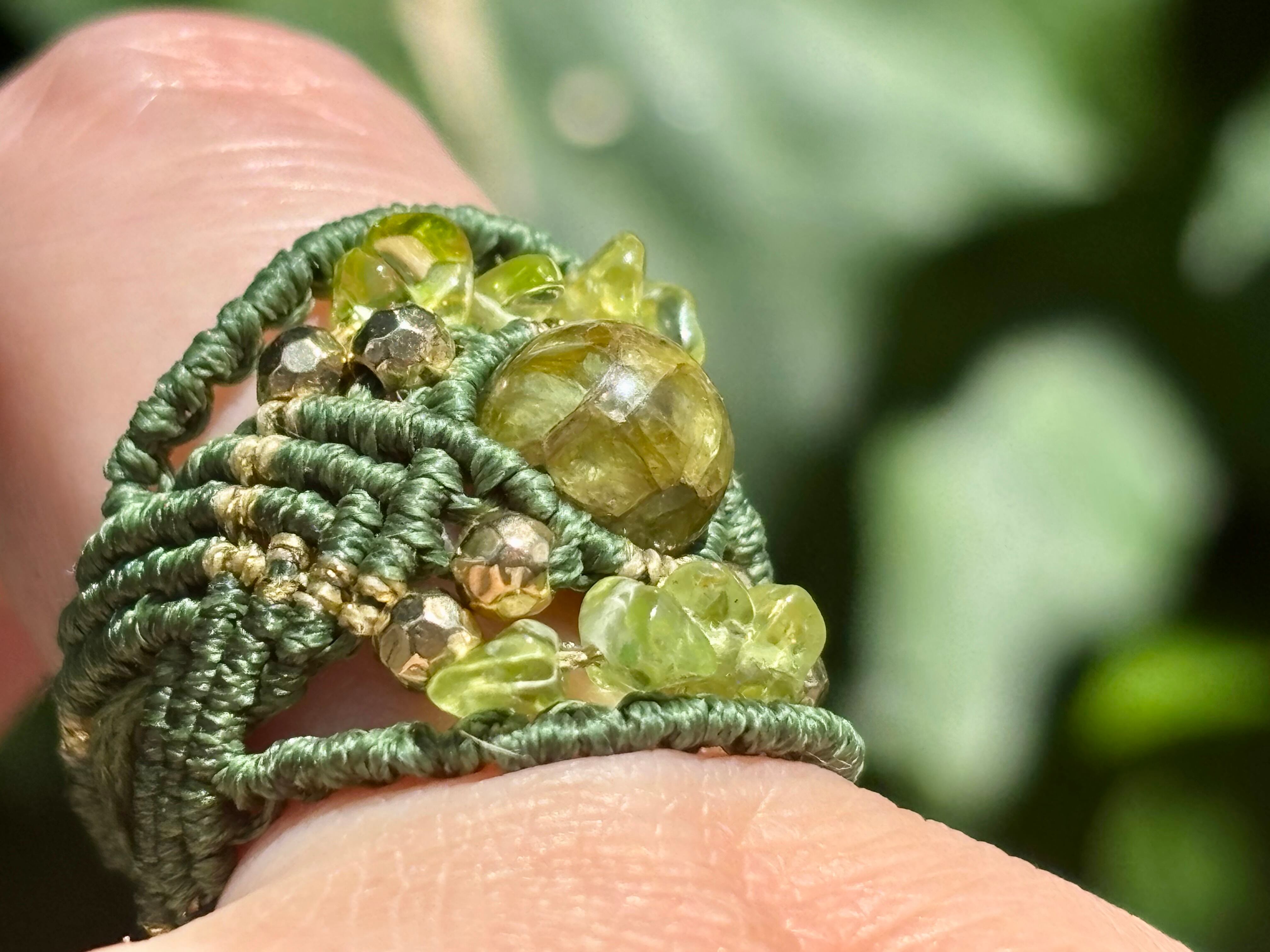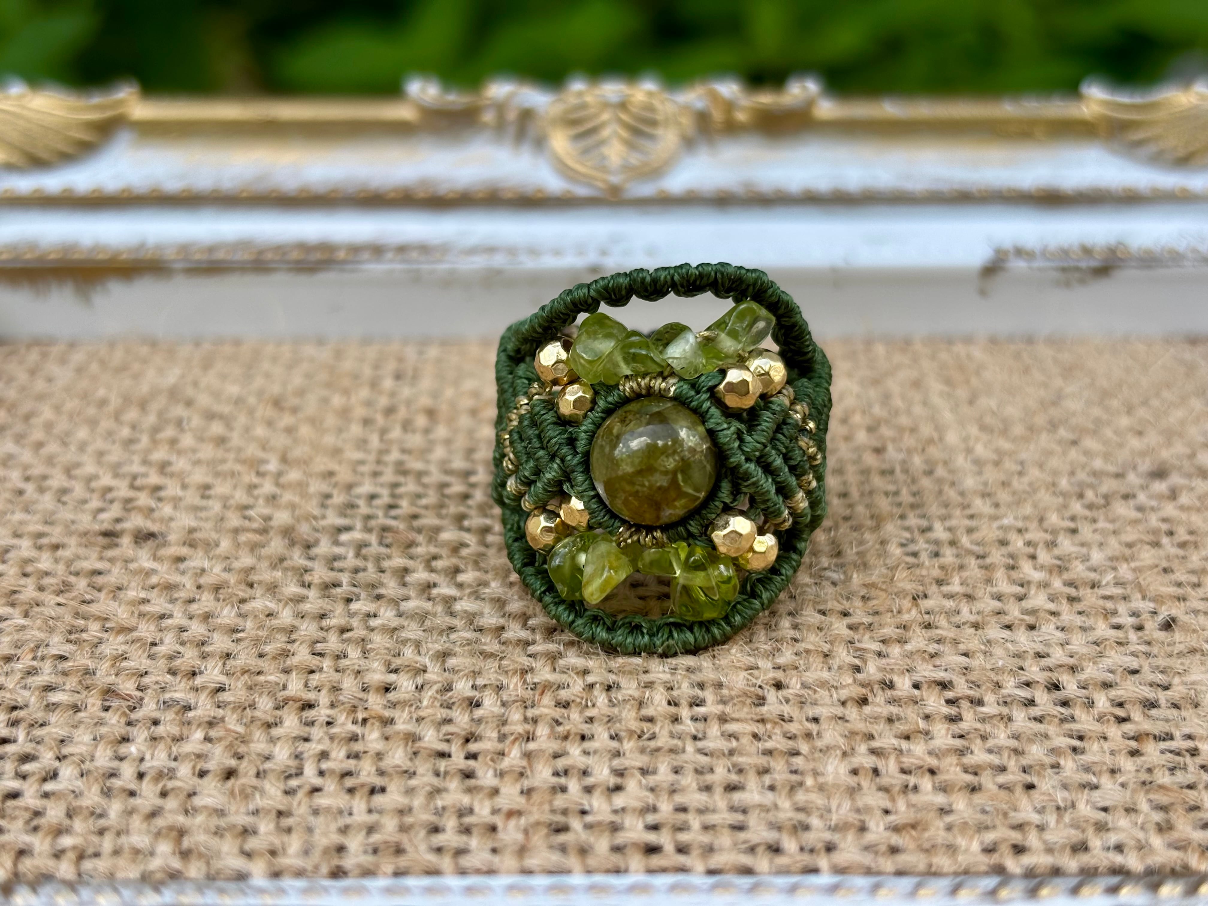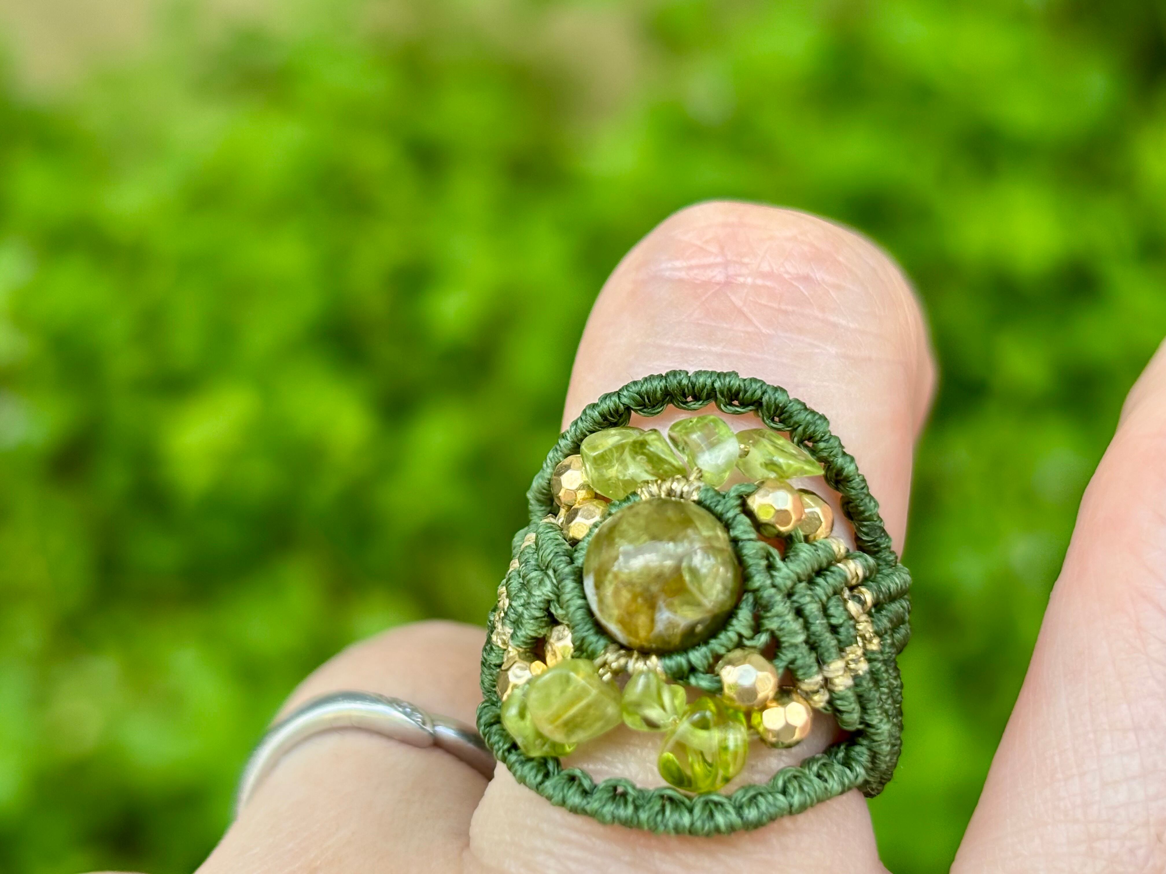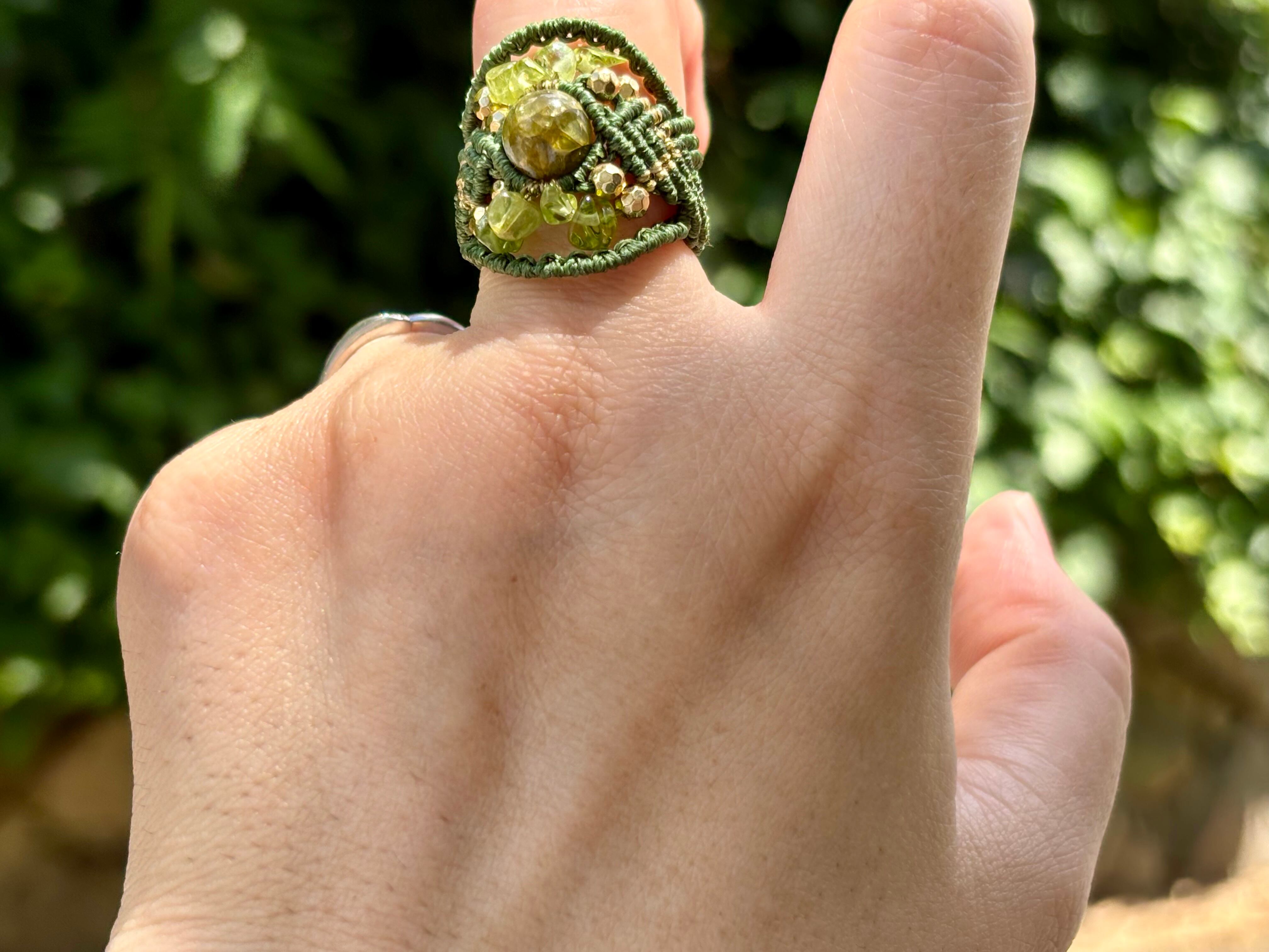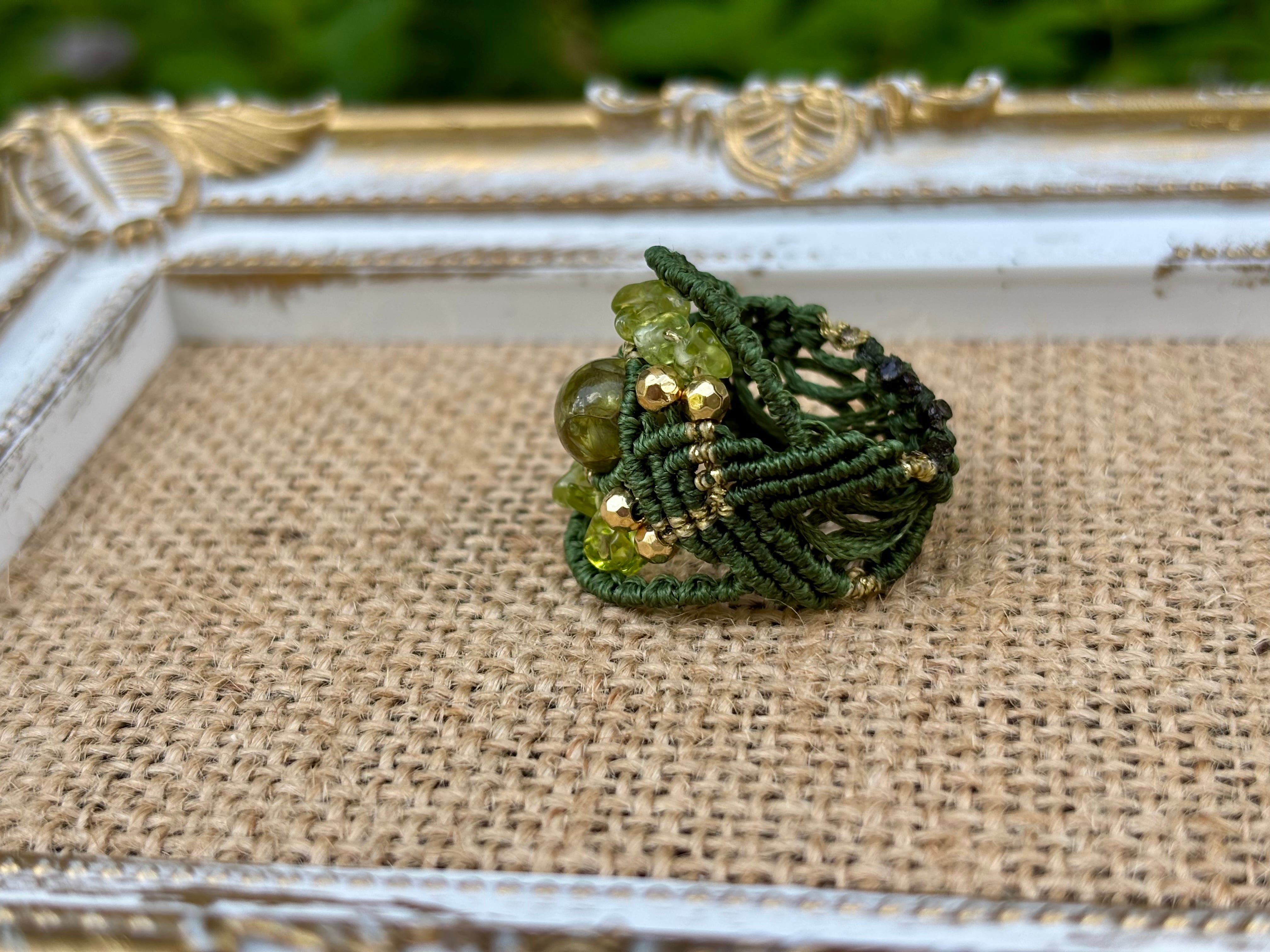#717希少な高品質ペリドット3A(ペリドット・ミャンマー産 マクラメ編みリング/指輪)