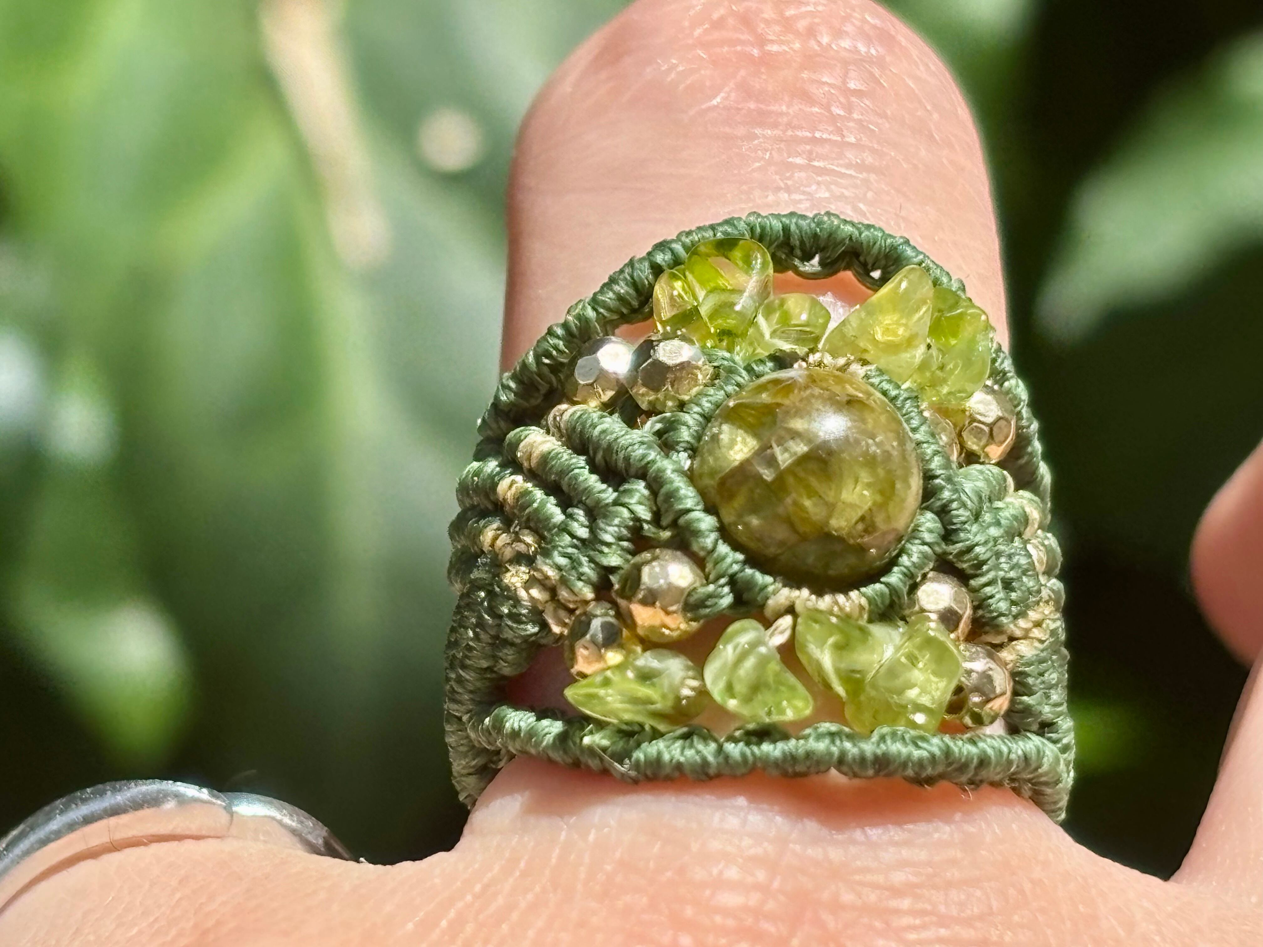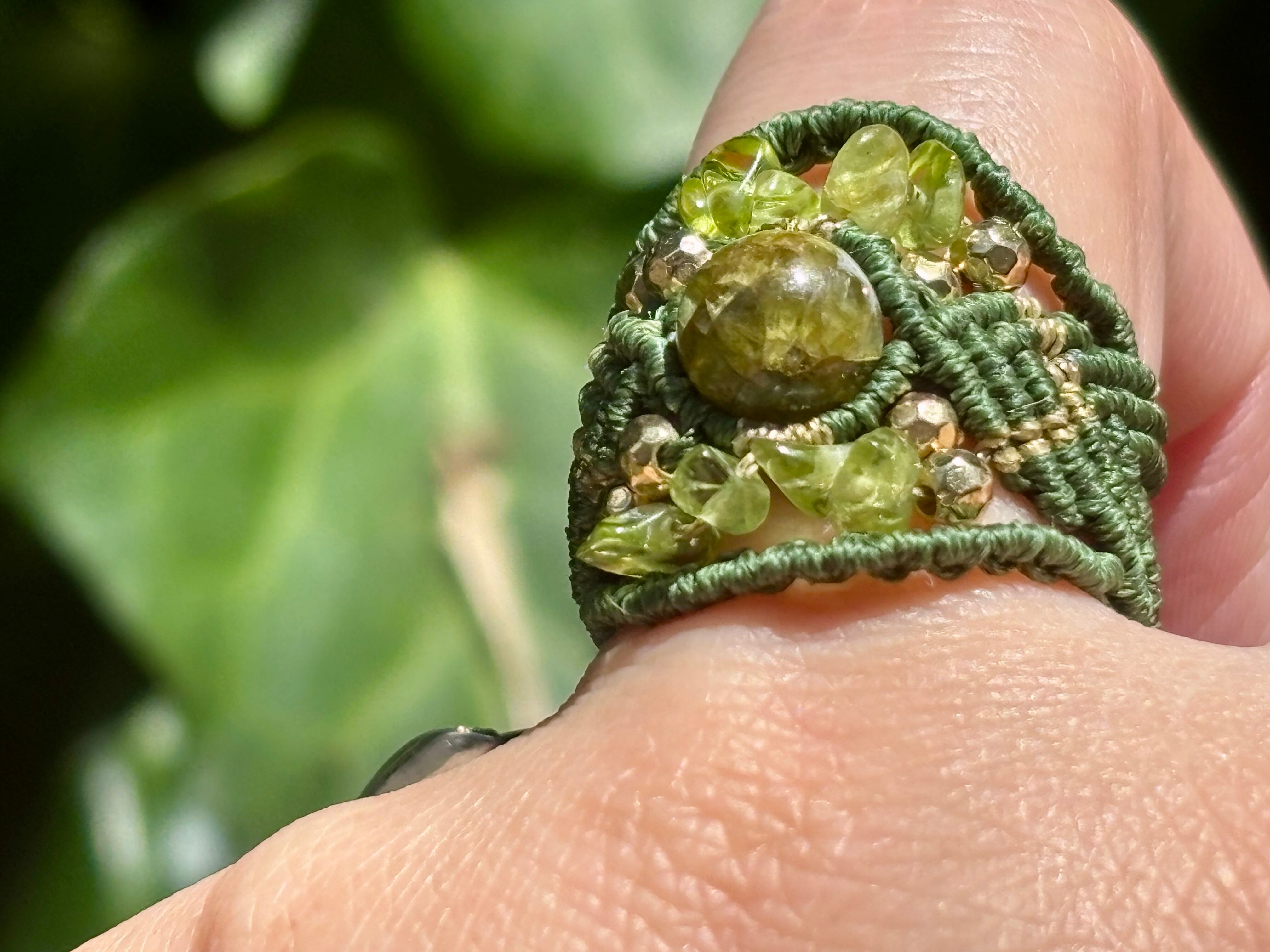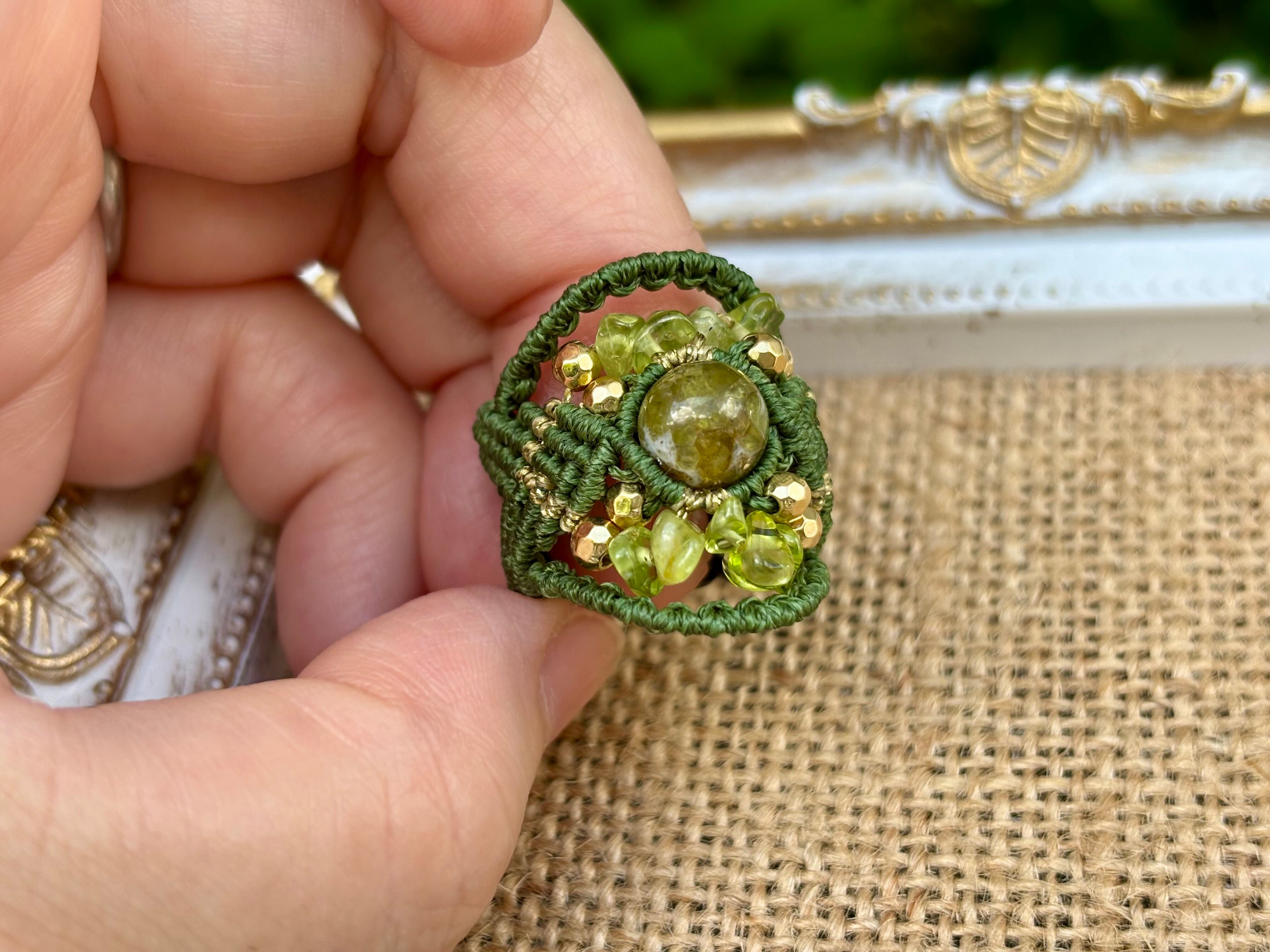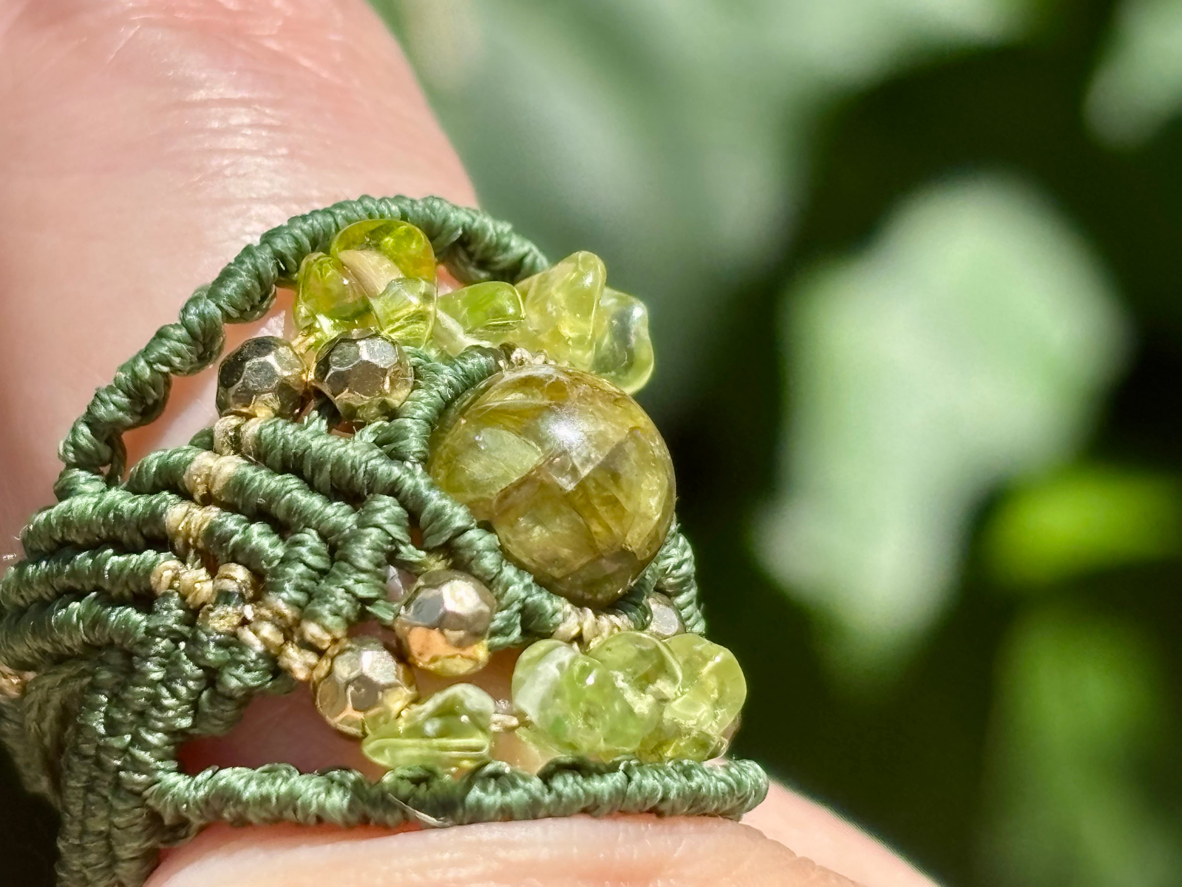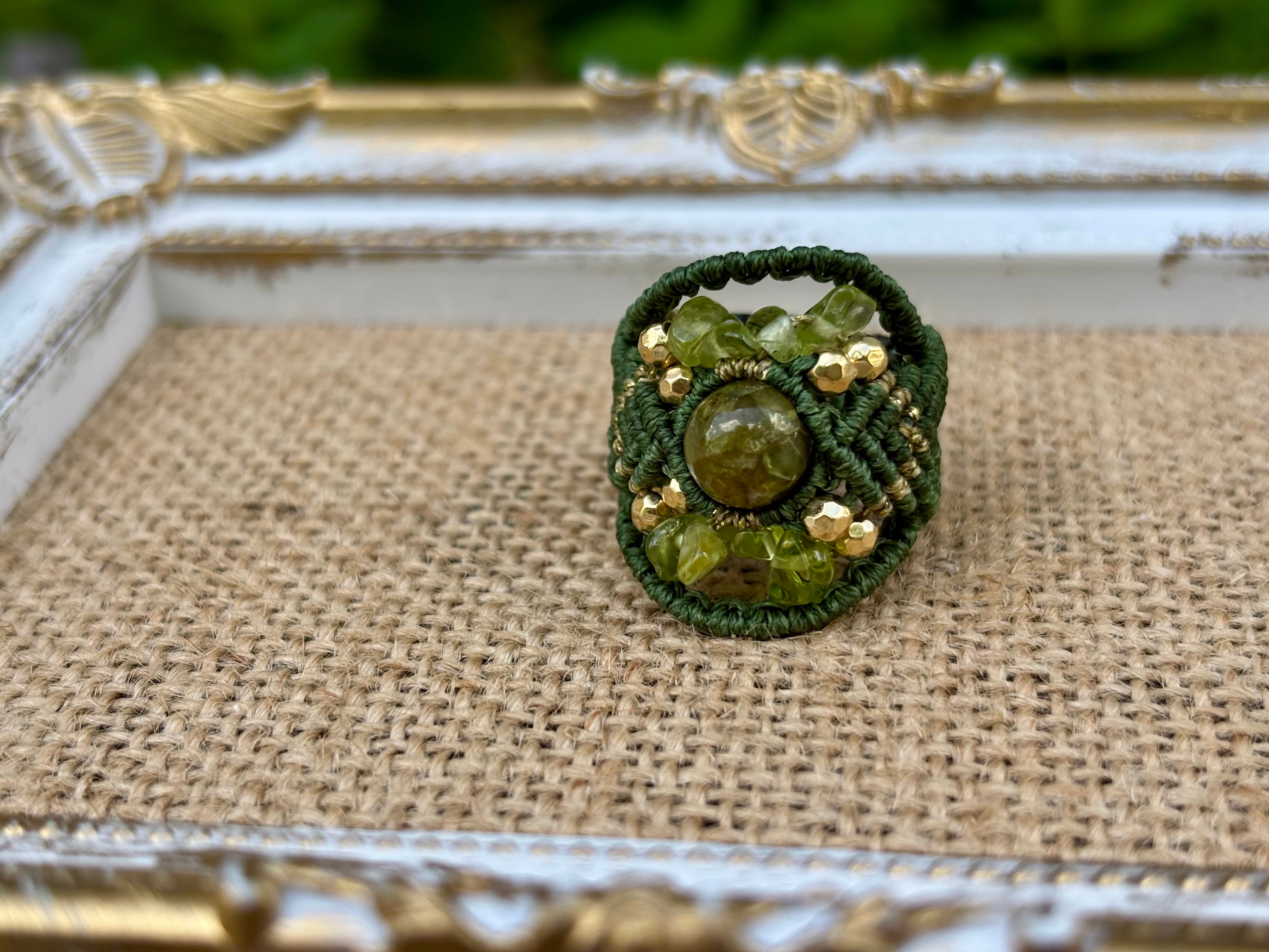 #717希少な高品質ペリドット3A(ペリドット・ミャンマー産 マクラメ編みリング/指輪)