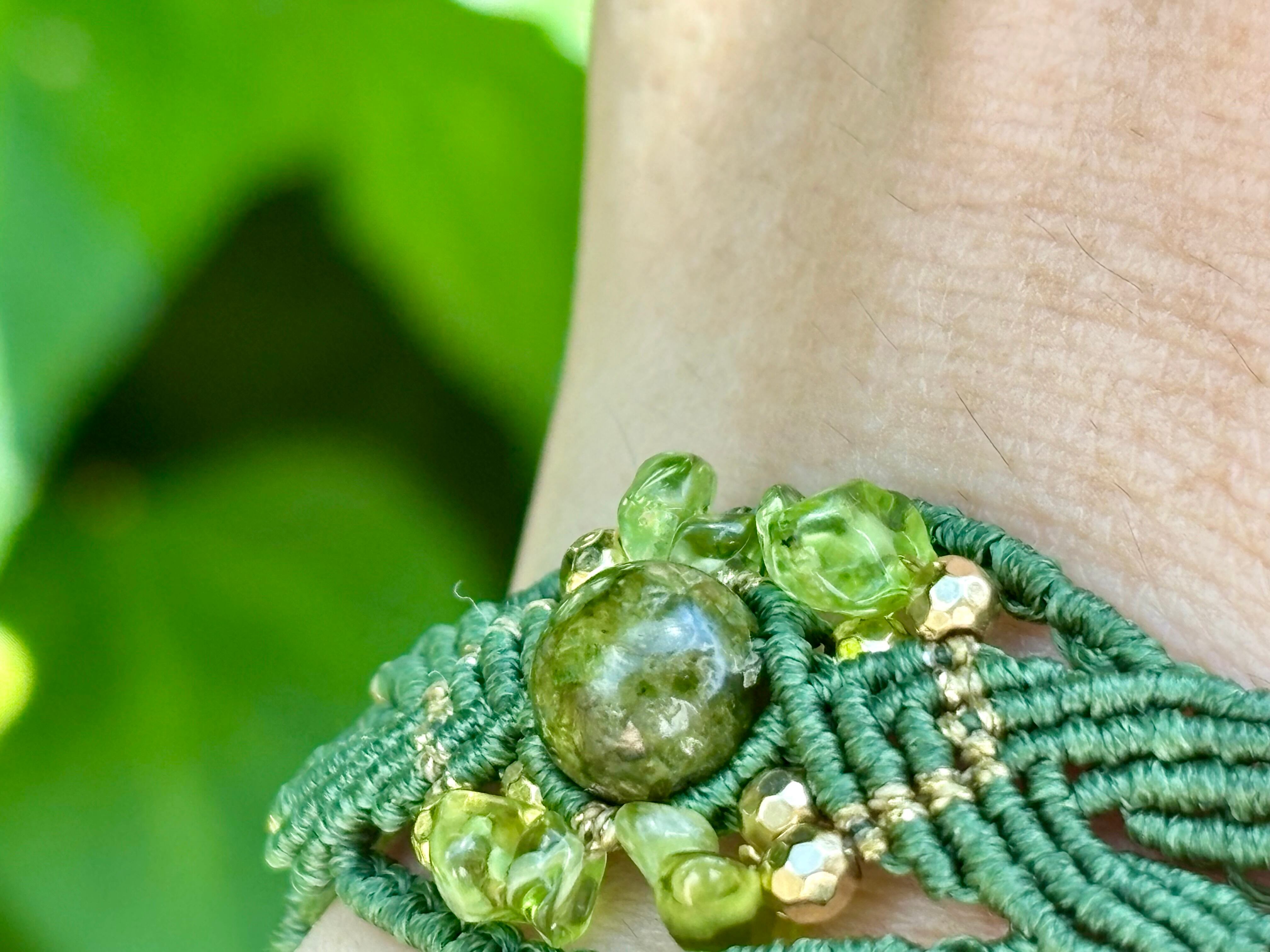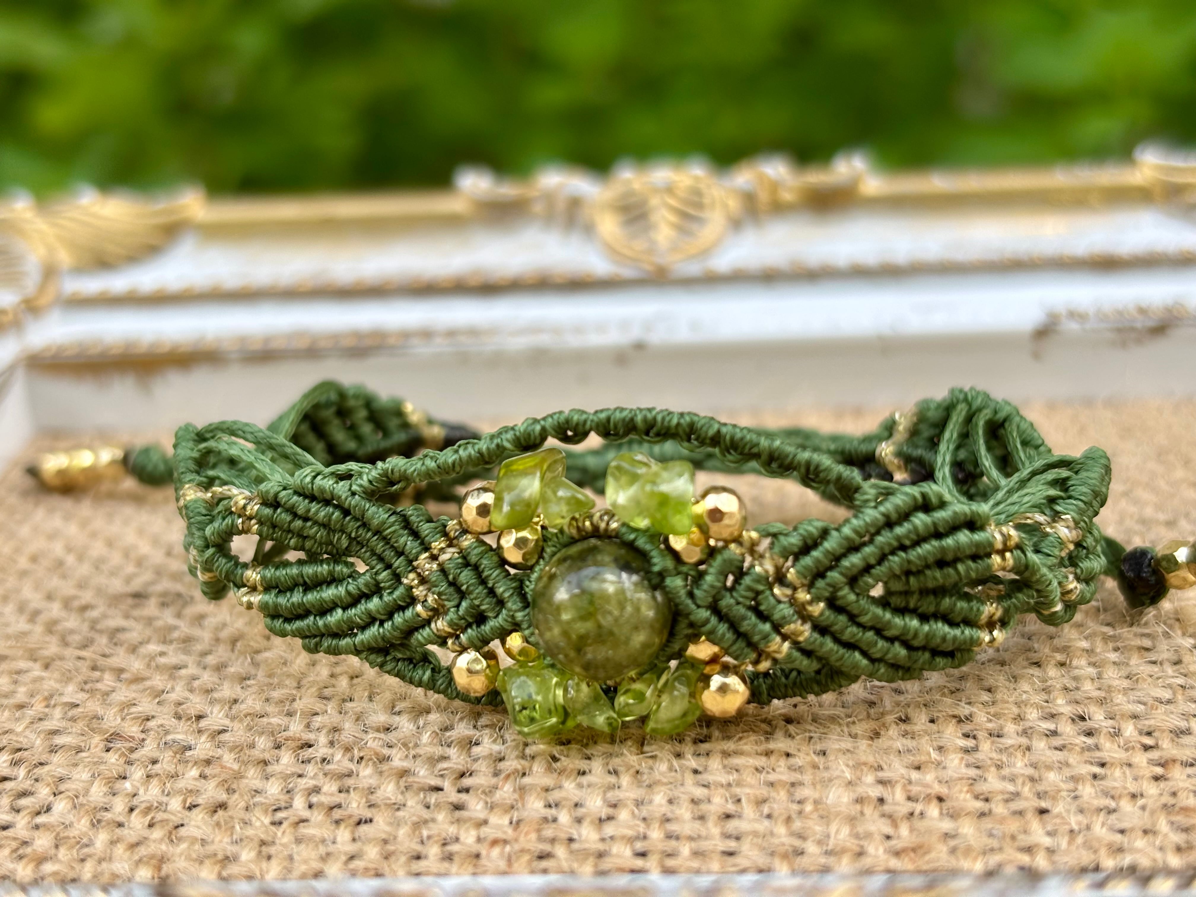 #718希少な高品質ペリドット3A(ペリドット・ミャンマー産 マクラメ編みブレスレット)