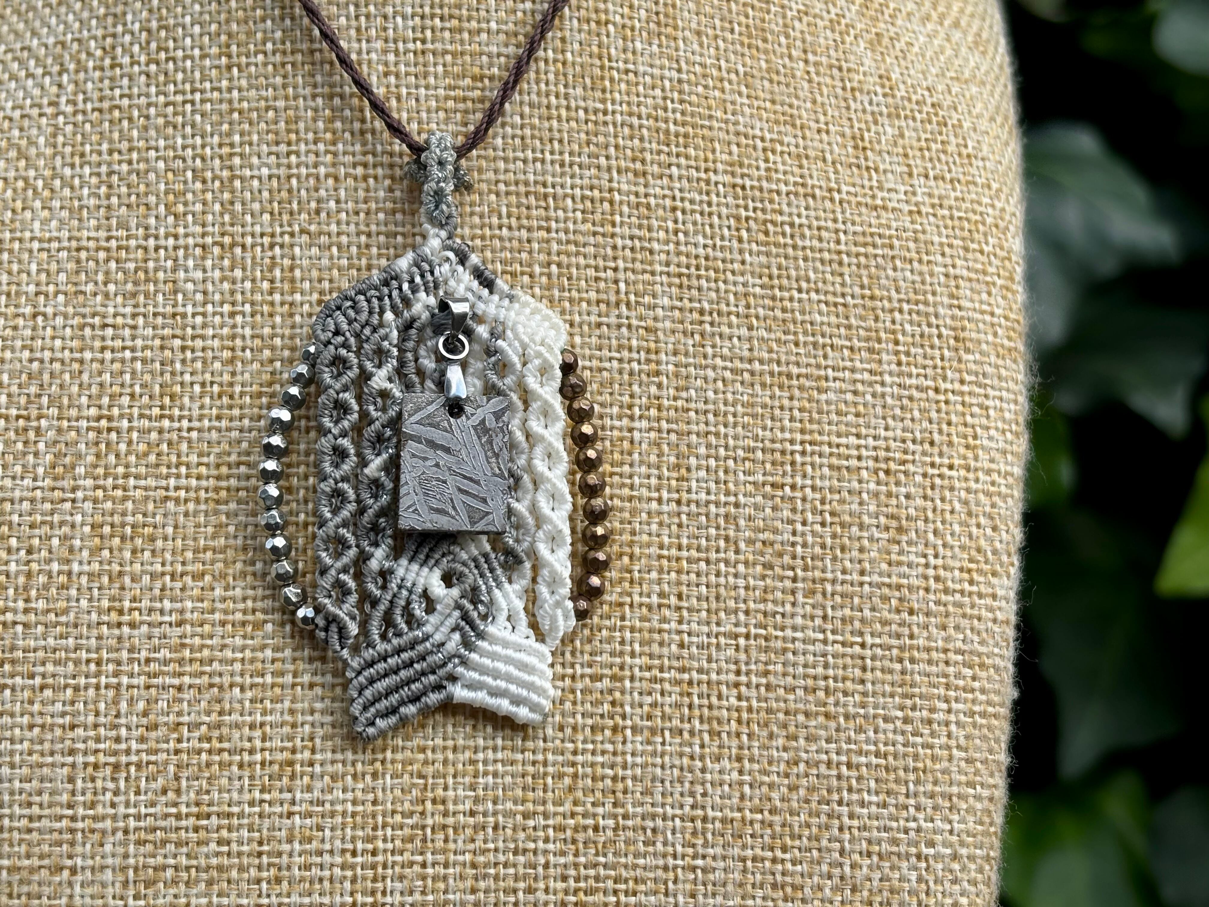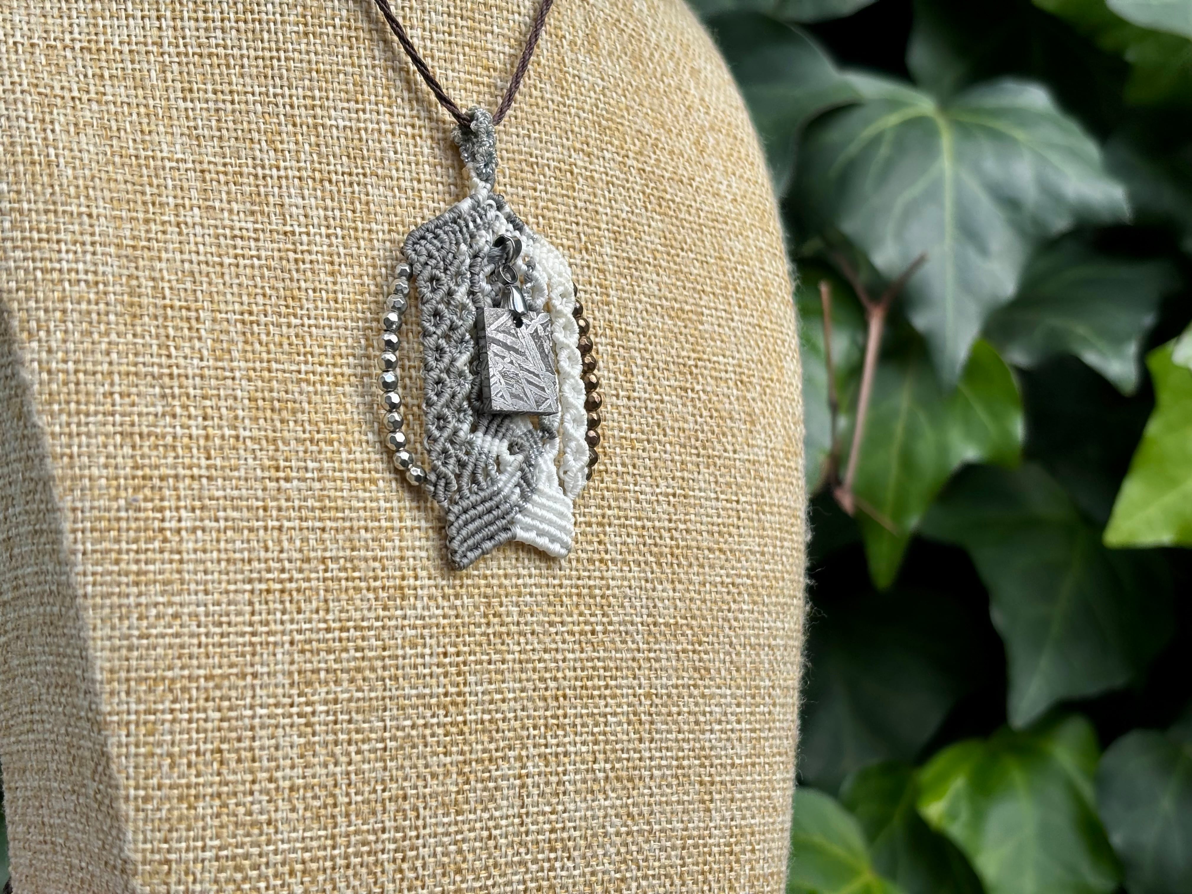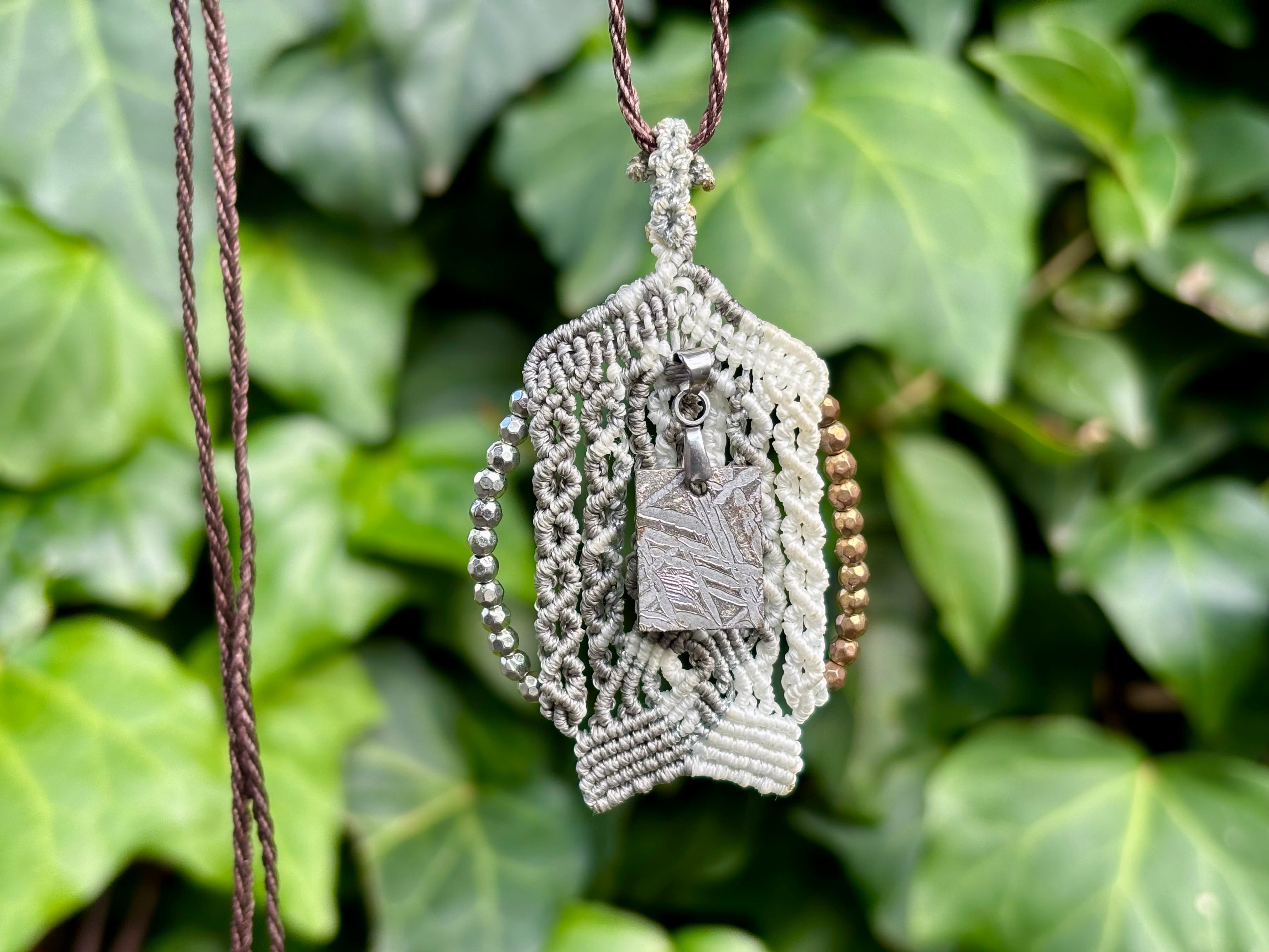 #724再販限定1点!!隕石!メテオライト(メテオライト×北投石 マクラメ編みネックレス)