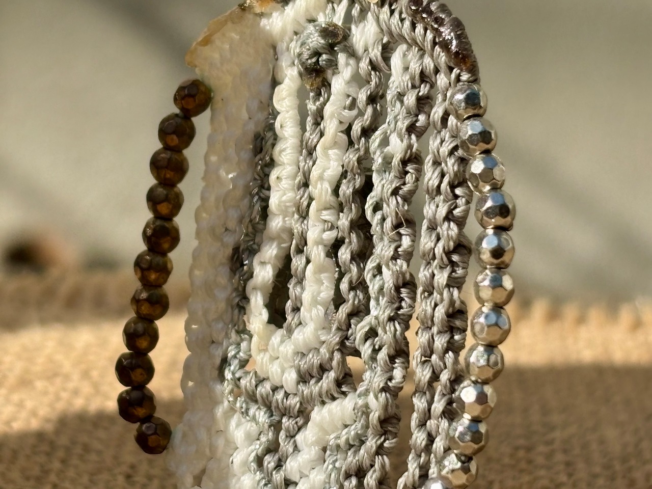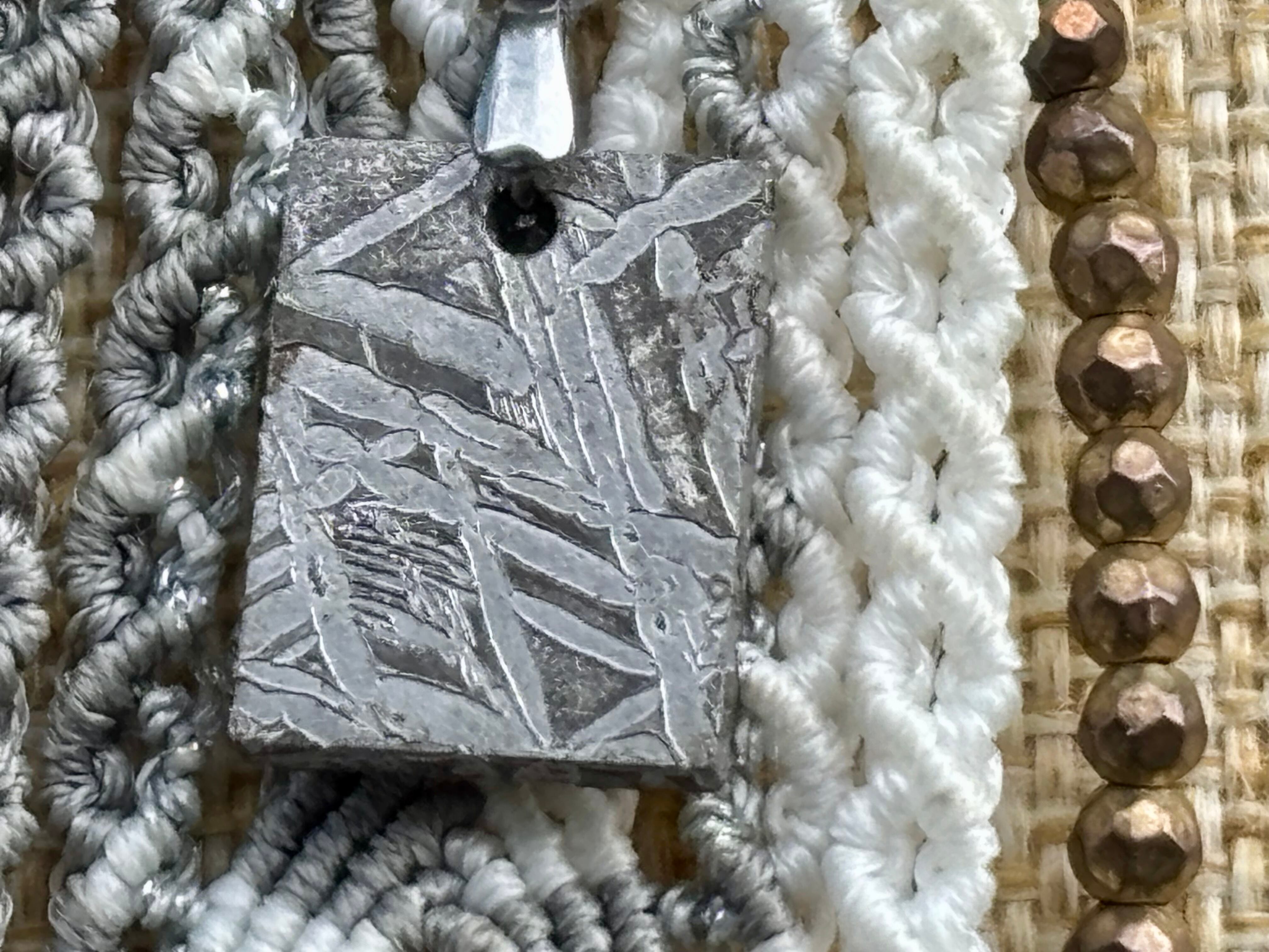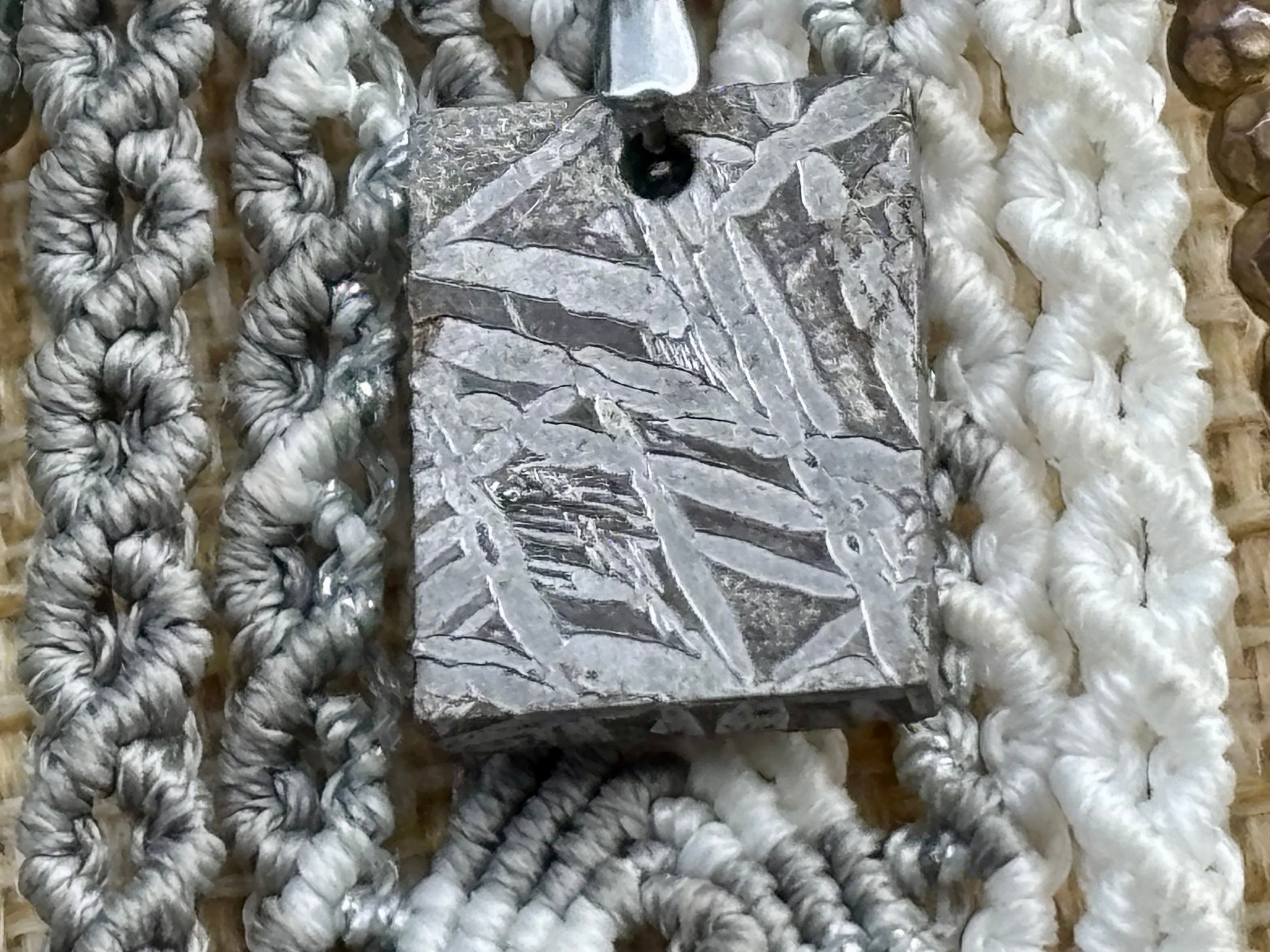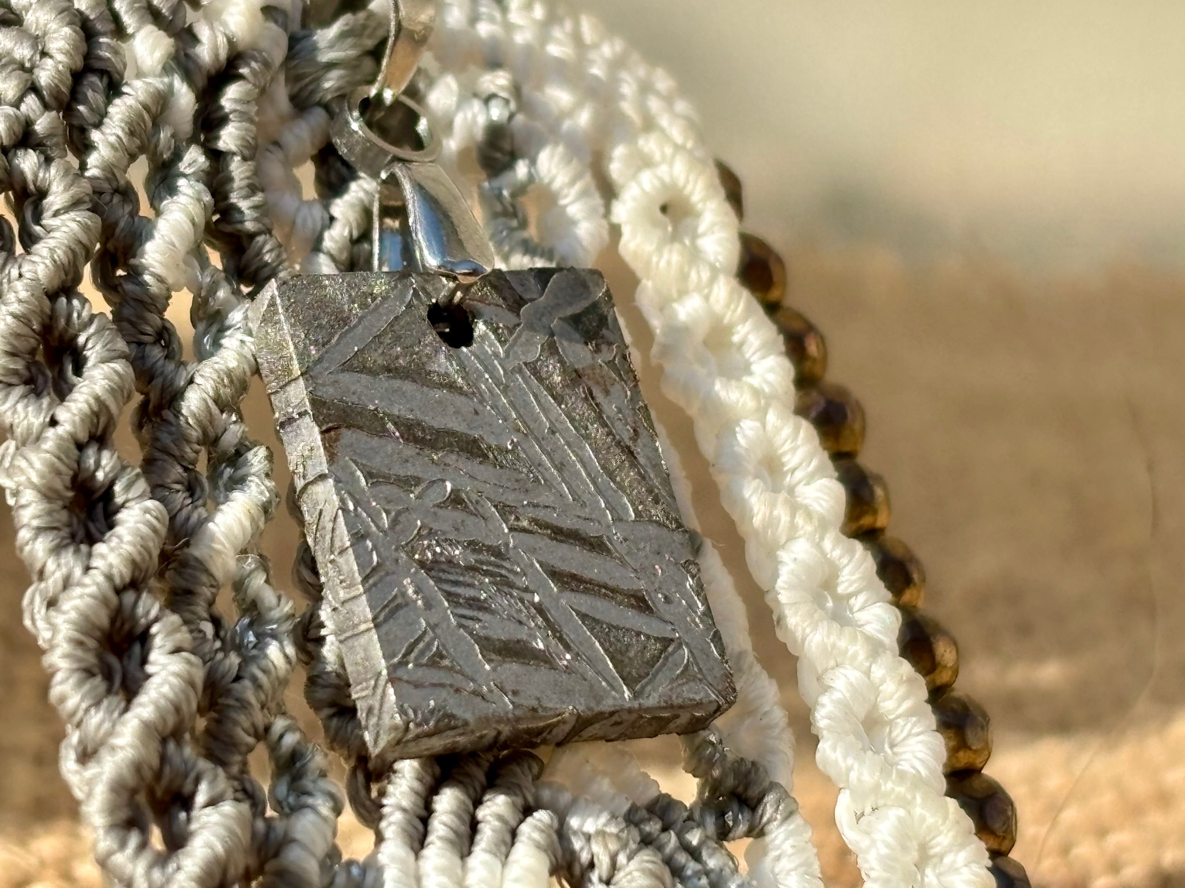 #724再販限定1点!!隕石!メテオライト(メテオライト×北投石 マクラメ編みネックレス)