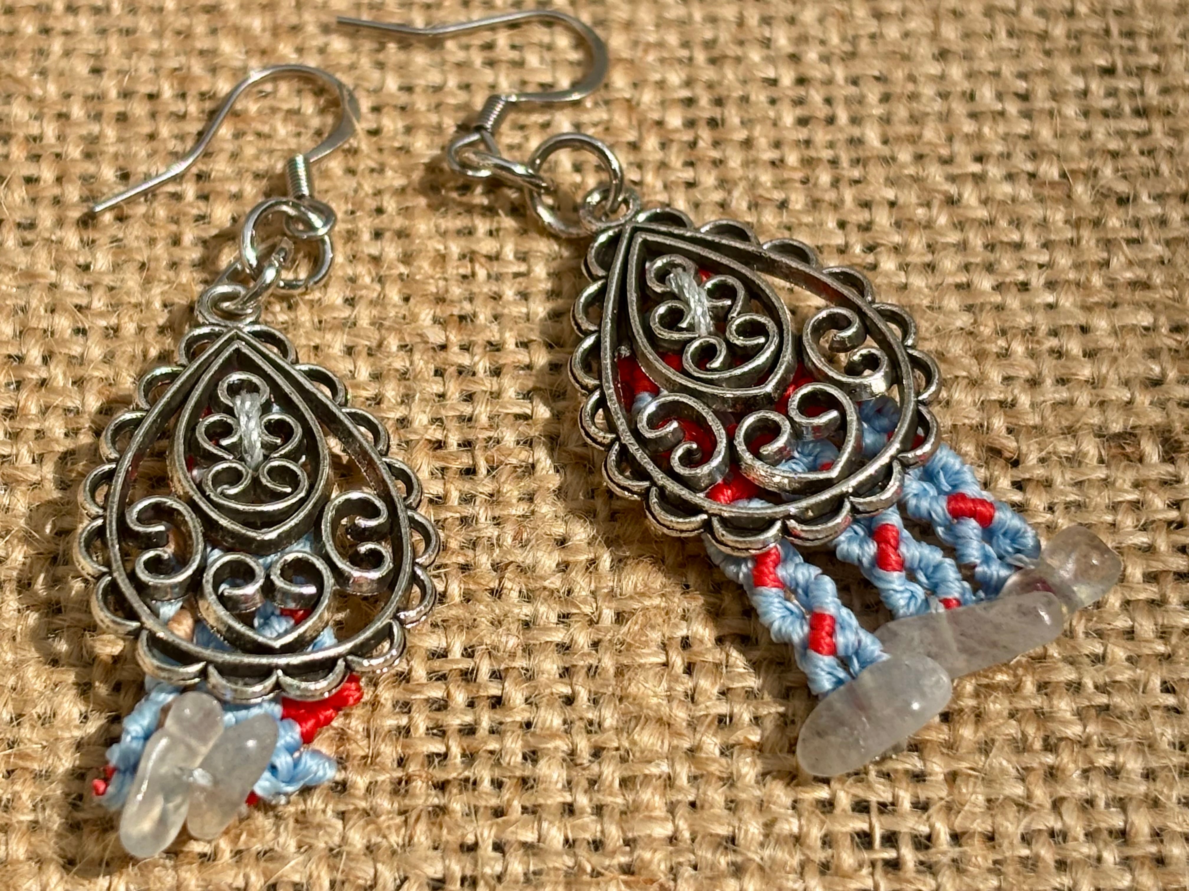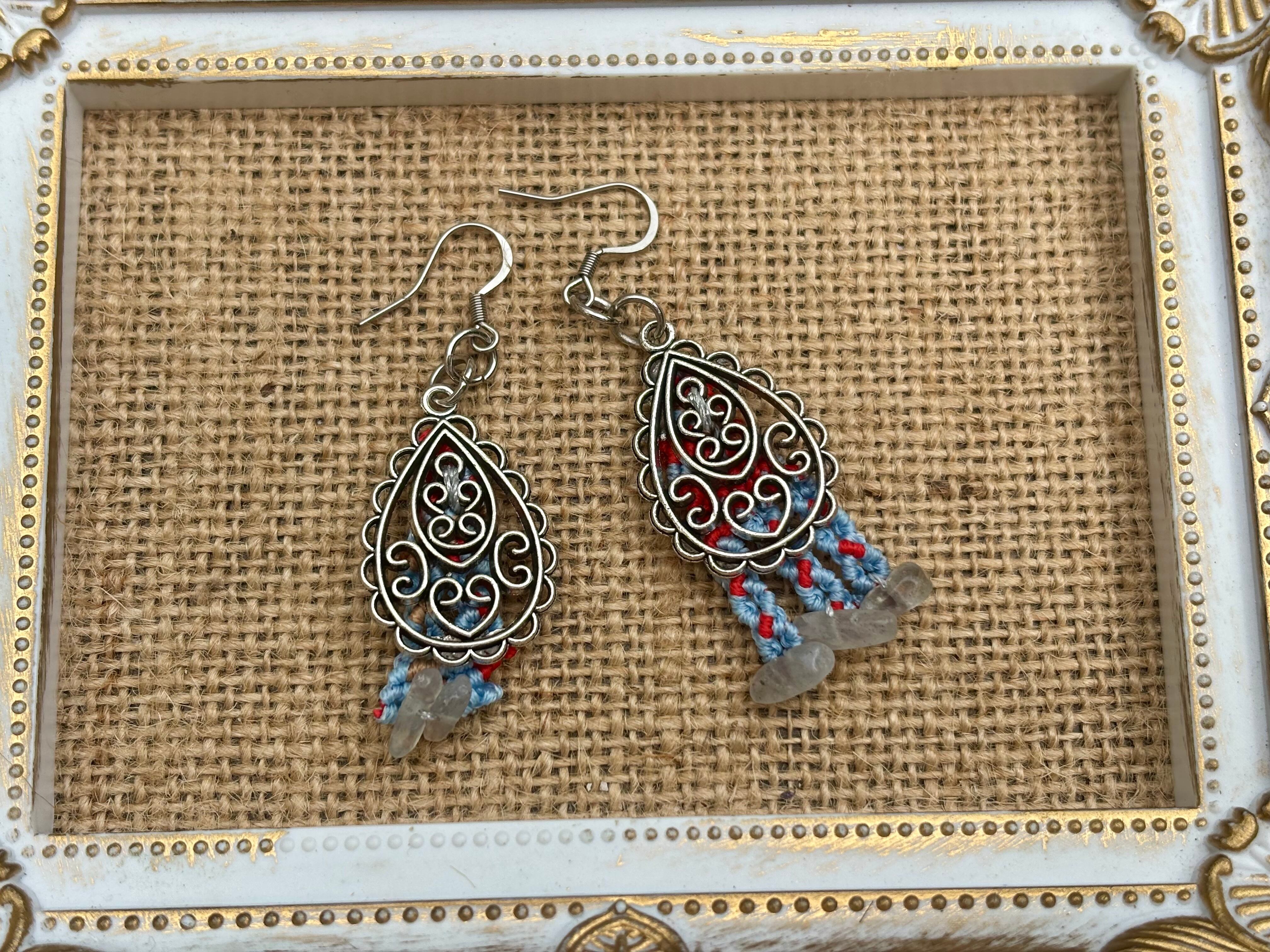 #740 一点物( ラブラドライトさざれ石 マクラメ編みピアス)
