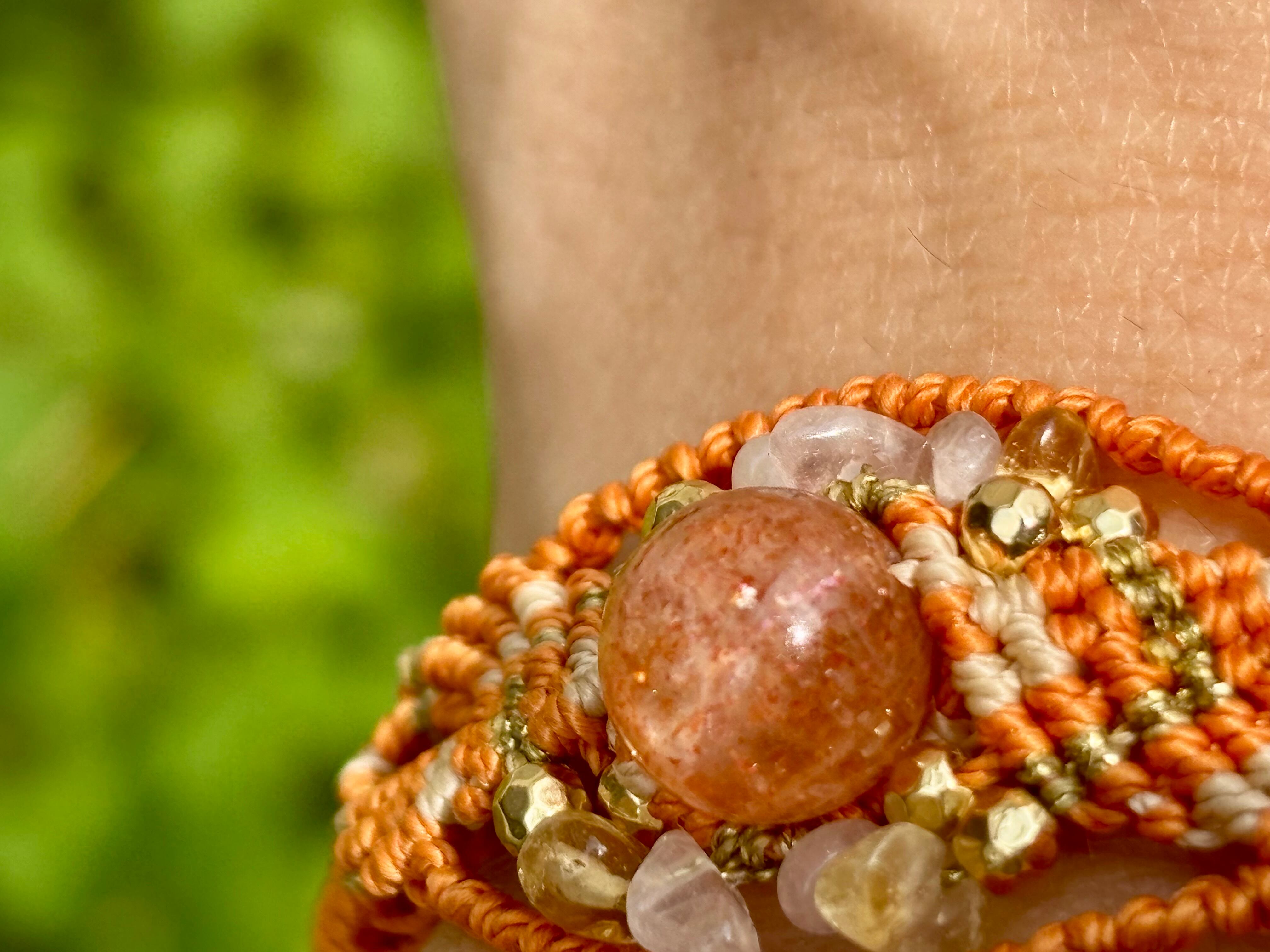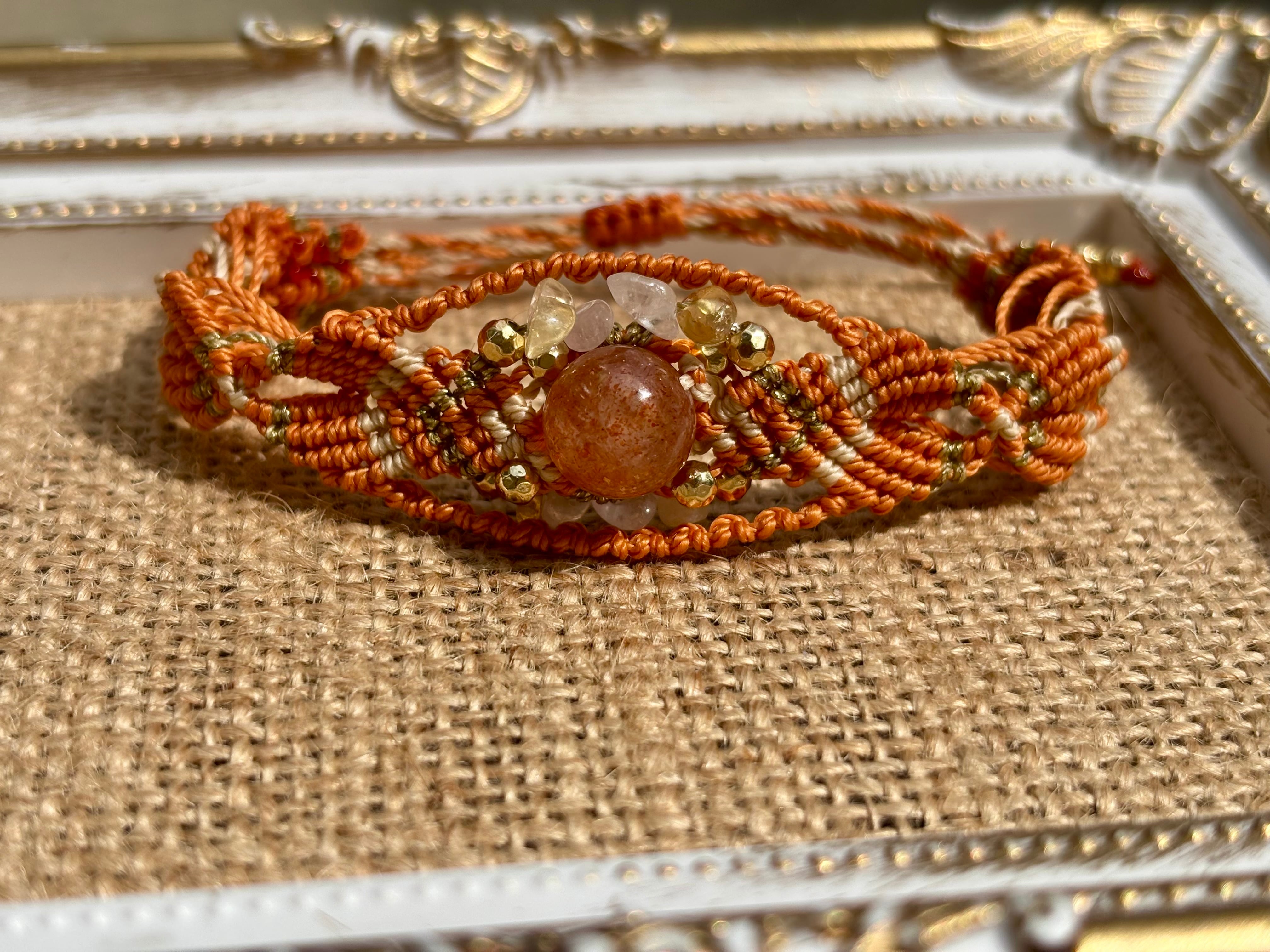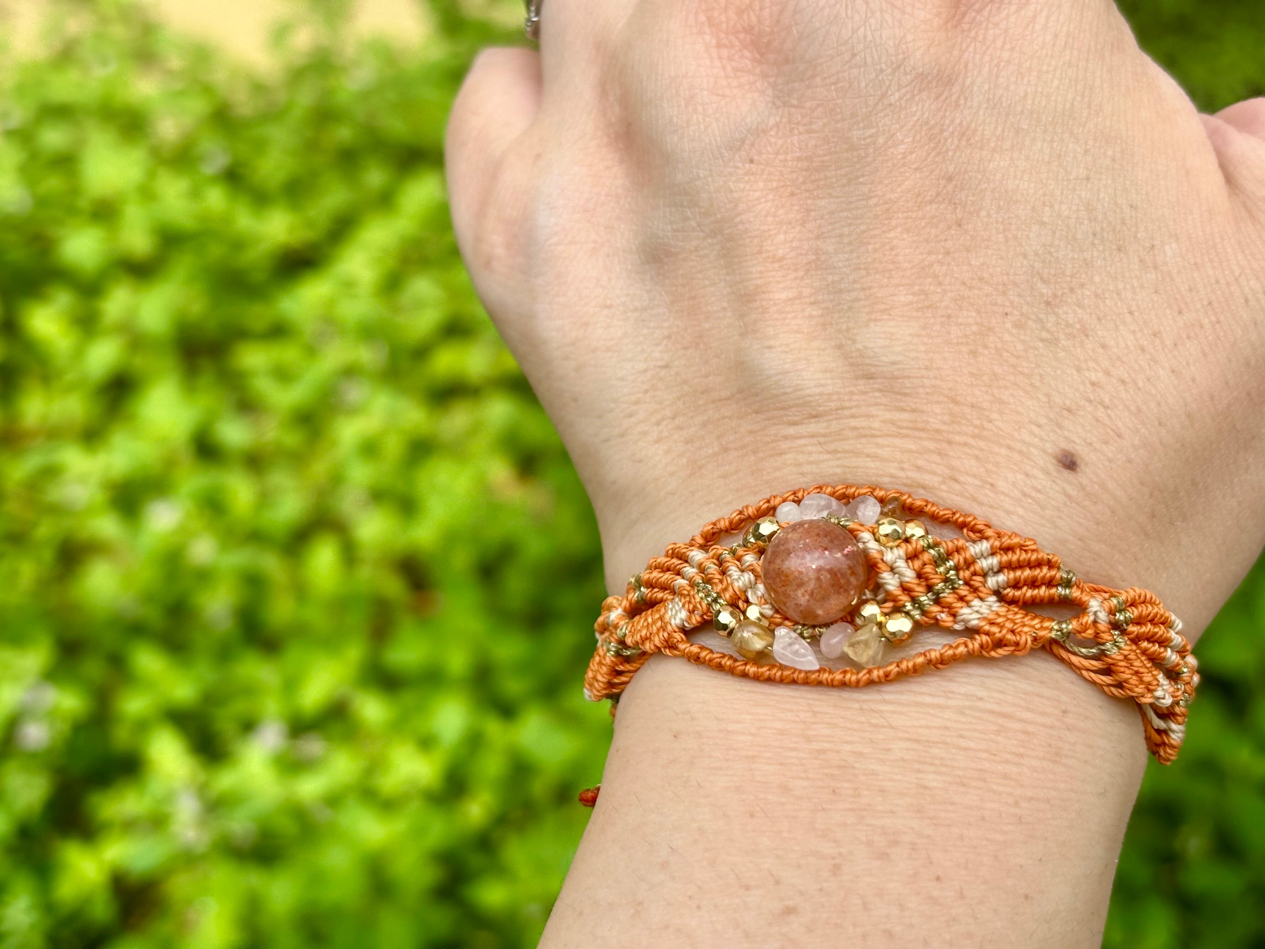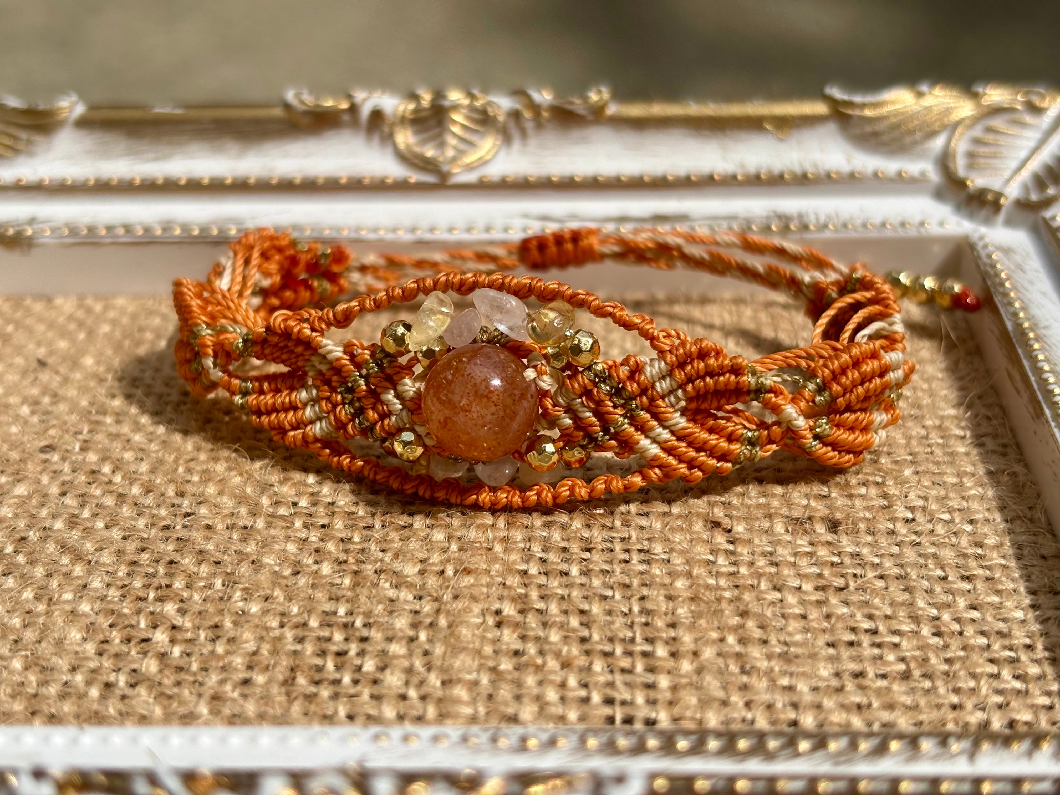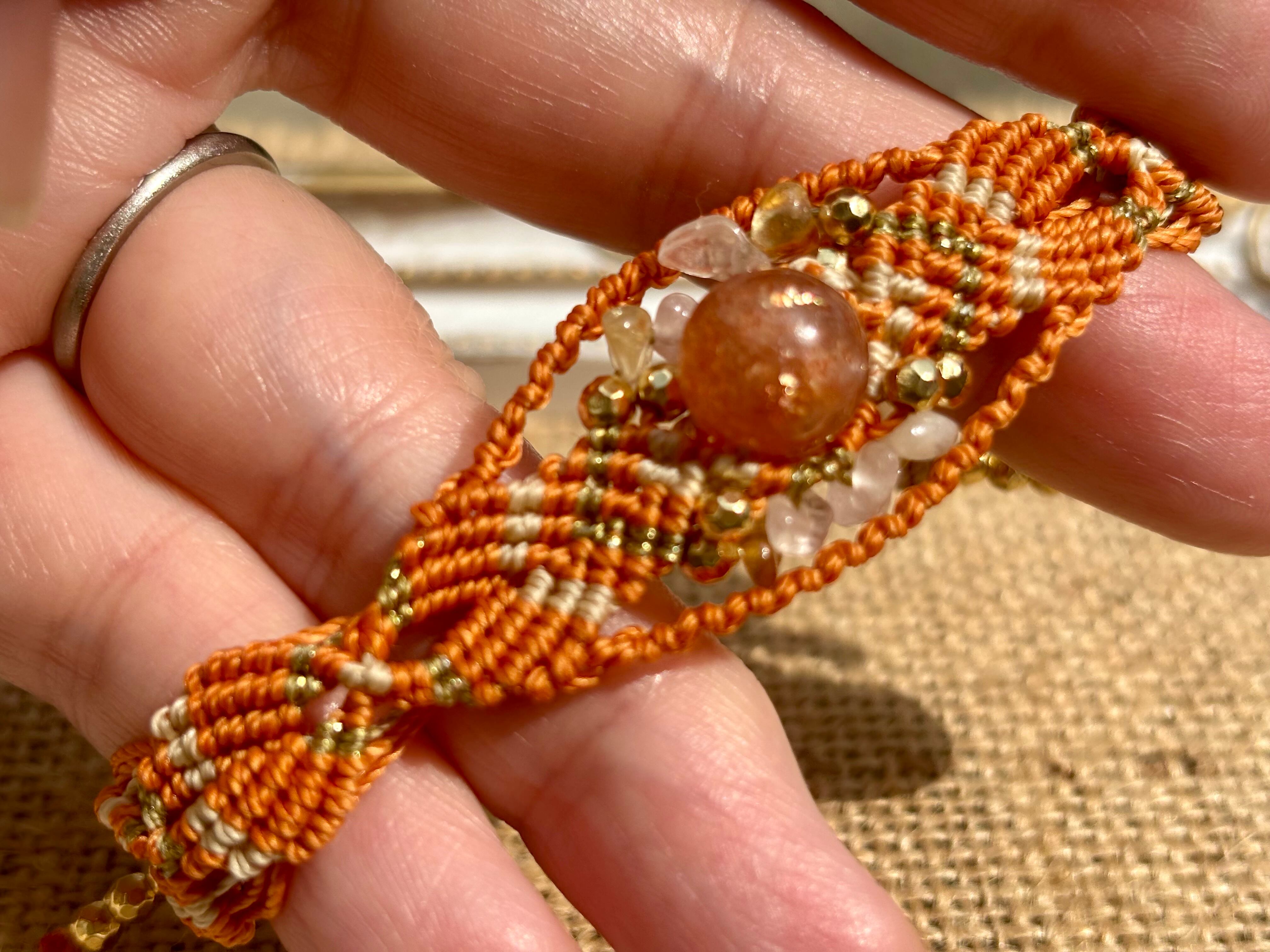 #743太陽の輝き!サンストーン一点物(サンストーン×ローズクォーツ×シトリン マクラメ編みブレスレット)