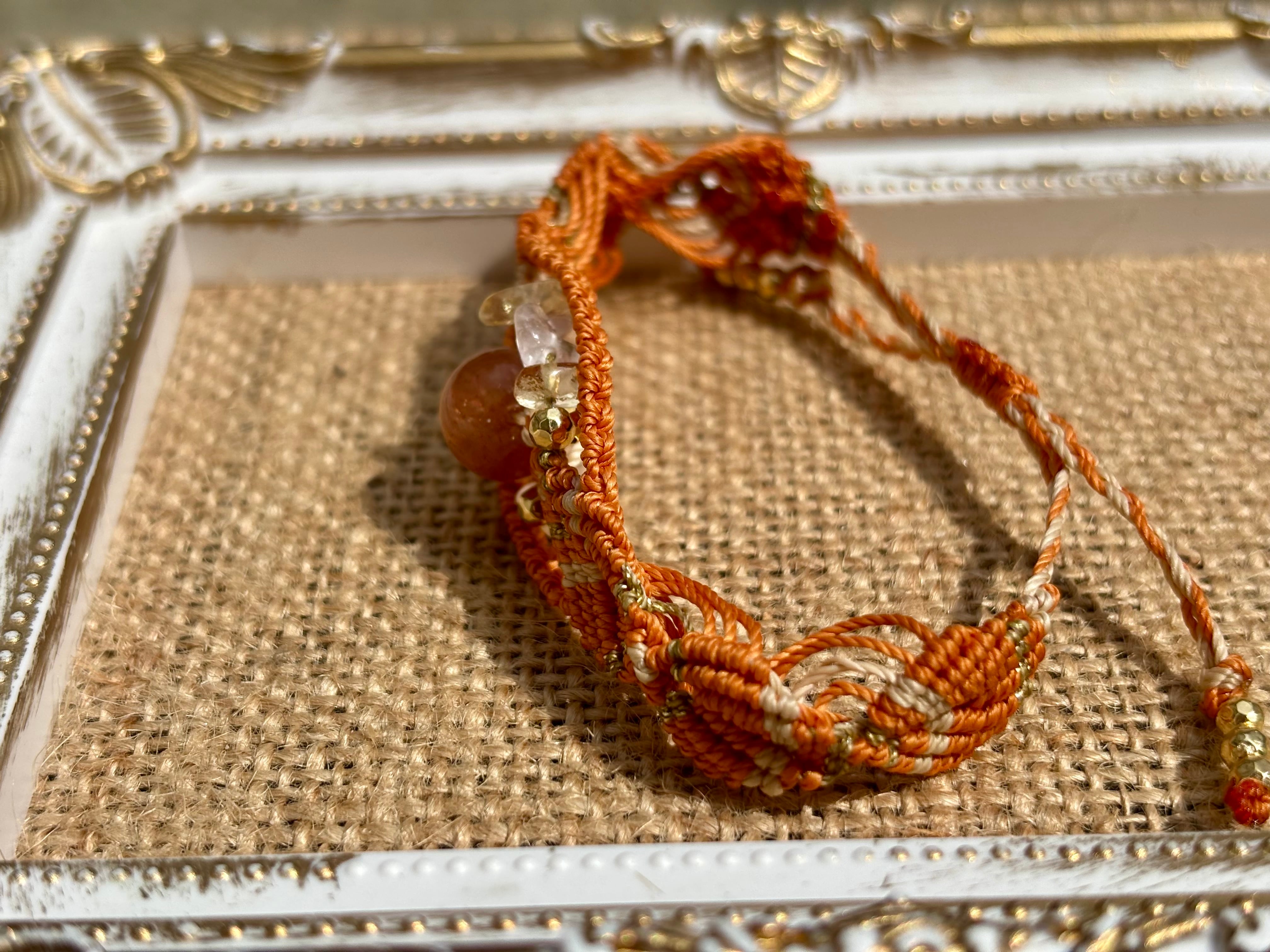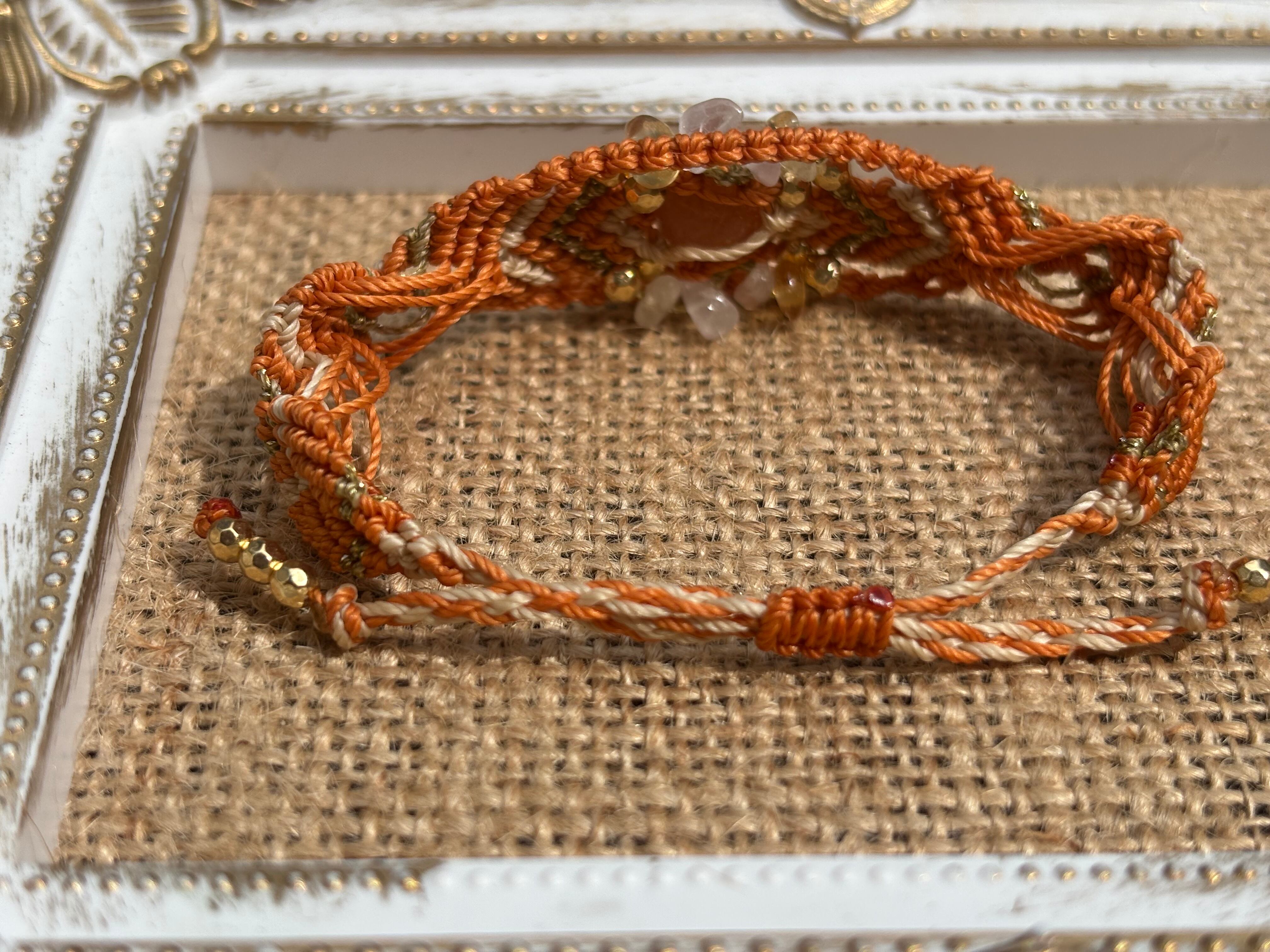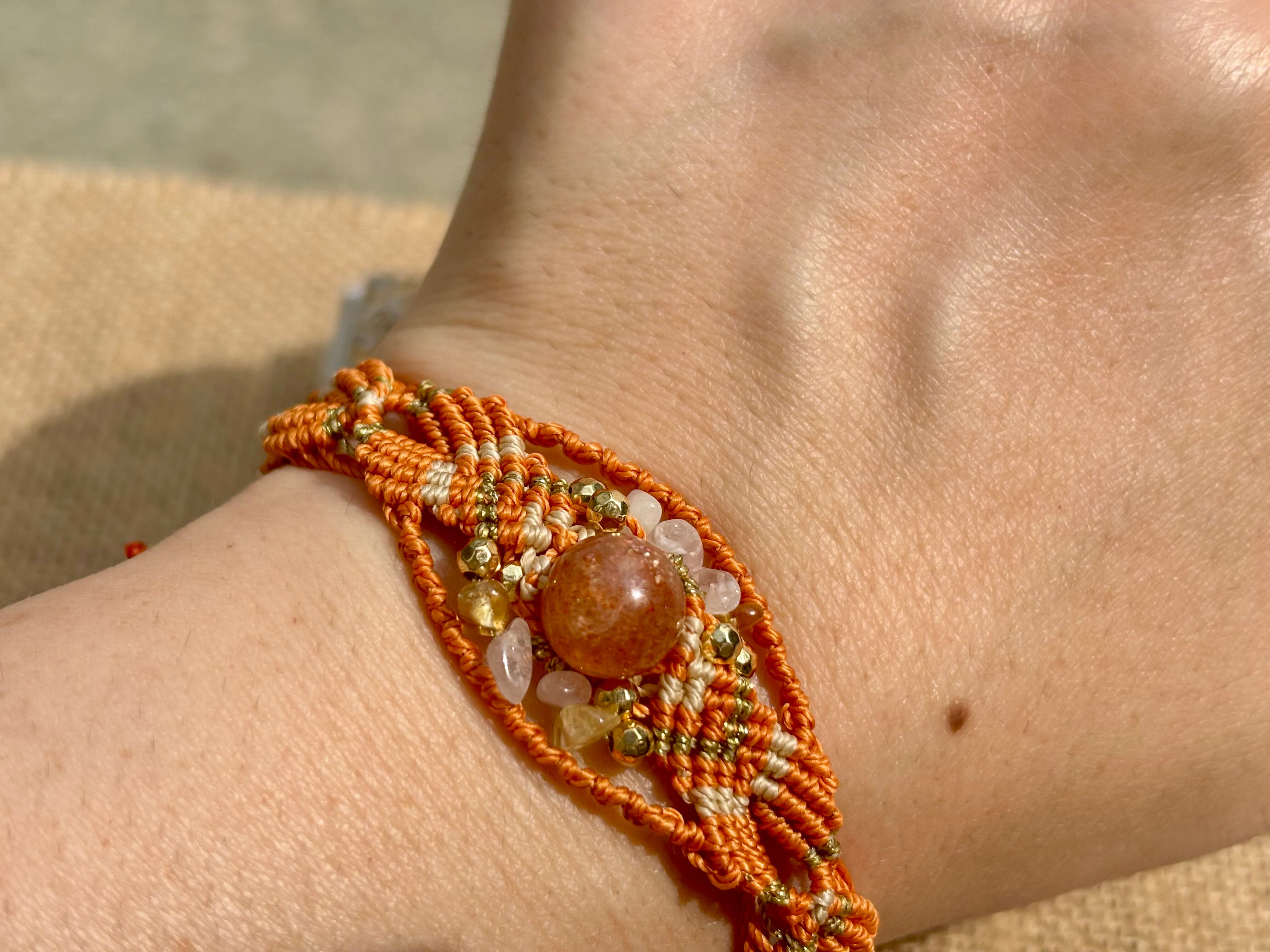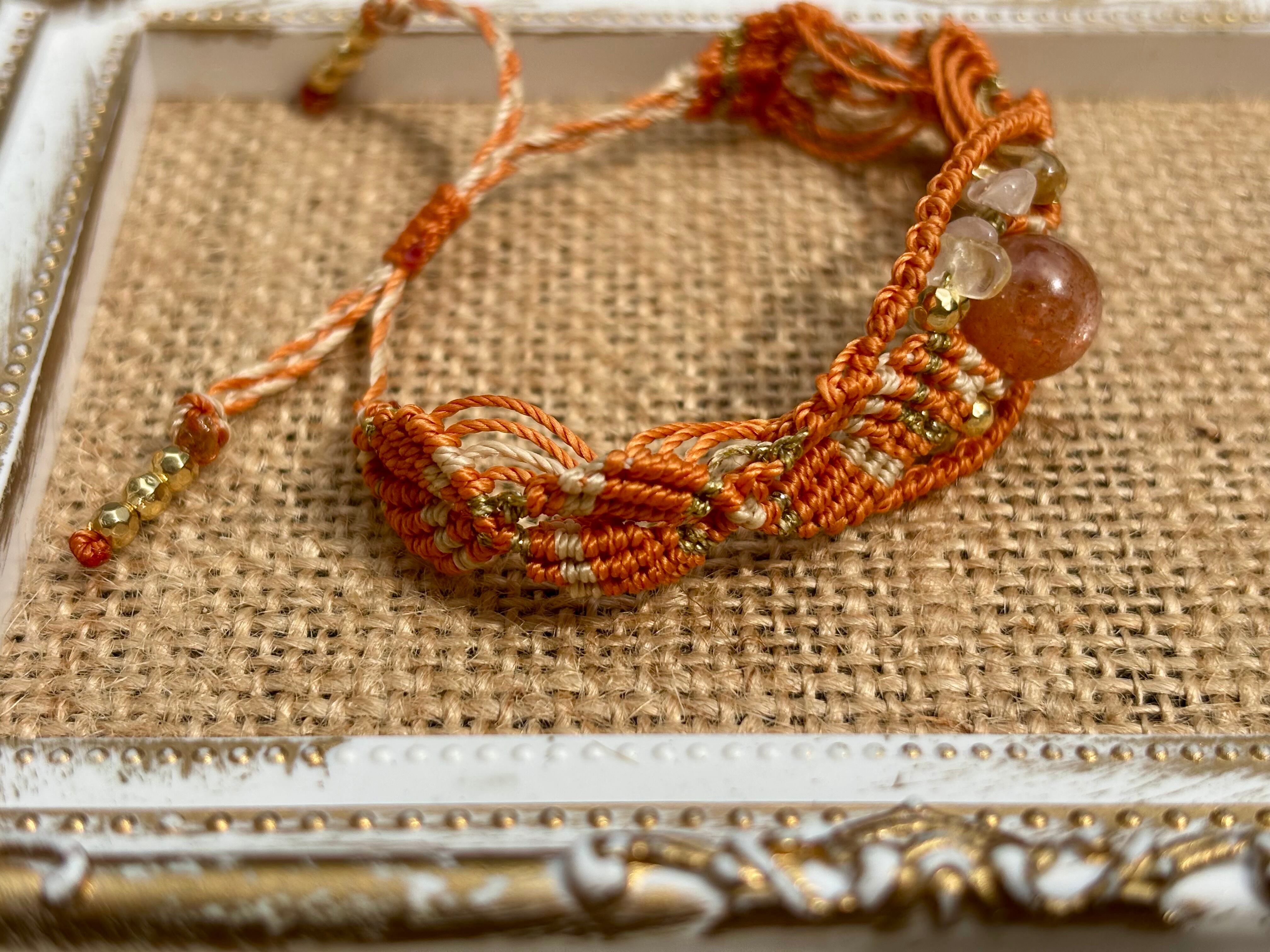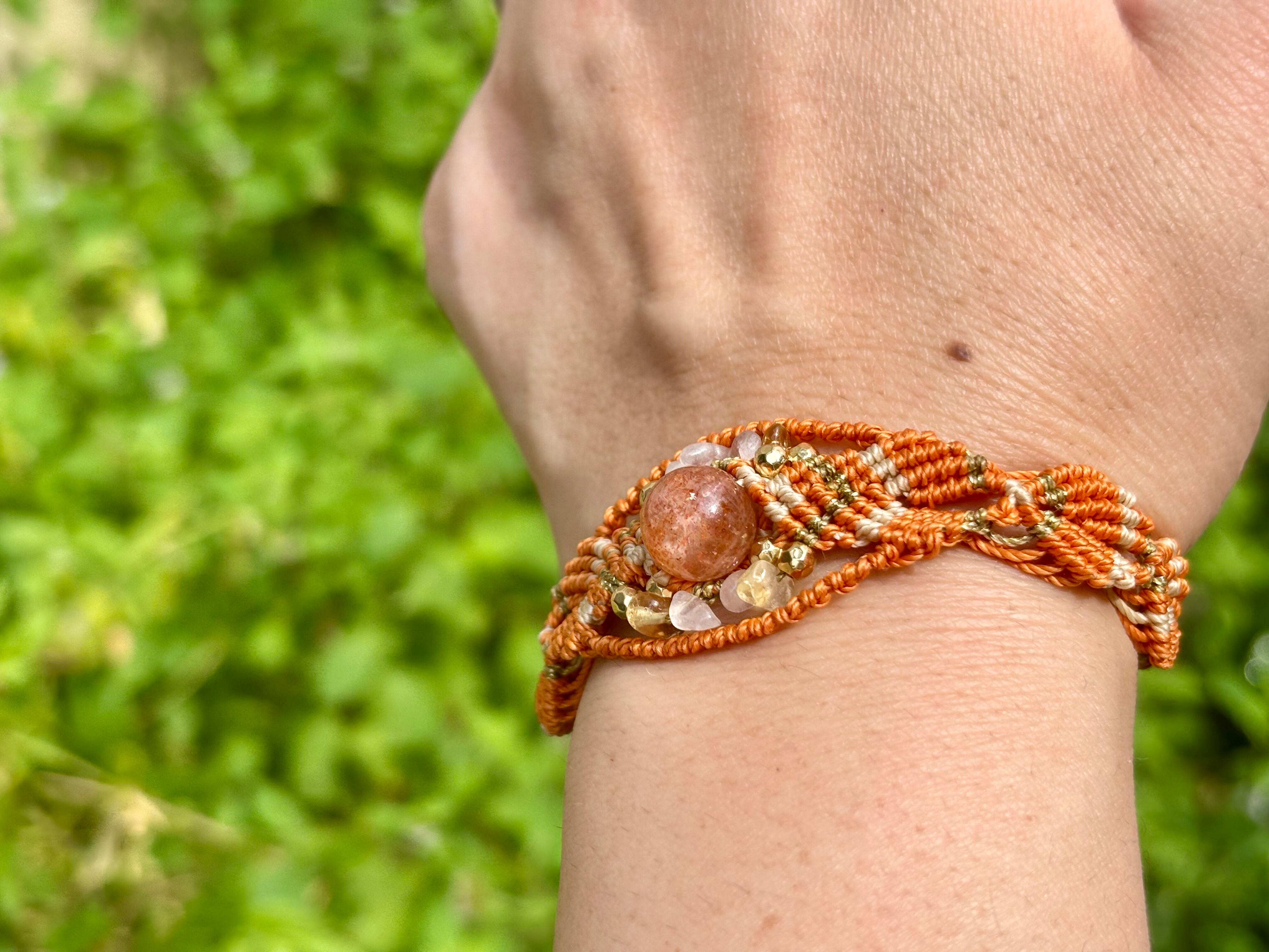 #743太陽の輝き!サンストーン一点物(サンストーン×ローズクォーツ×シトリン マクラメ編みブレスレット)