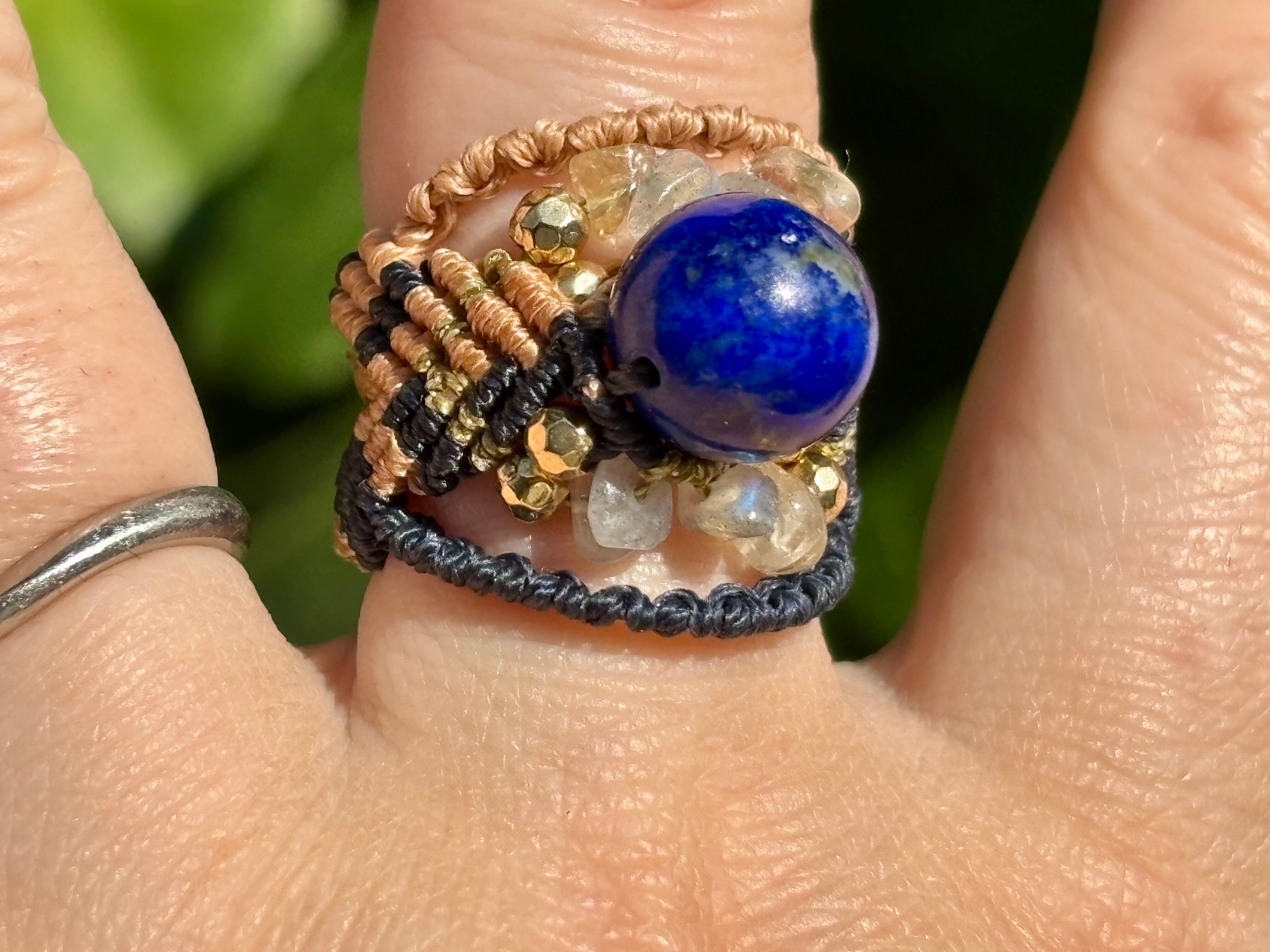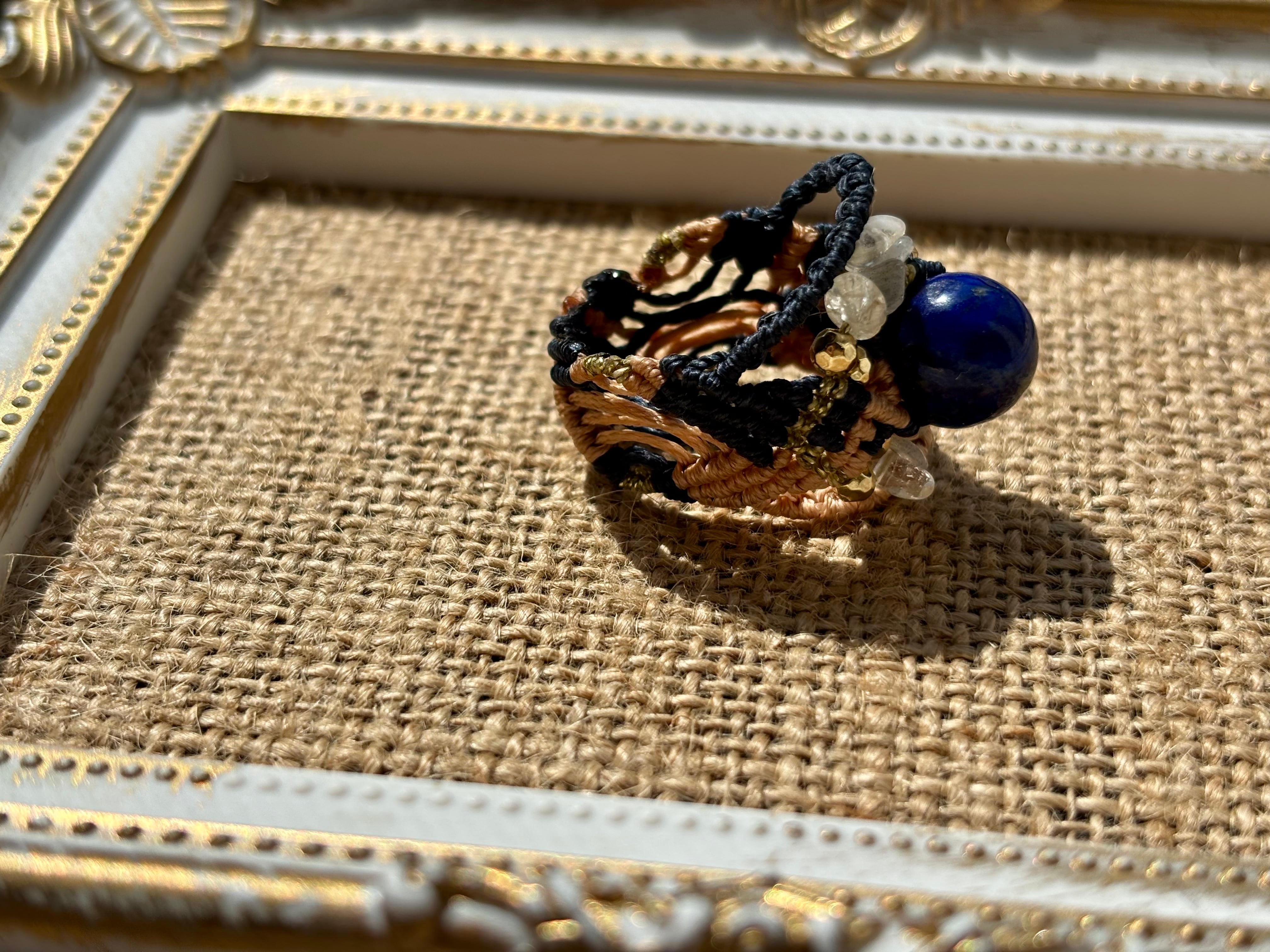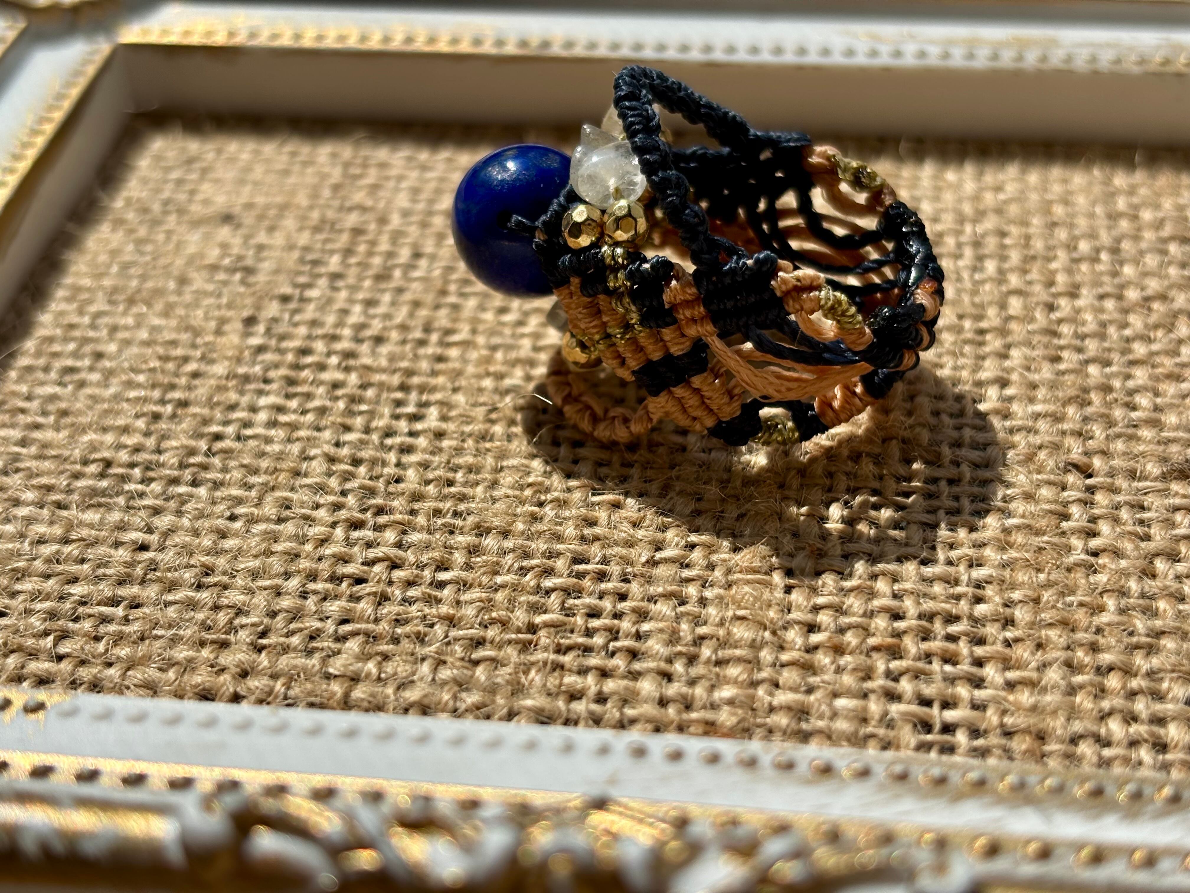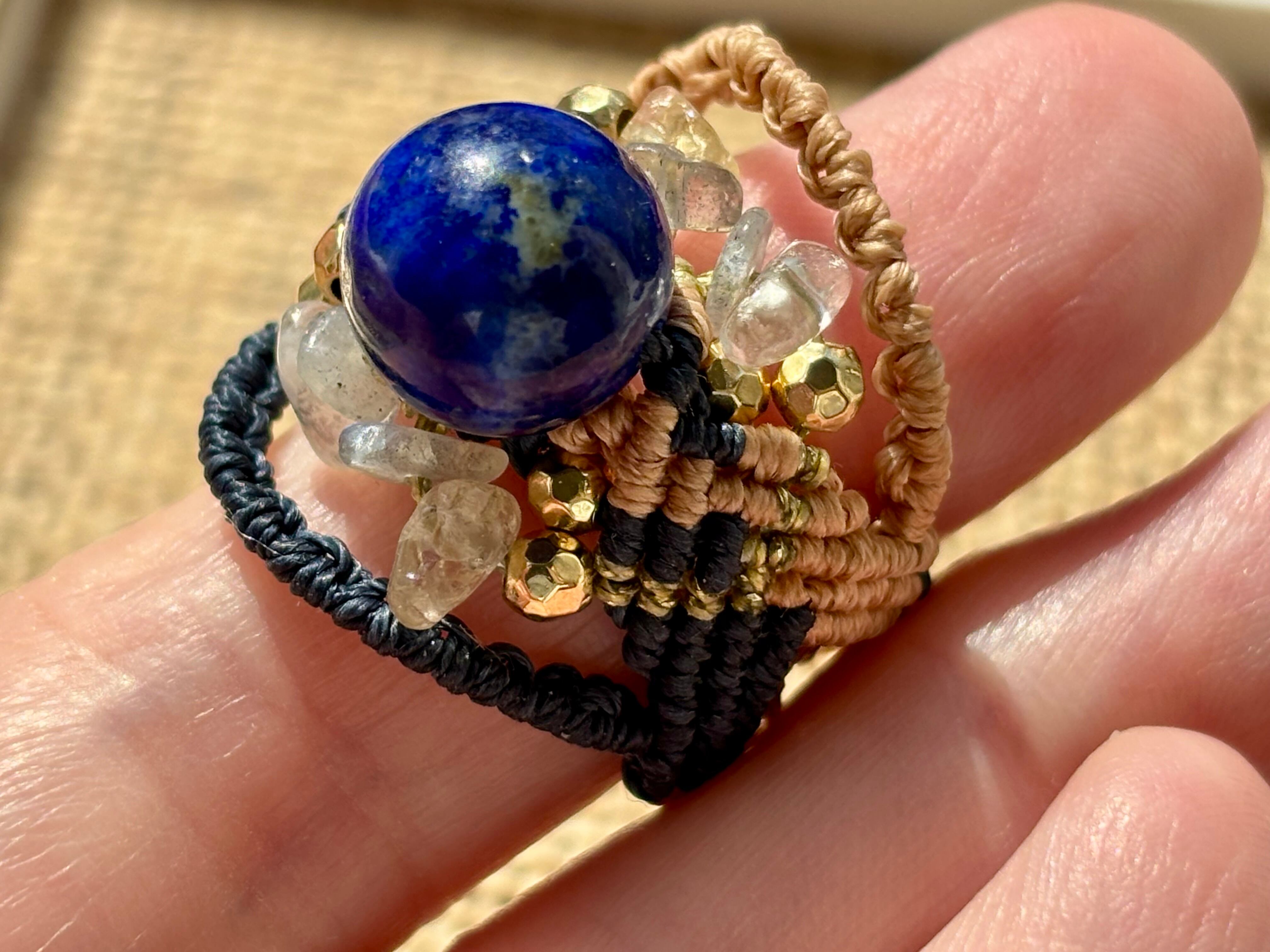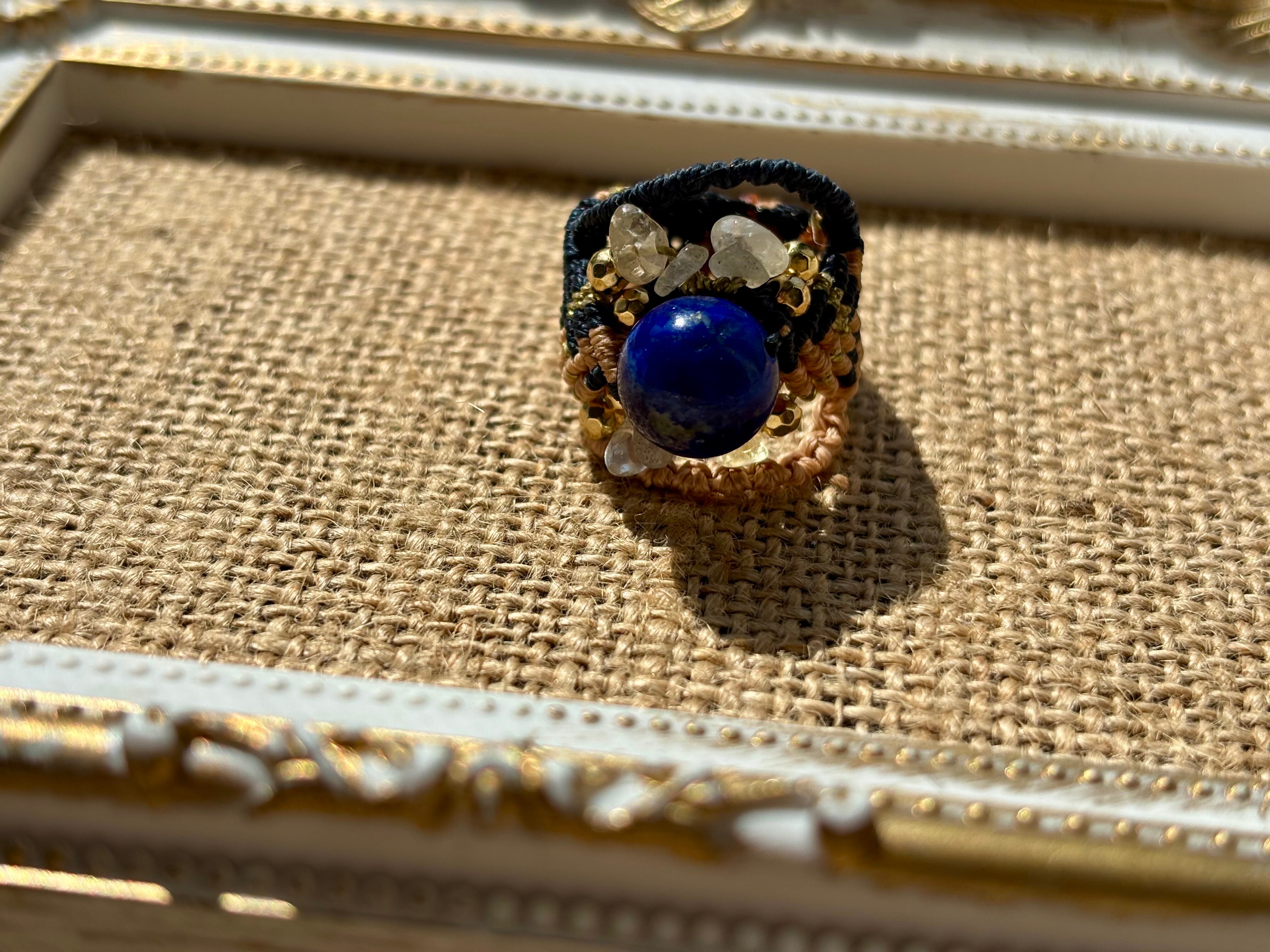 #744天然ラピスラズリ⭐︎(ラピスラズリ×ラブラドライト×シトリン マクラメ編みリング/指輪)
