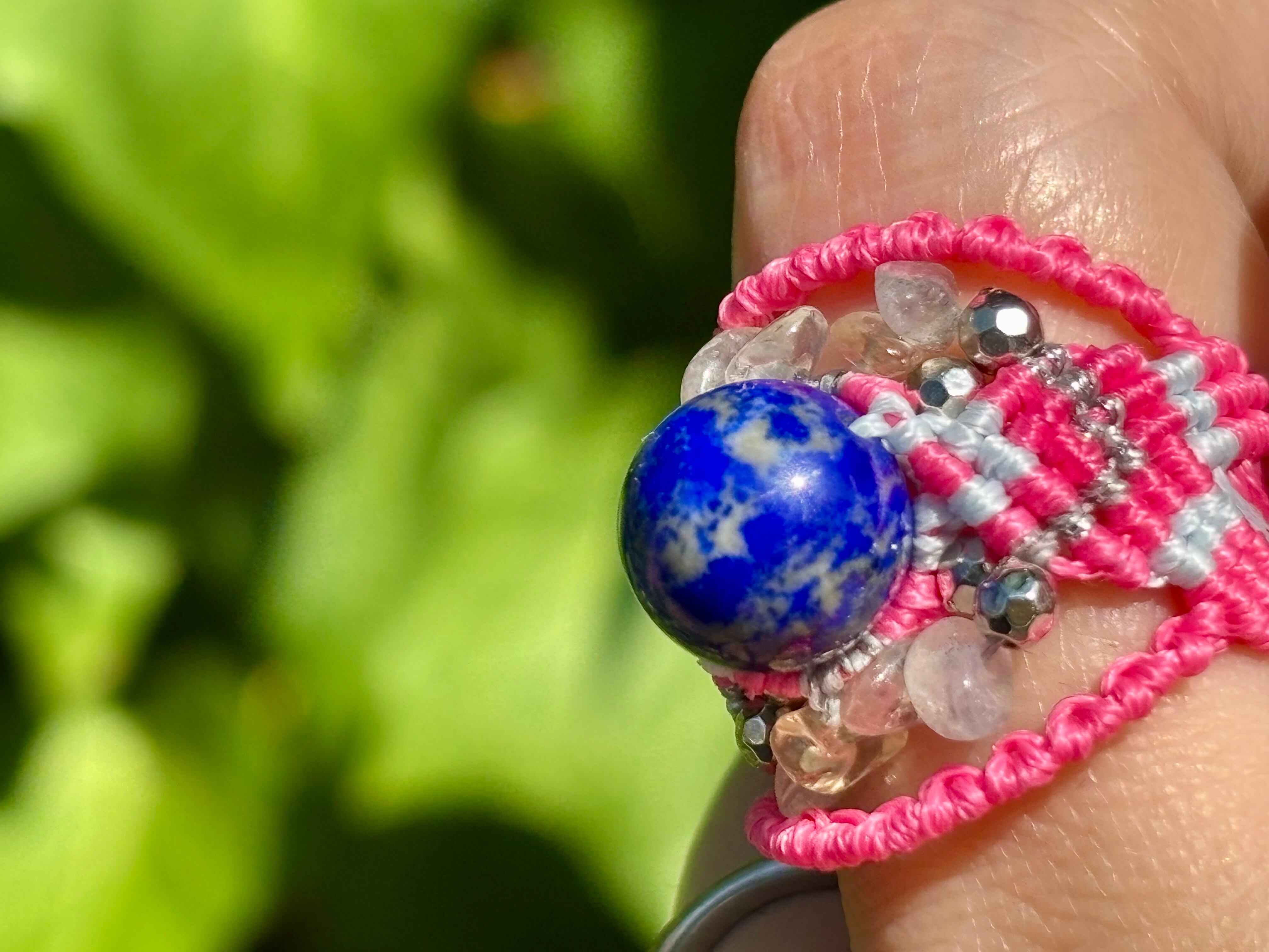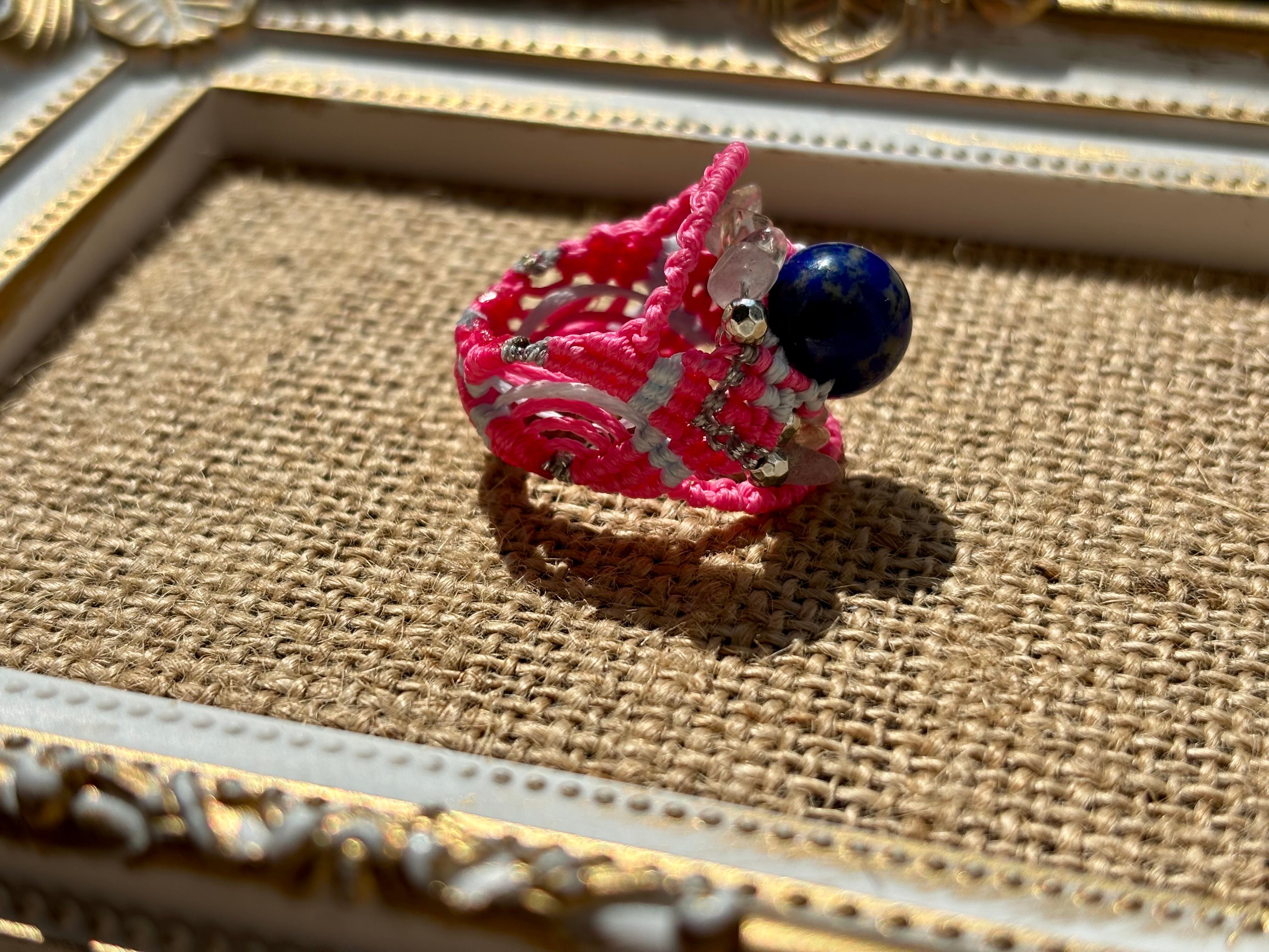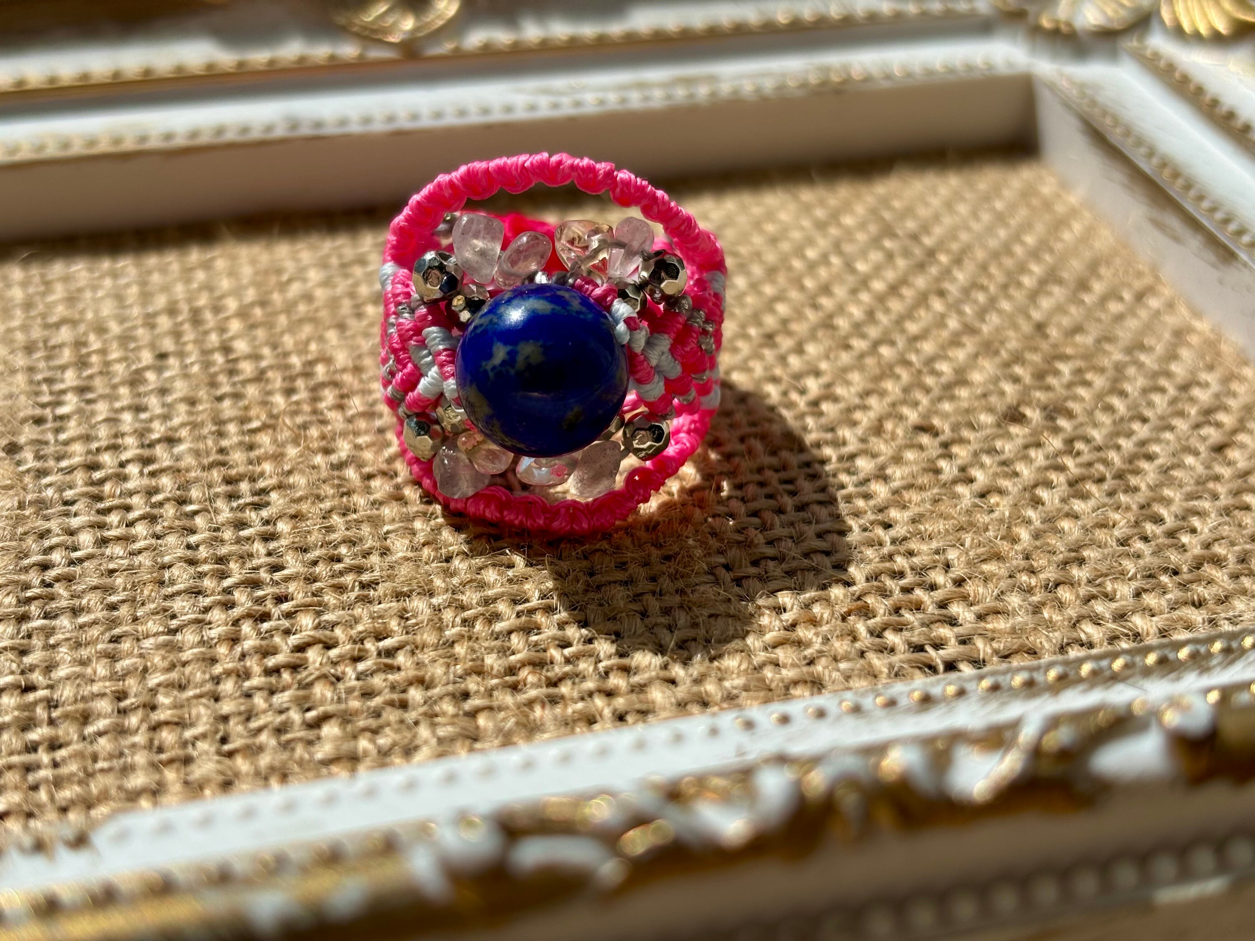 #746天然ラピスラズリ⭐︎(ラピスラズリ×ラブラドライト×シトリン マクラメ編みリング/指輪)