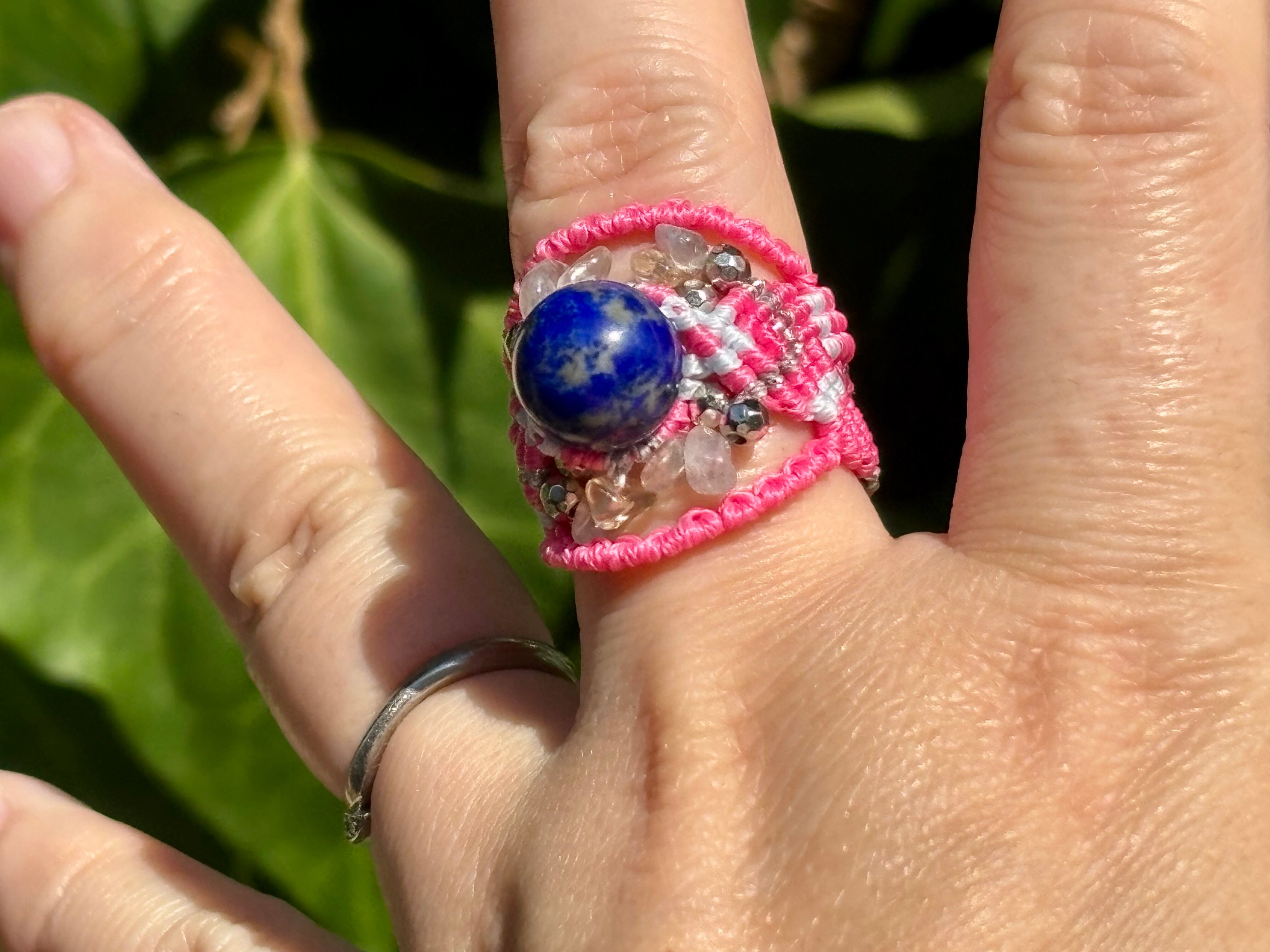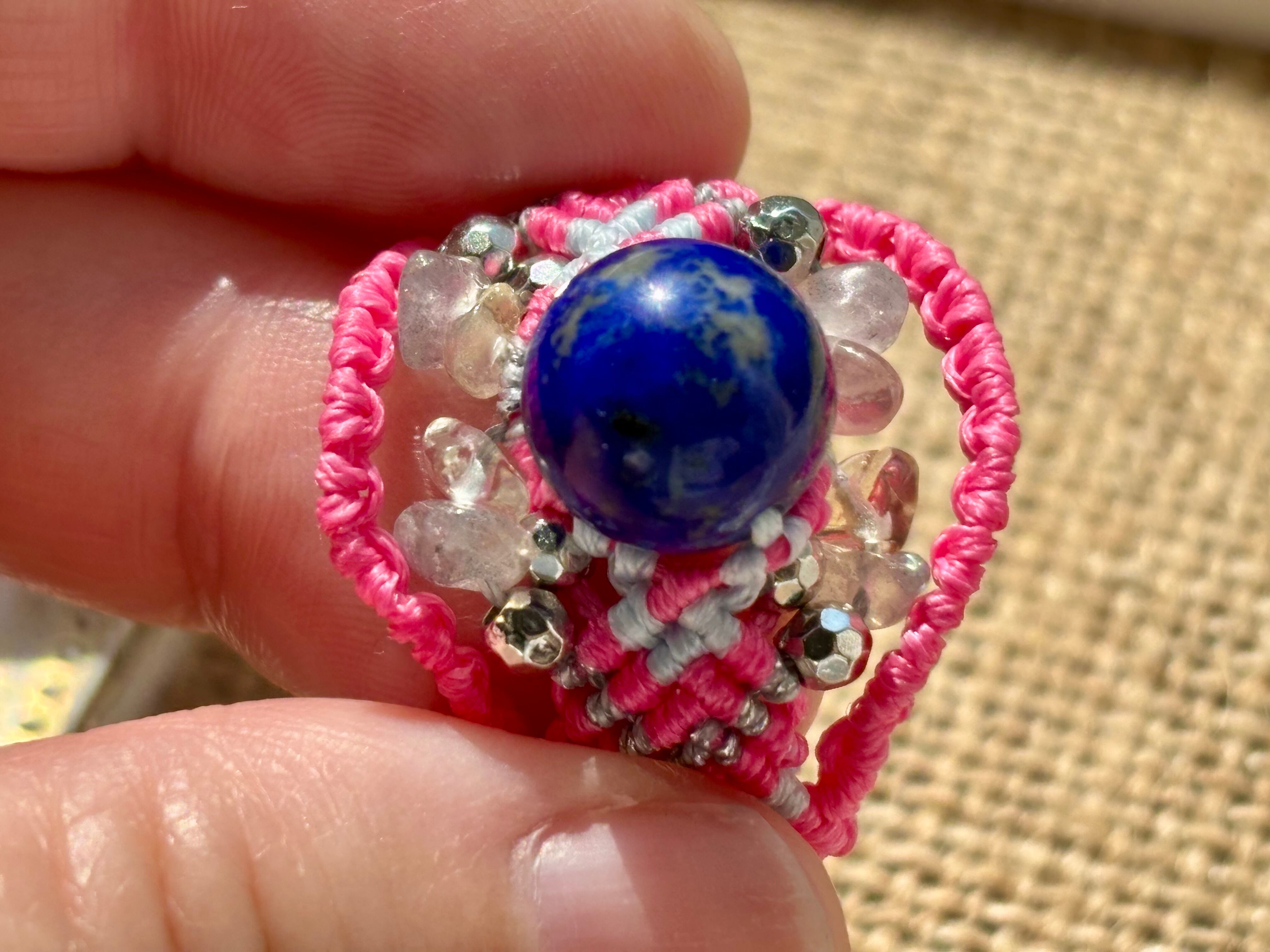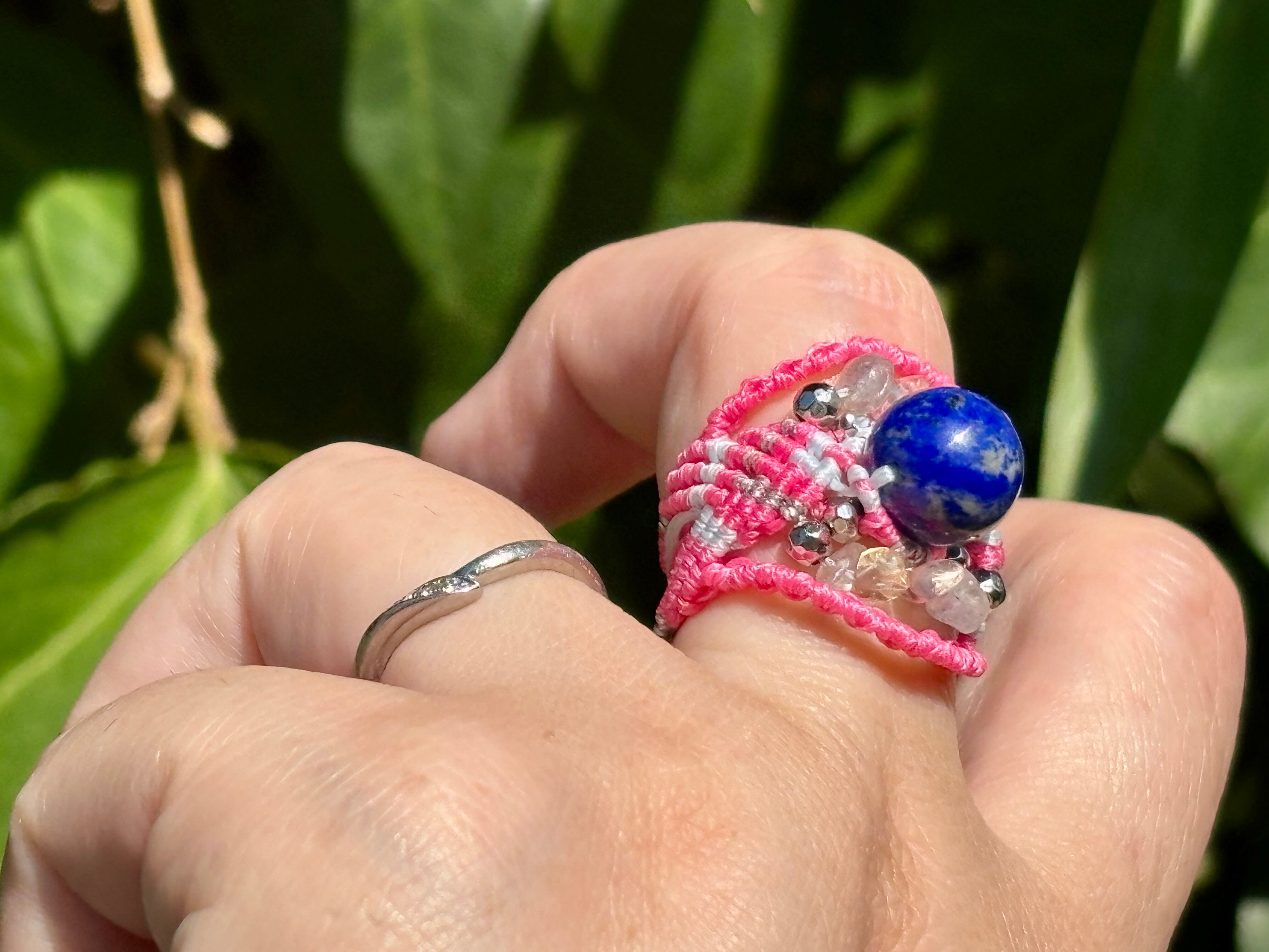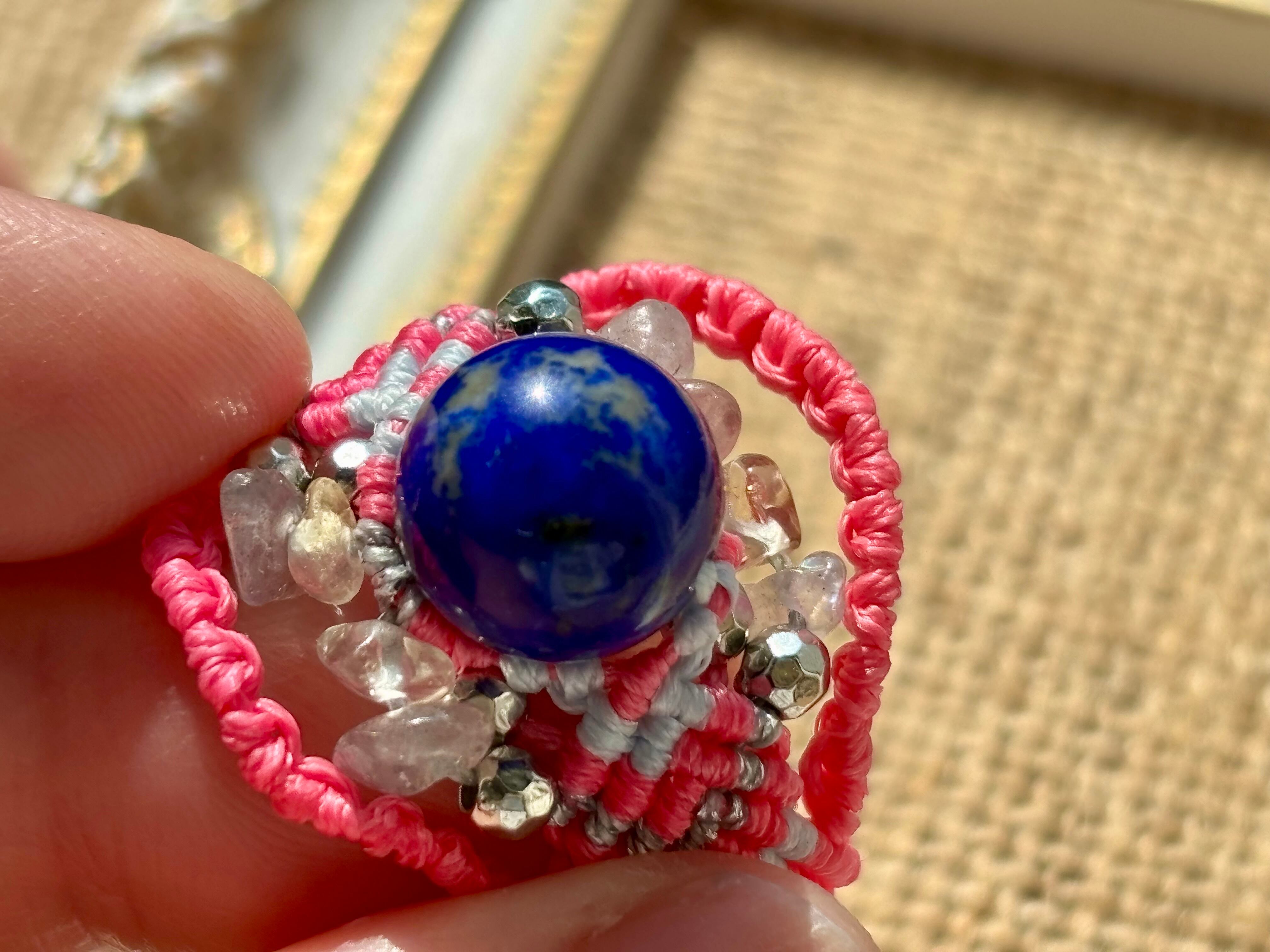 #746天然ラピスラズリ⭐︎(ラピスラズリ×ラブラドライト×シトリン マクラメ編みリング/指輪)