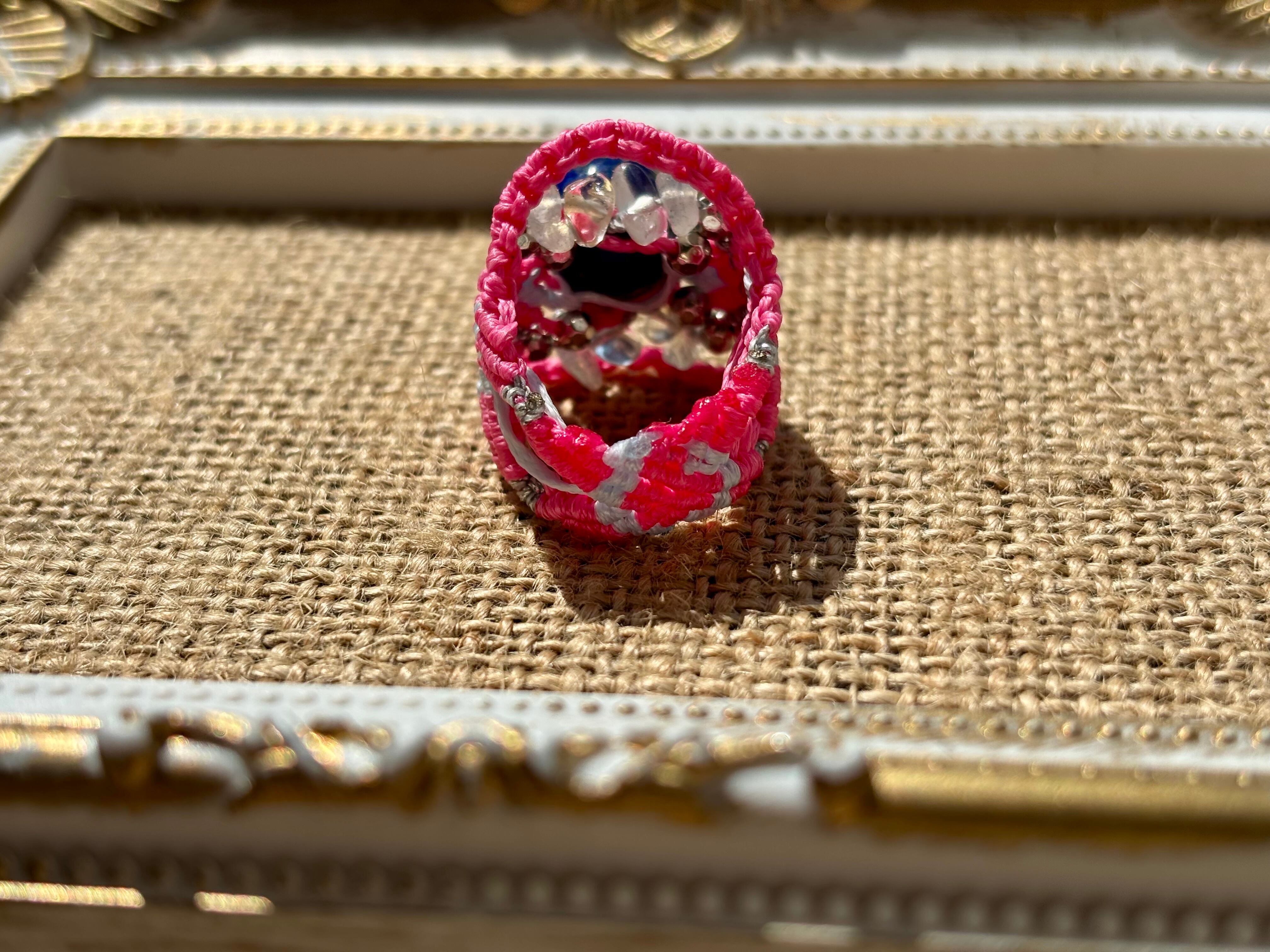 手作業で丁寧に編み込まれたこのリングは、日常のコーディネートに華を添えるだけでなく、特別な場面でも存在感を発揮します。