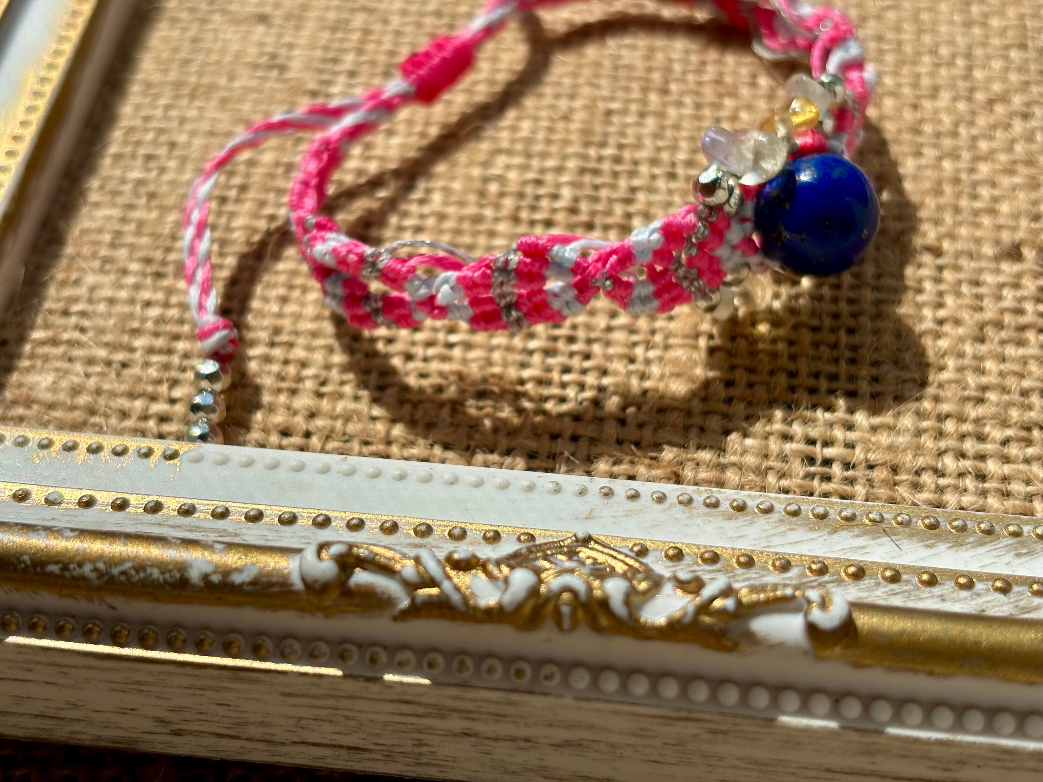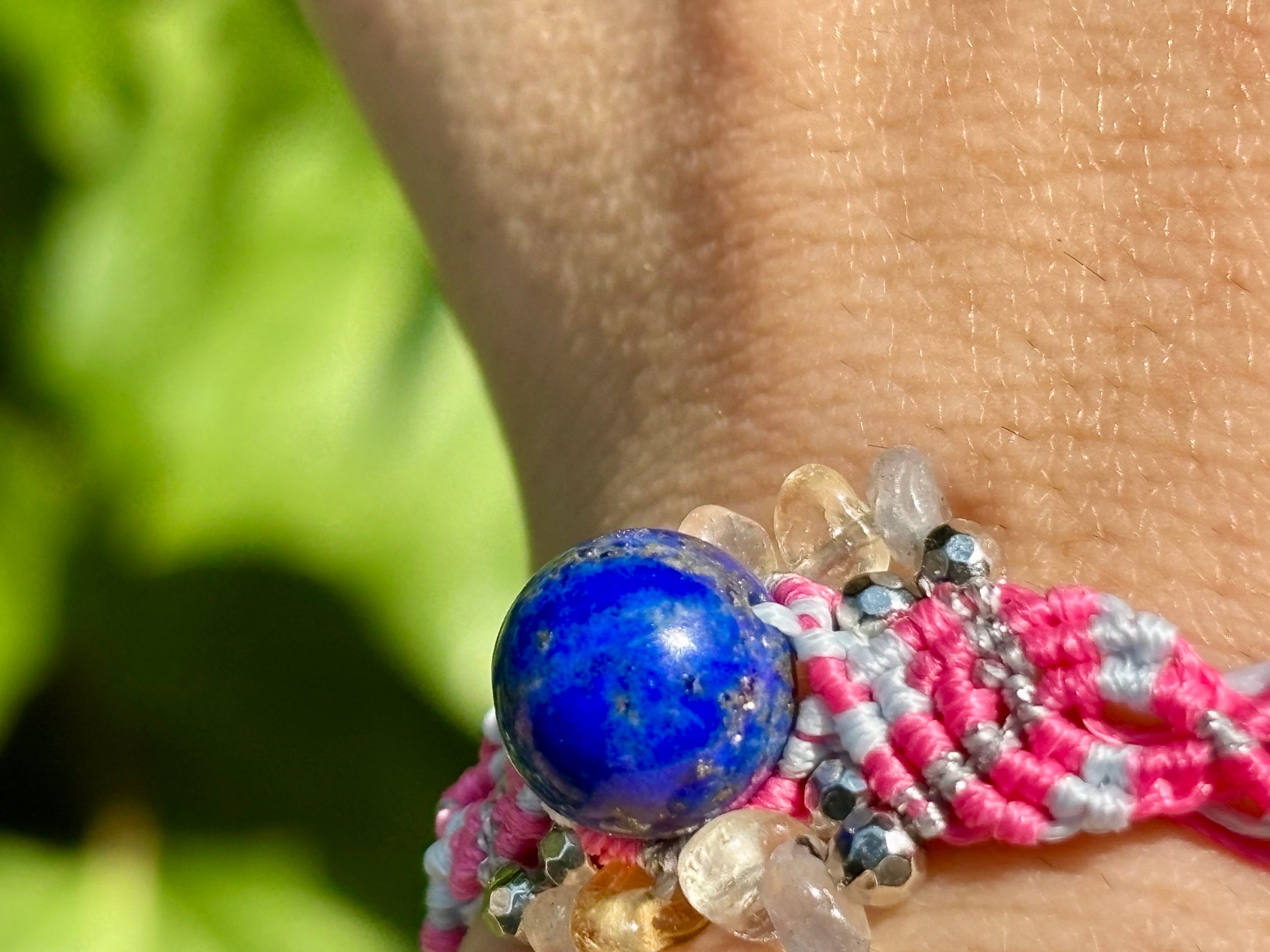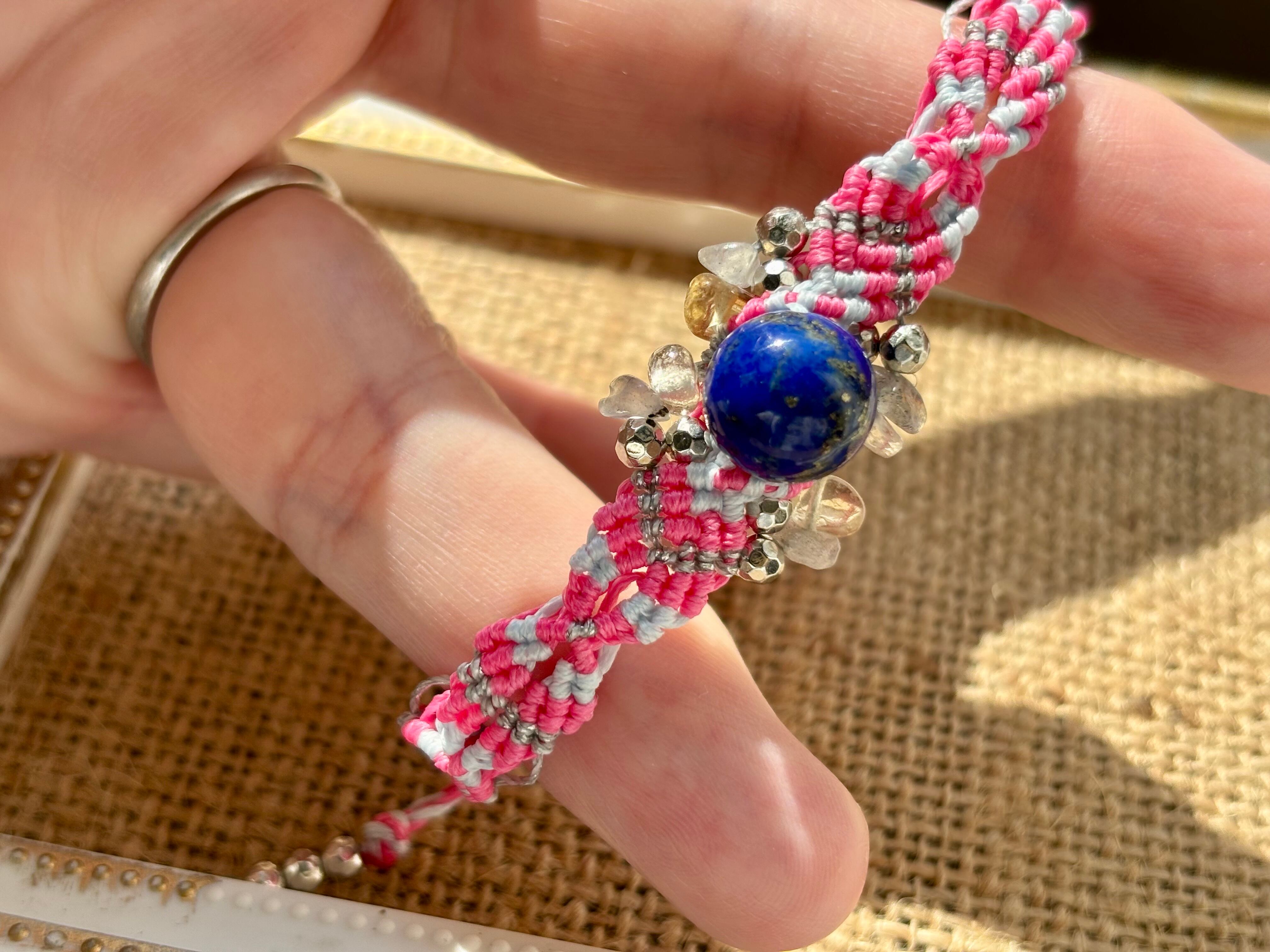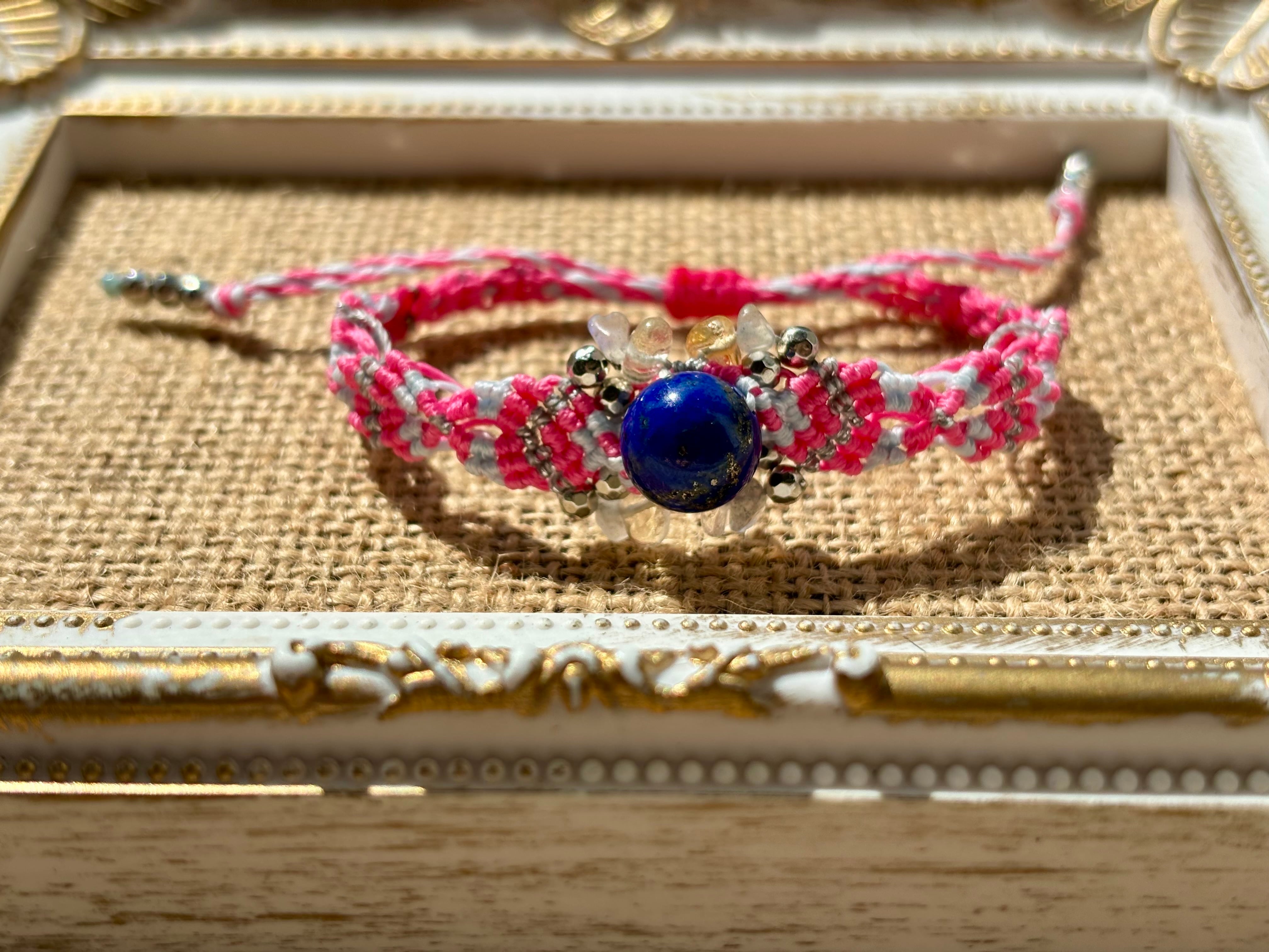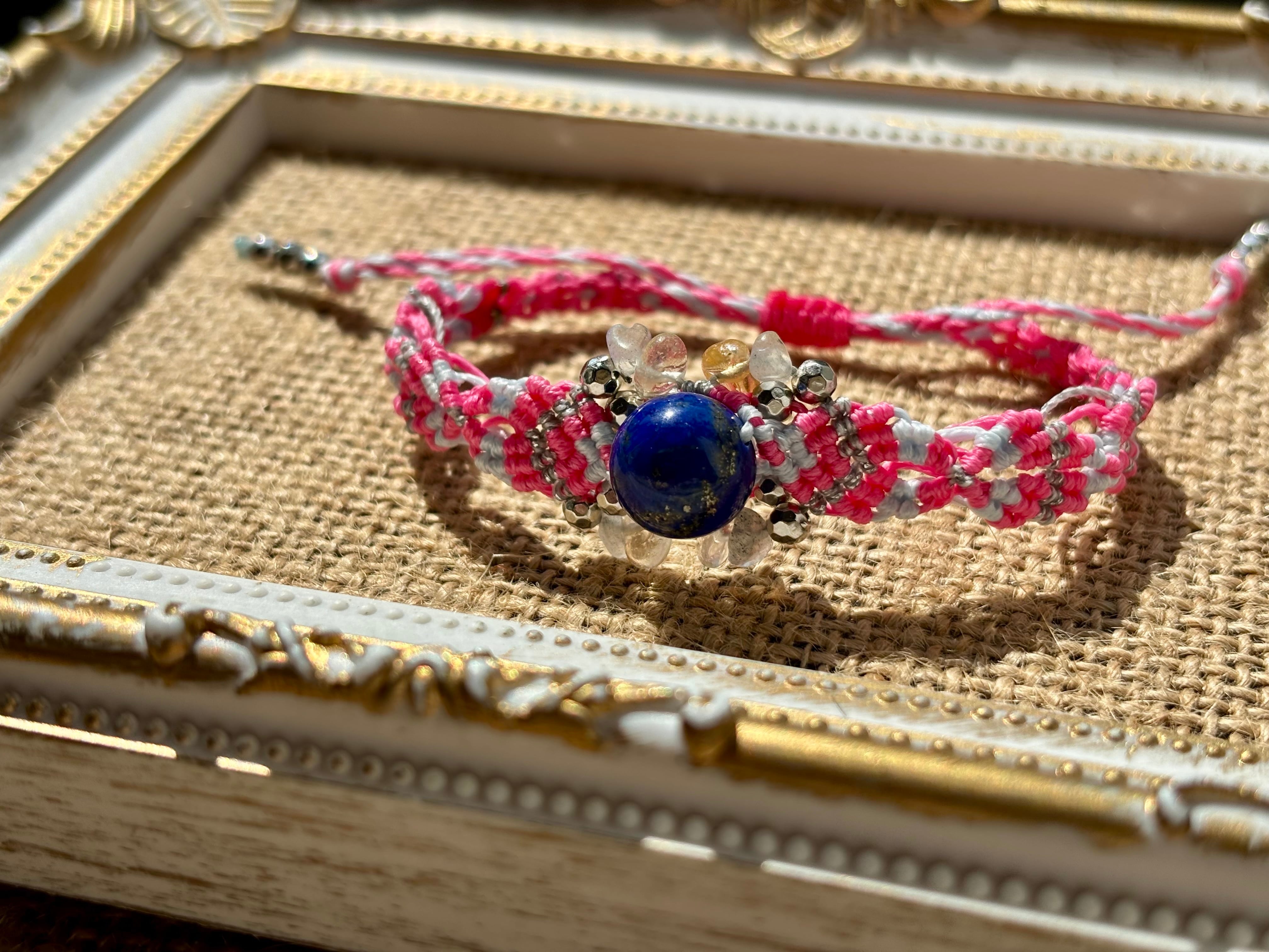 #747天然ラピスラズリ⭐︎(ラピスラズリ×ラブラドライト×シトリン マクラメ編みブレスレット)