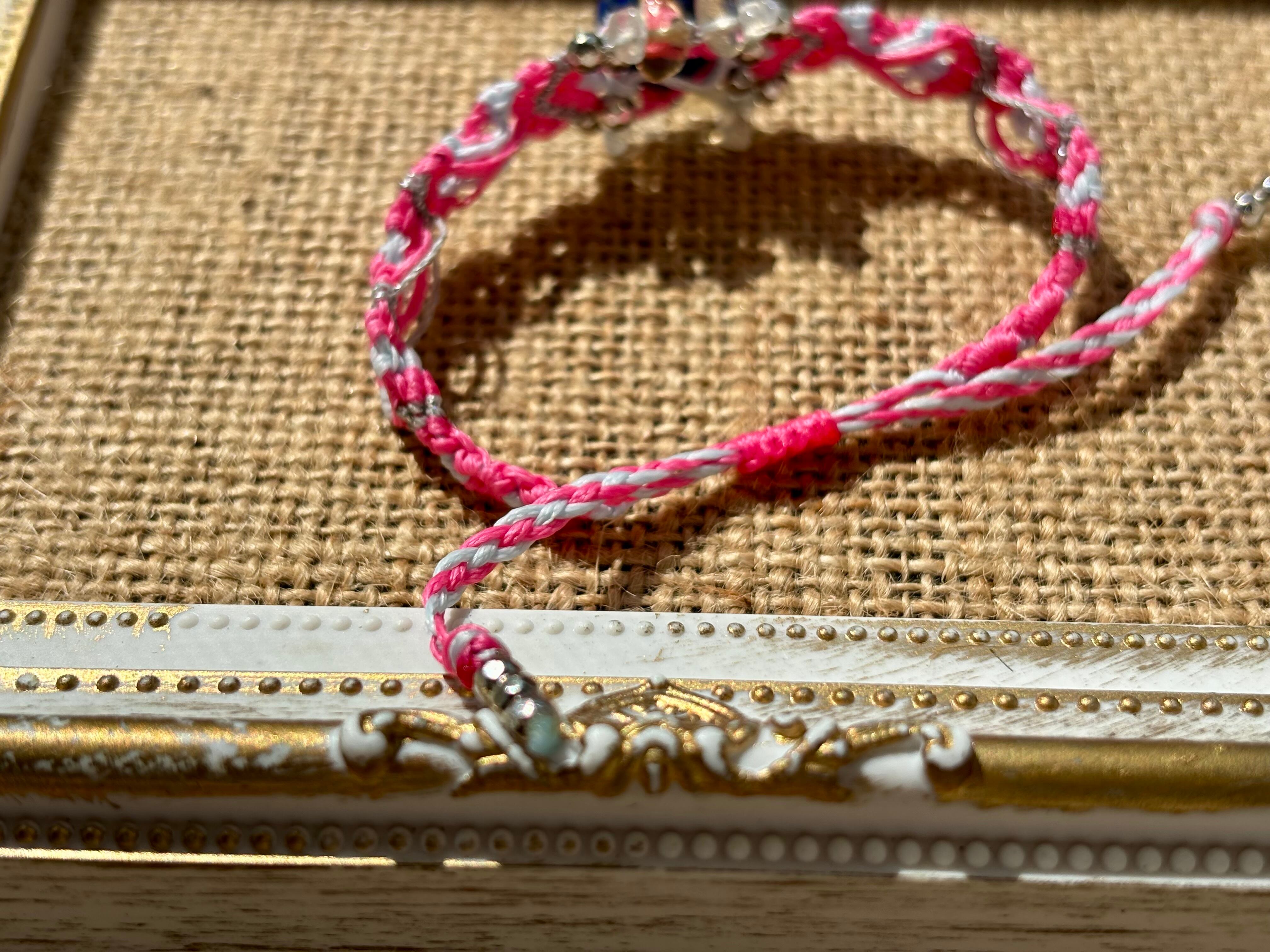手作業で丁寧に編み込まれたこのブレスレットは、日常のコーディネートに華を添えるだけでなく、特別な場面でも存在感を発揮します。