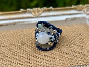 #761幻想的な一点物⭐︎(ホワイトラブラドライト×ラブラドライト マクラメ編みリング/指輪)