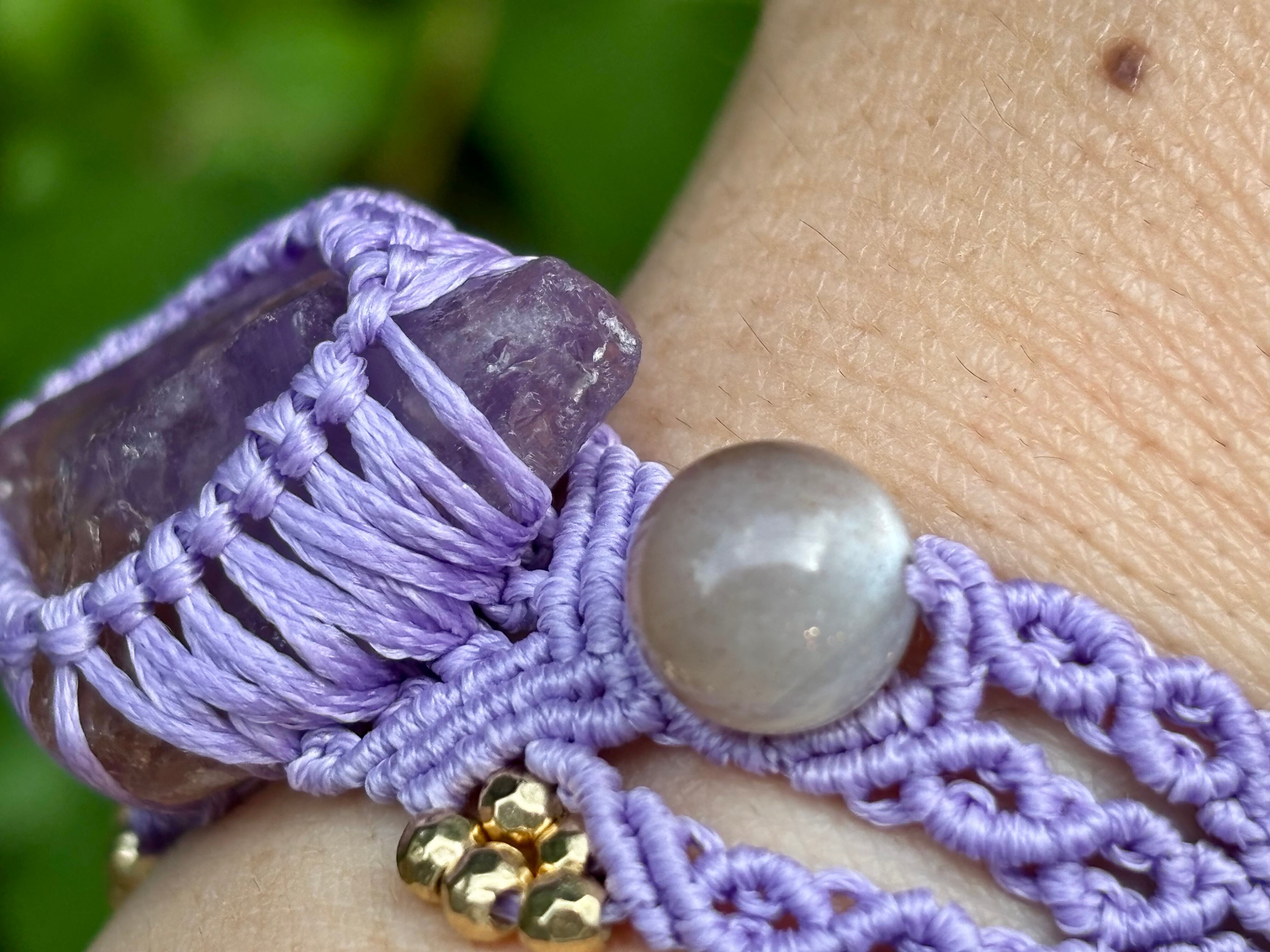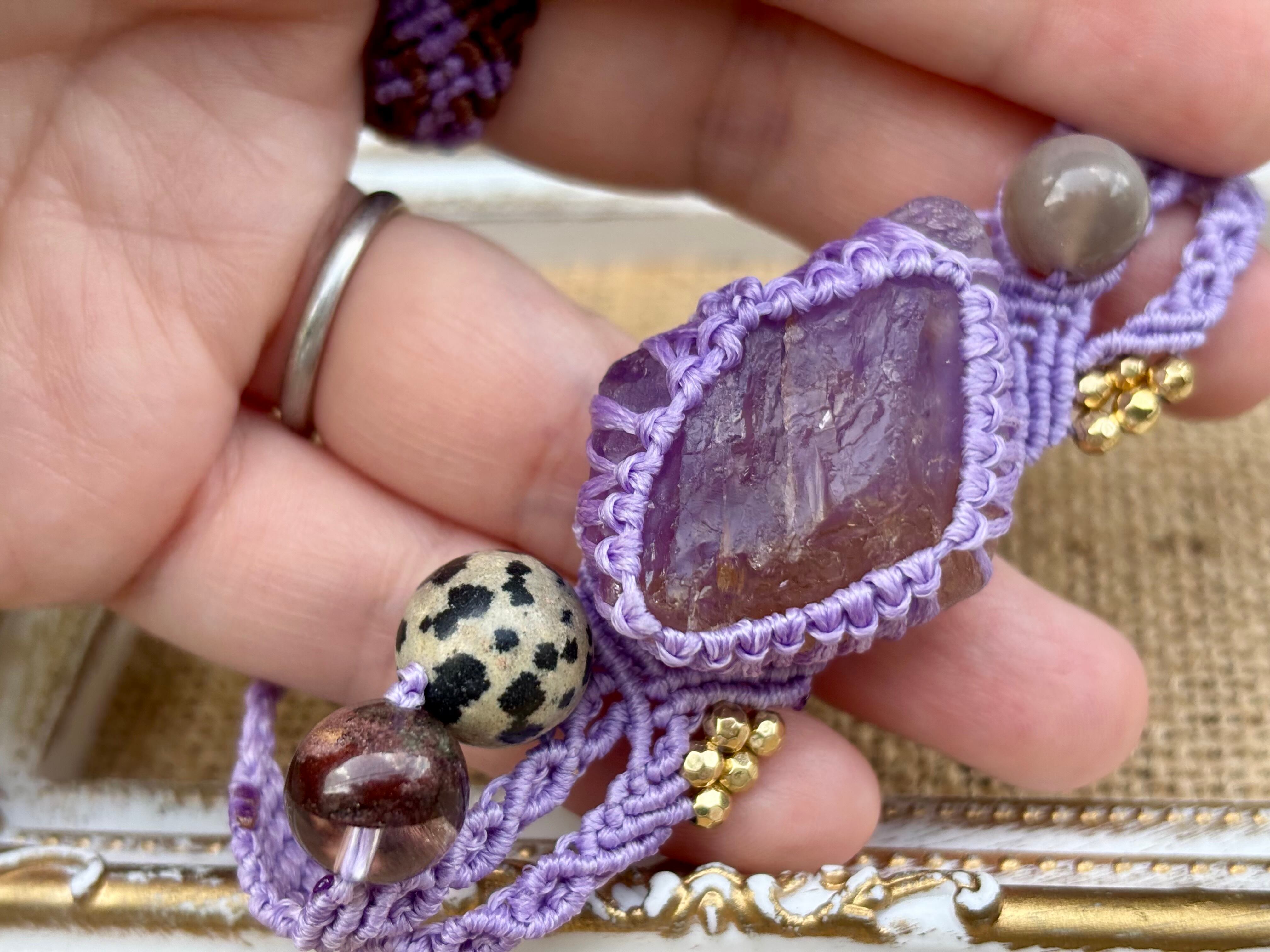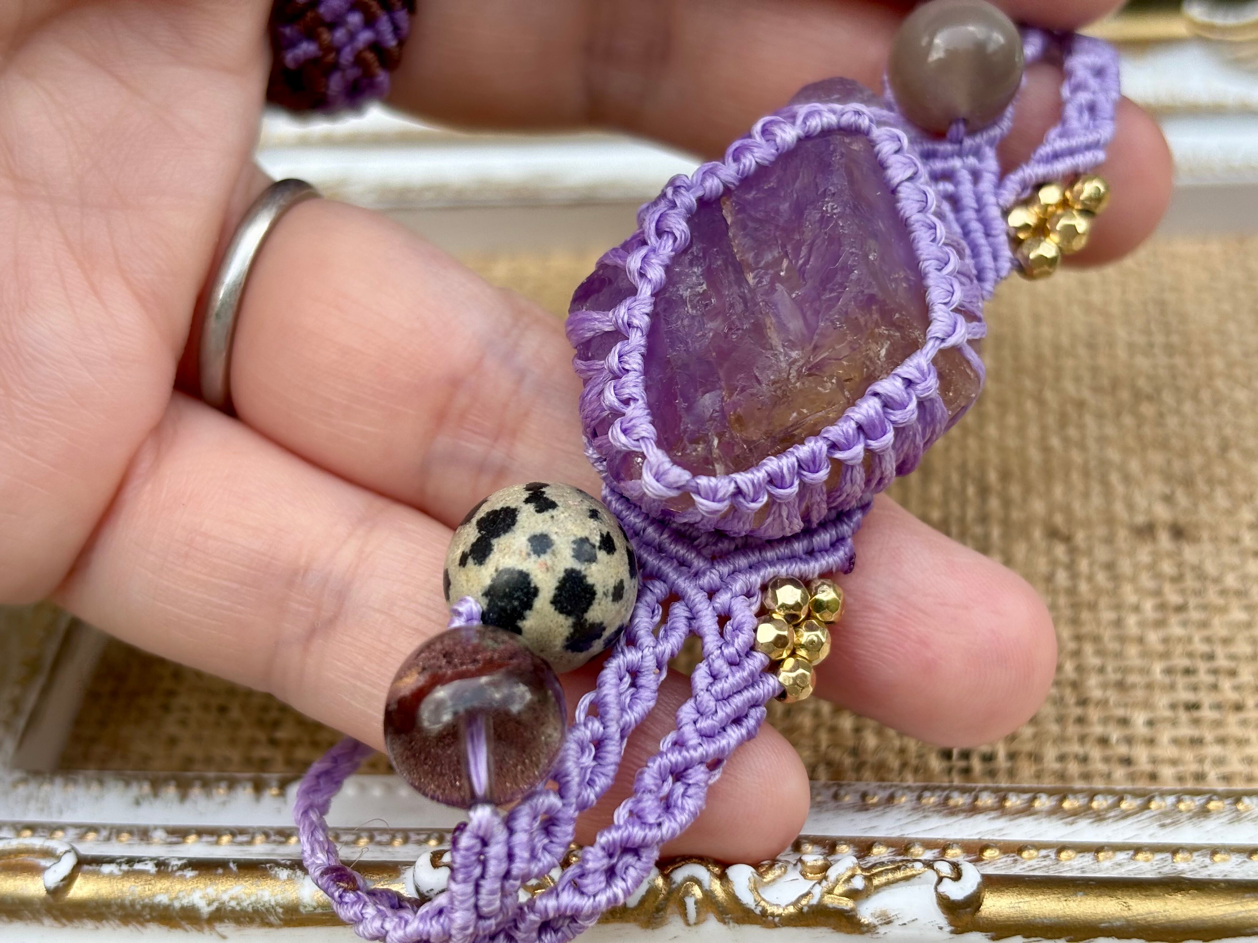 #766希少アメトリン原石一点物⭐︎(アメトリン×ダルメシアンジャスパー×ガーデンクォーツ×グレームーンストーン マクラメ編みブレスレット)