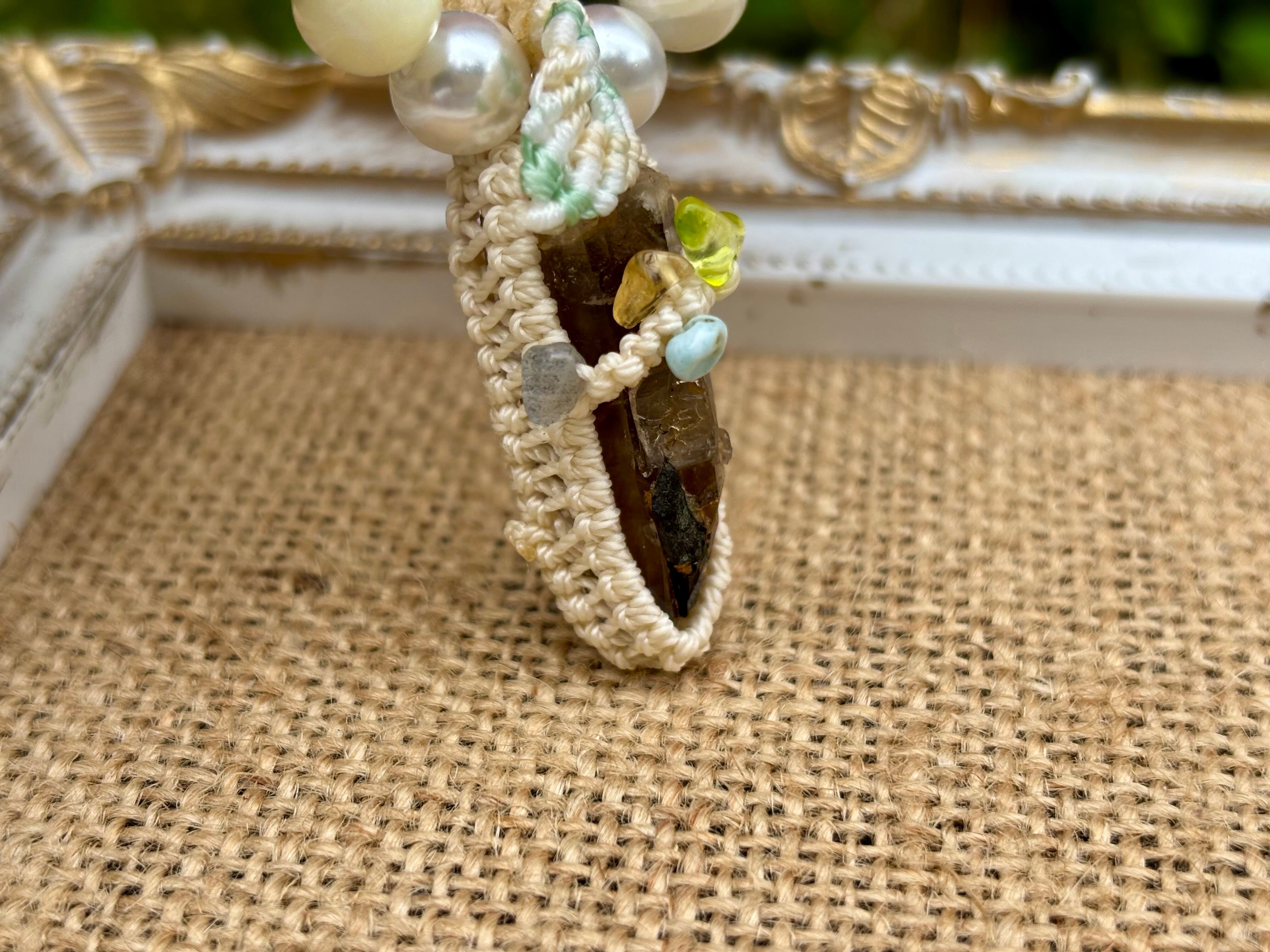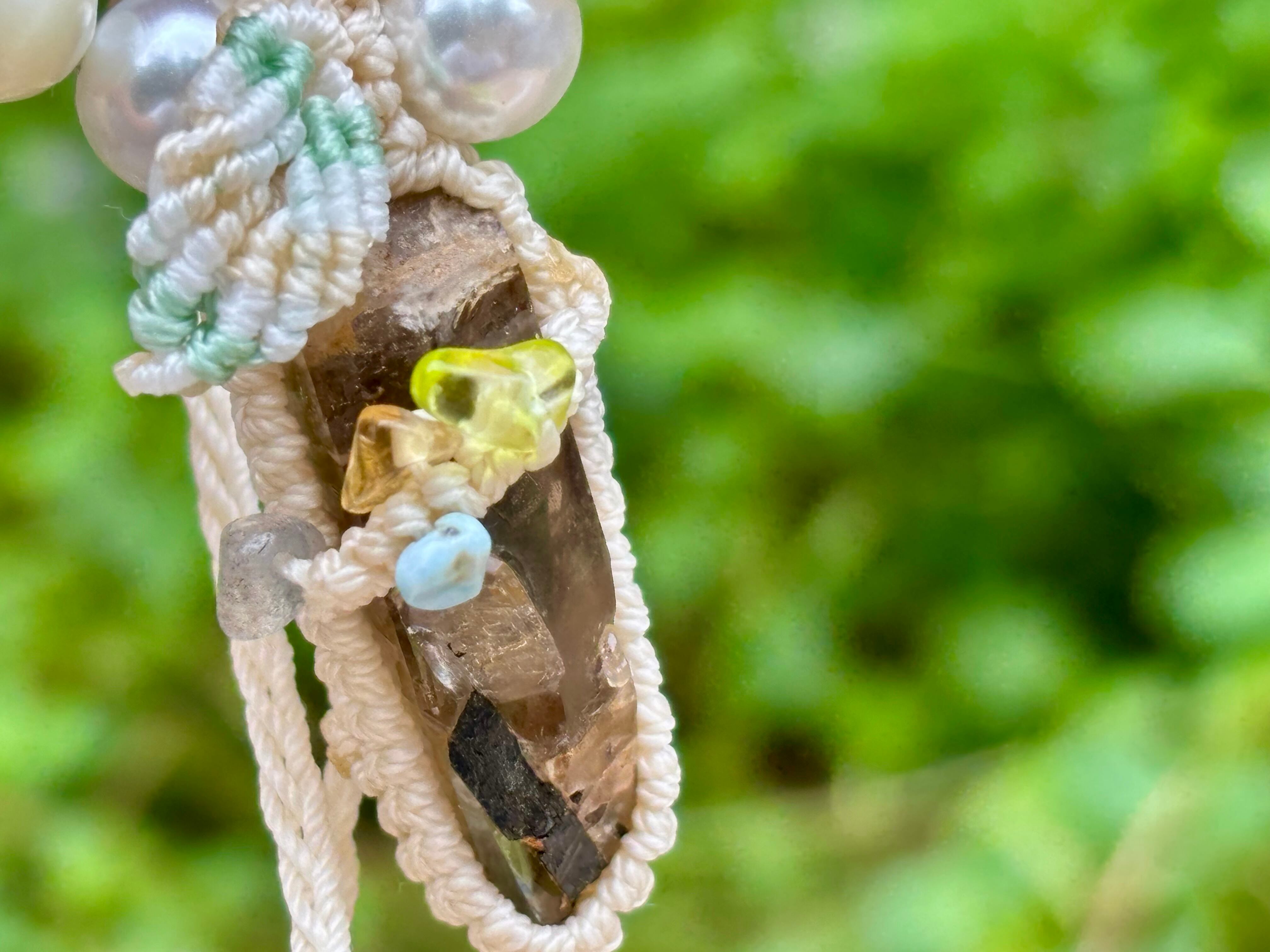 #770破邪・最強防御!エジリン・スモーキークォーツ一点物( エジリン・スモーキークォーツ×ラブラドライト×ペリドット×シトリン×ラリマー マクラメ編みネックレス)