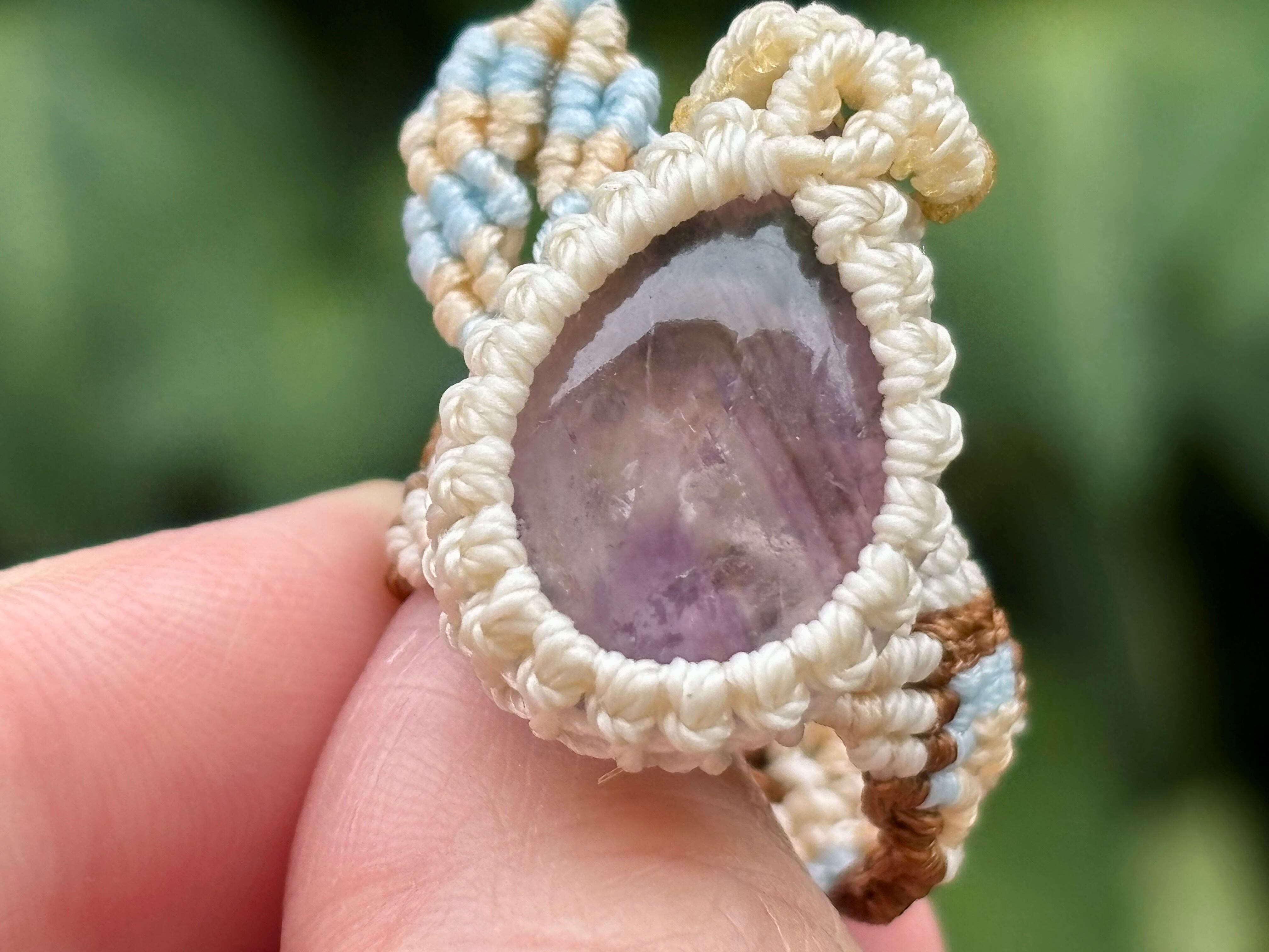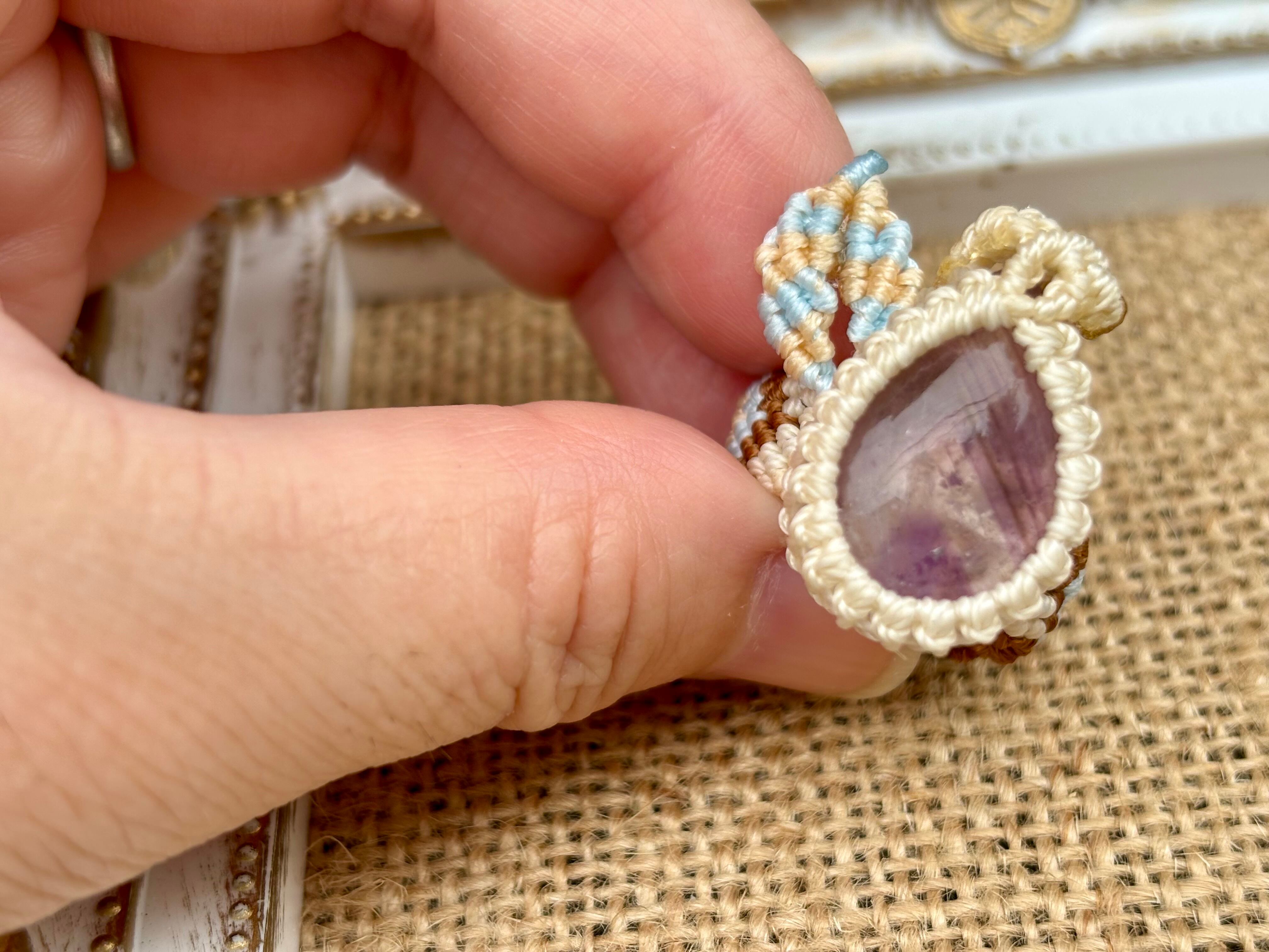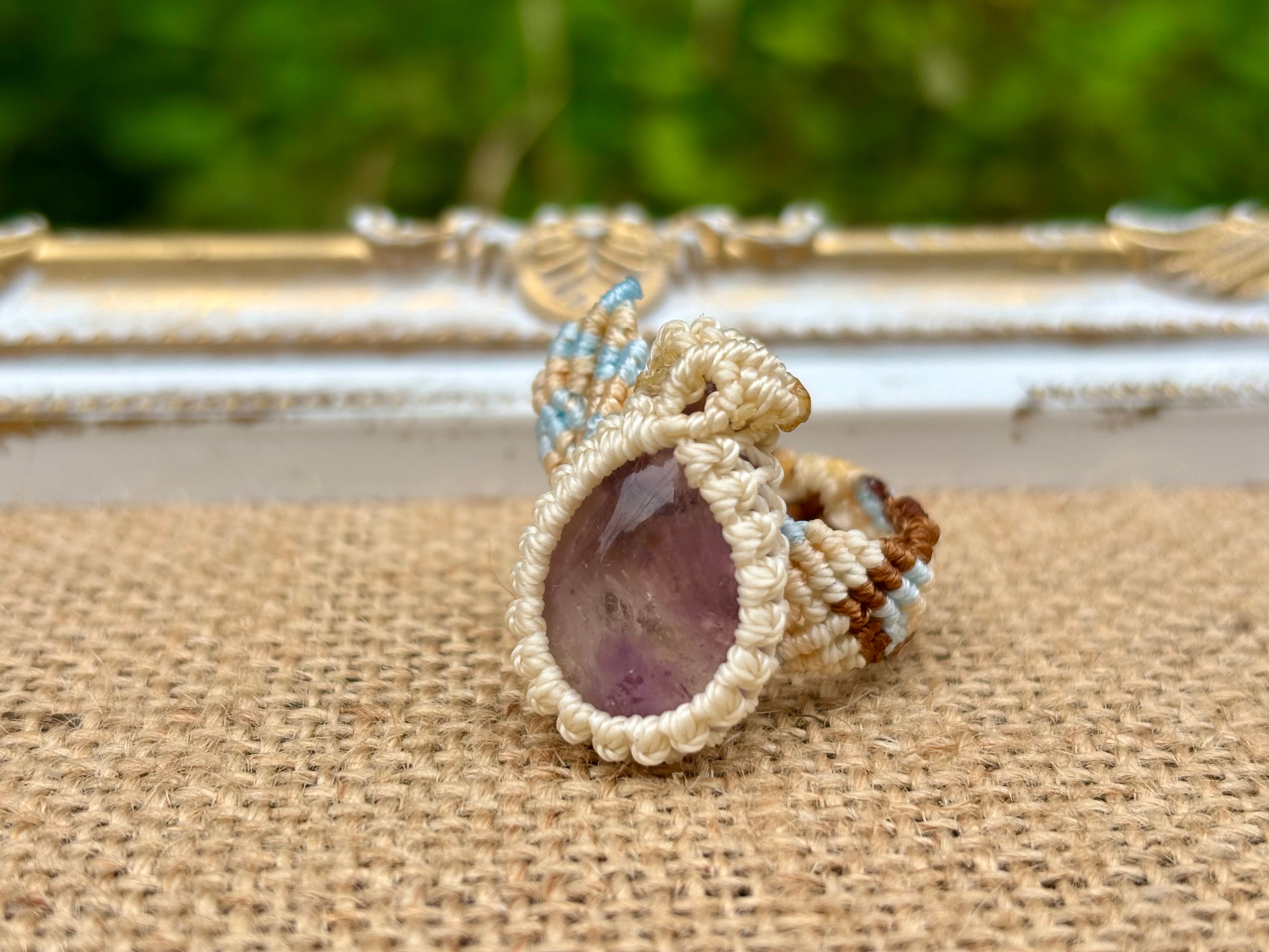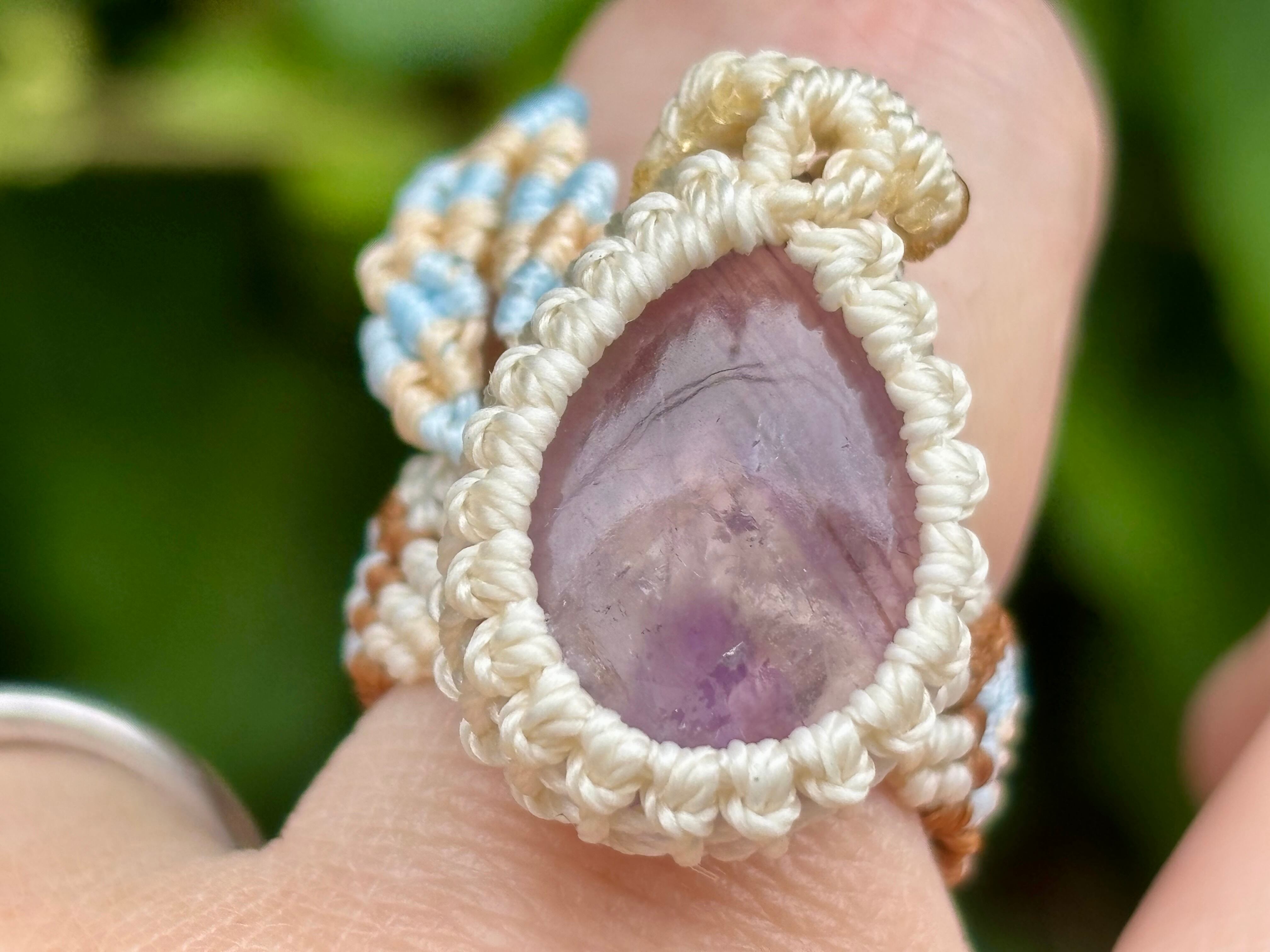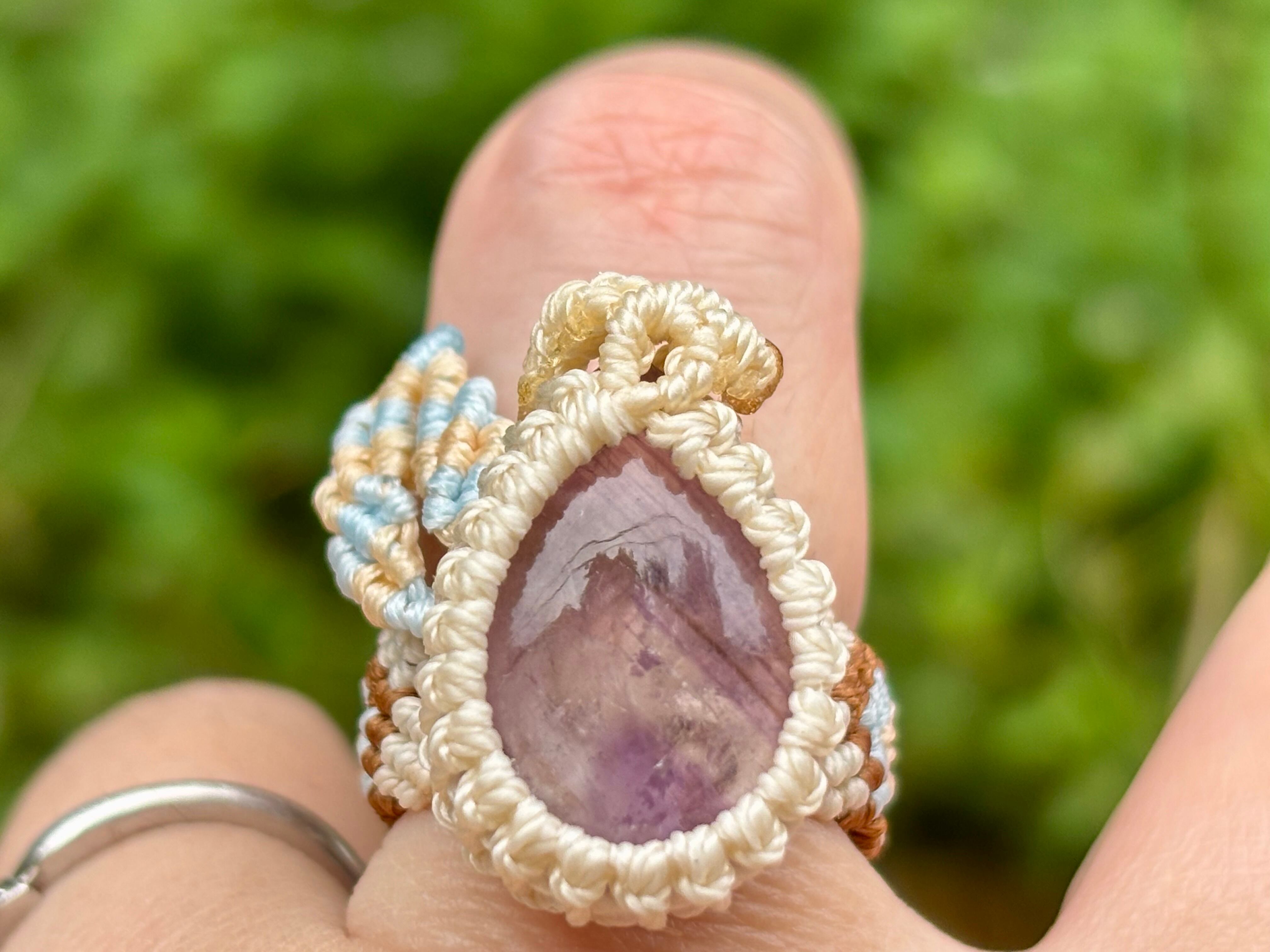#774天然ファントムアメジスト一点物⭐︎(ファントムアメジスト マクラメ編みリング/指輪)
