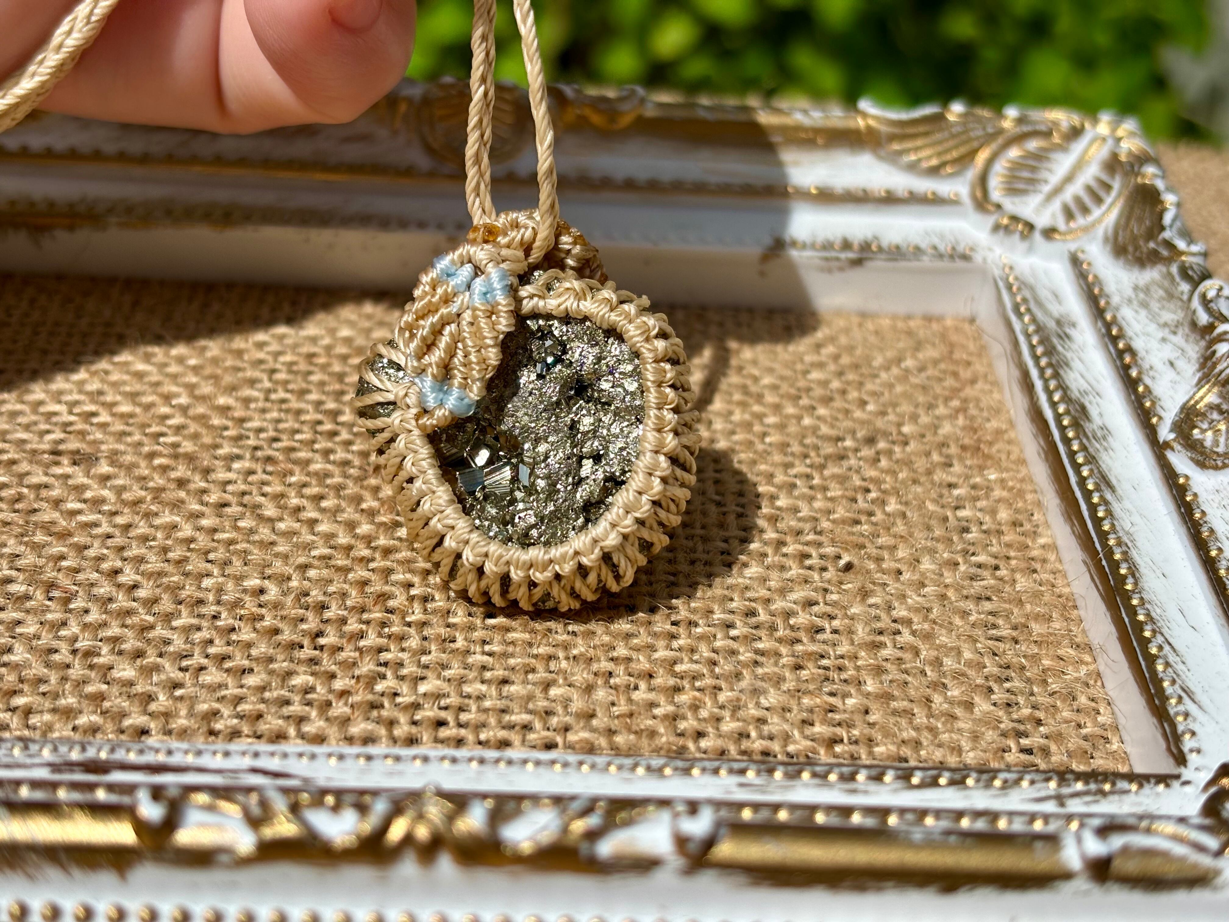 #776天然パイライト原石一点物⭐︎(パイライト マクラメ編みネックレス)