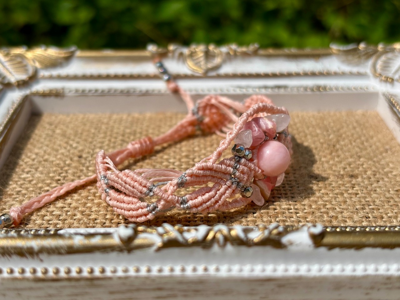 #780最高級ピンクオパール5A♡(ピンクオパール×インカローズ×ローズクォーツ マクラメ編みブレスレット)