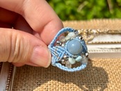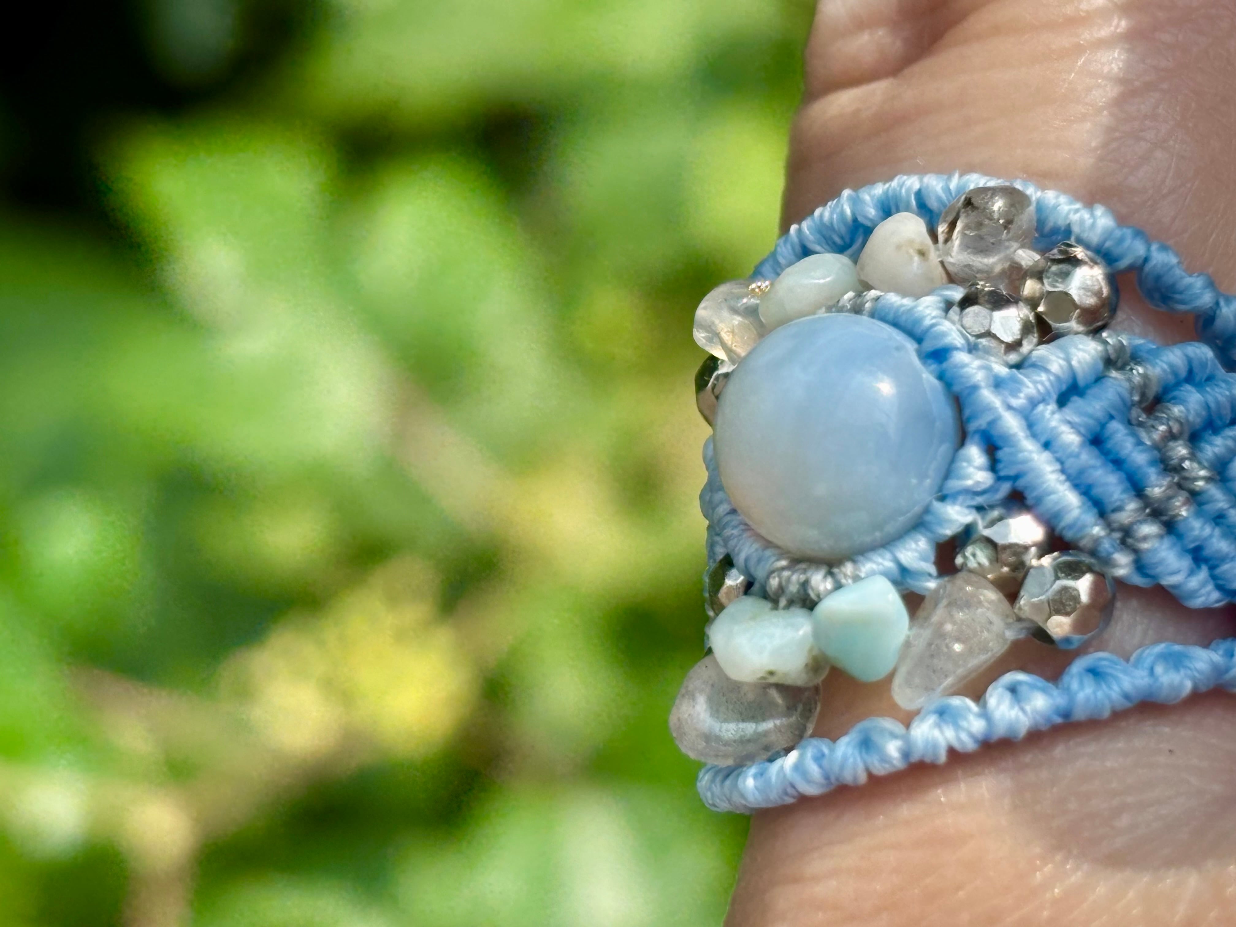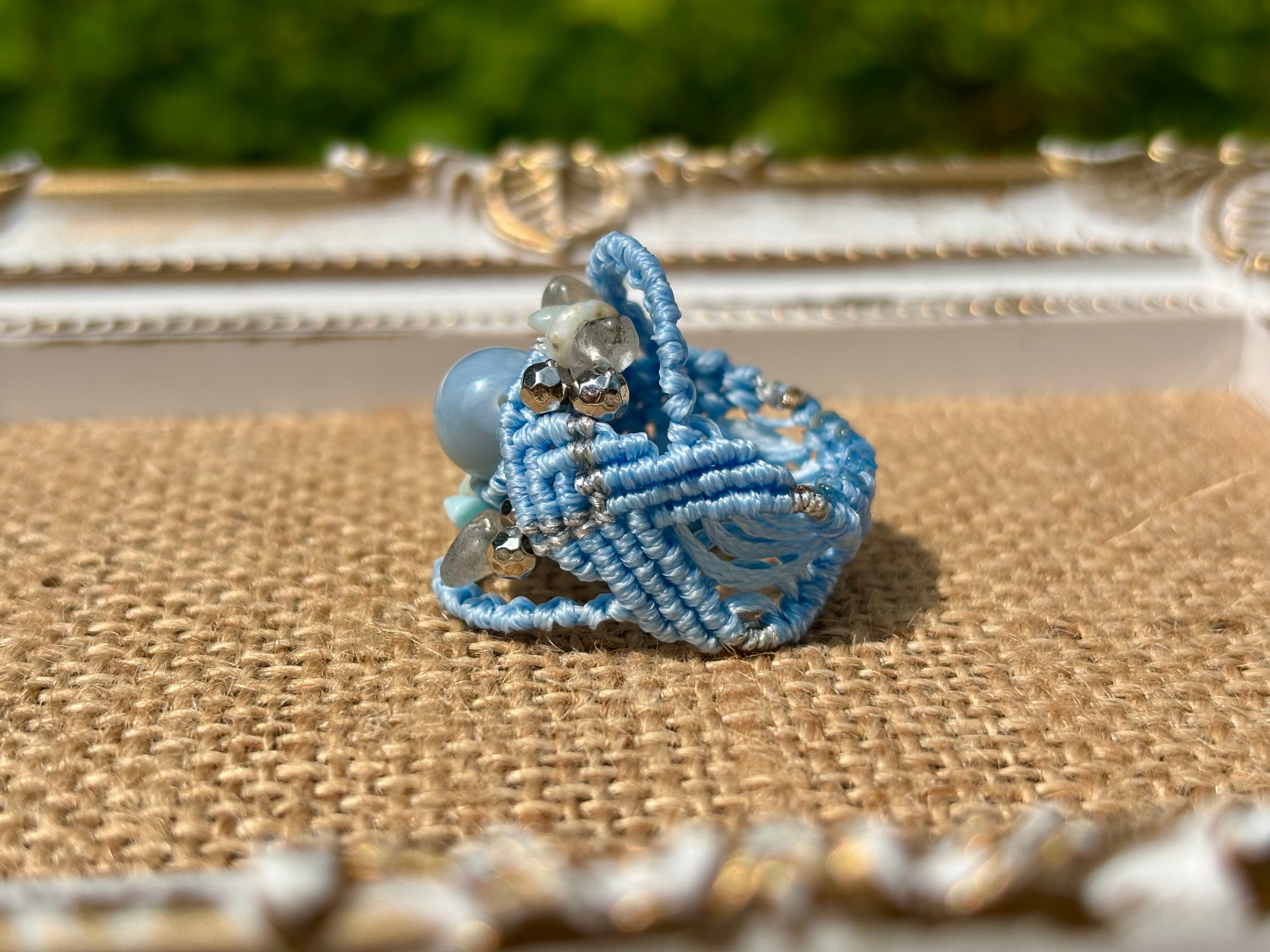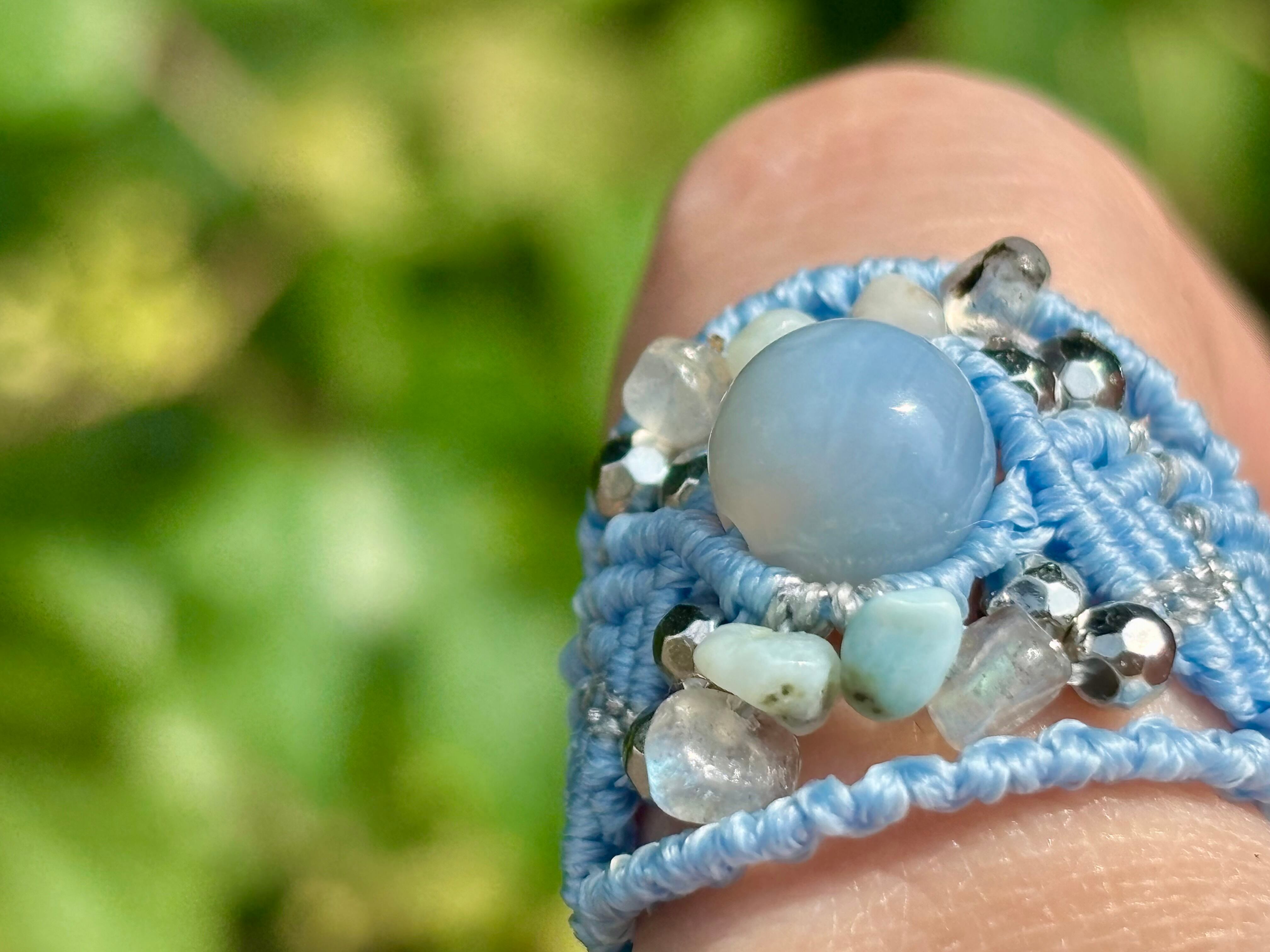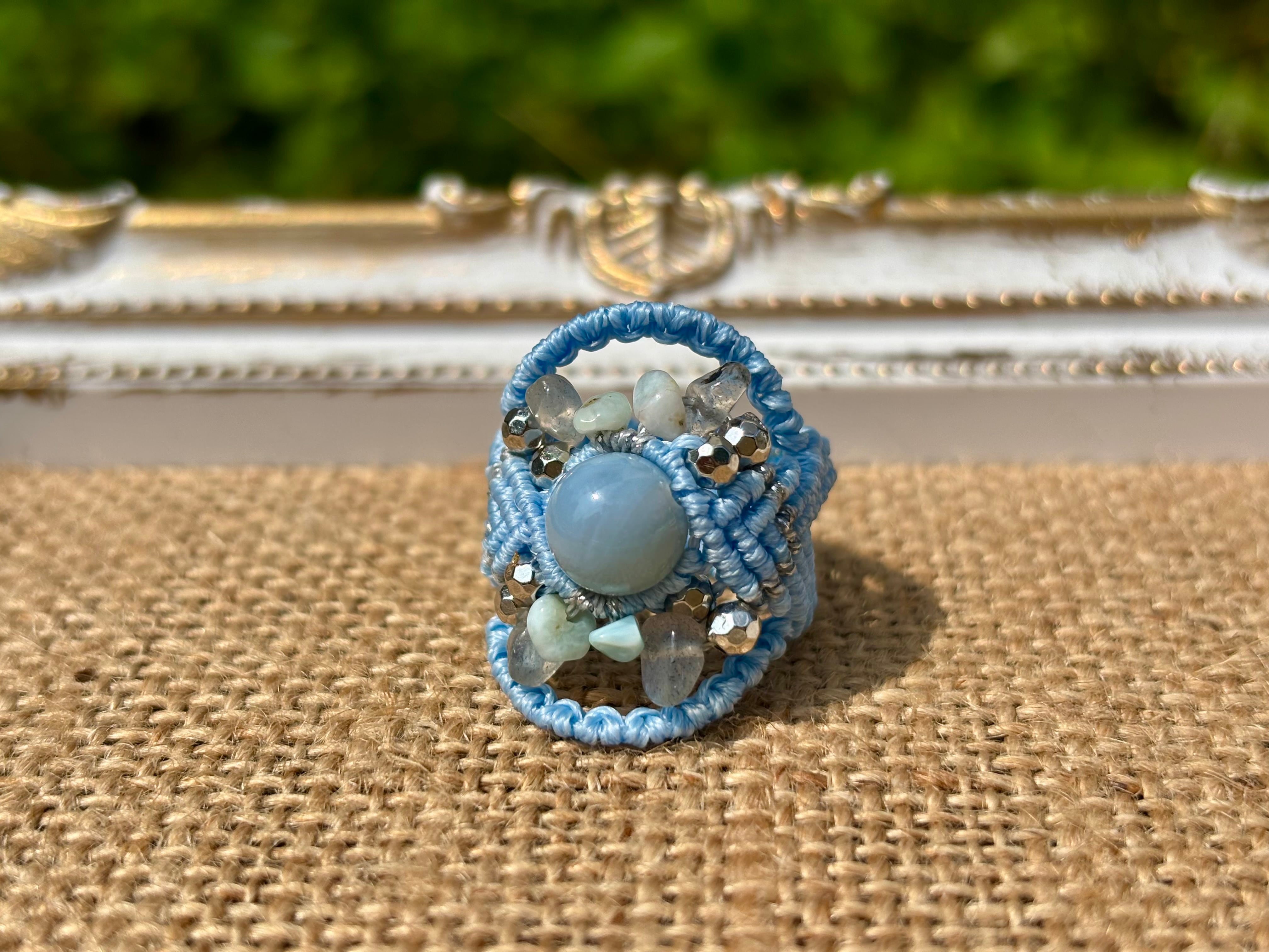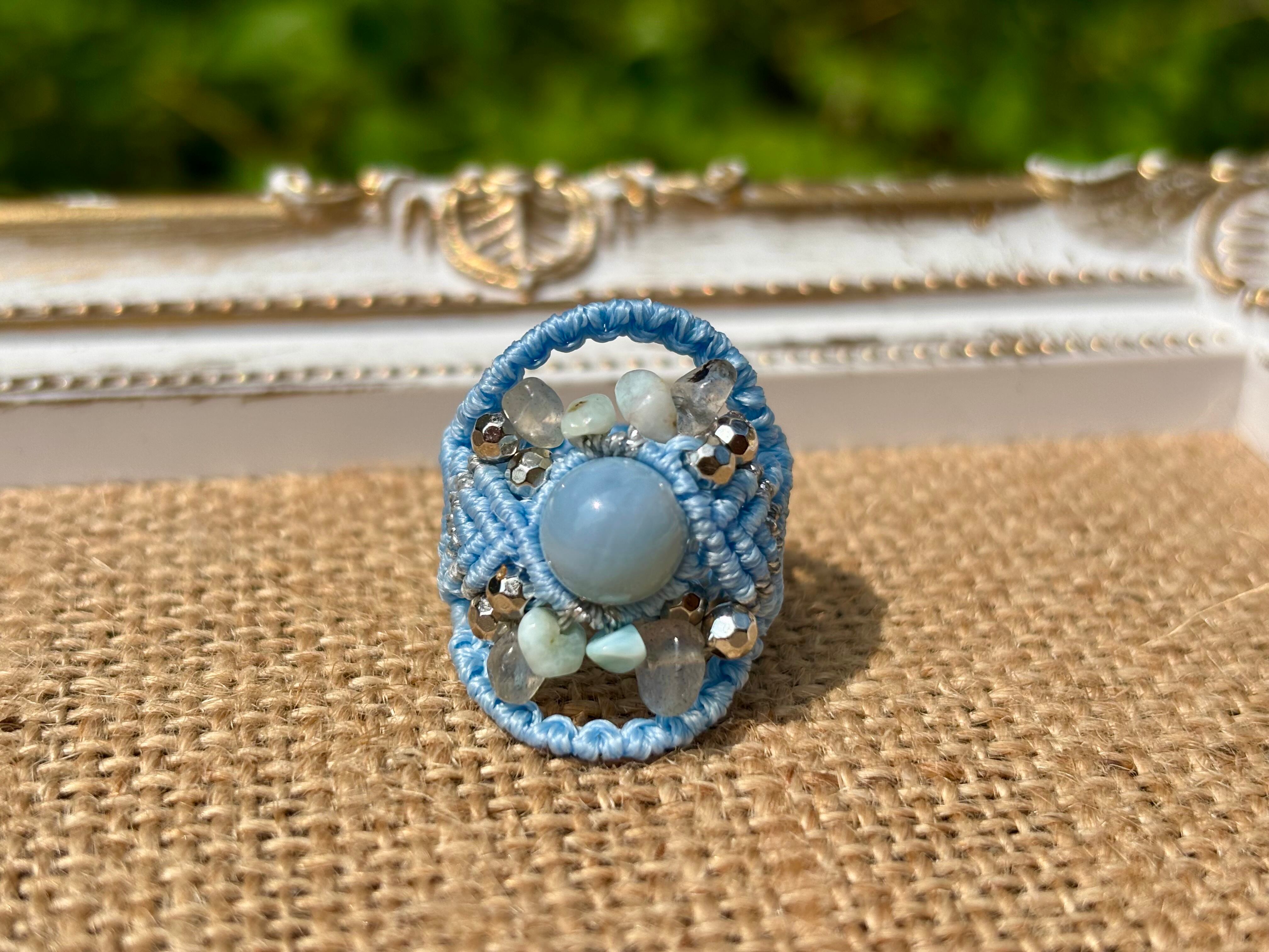 #783天然ブルーオパール(ブルーオパール×ラリマー×ラブラドライト マクラメ編みリング/指輪)