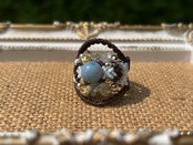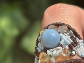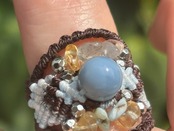 #785天然ブルーオパール(ブルーオパール×ラリマー×ラブラドライト×シトリン マクラメ編みリング/指輪)