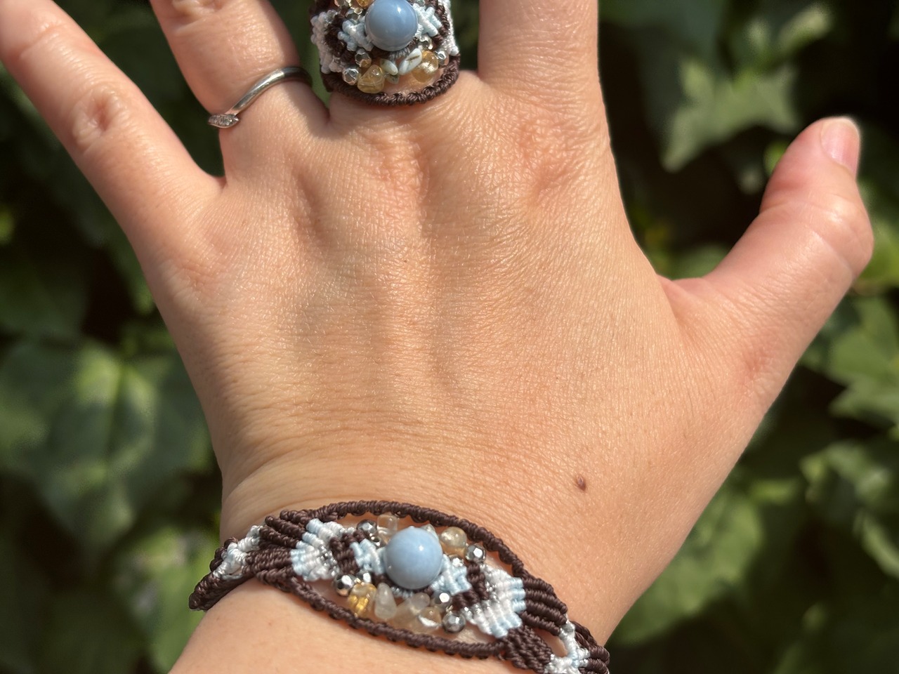 #786天然ブルーオパール(ブルーオパール×ラリマー×ラブラドライト×シトリン マクラメ編みブレスレット)