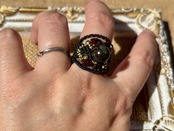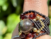 #787遊色マトリクスオパール一点物(マトリクスオパール×ガーネット マクラメ編みリング/指輪)