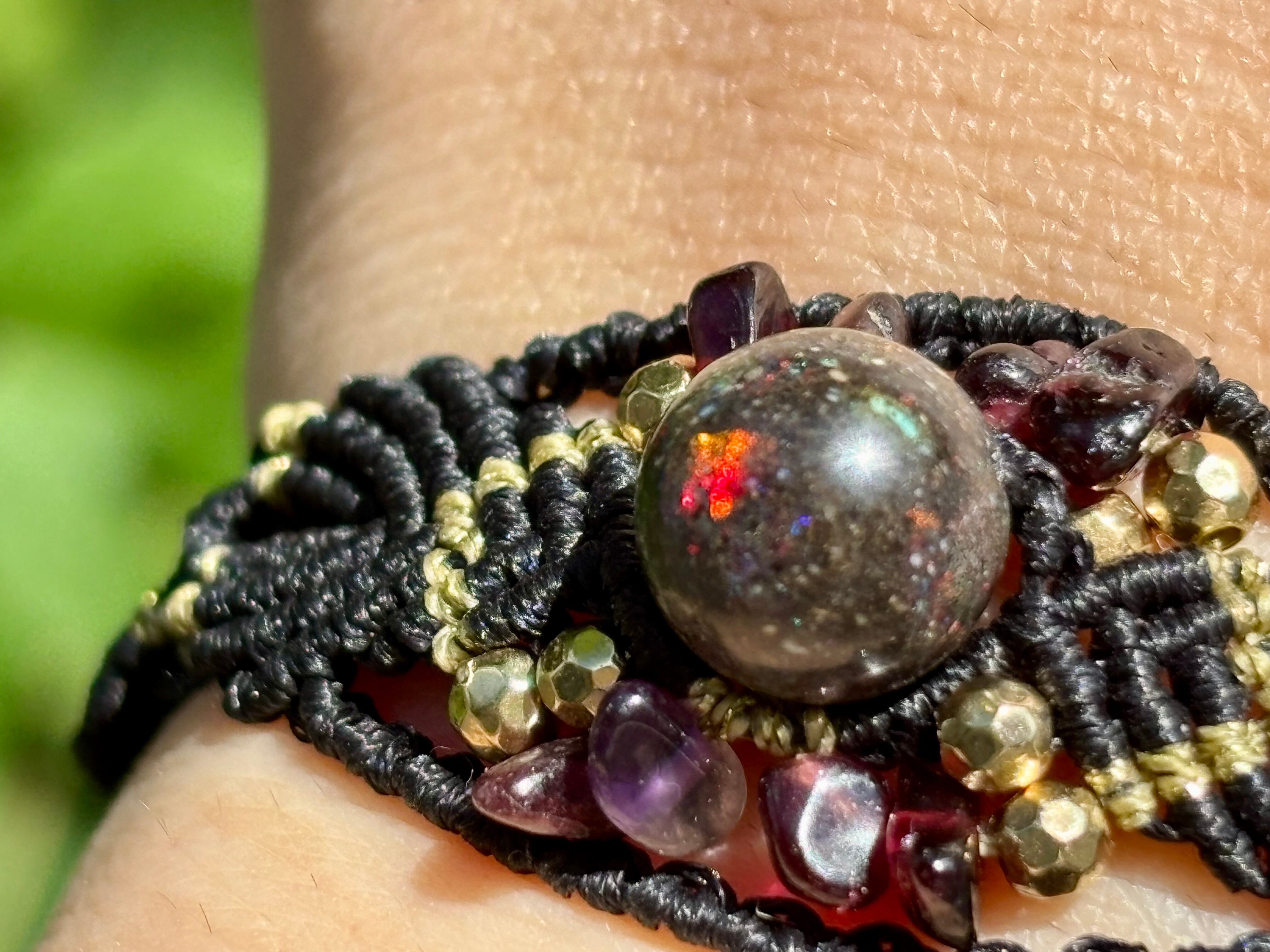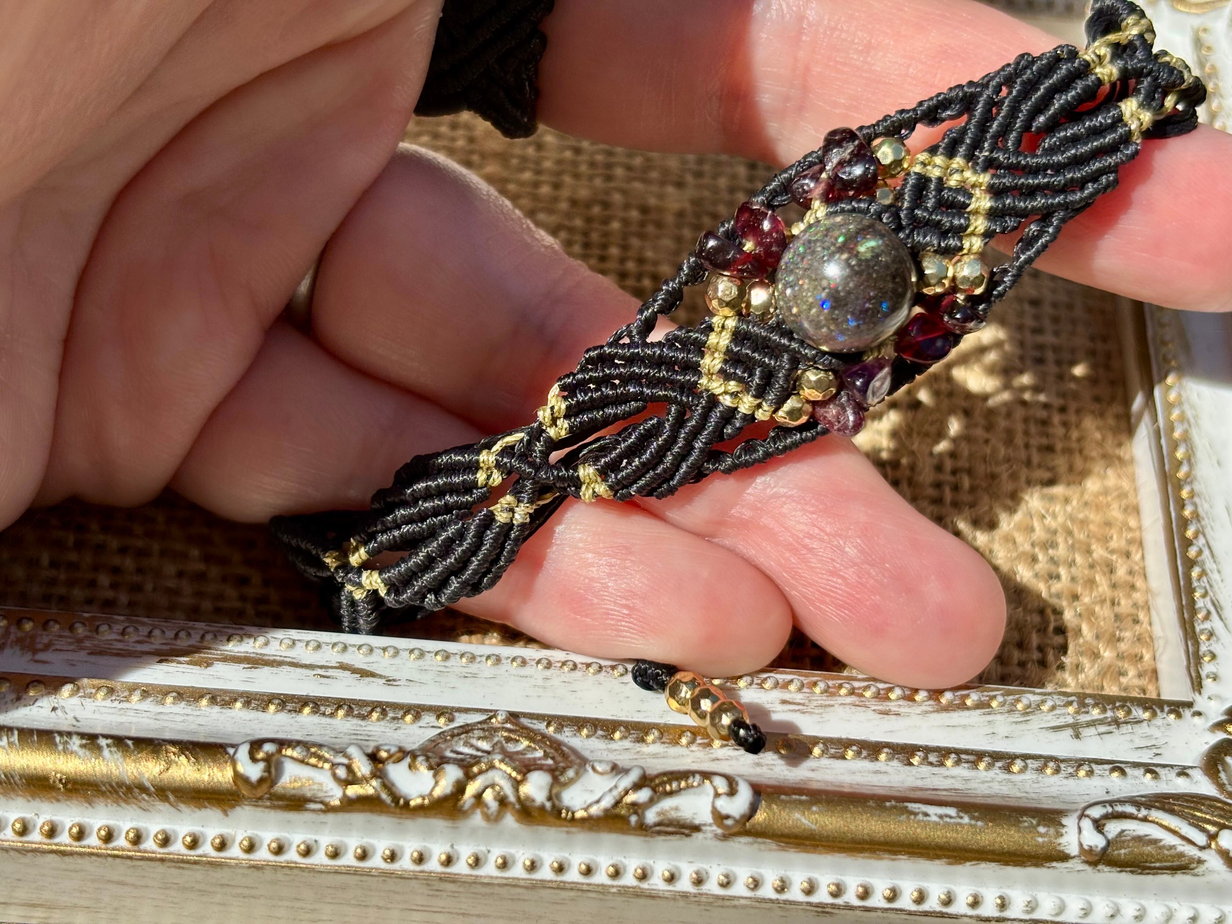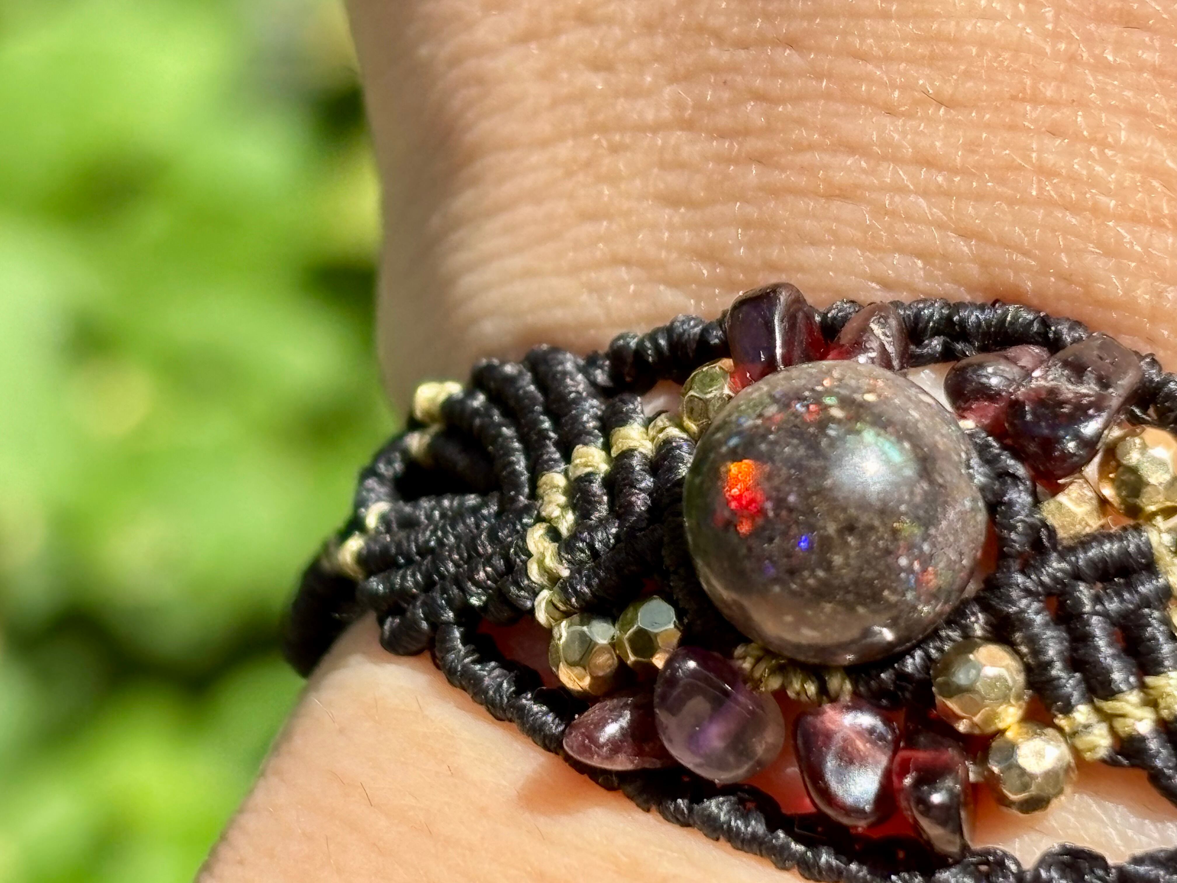 #788遊色マトリクスオパール一点物(マトリクスオパール×ガーネット マクラメ編みブレスレット)