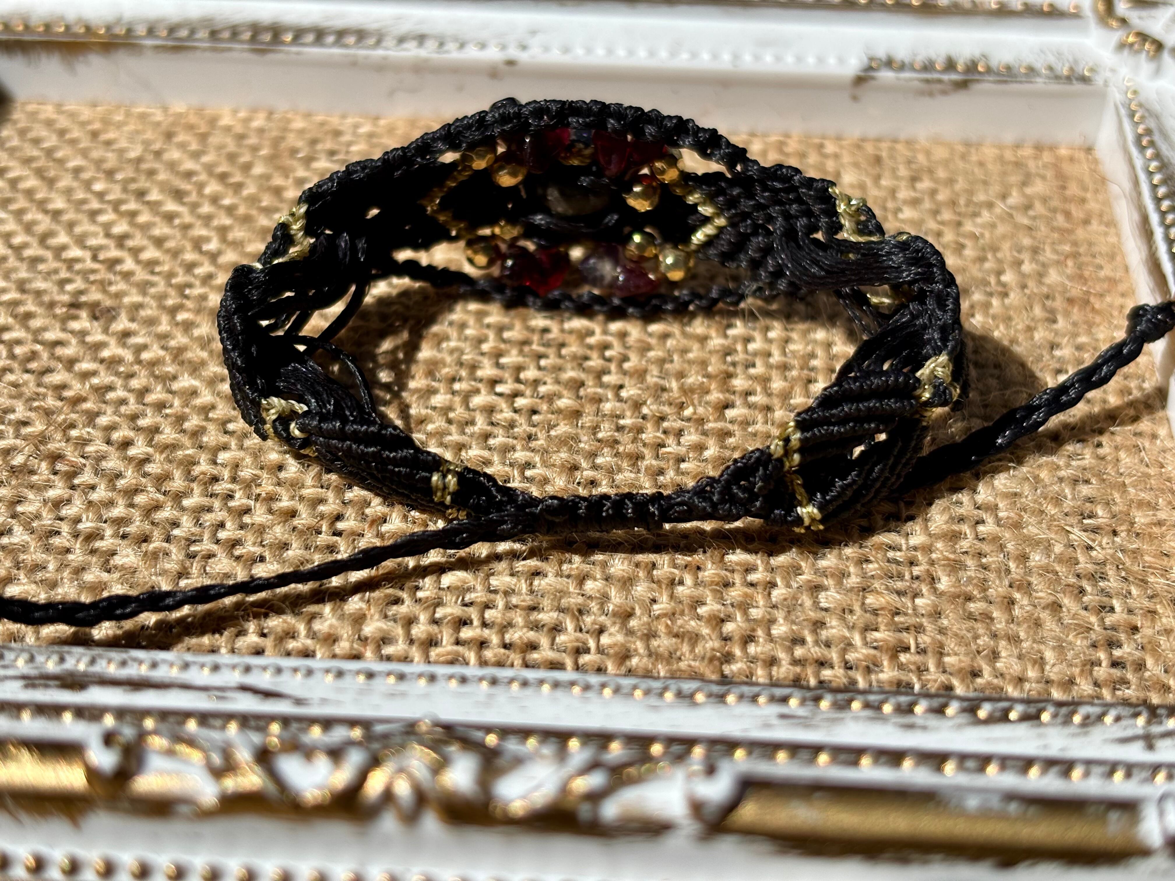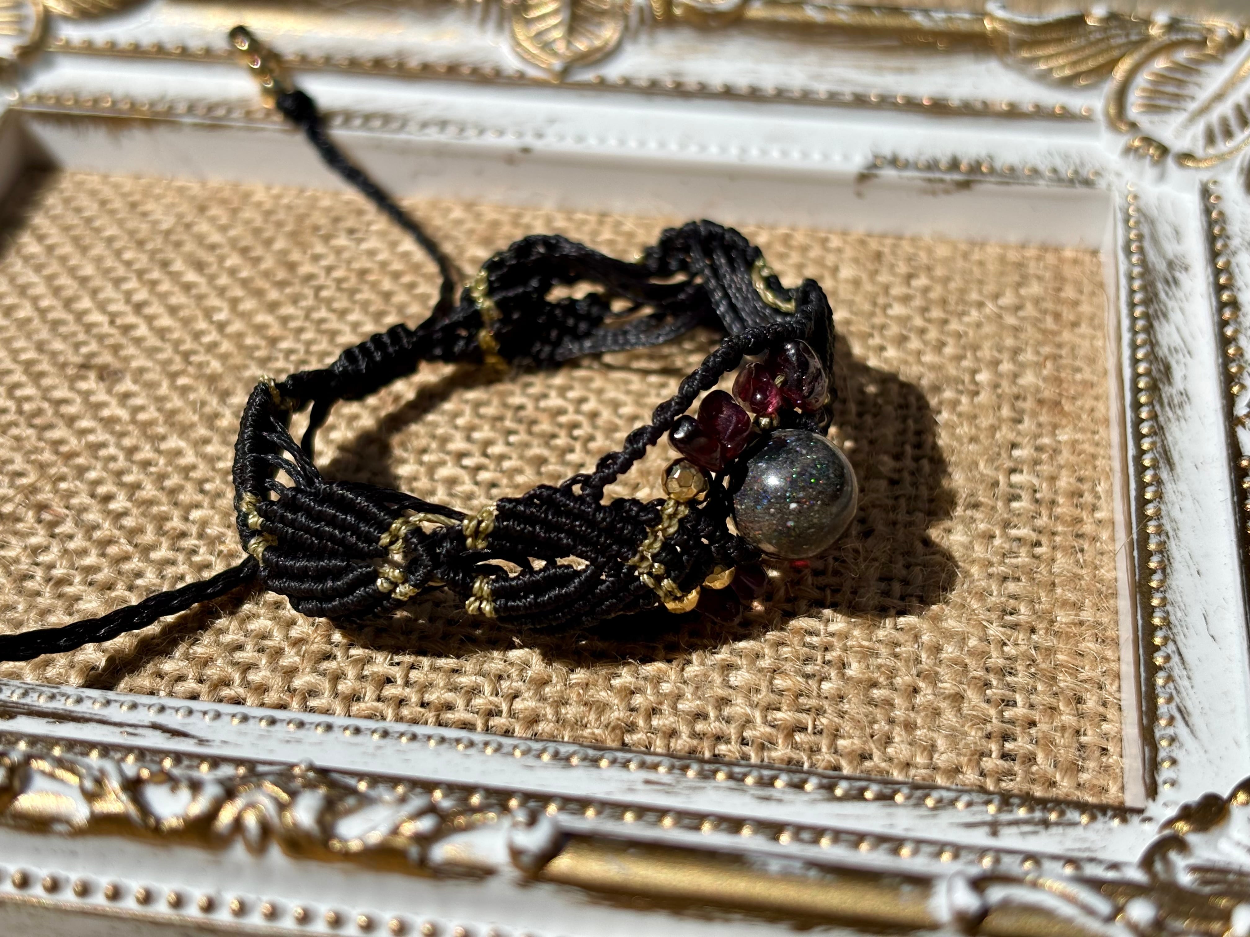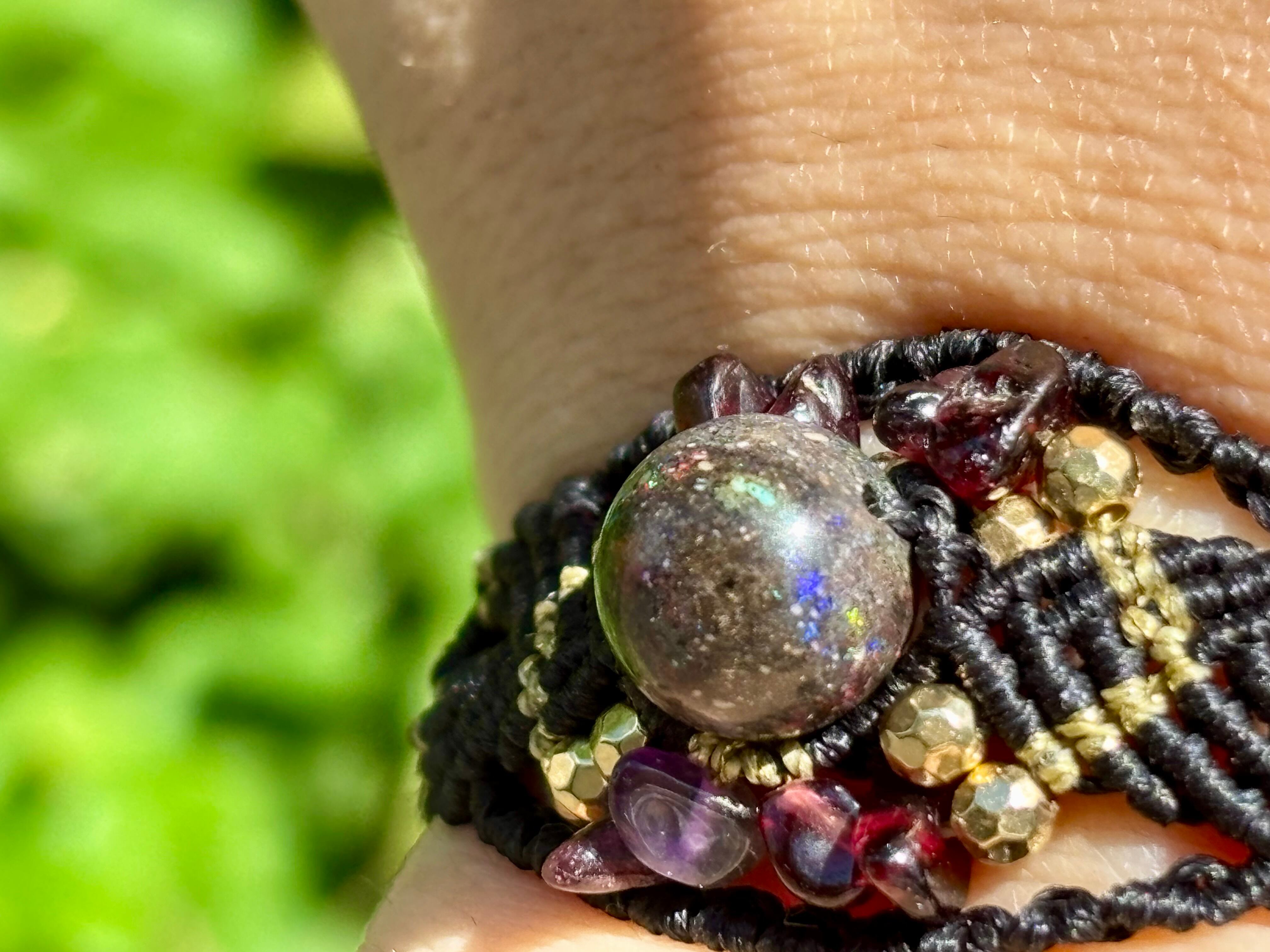 #788遊色マトリクスオパール一点物(マトリクスオパール×ガーネット マクラメ編みブレスレット)