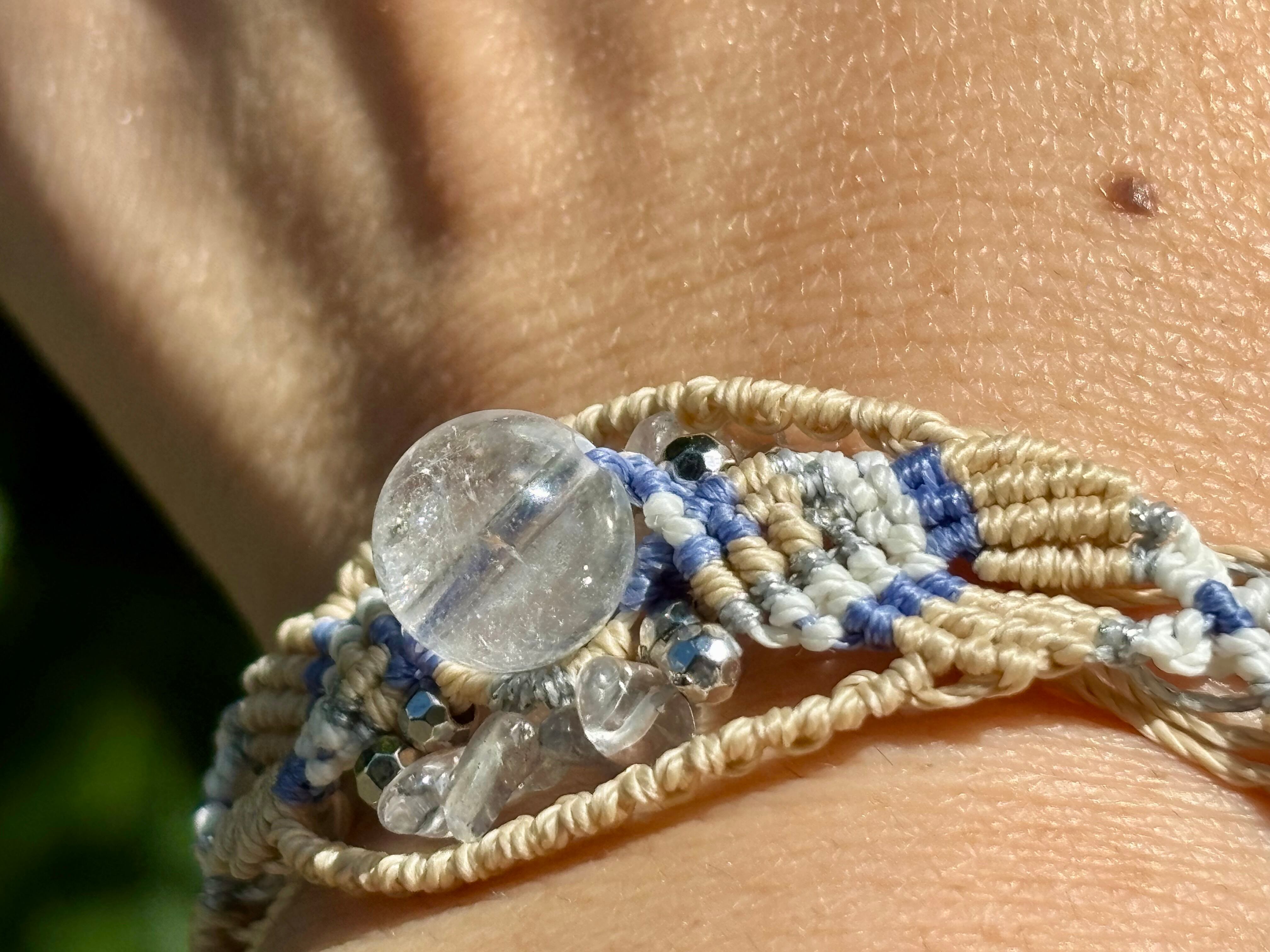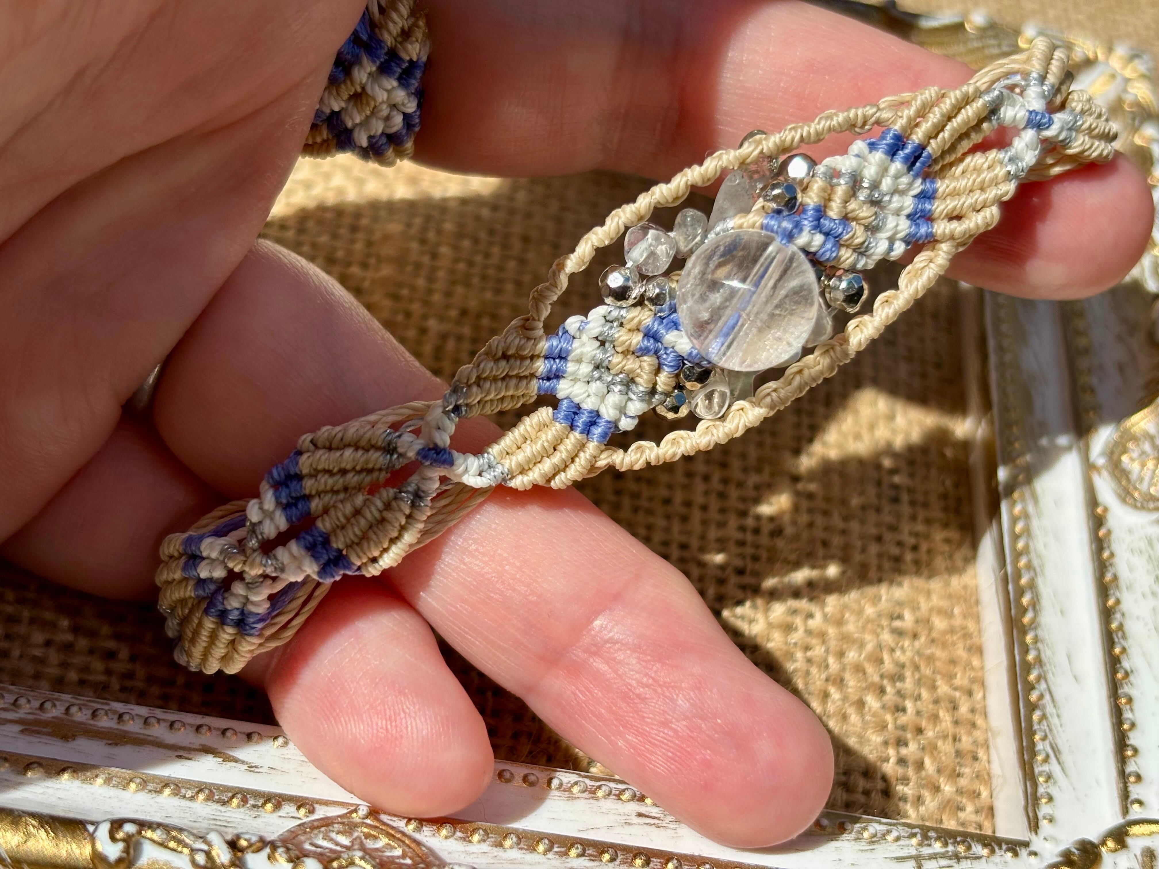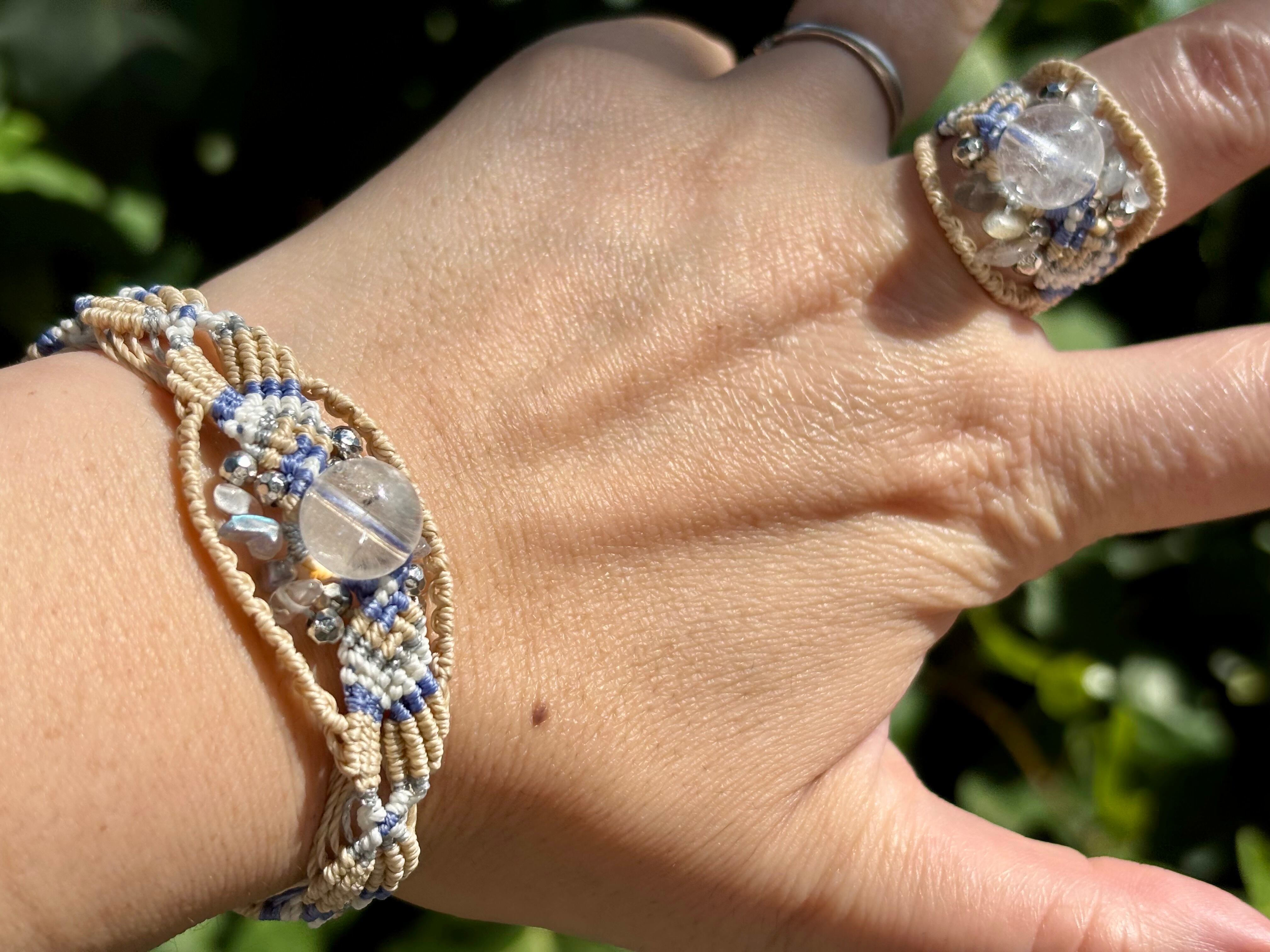 #792聖地⭐︎マニカラン水晶一点物(マニカラン水晶×水晶×ラブラドライト マクラメ編みリング/指輪)