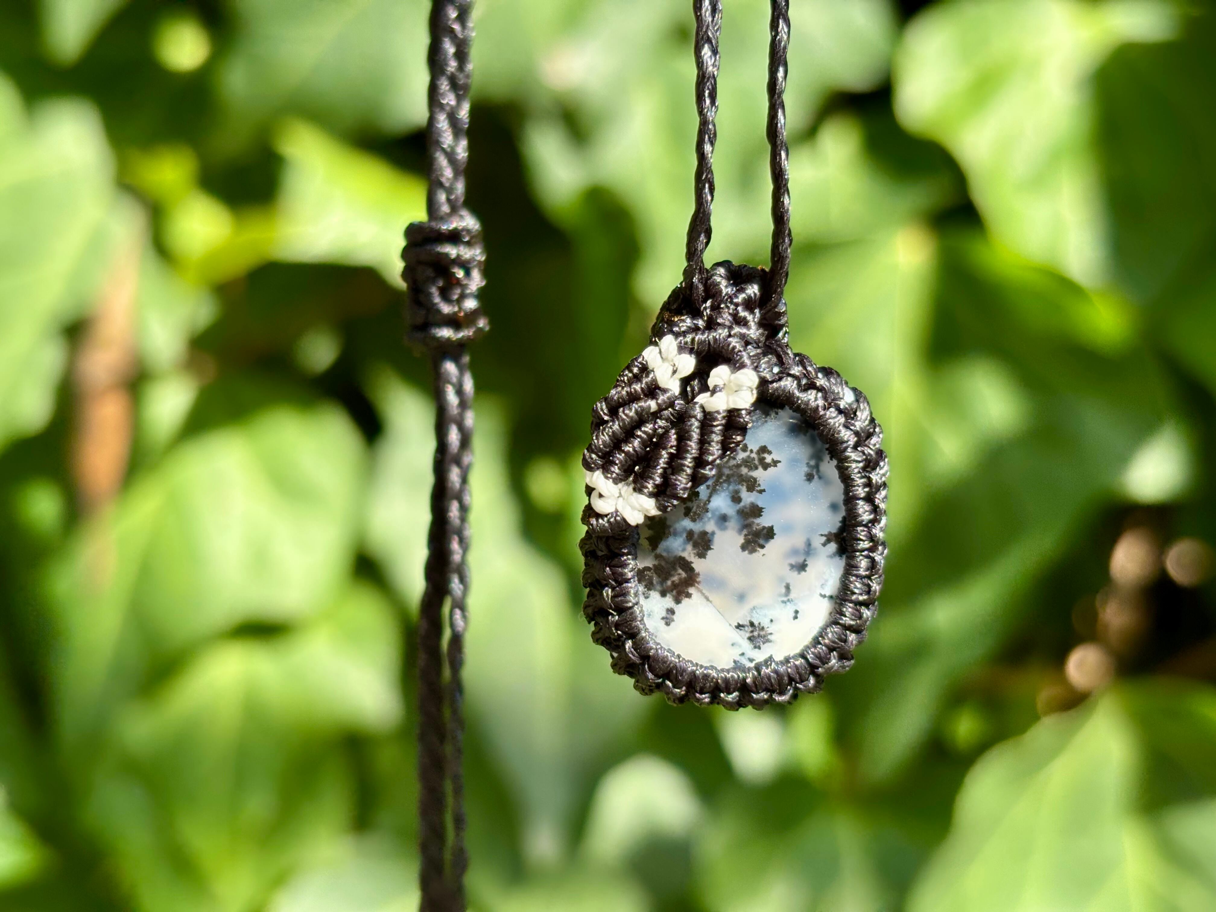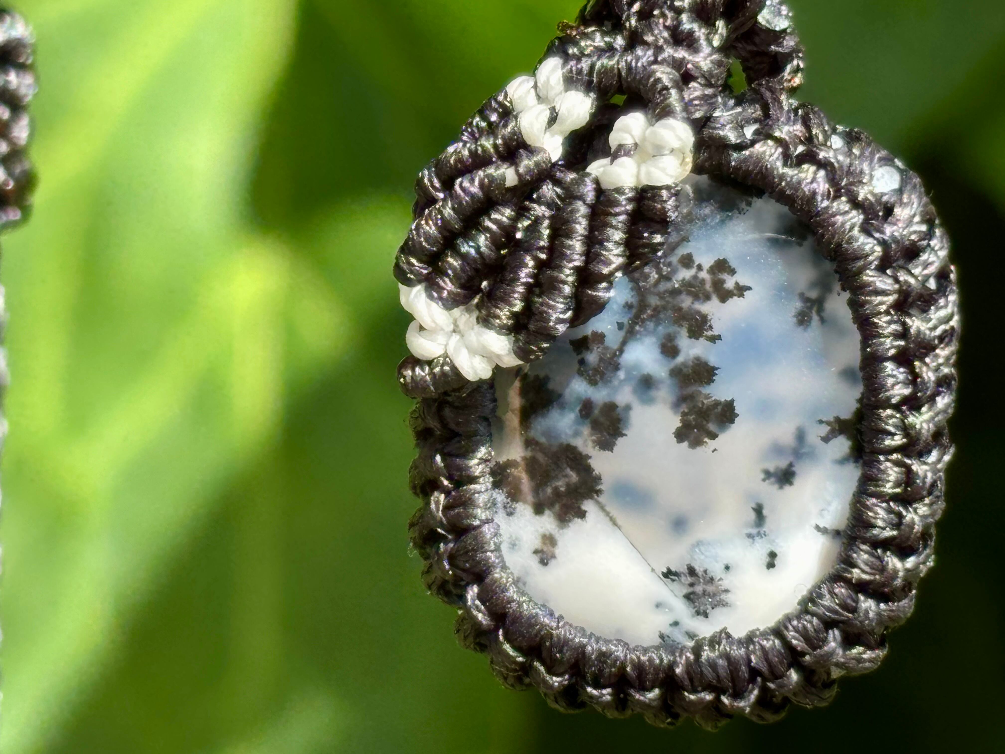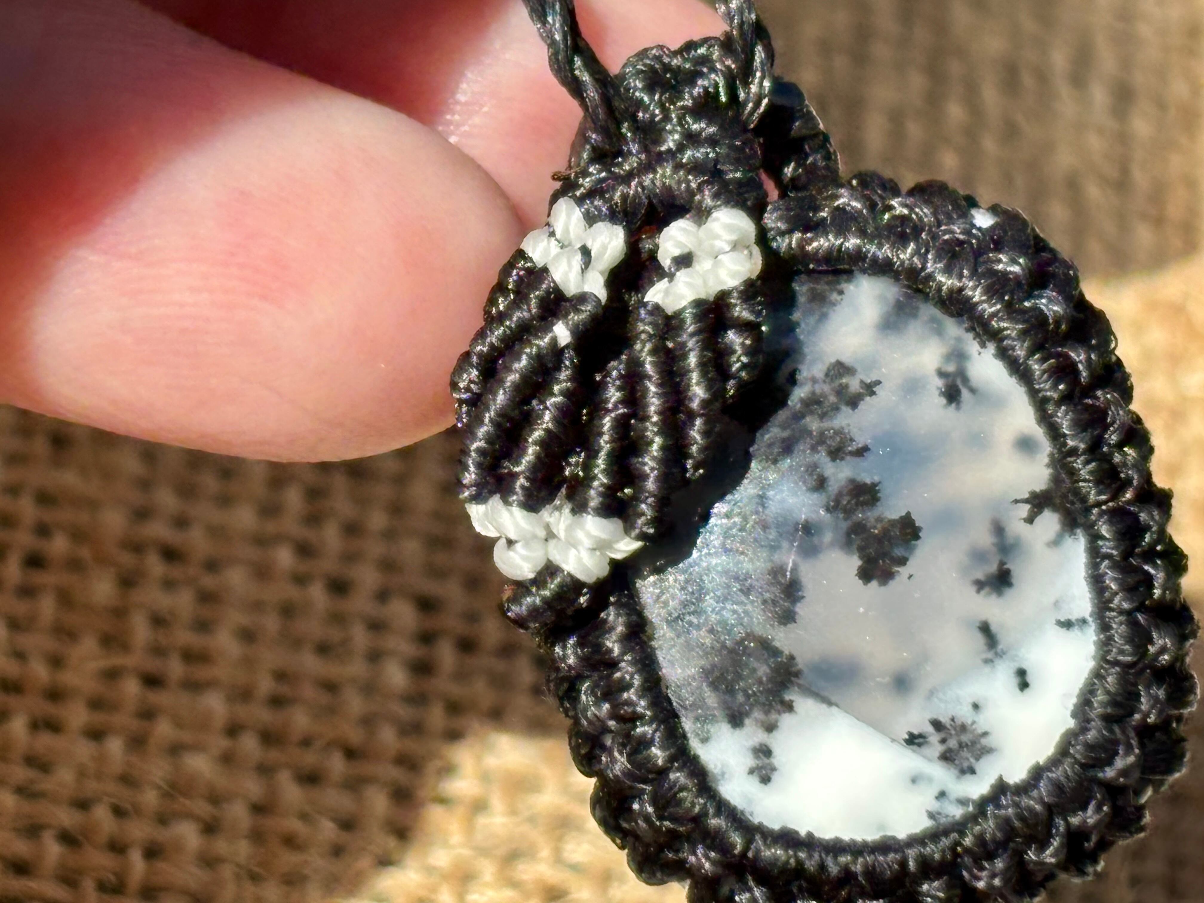 #793天然デンドリックオパール一点物(デンドリックオパール×ガーネット マクラメ編みネックレス)