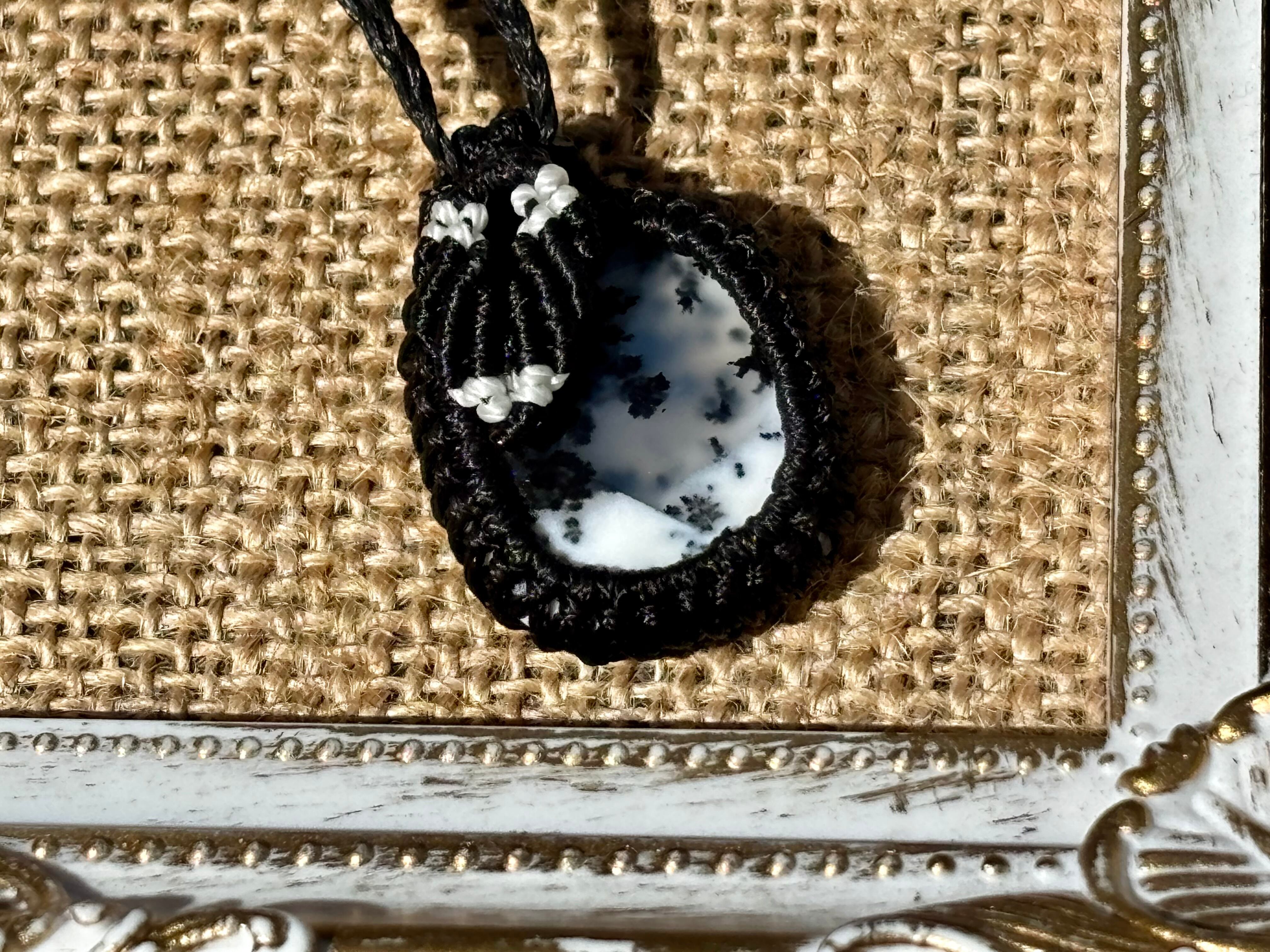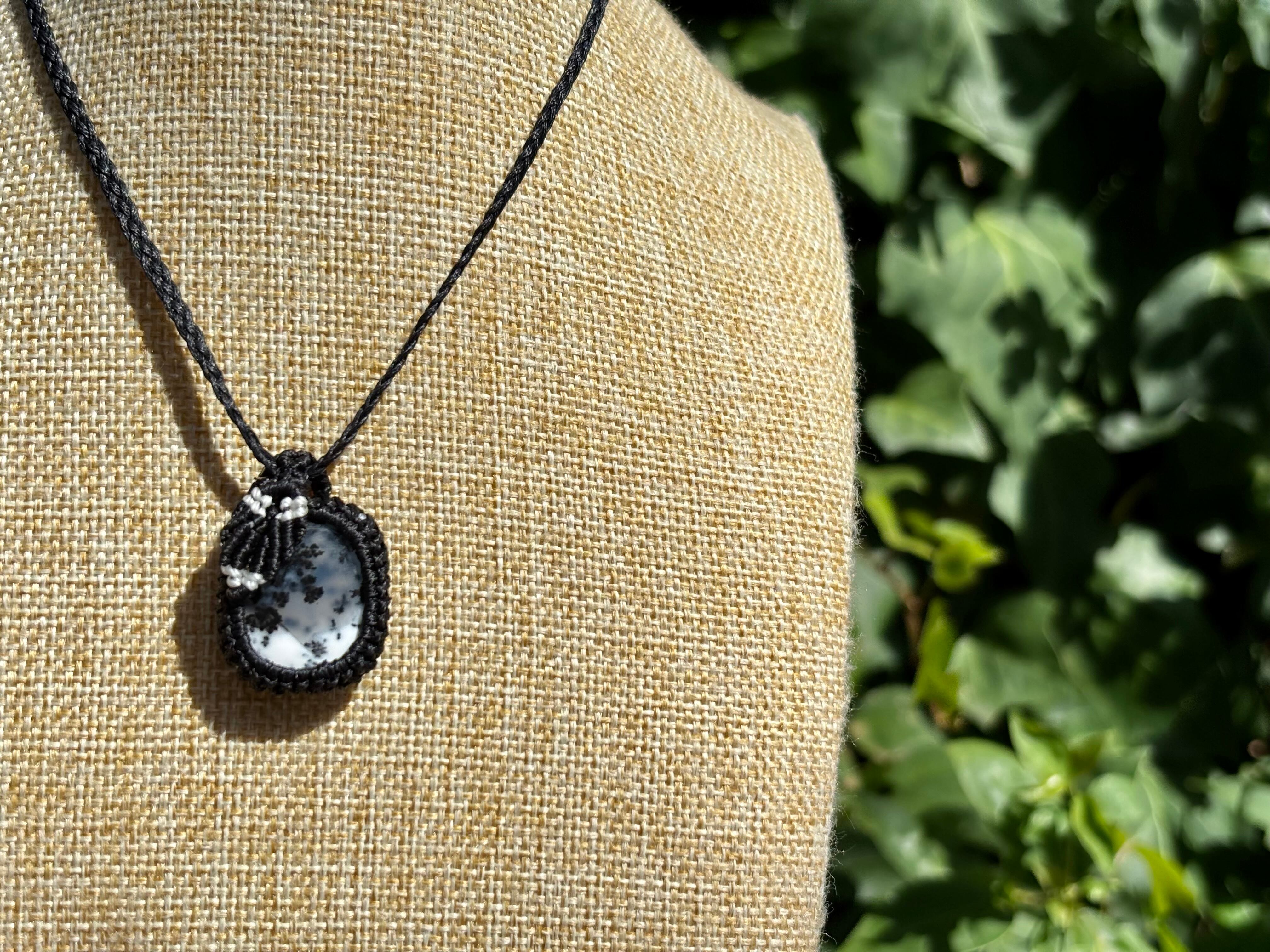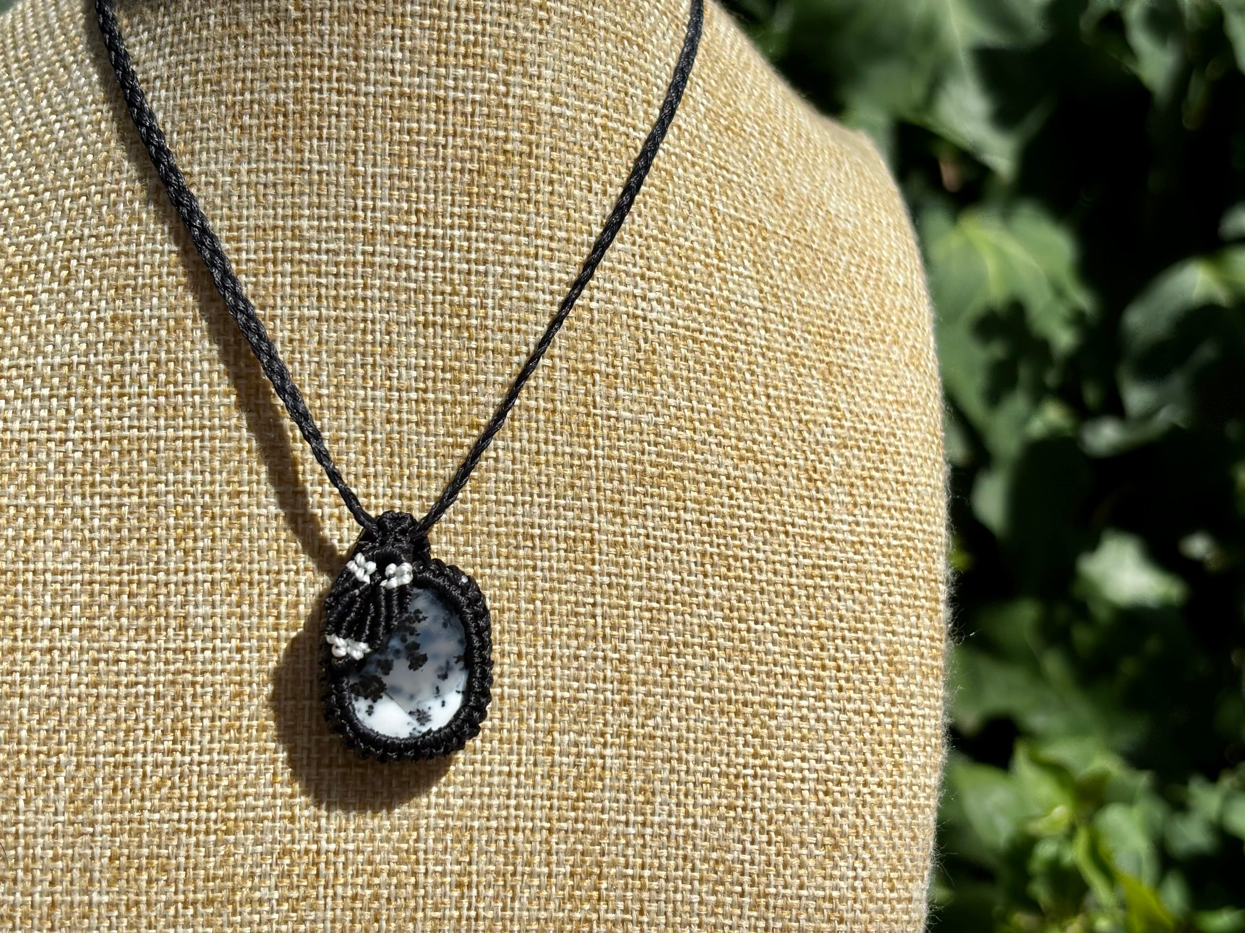 #793天然デンドリックオパール一点物(デンドリックオパール×ガーネット マクラメ編みネックレス)