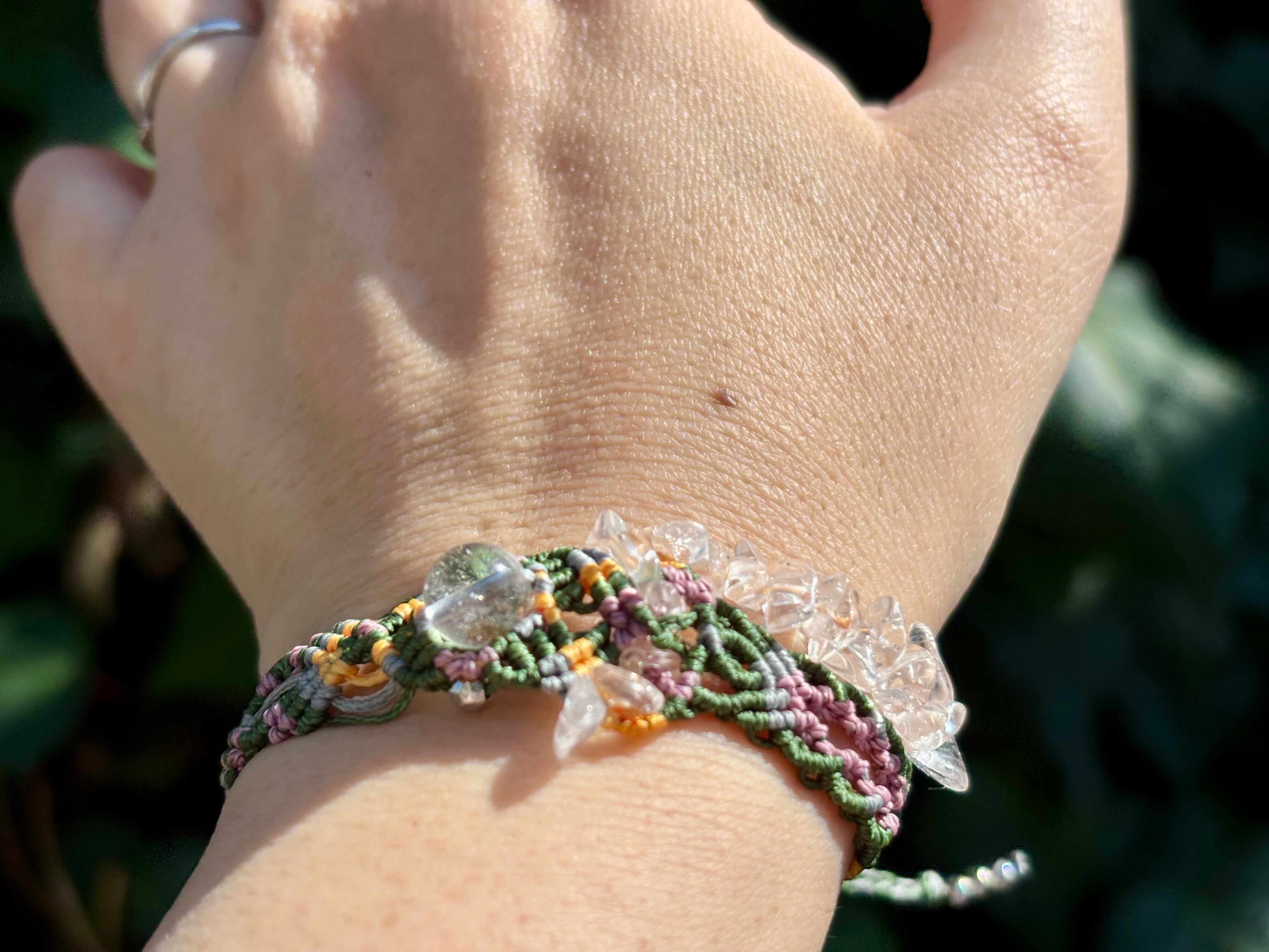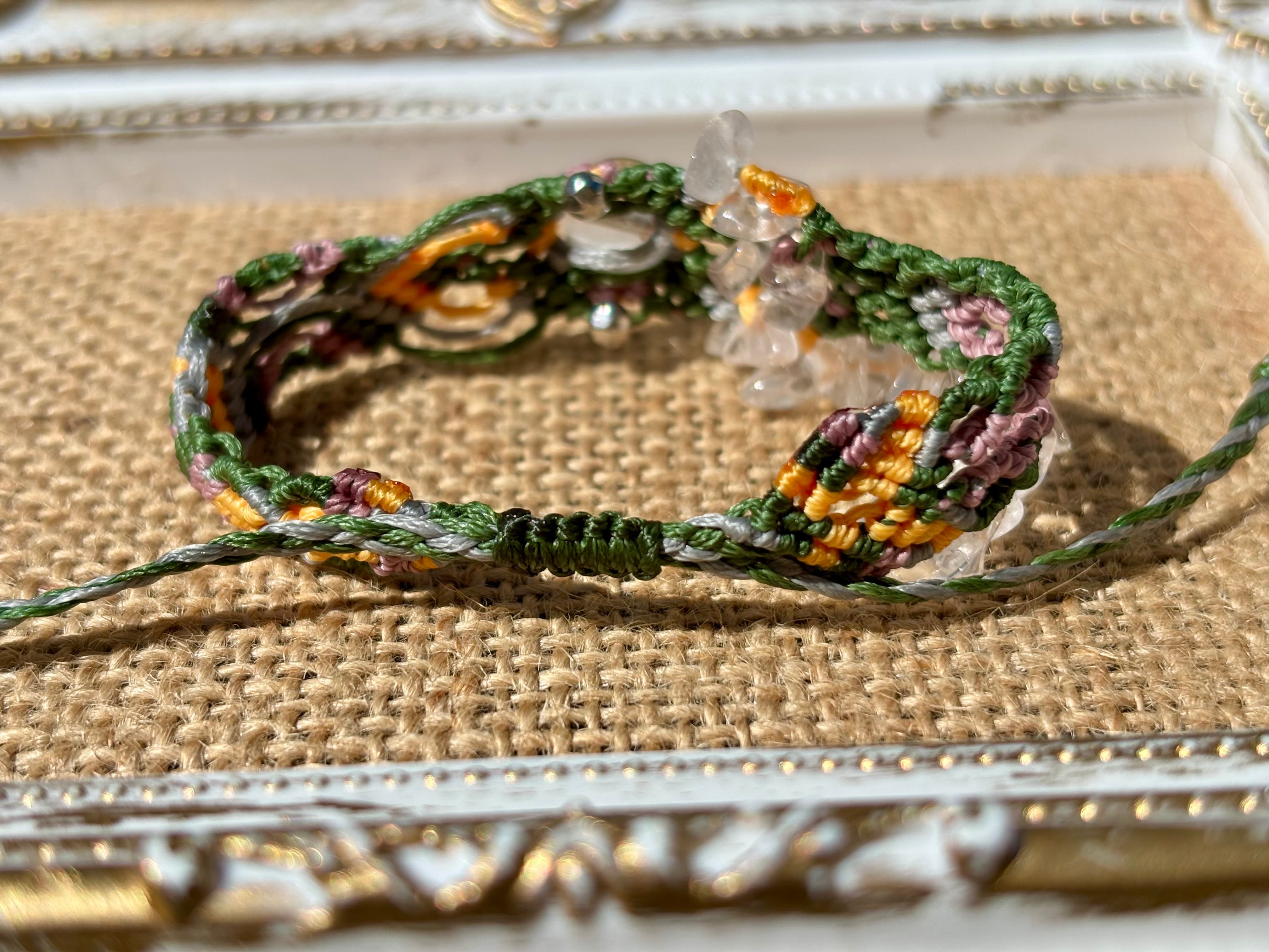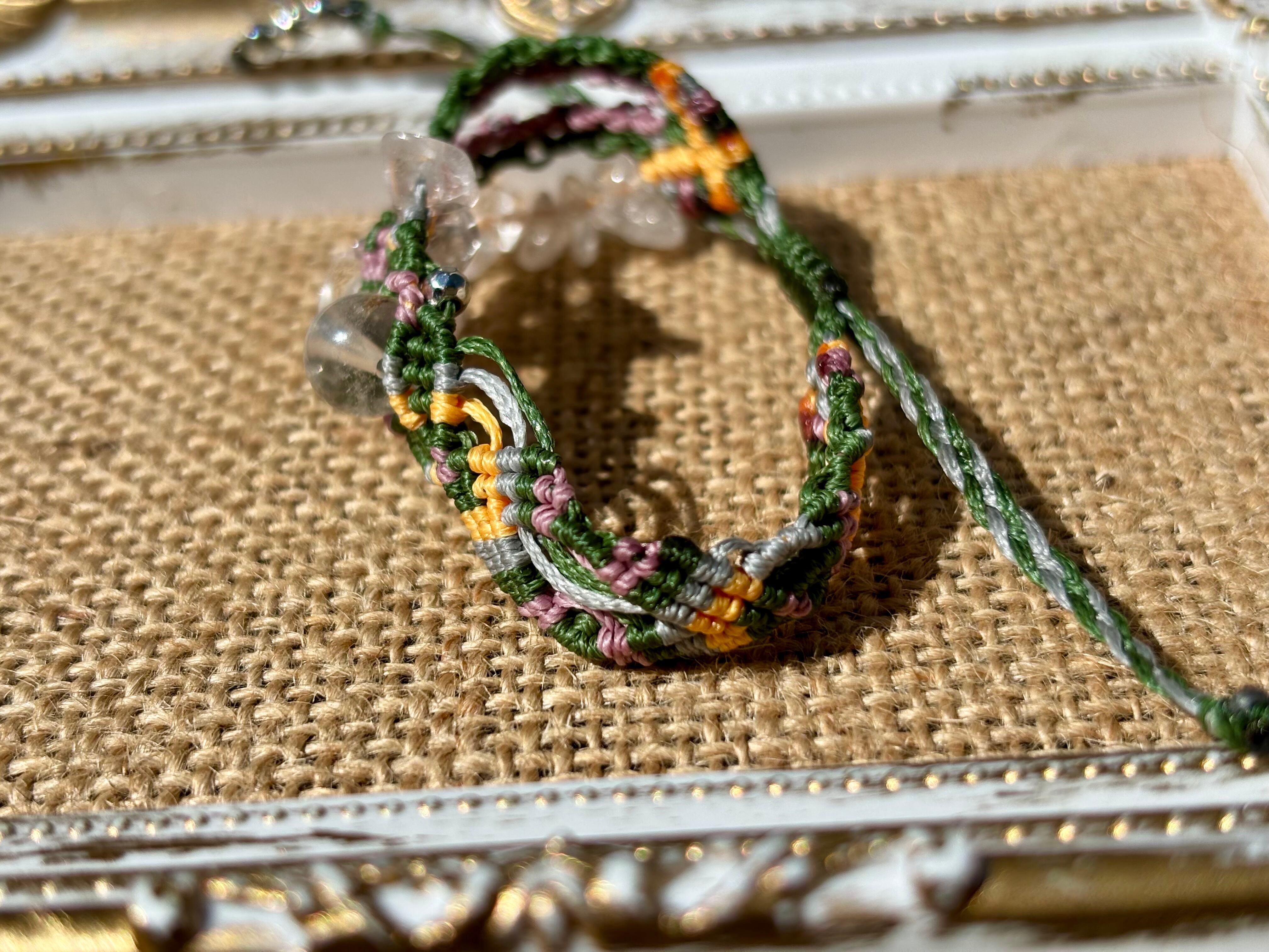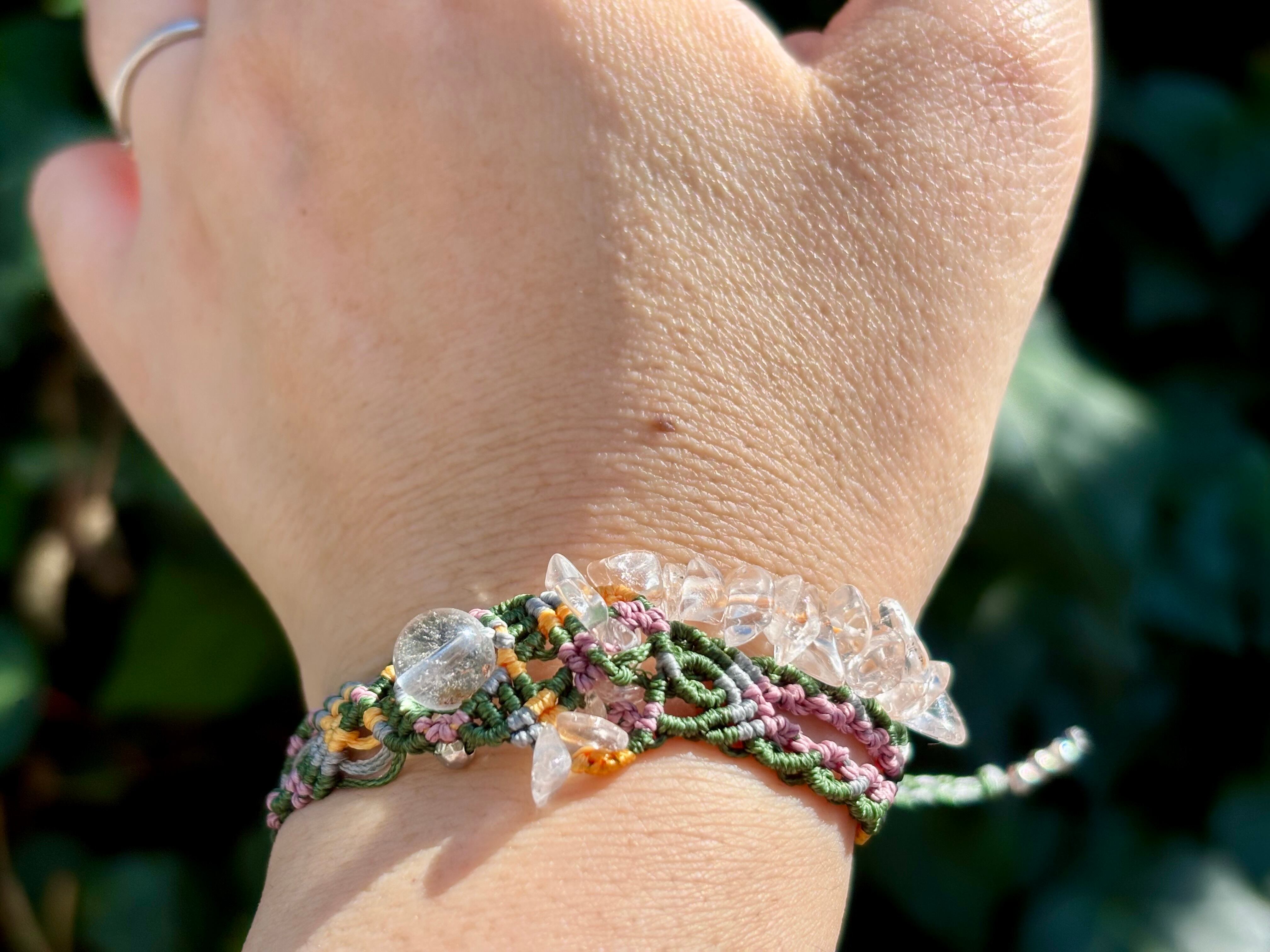 手作業で丁寧に編み込まれたこのブレスレットは、日常のコーディネートに華を添えるだけでなく、特別な場面でも存在感を発揮します。