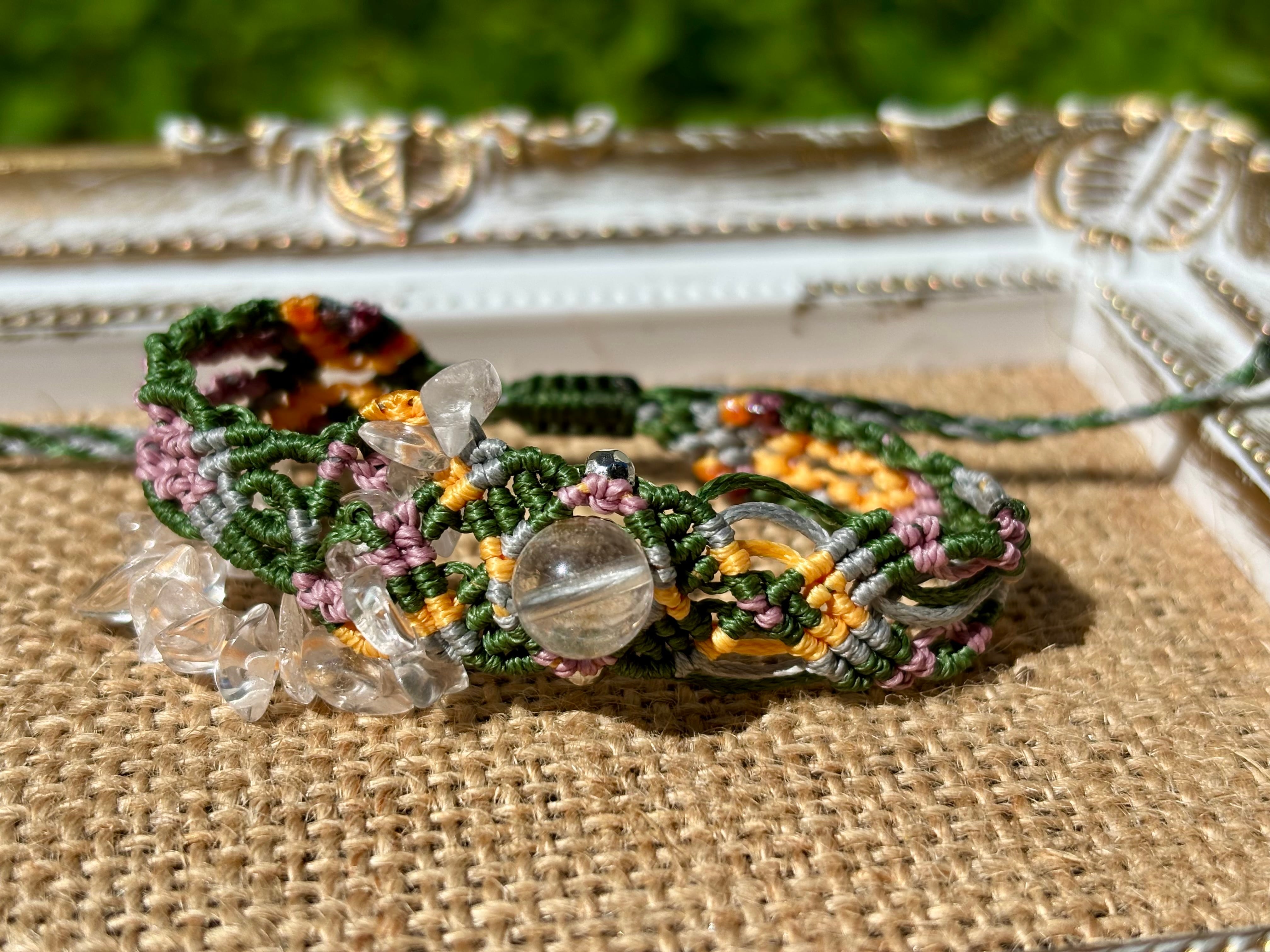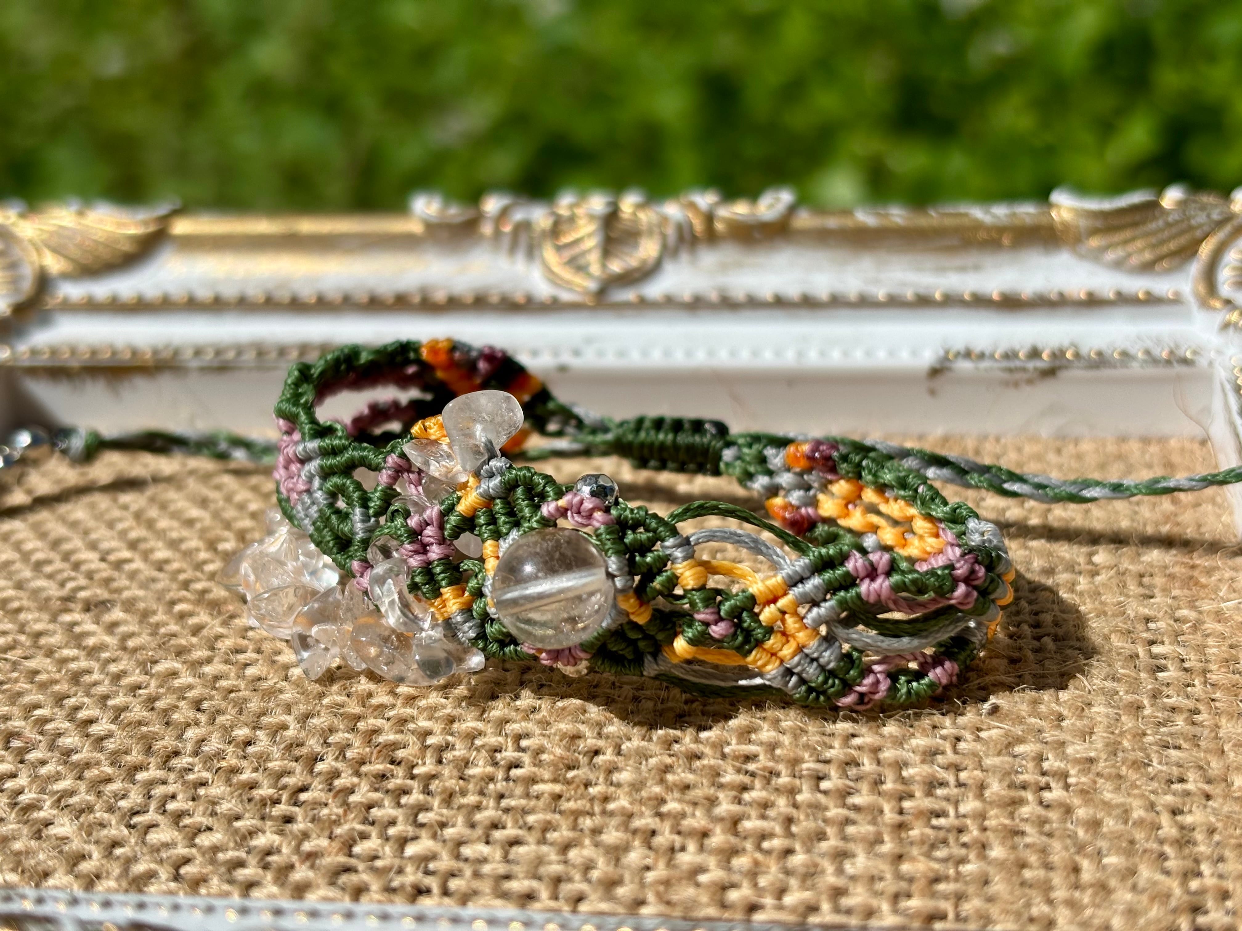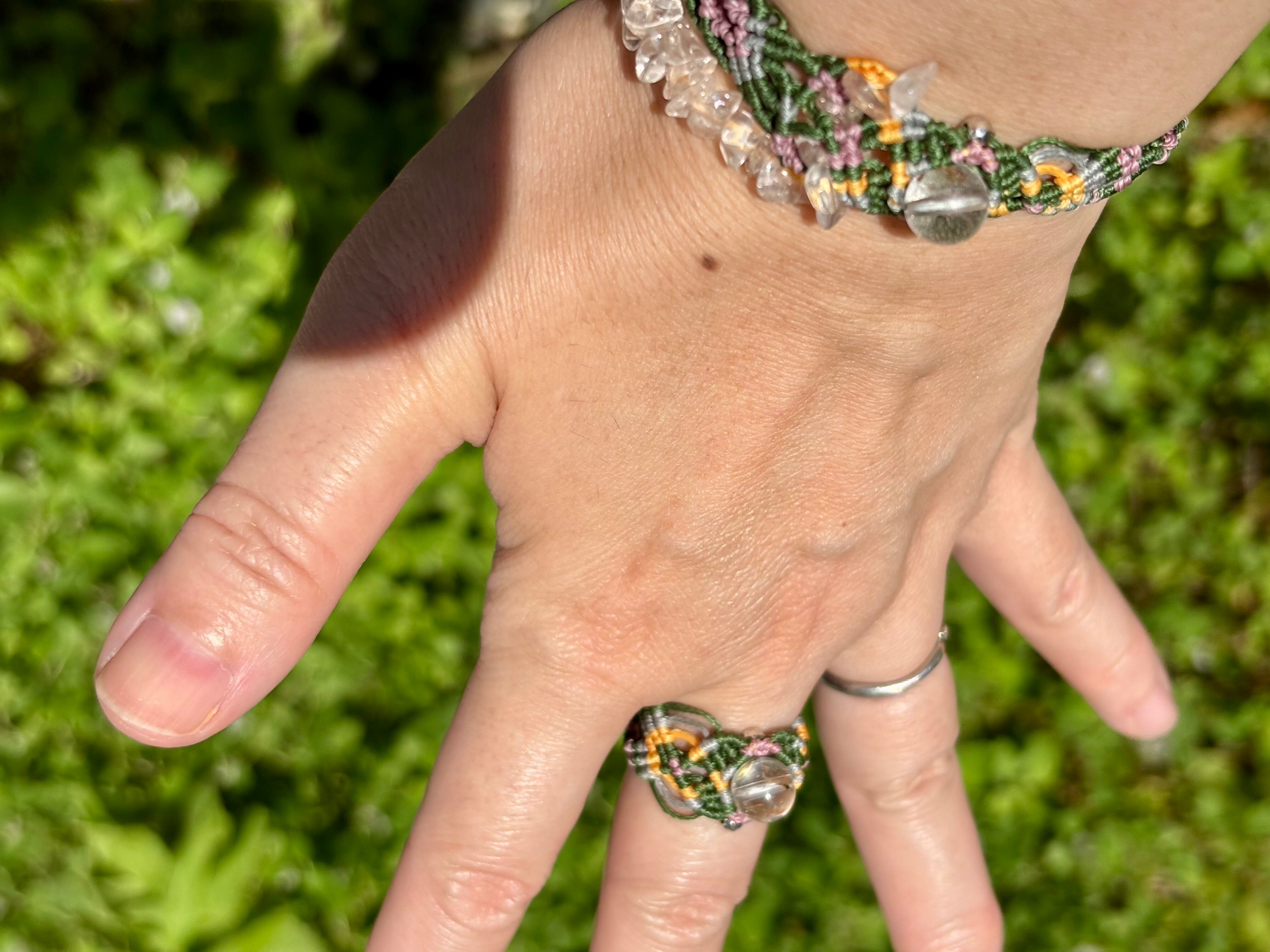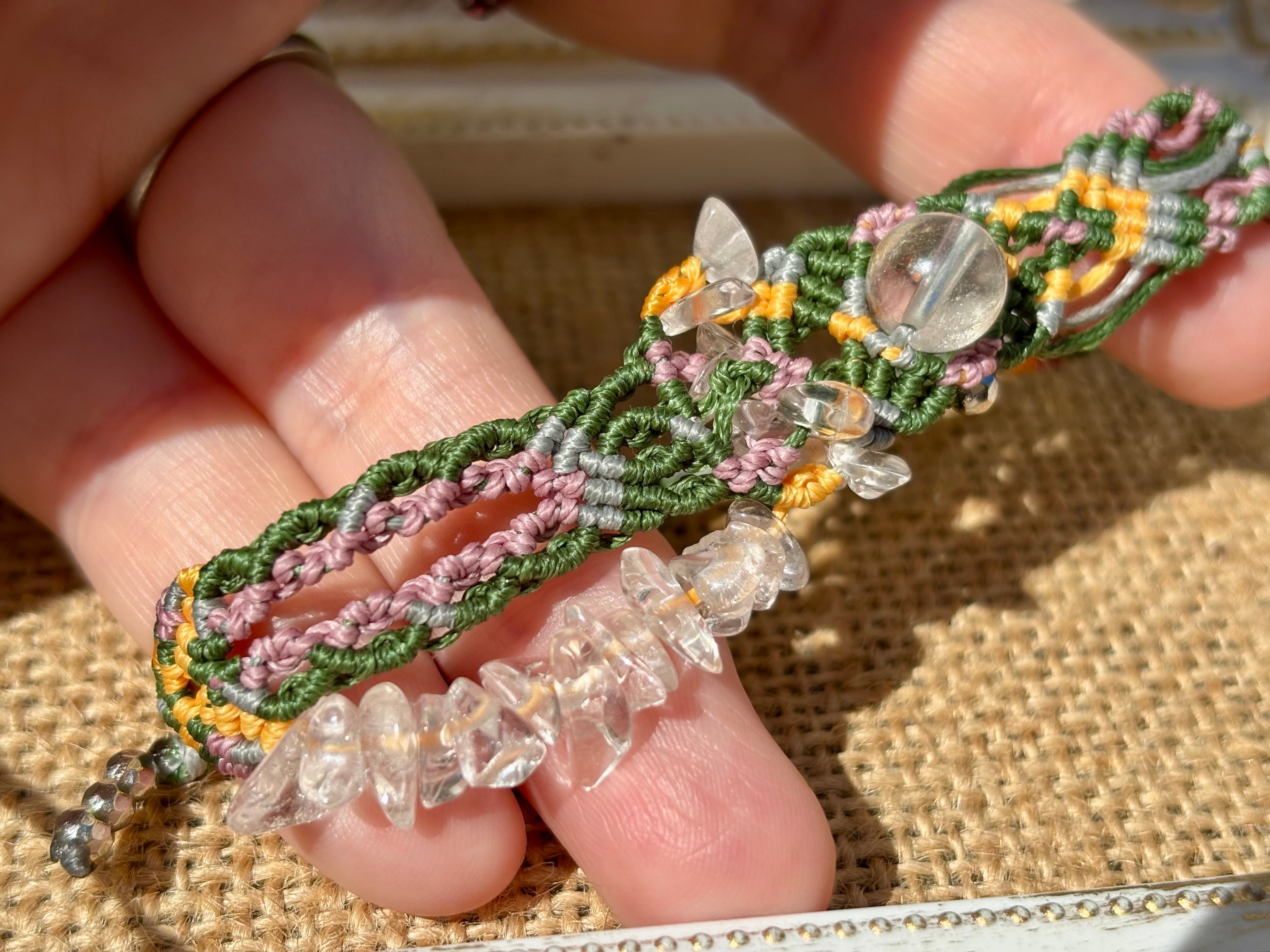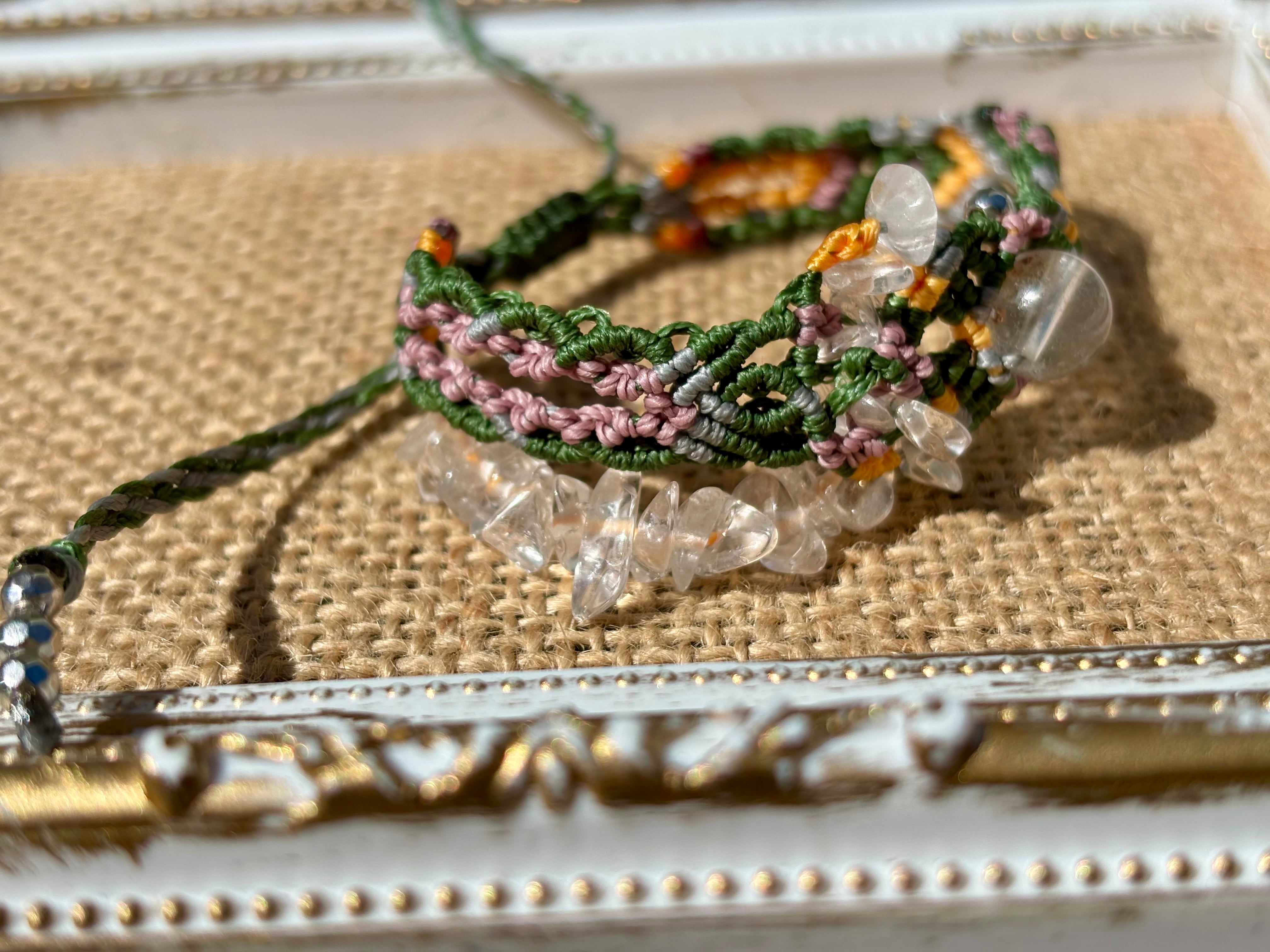 手作業で丁寧に編み込まれたこのブレスレットは、日常のコーディネートに華を添えるだけでなく、特別な場面でも存在感を発揮します。