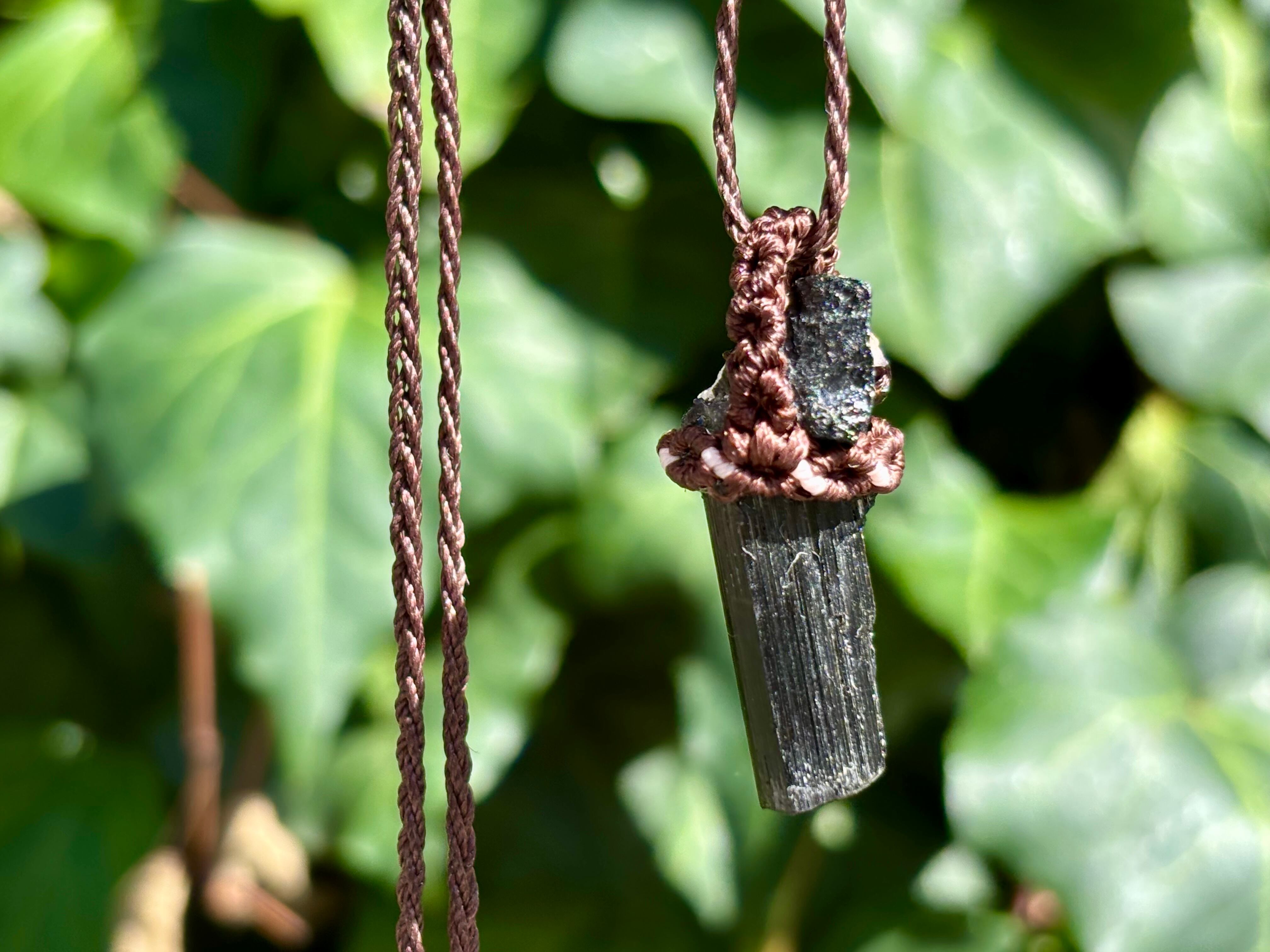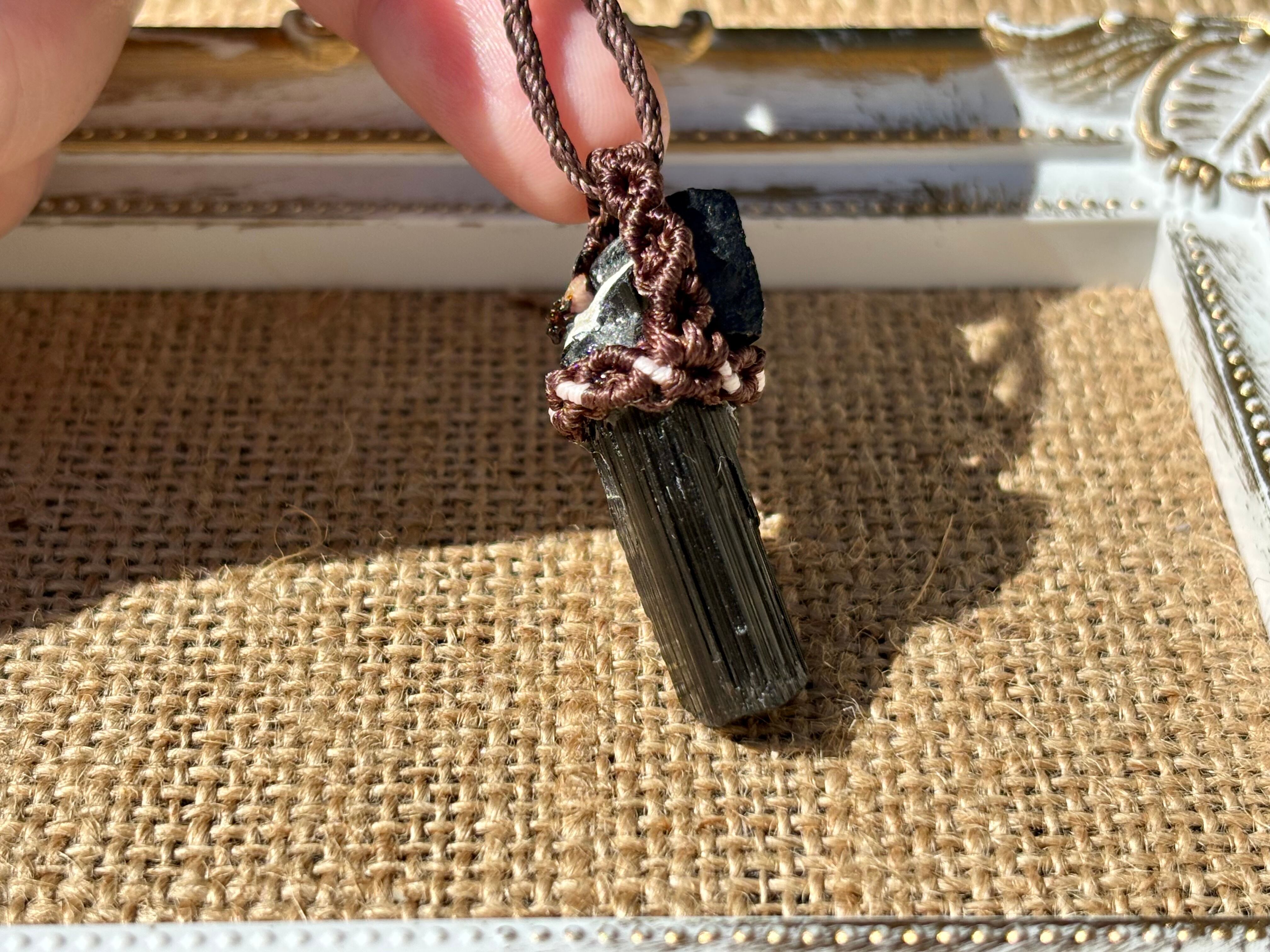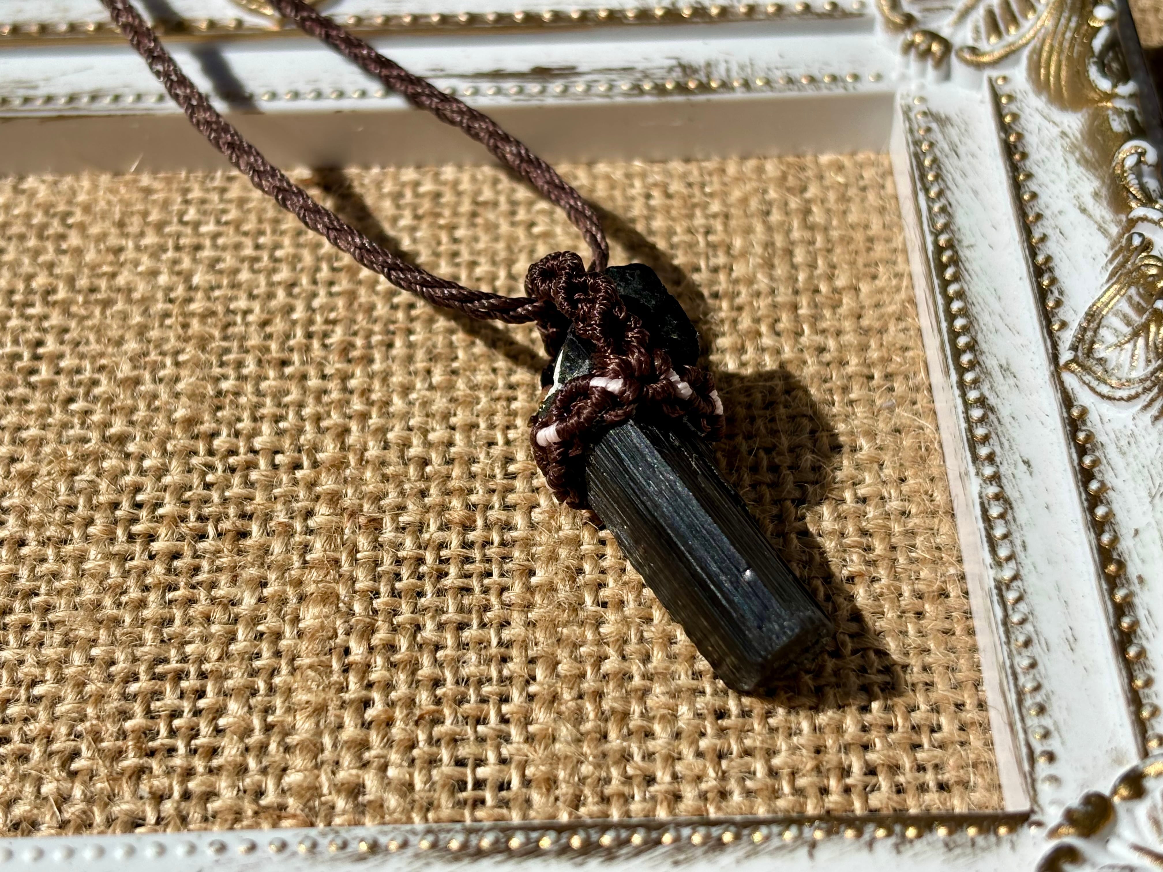 #812ブラックトルマリン原石一点物(ブラックトルマリン×ヘマタイト マクラメ編みネックレス)