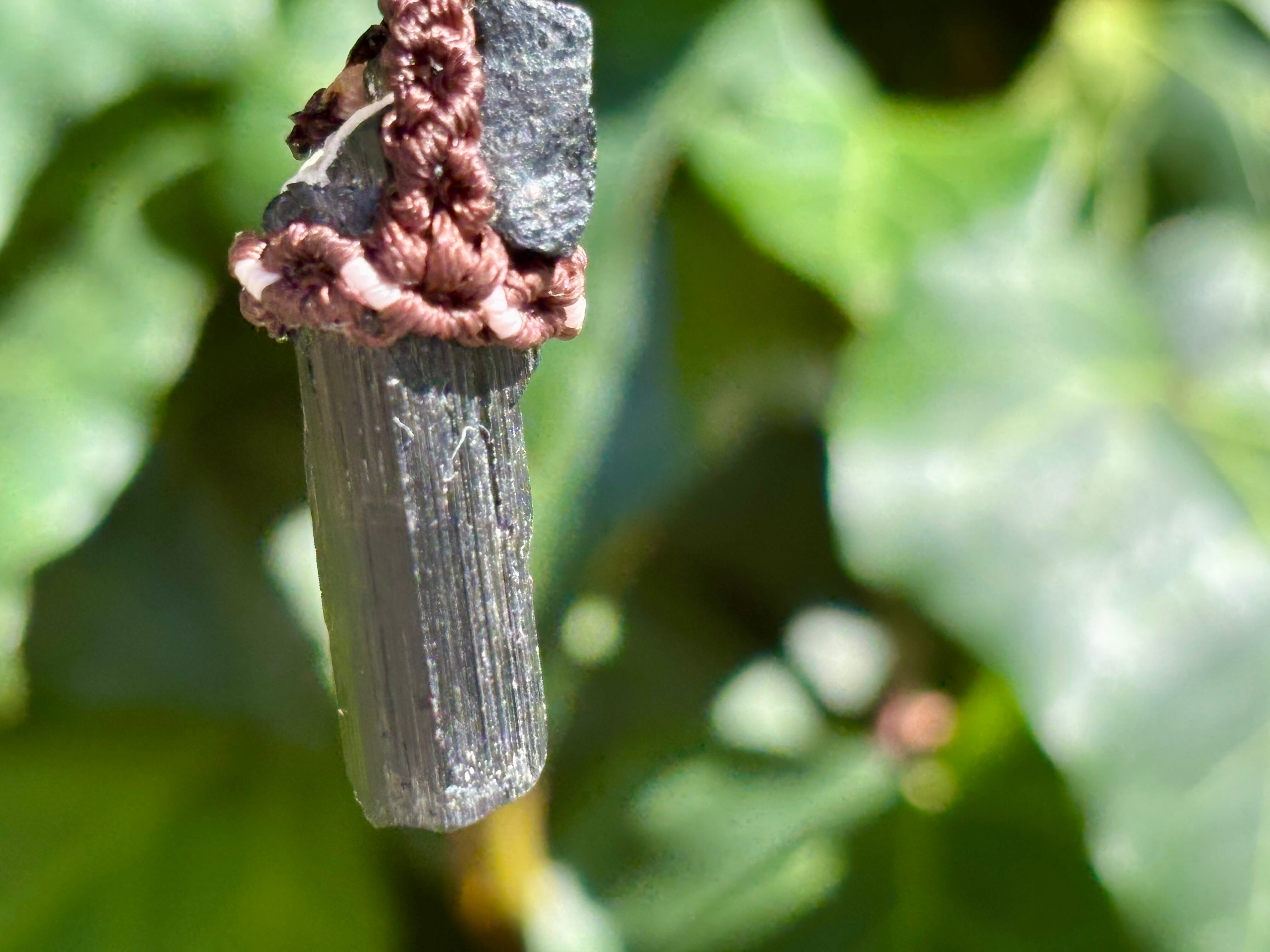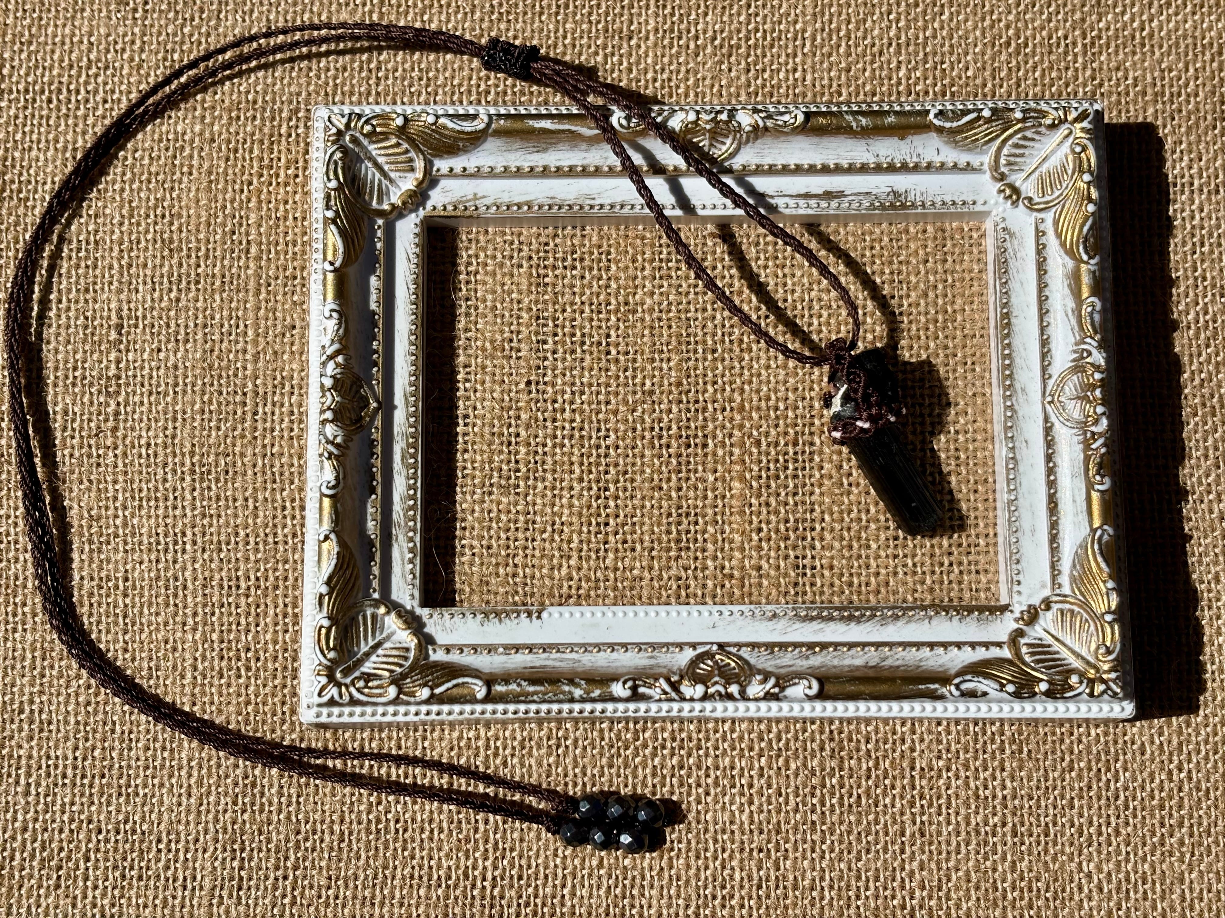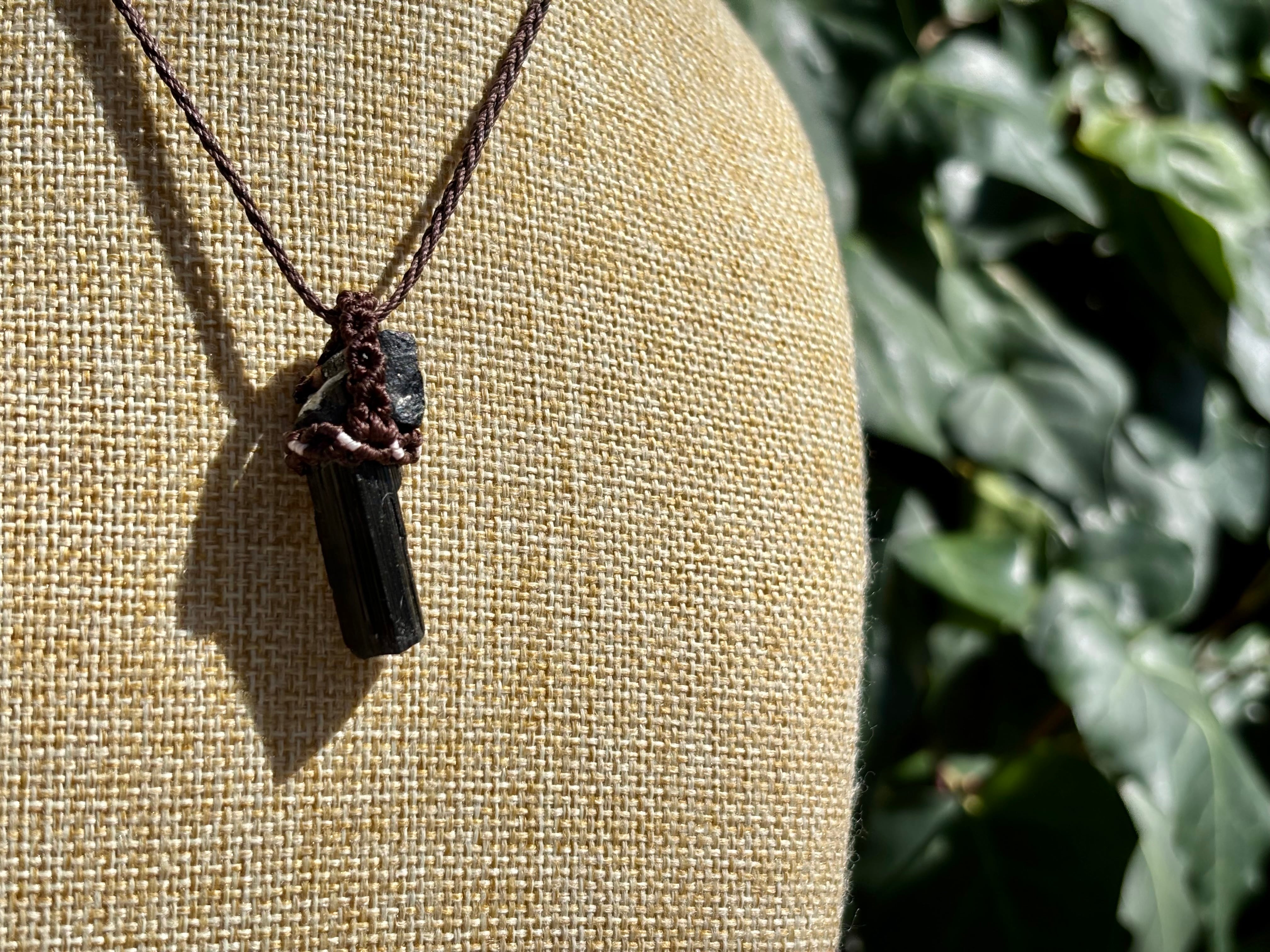 #812ブラックトルマリン原石一点物(ブラックトルマリン×ヘマタイト マクラメ編みネックレス)