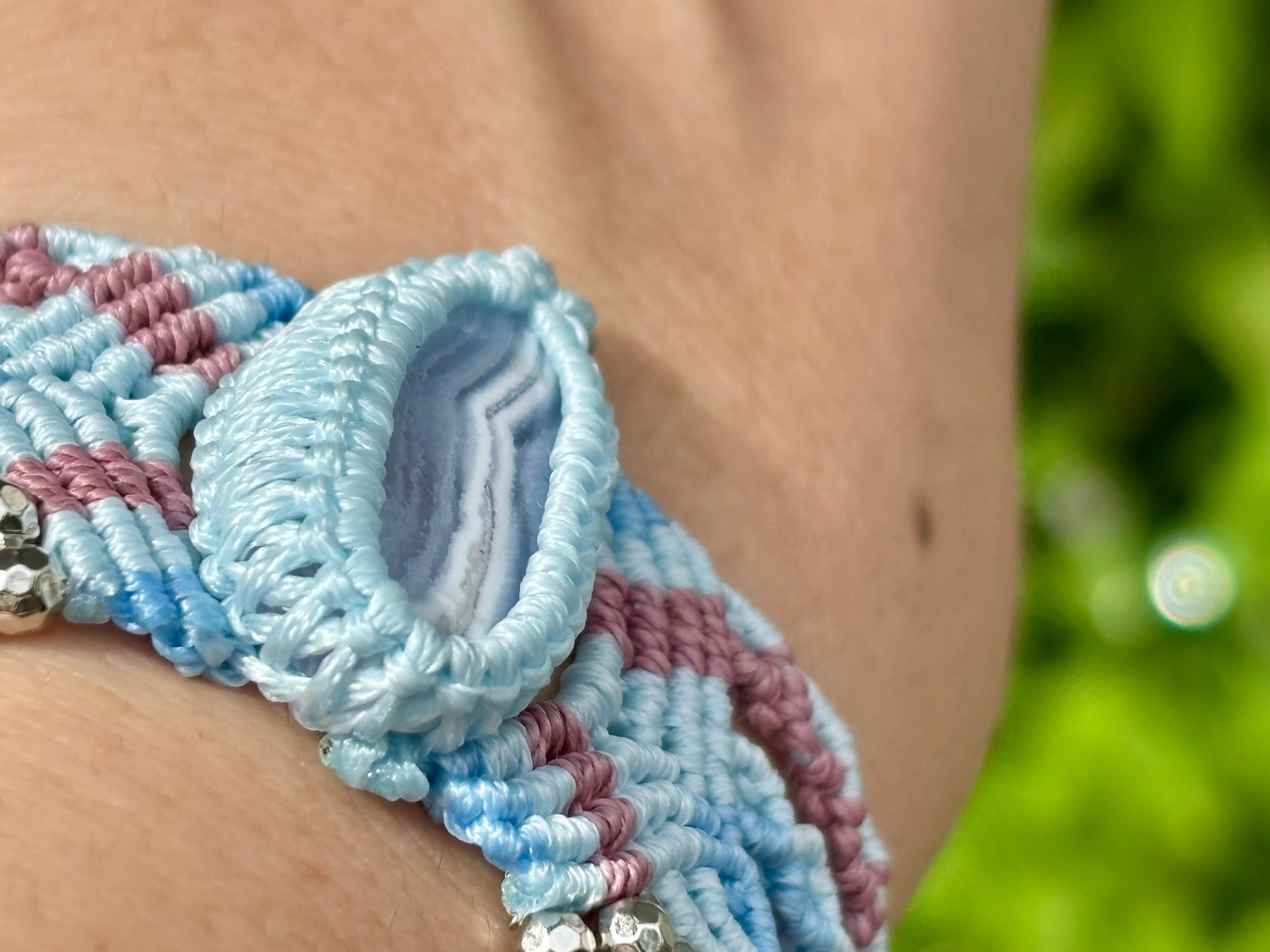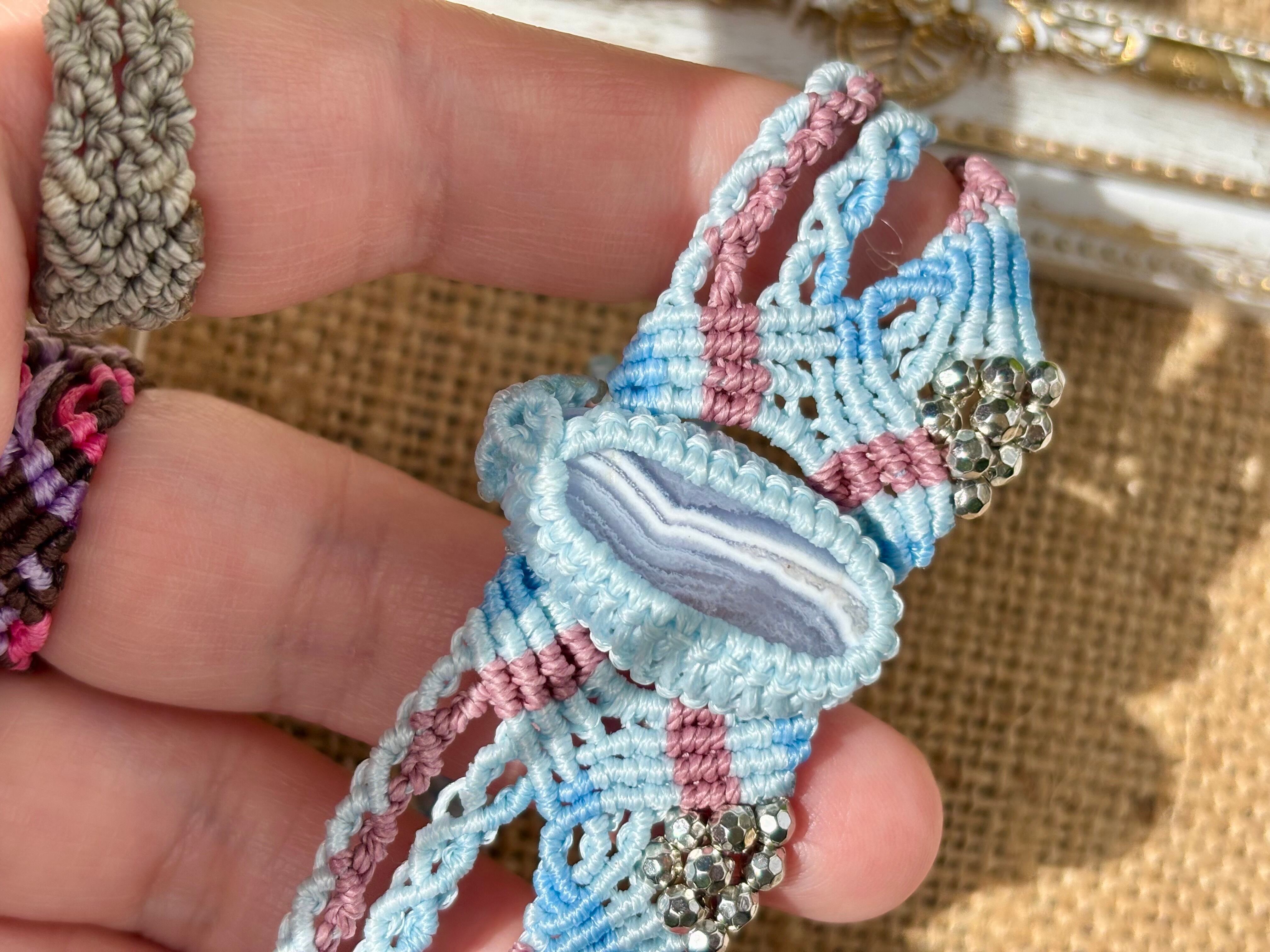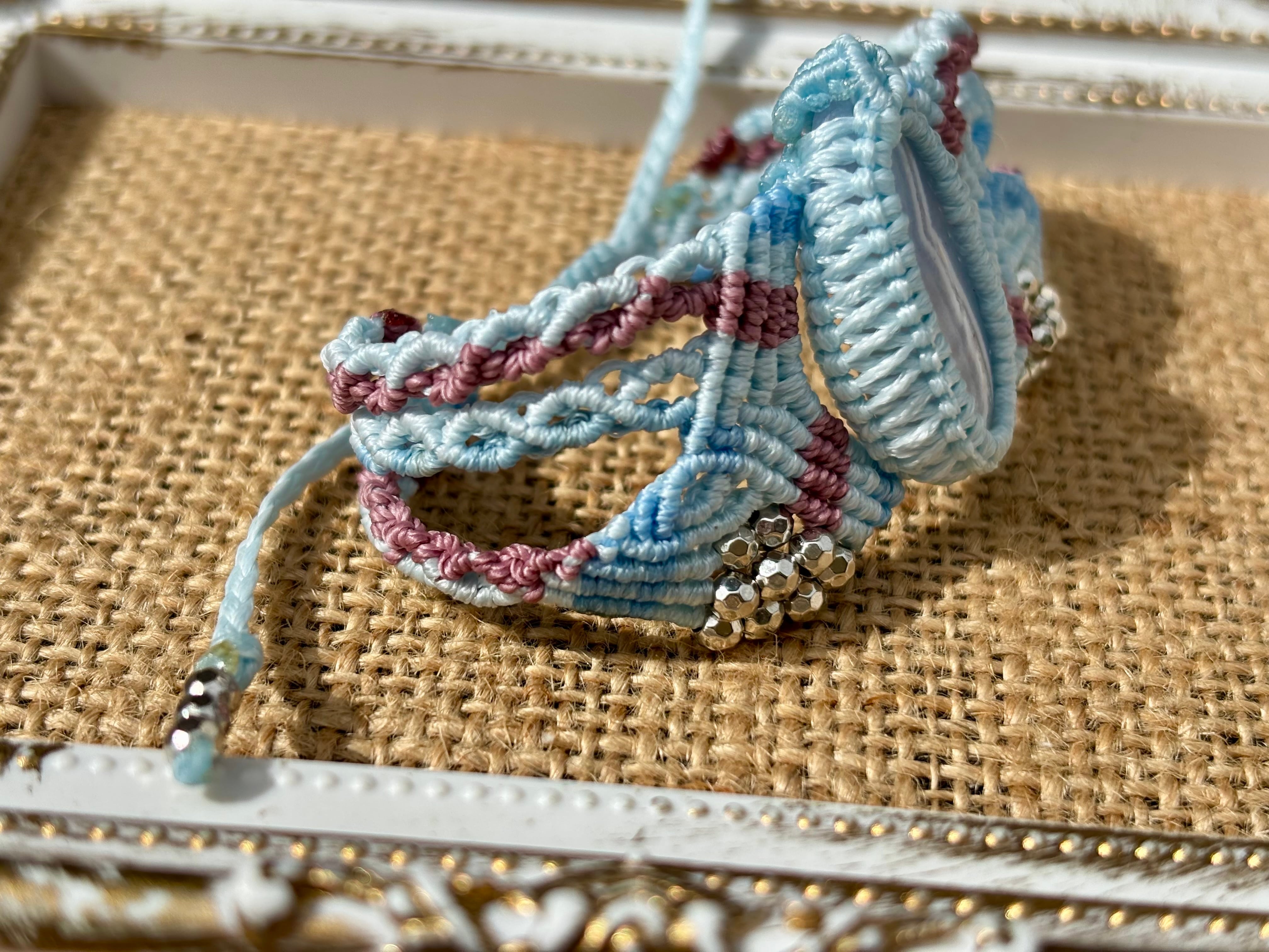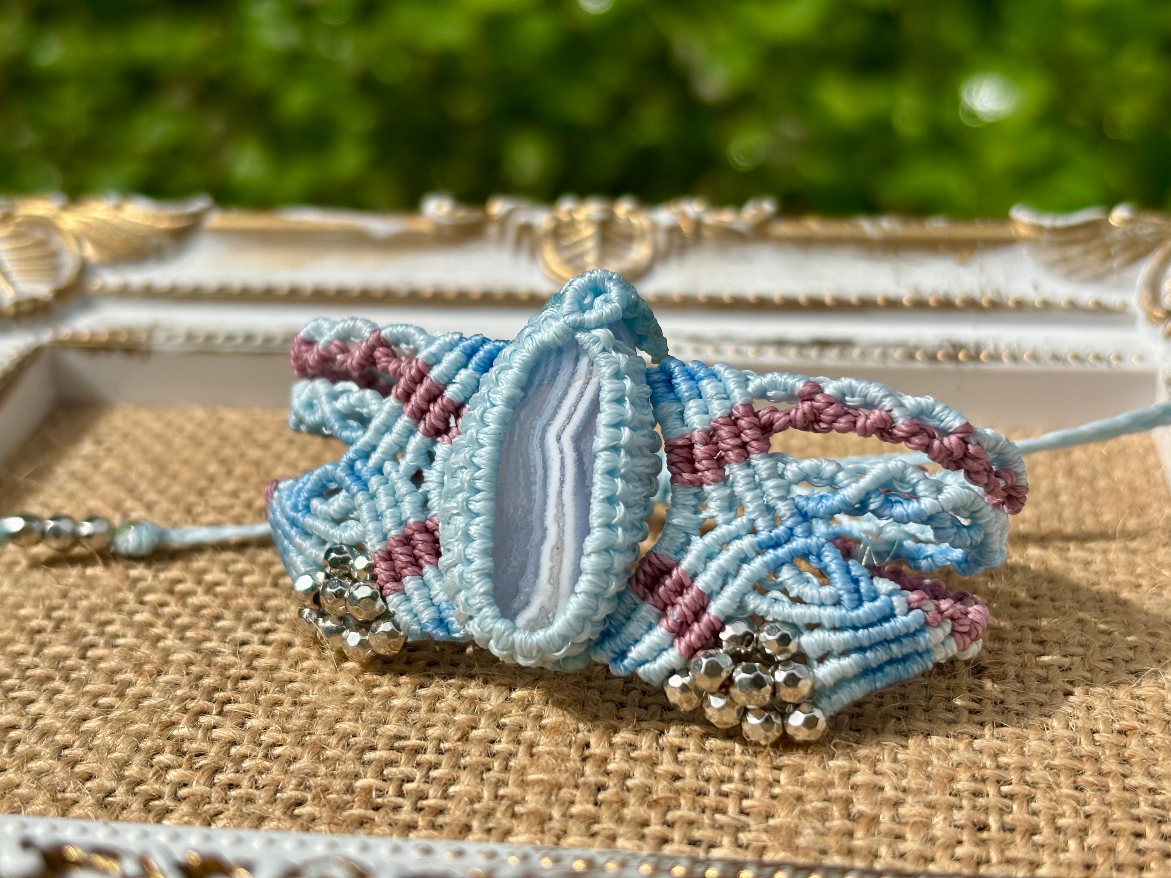 #815 天然ブルーレースアゲート一点物 (ブルーレースアゲート マクラメ編みブレスレット)